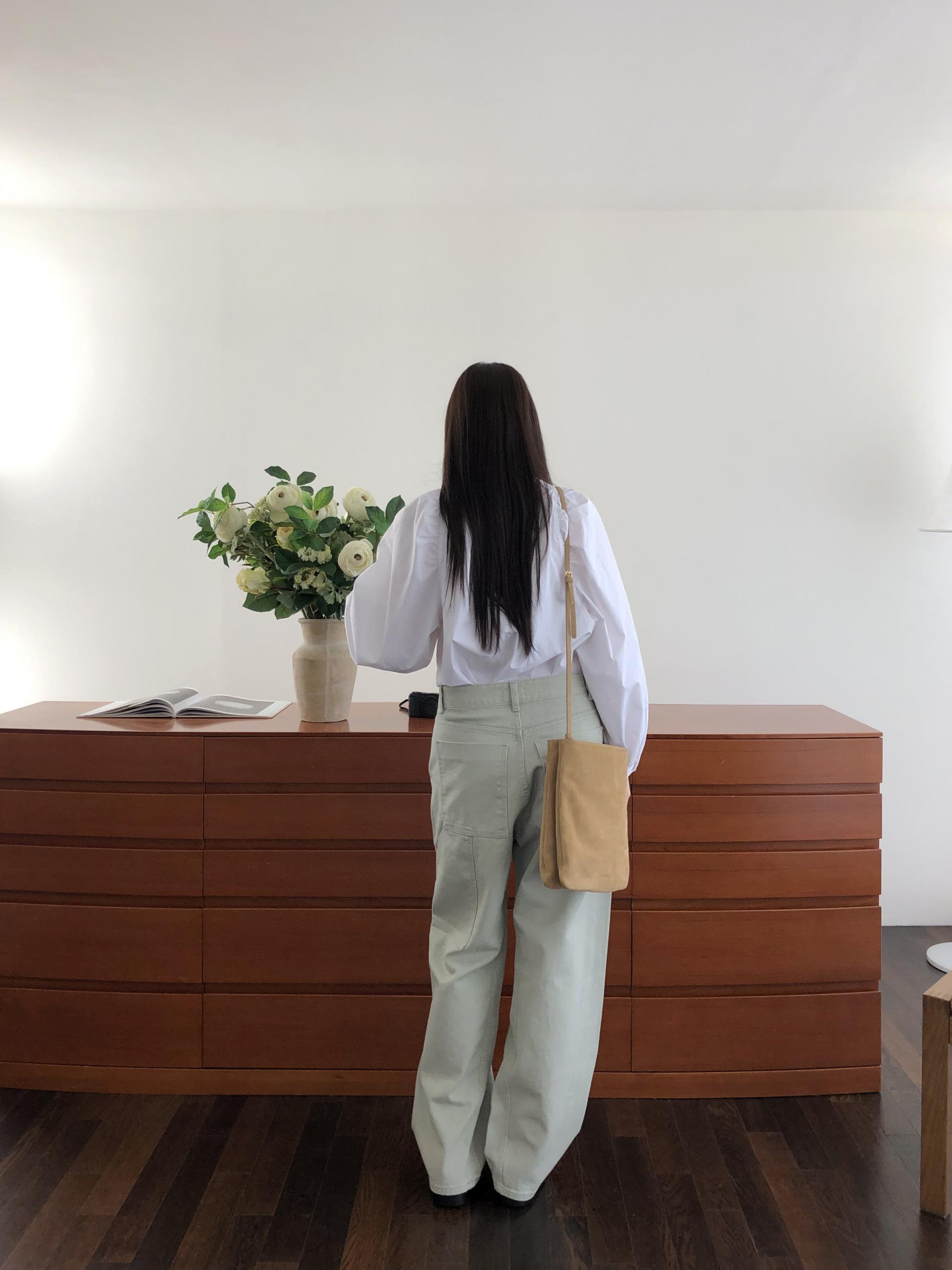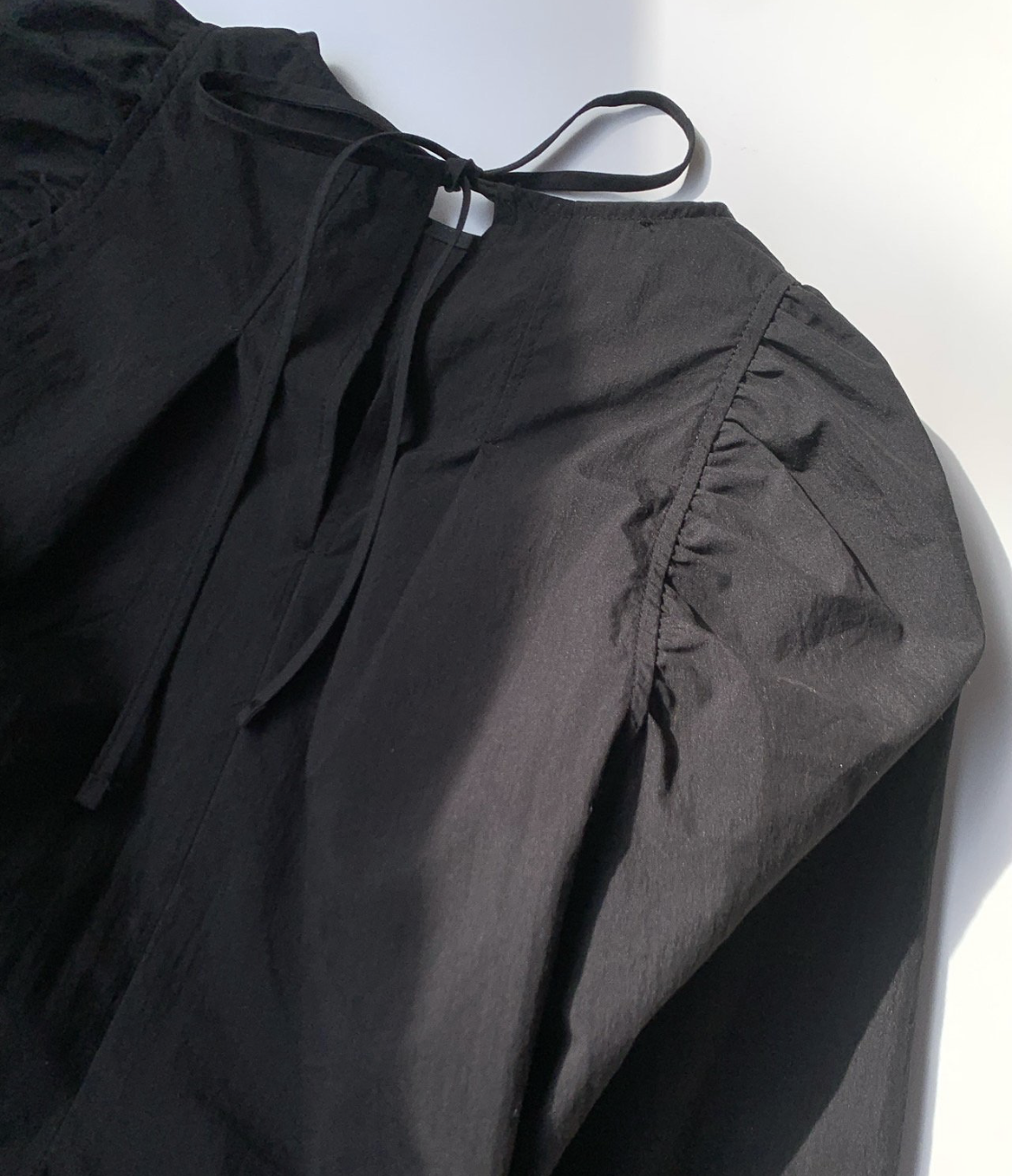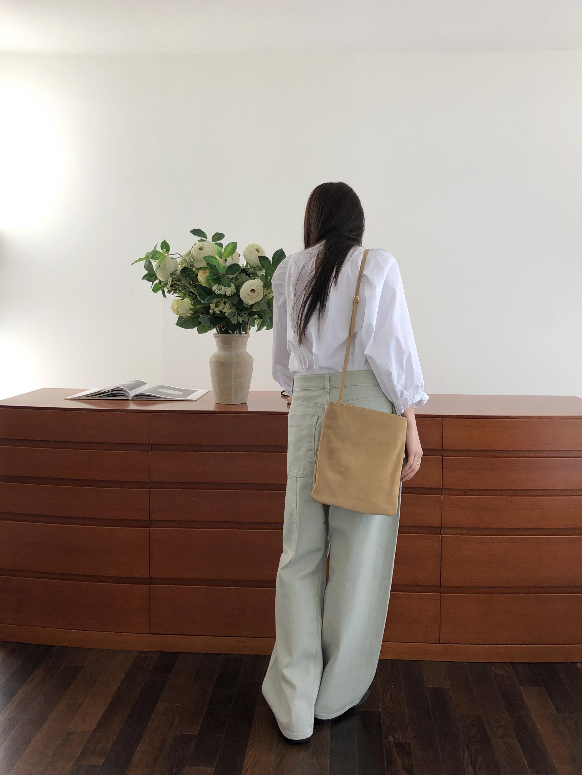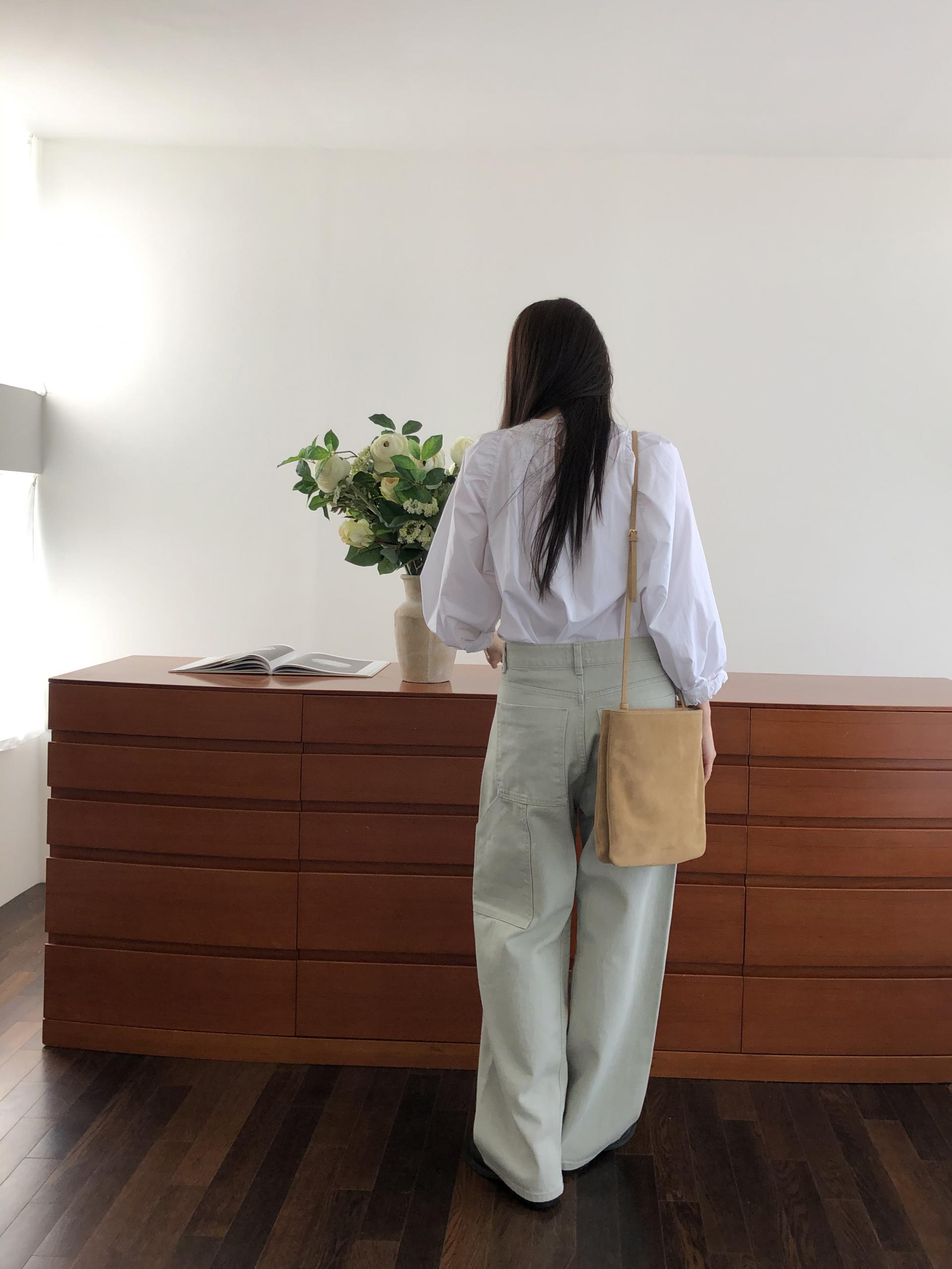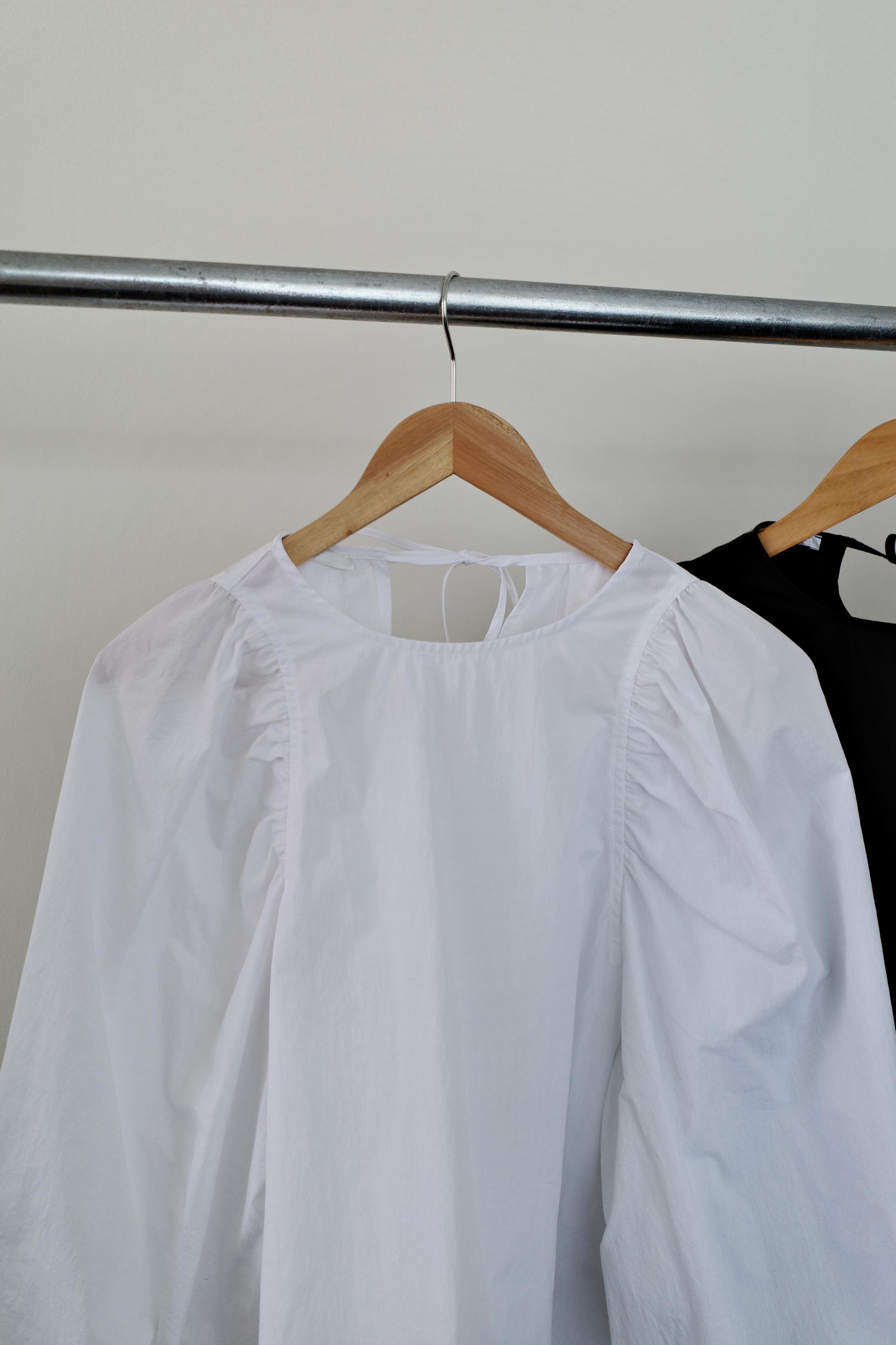실루엣 자체가 풍성하기 때문에 짧은 팬츠와 깔끔하게 연출해도, 데님에 툭 입어줘도 신경 쓴 티가 나요. 뒤를 묶는 리본 디테일 덕분에 뒷모습까지 예쁩니다.