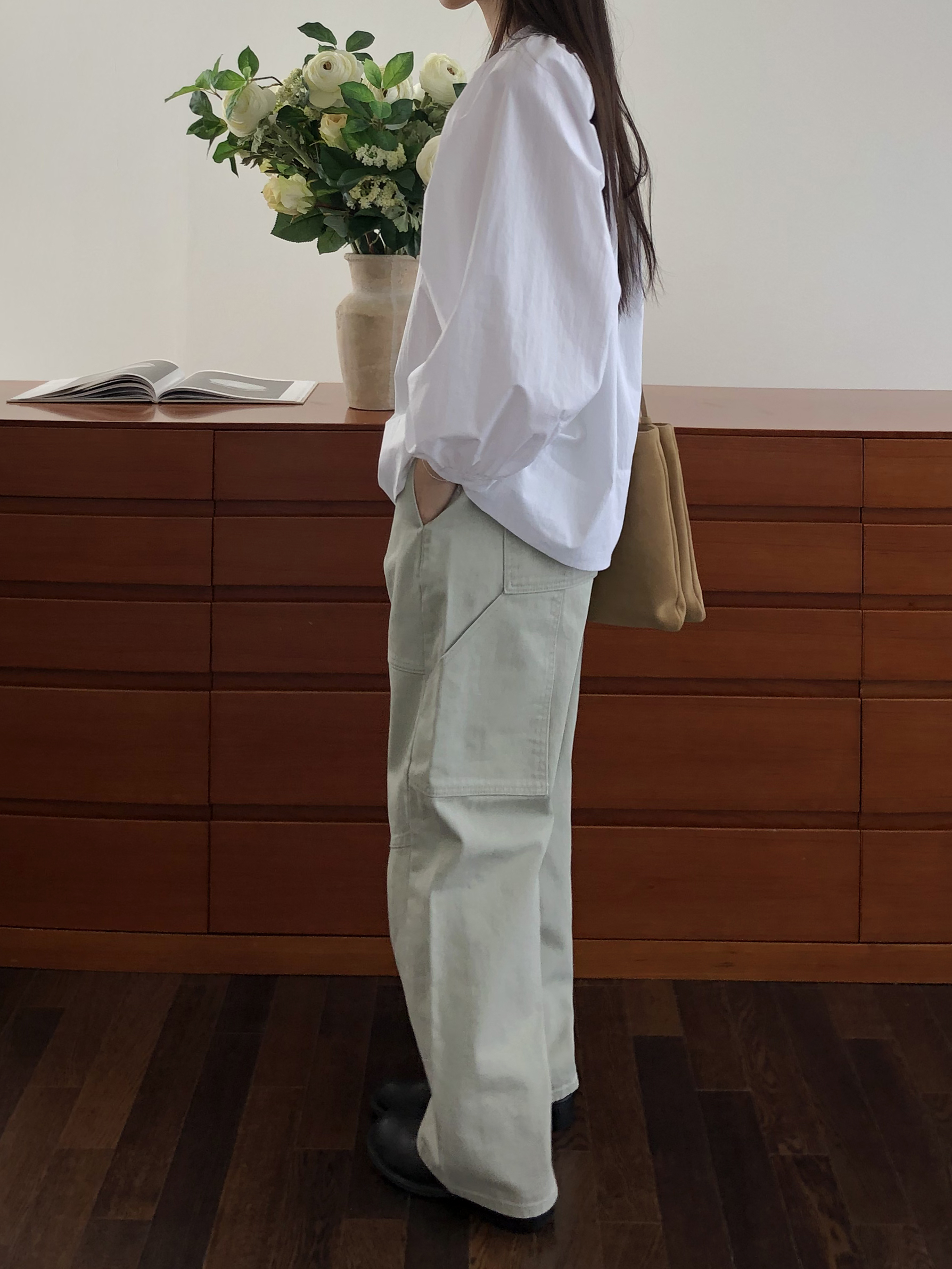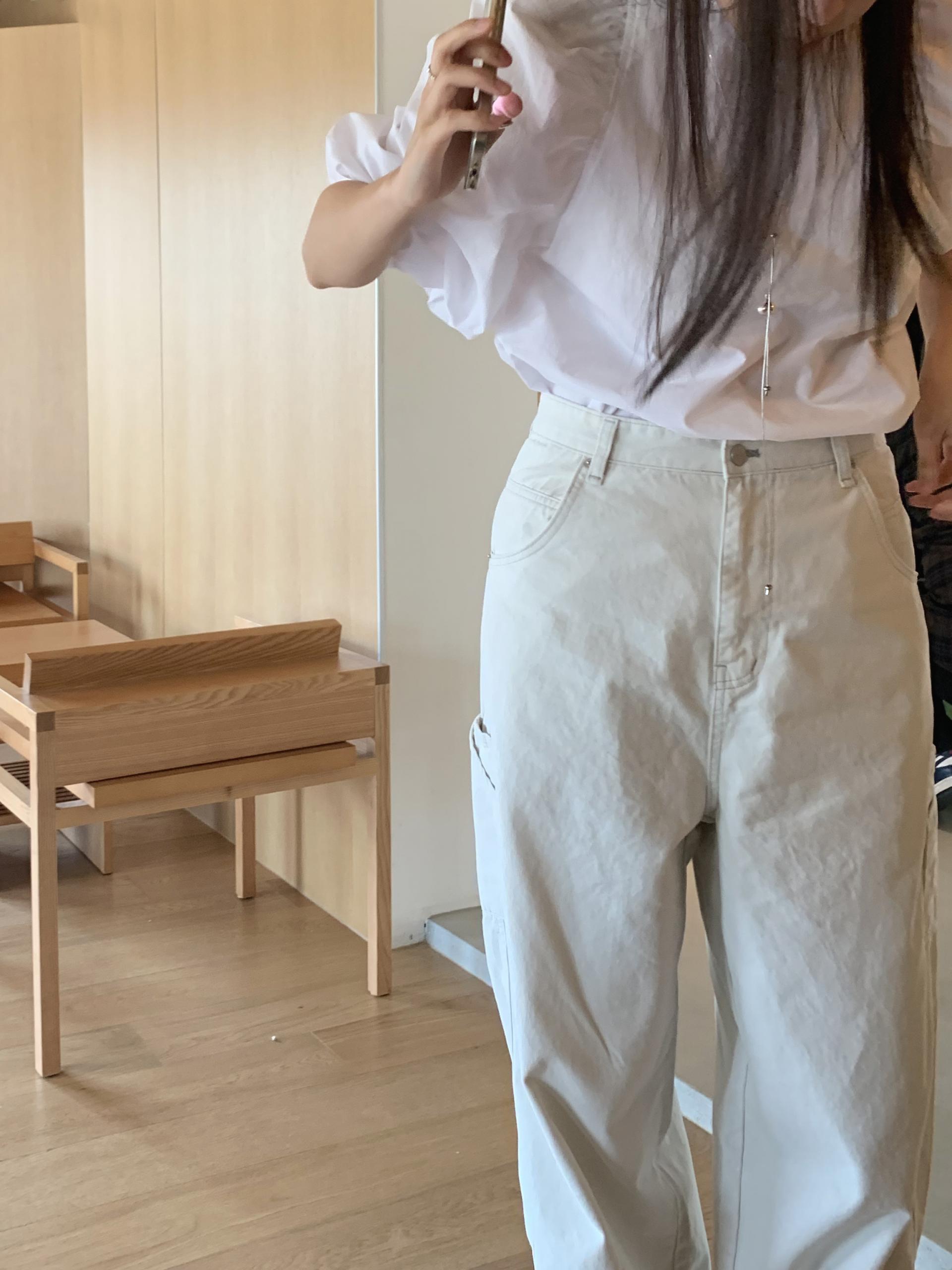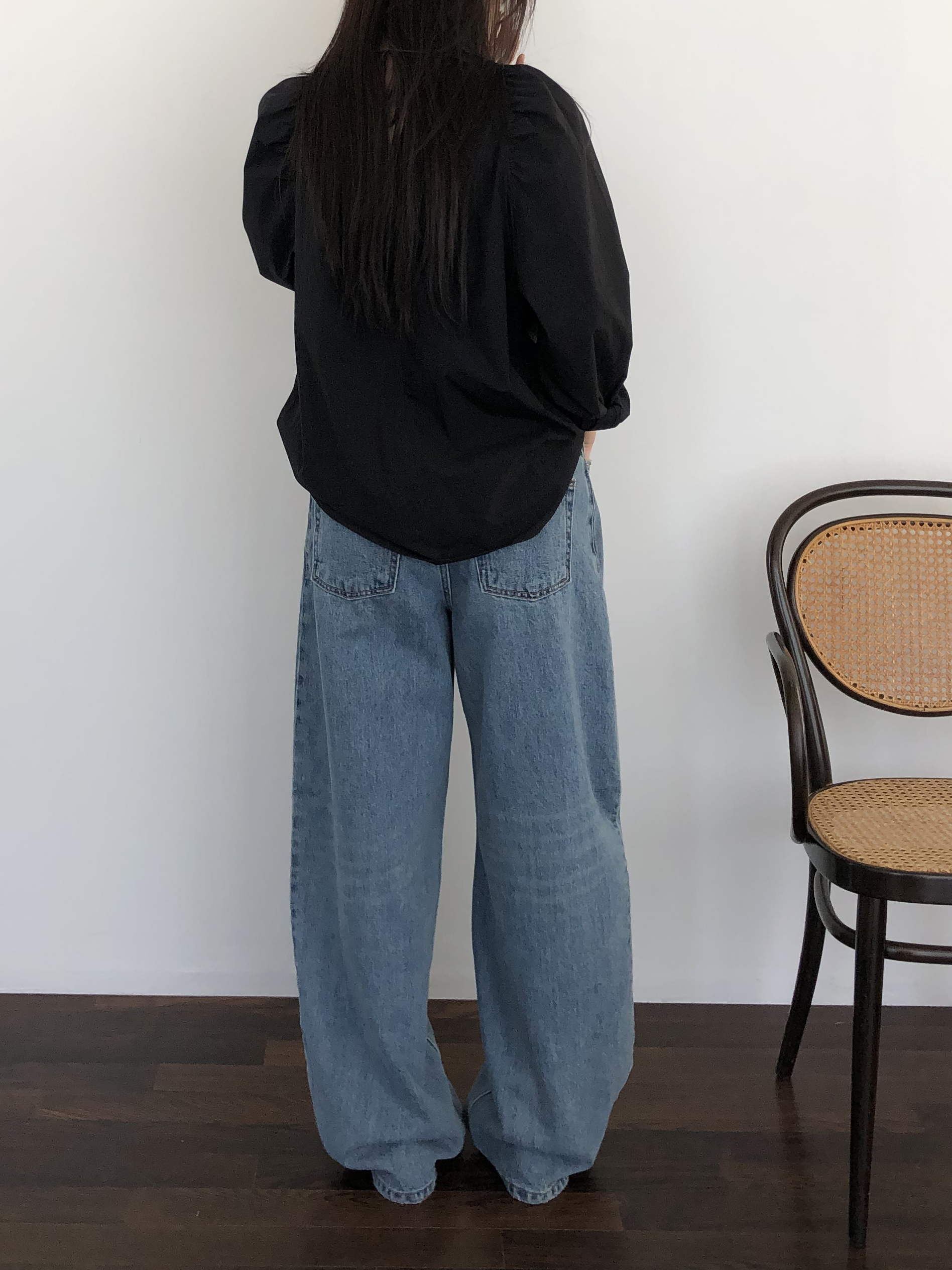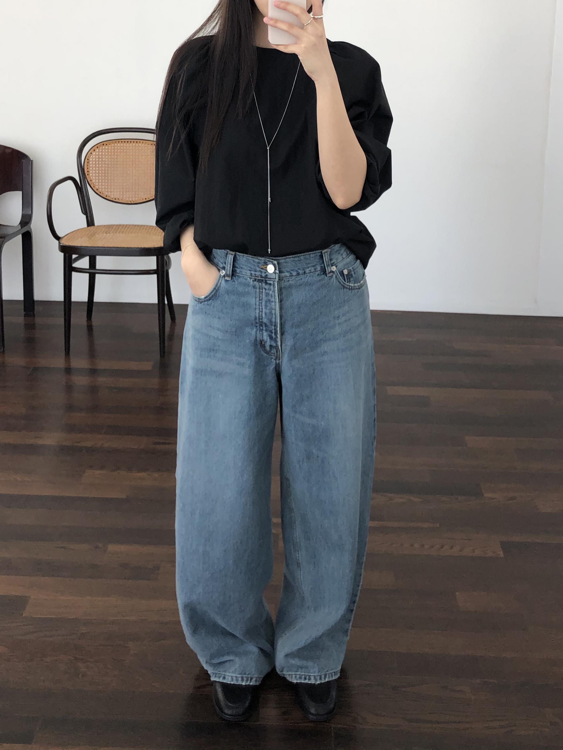 실루엣 자체가 풍성하기 때문에 짧은 팬츠와 깔끔하게 연출해도, 데님에 툭 입어줘도 신경 쓴 티가 나요. 뒤를 묶는 리본 디테일 덕분에 뒷모습까지 예쁩니다.