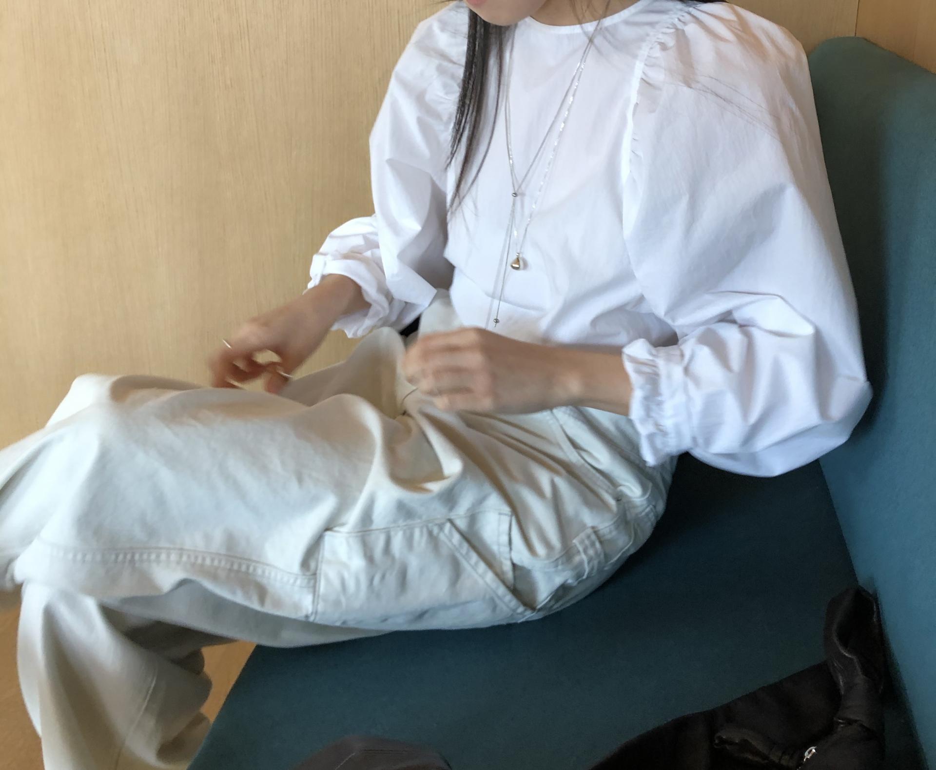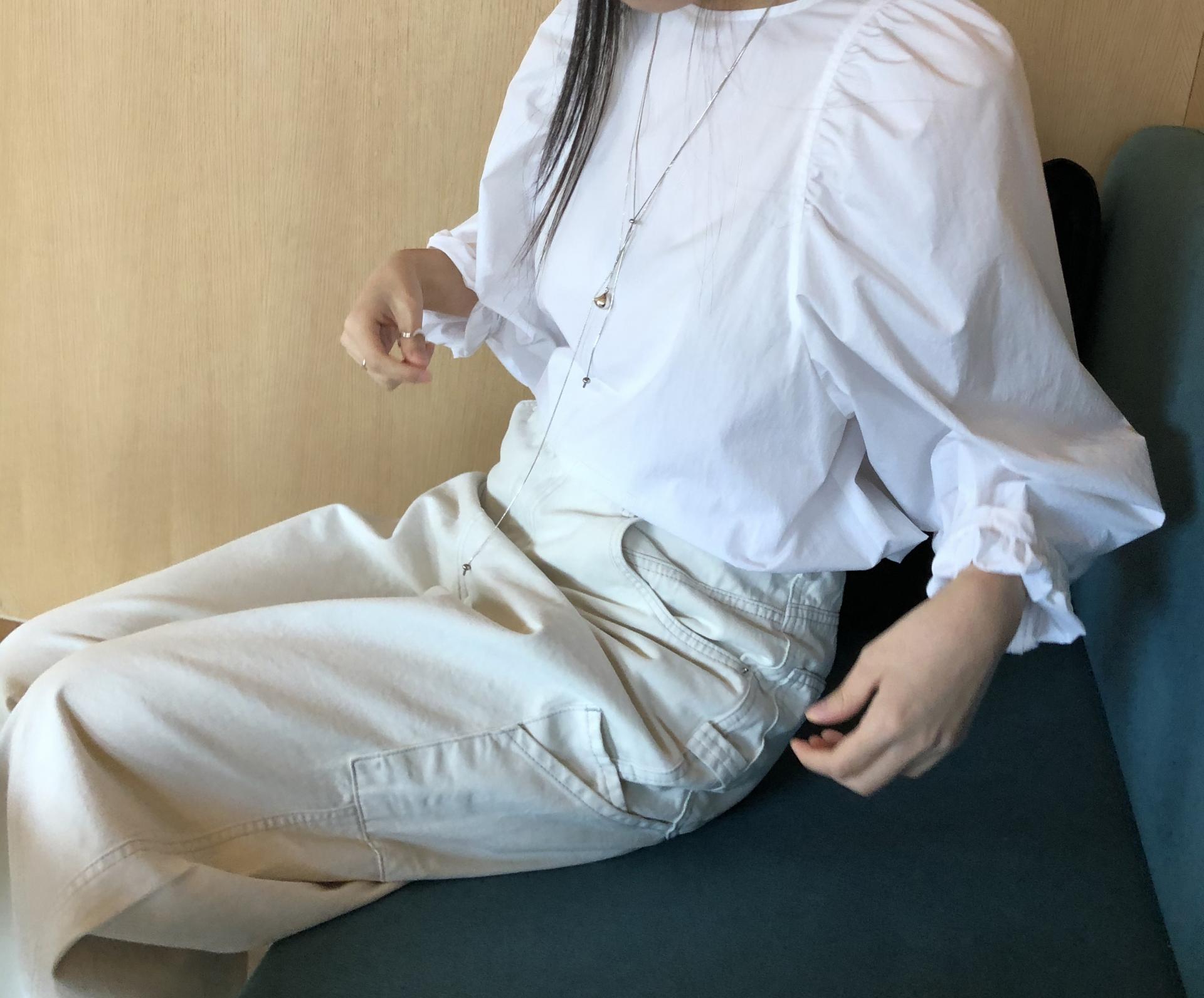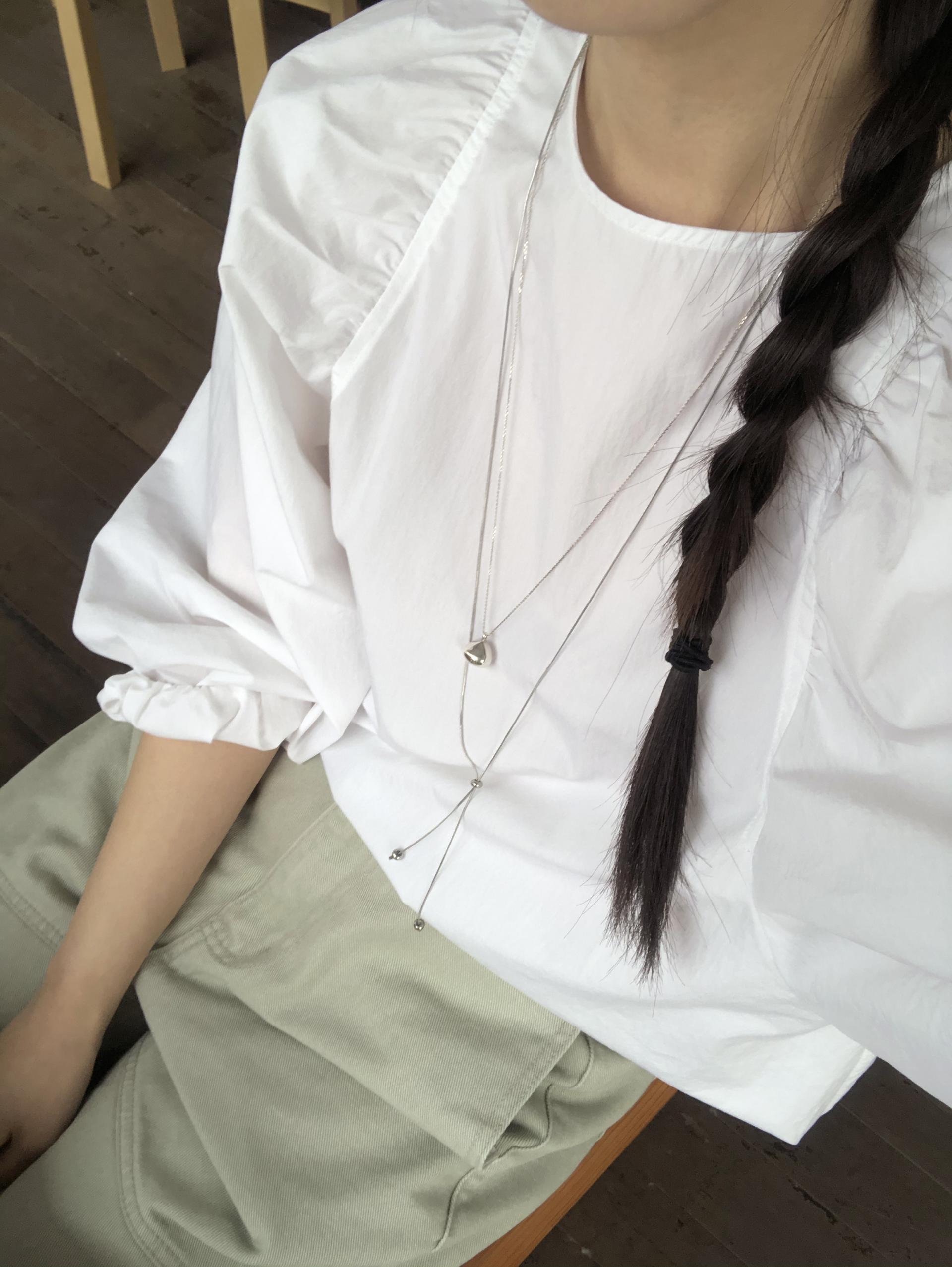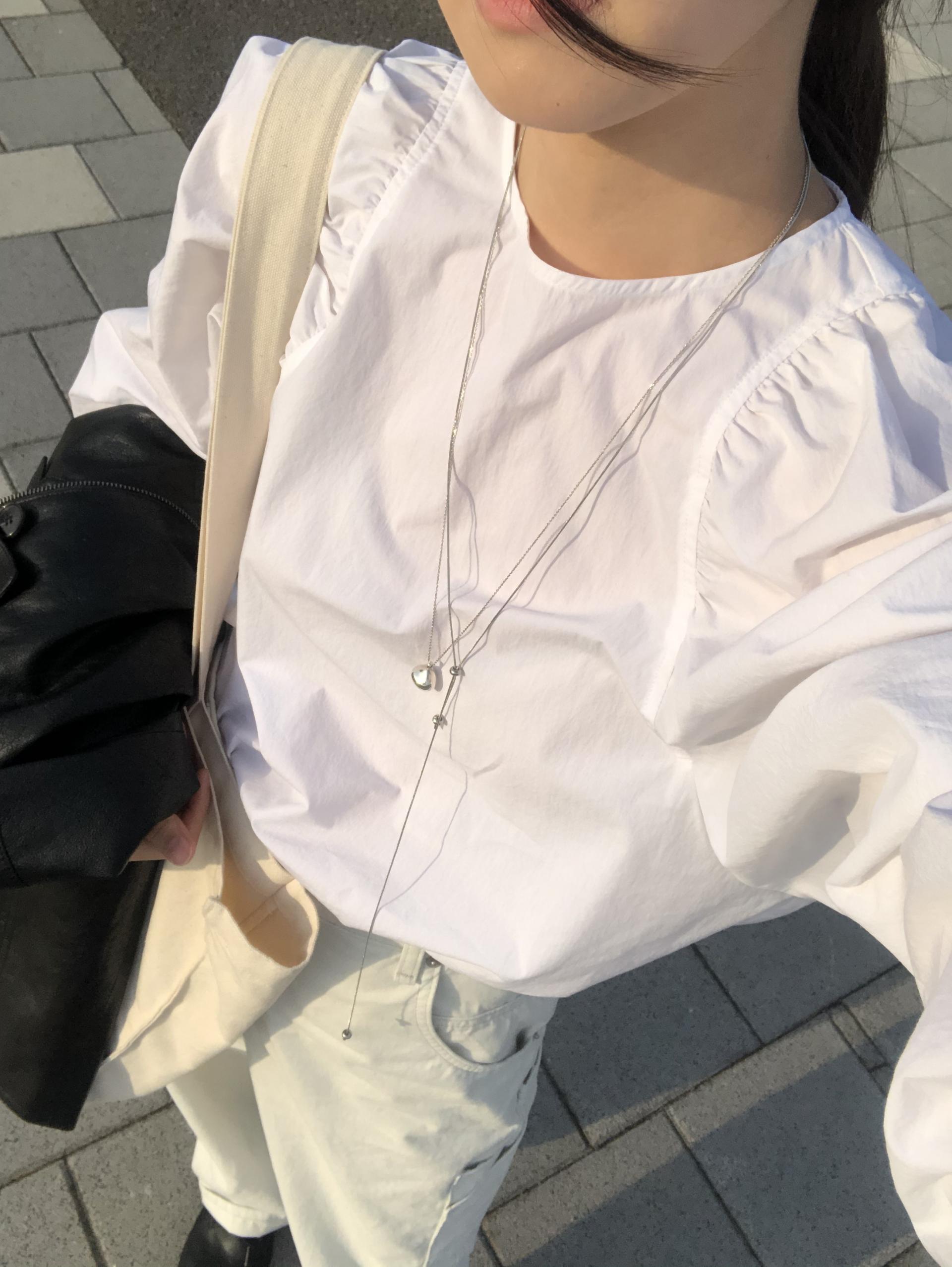 잔잔한 셔링과 봉긋한 퍼프 소매가 눈에 띄는 러브 볼륨 블라우스입니다.