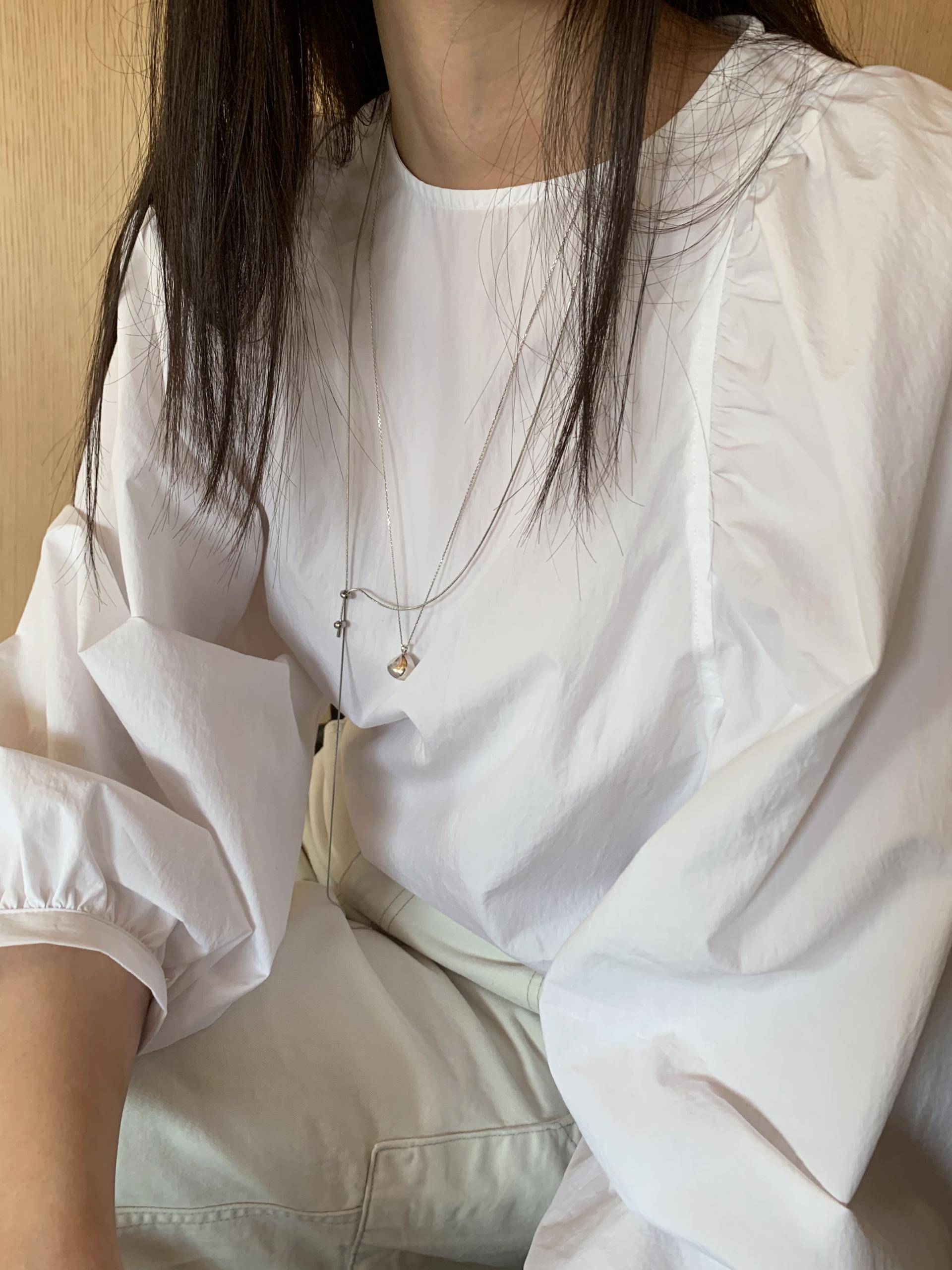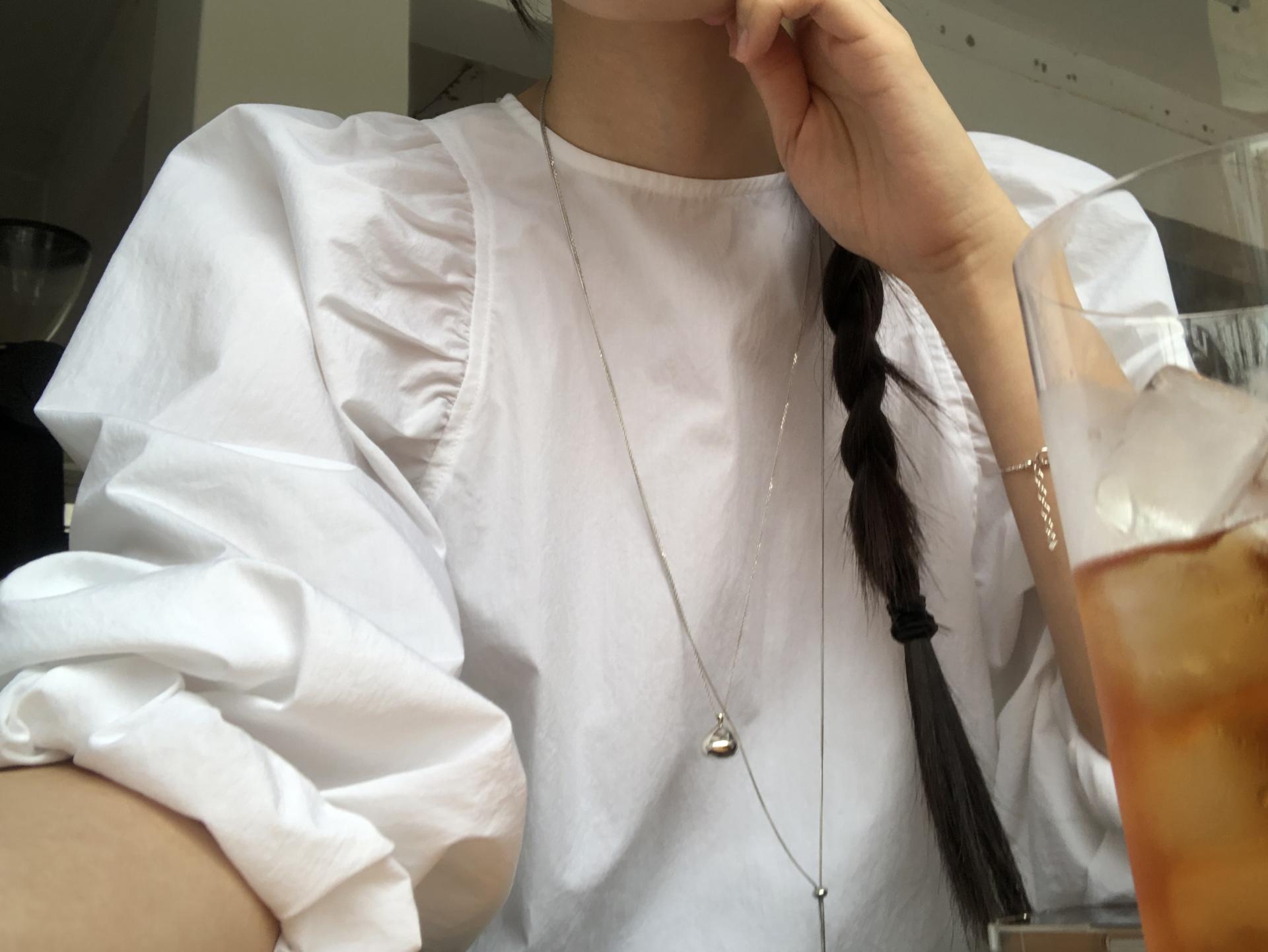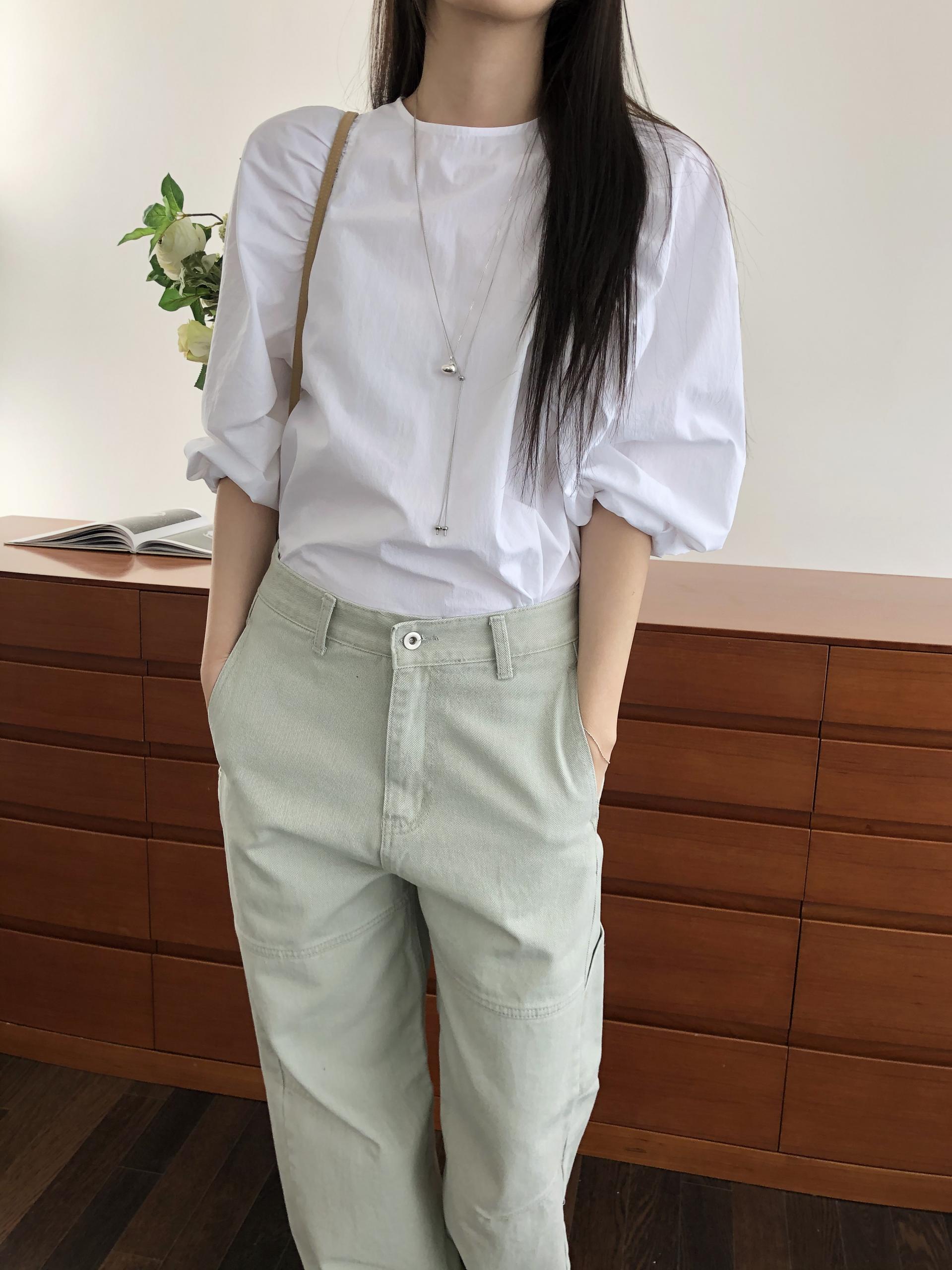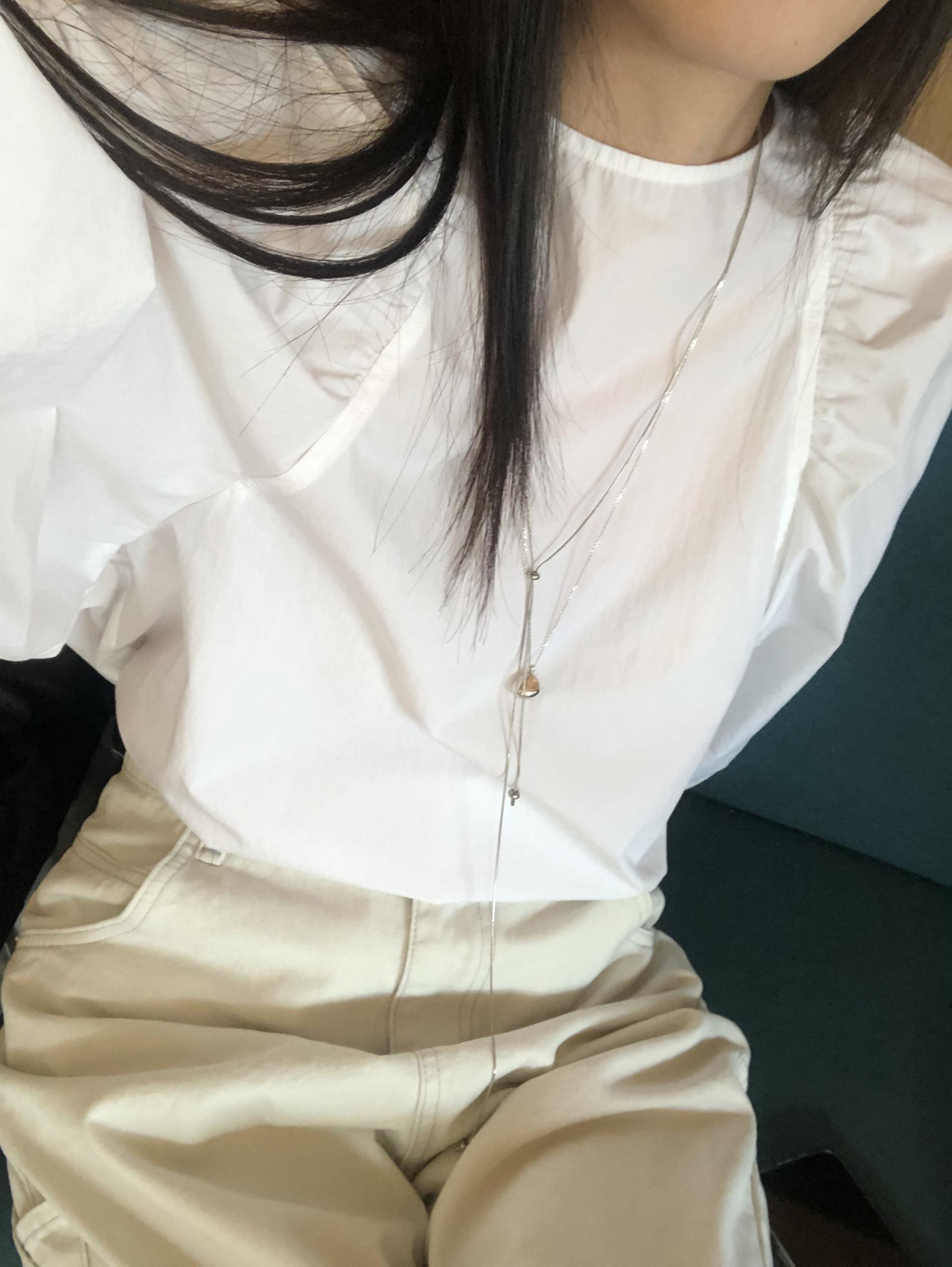 잔잔한 셔링과 봉긋한 퍼프 소매가 눈에 띄는 러브 볼륨 블라우스입니다.