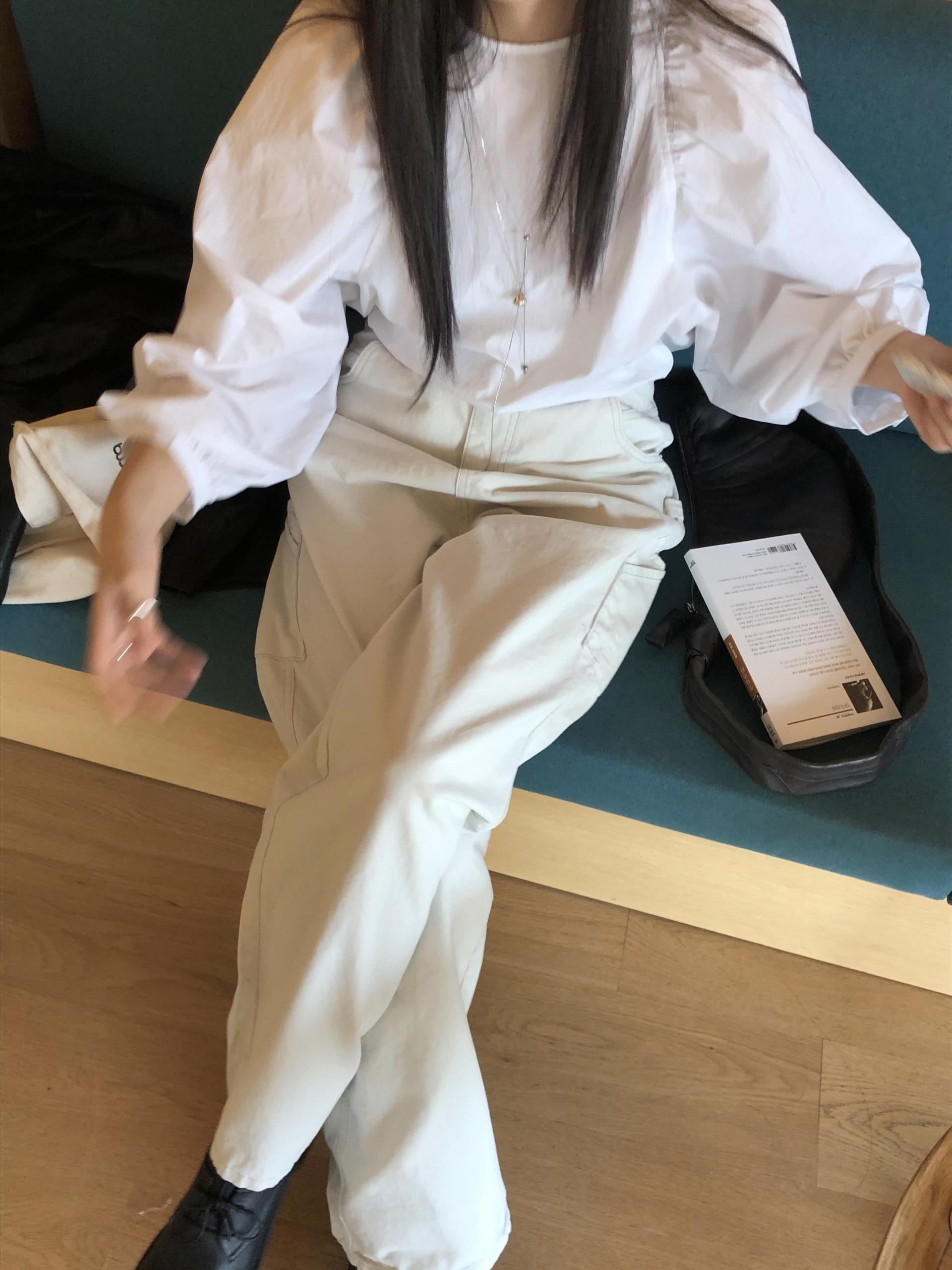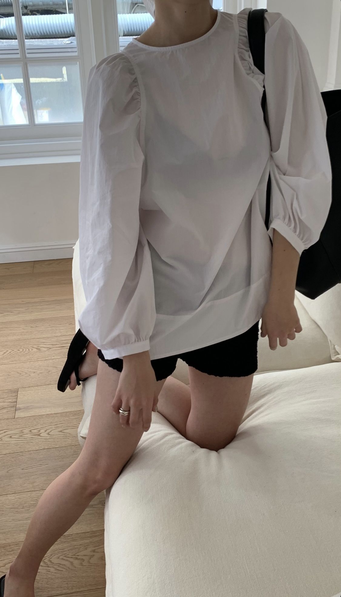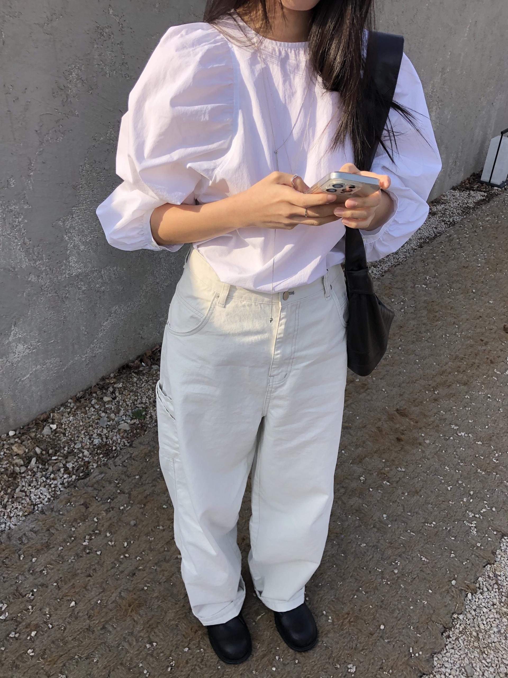 노란기 없는 깨끗한 아이보리는 호불호없이 좋아해주실 거라 생각됩니다.퍼프 소매가 살짝 부담스러우신 분들께는 블랙을 추천드릴게요. 확실히 좀 더 정돈된 느낌을 주어 어렵지 않게 코디가 가능합니다.