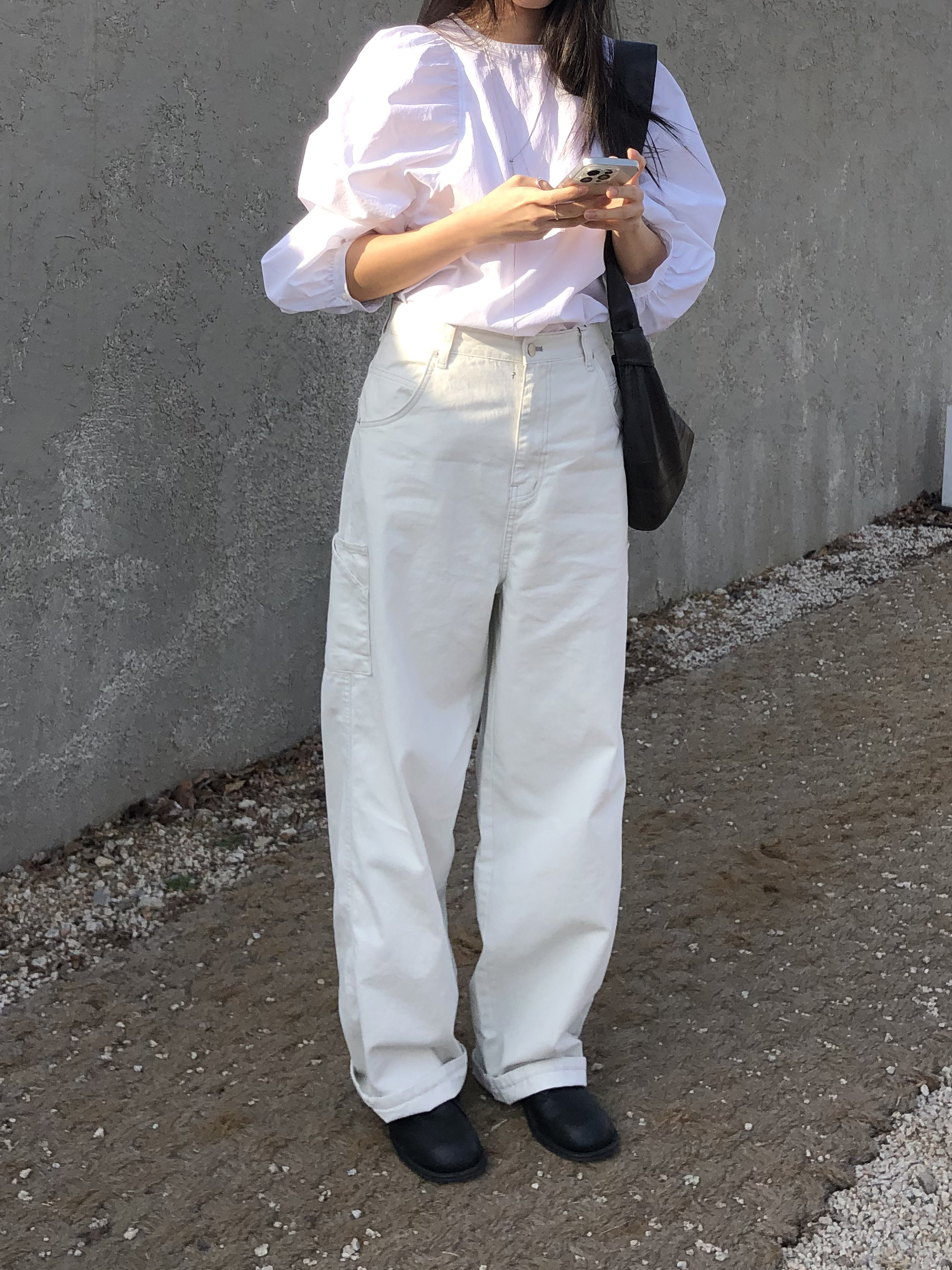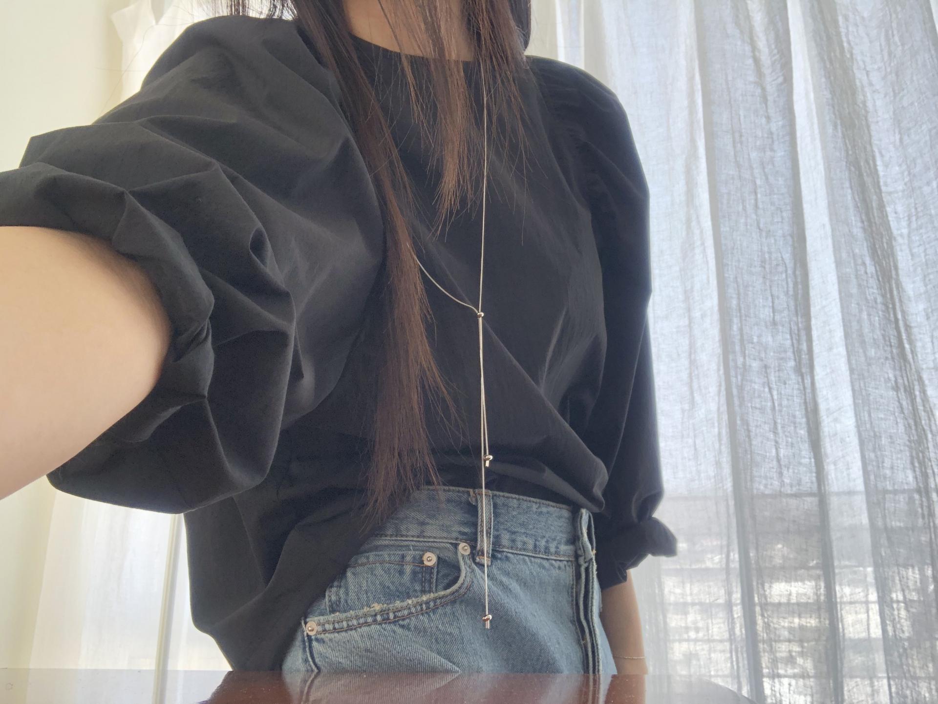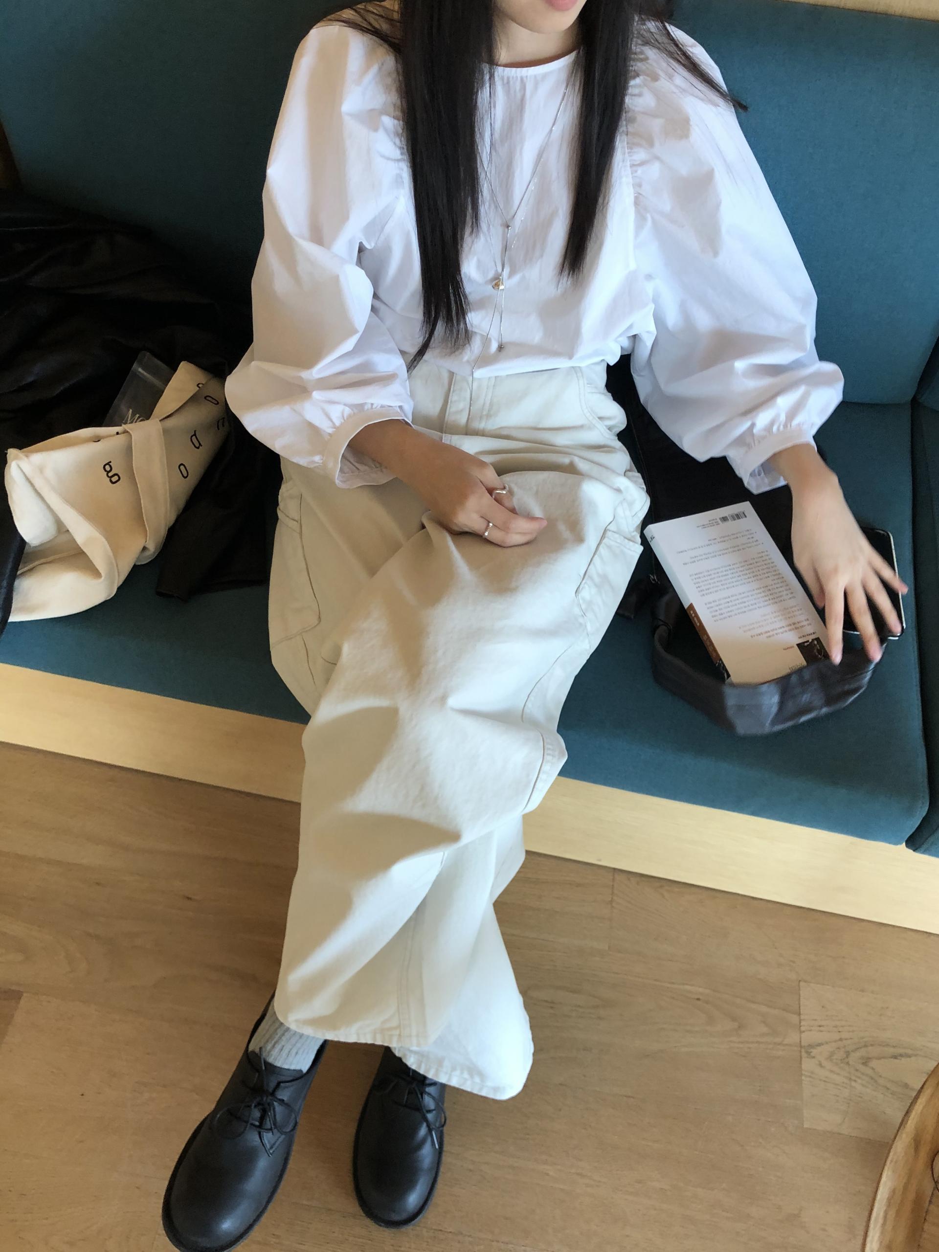 노란기 없는 깨끗한 아이보리는 호불호없이 좋아해주실 거라 생각됩니다.퍼프 소매가 살짝 부담스러우신 분들께는 블랙을 추천드릴게요. 확실히 좀 더 정돈된 느낌을 주어 어렵지 않게 코디가 가능합니다.