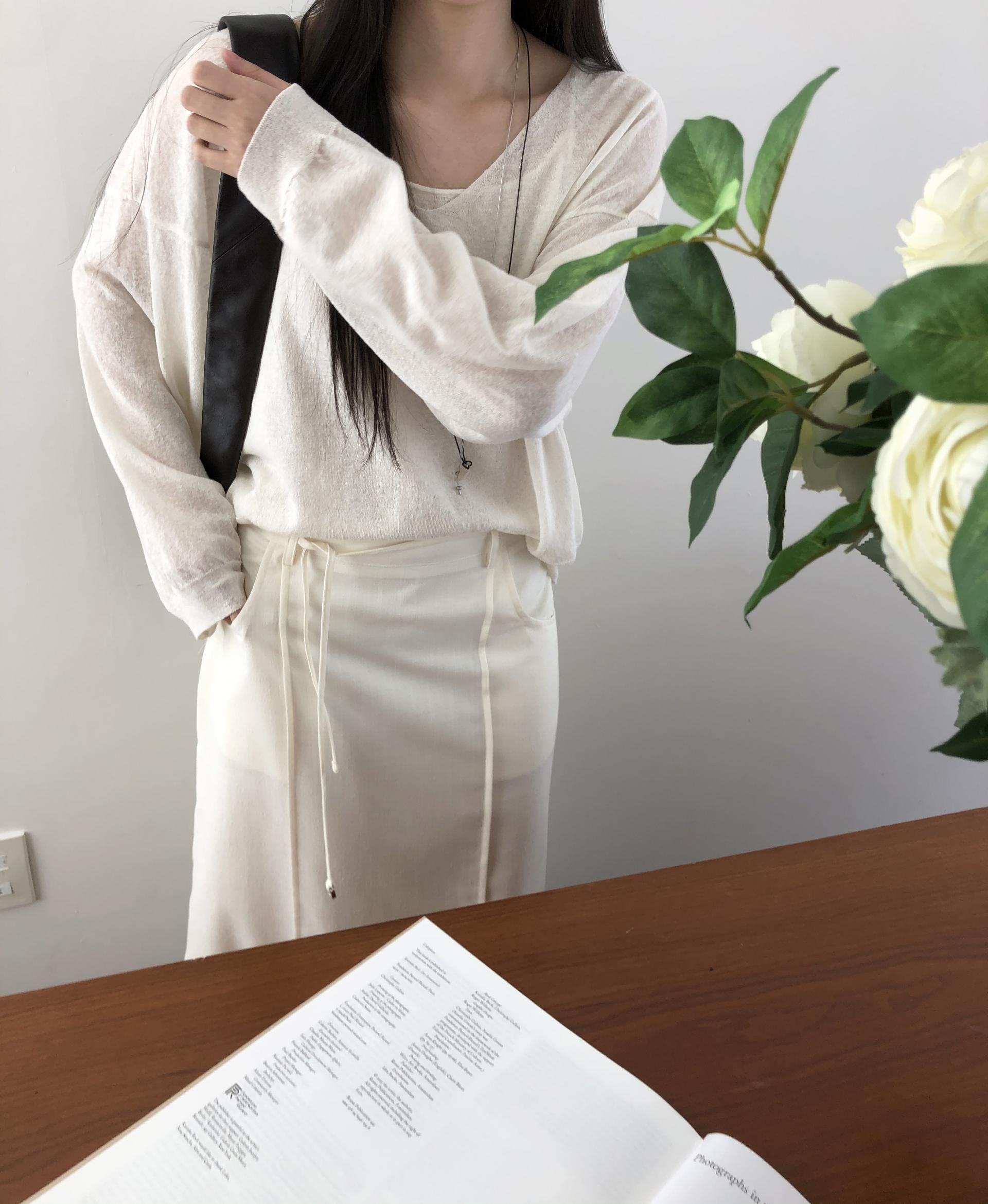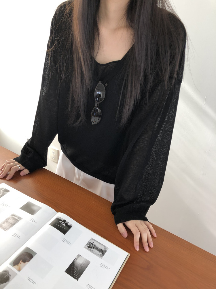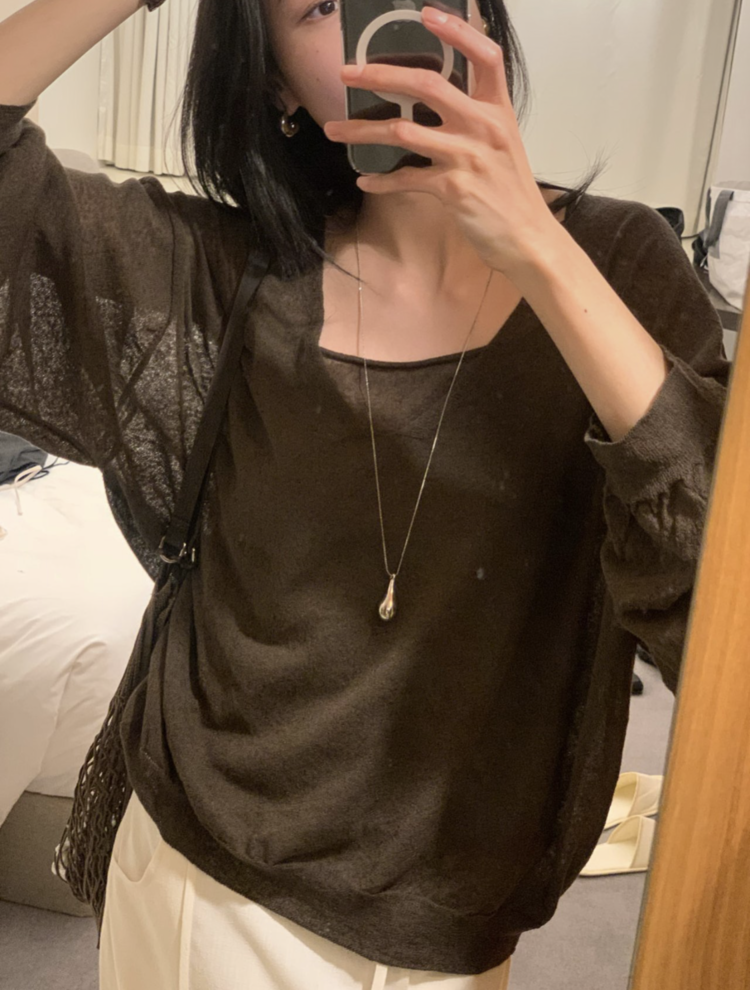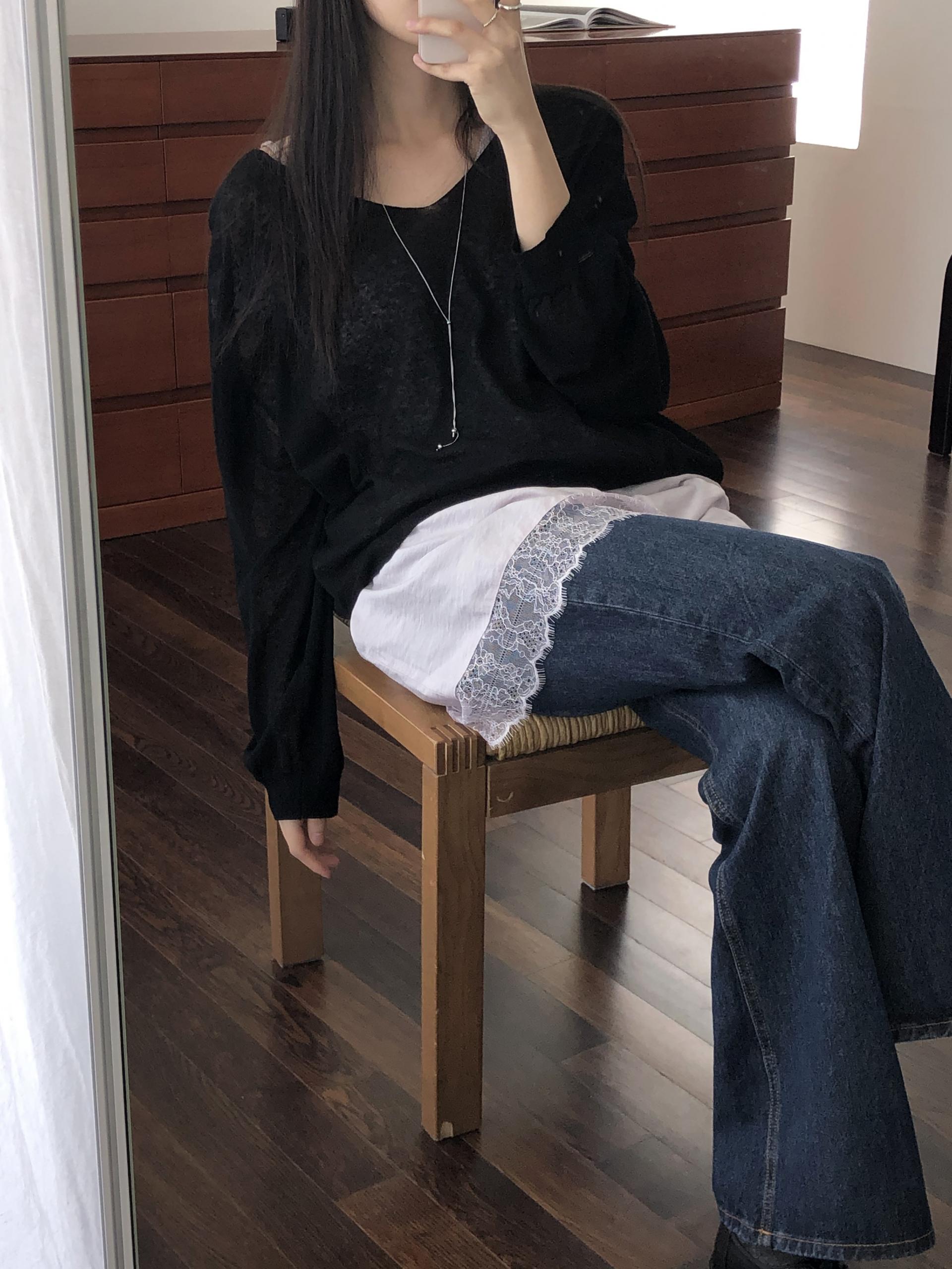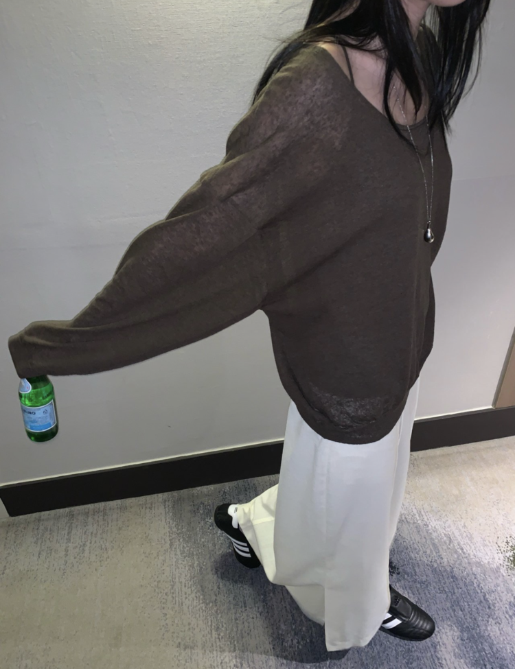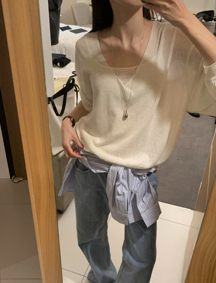 니트 / 어깨 63 가슴 61 암홀 27 소매기장 48 소매단면 10 밑단 40.5 총장 57