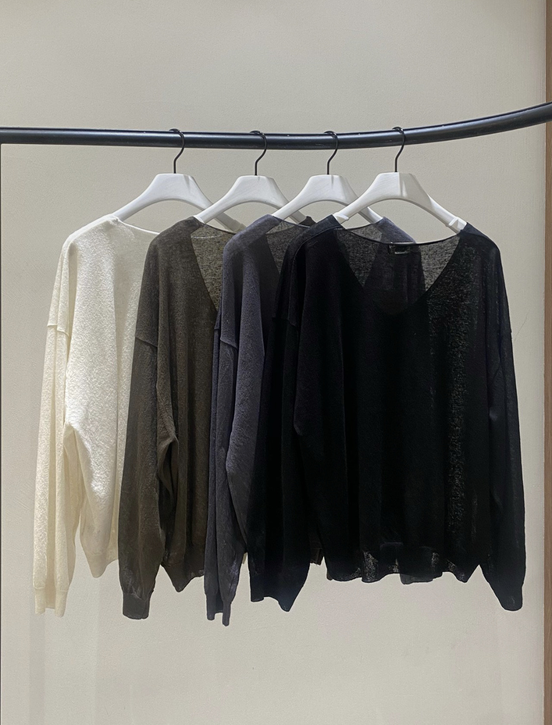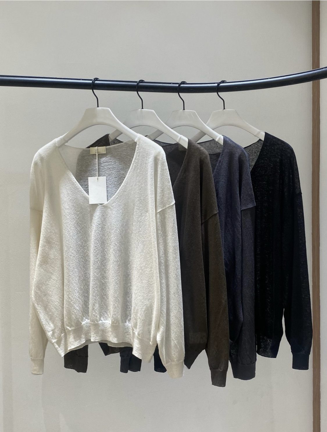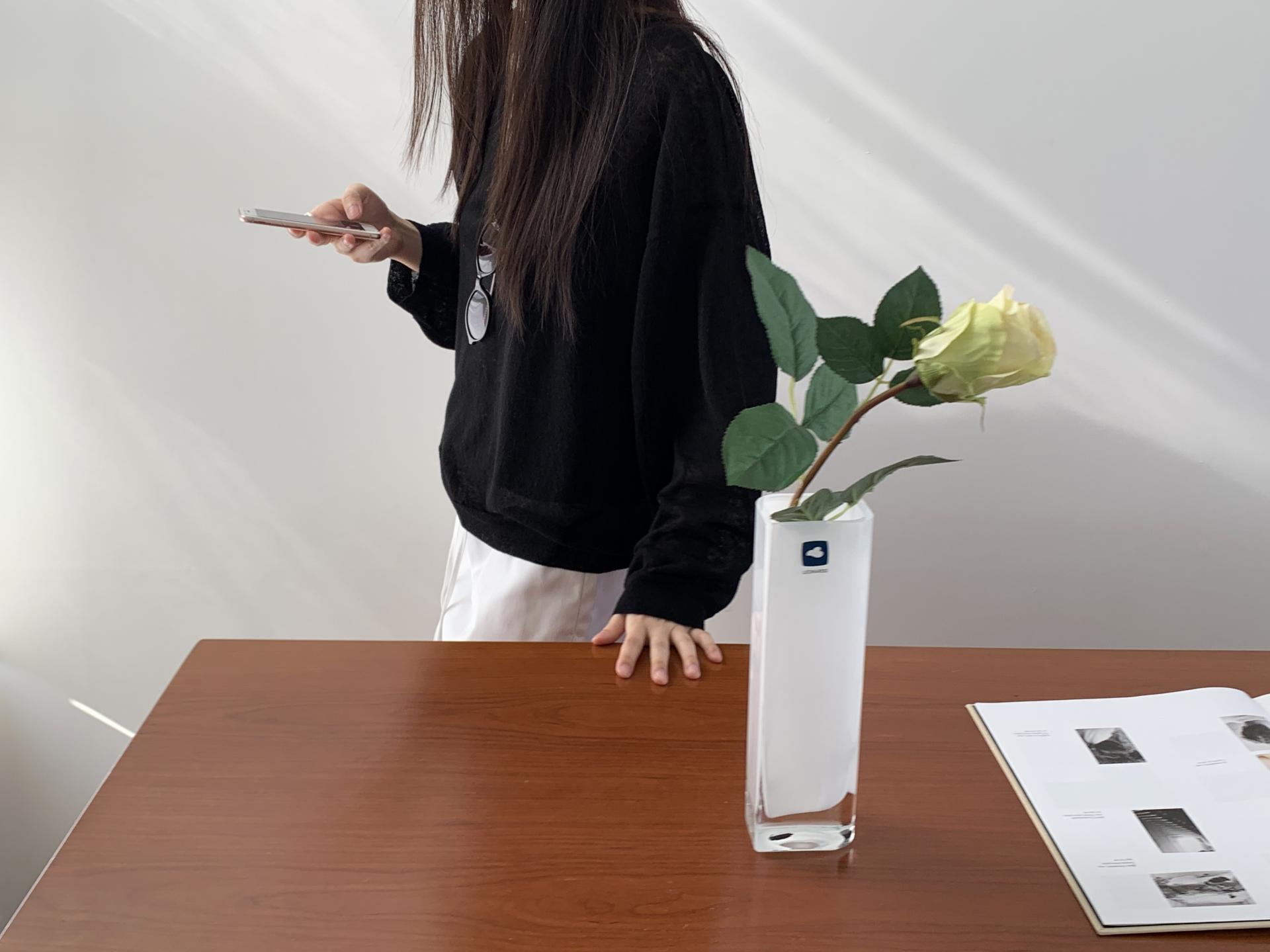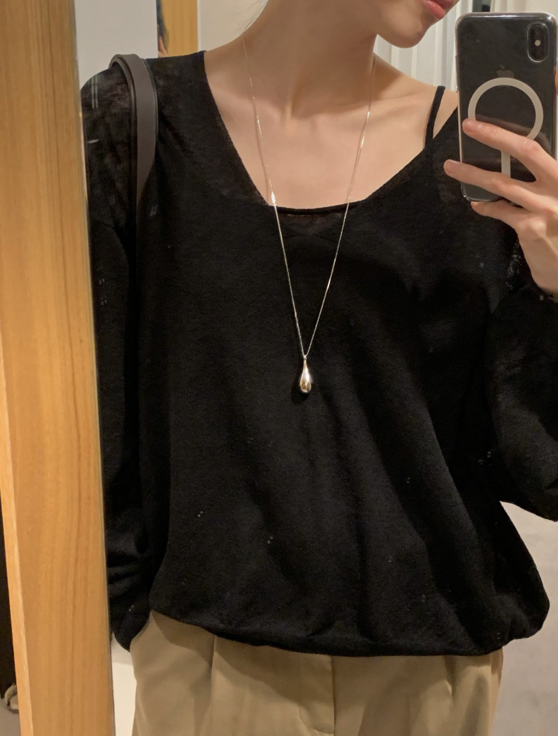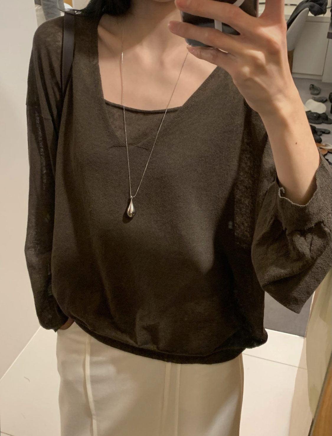 니트 / 어깨 63 가슴 61 암홀 27 소매기장 48 소매단면 10 밑단 40.5 총장 57