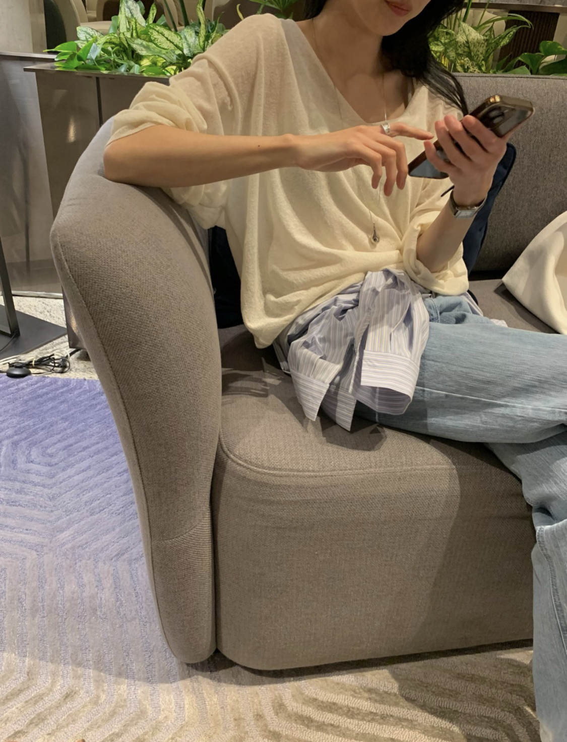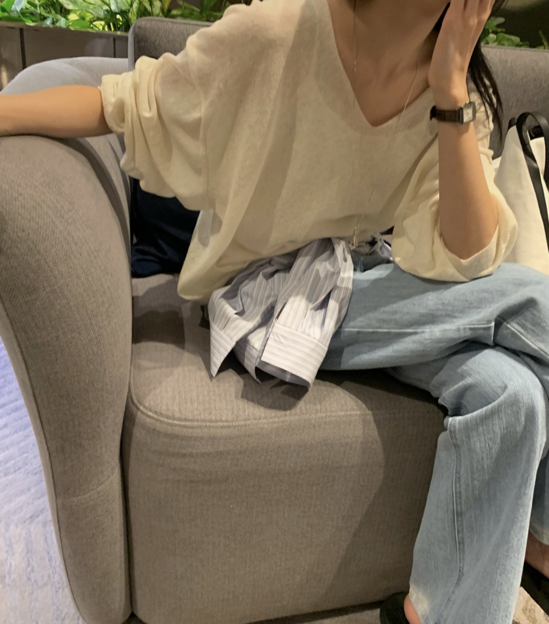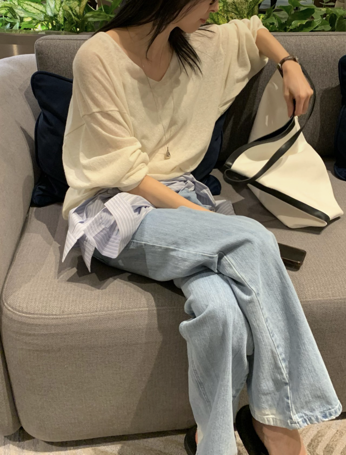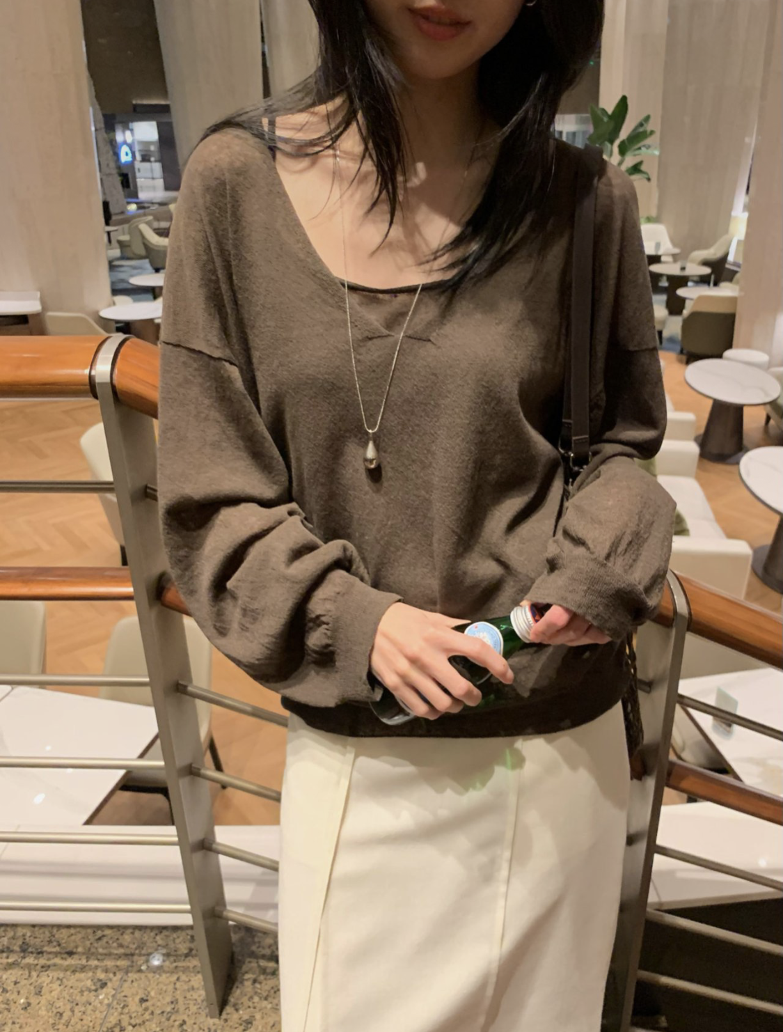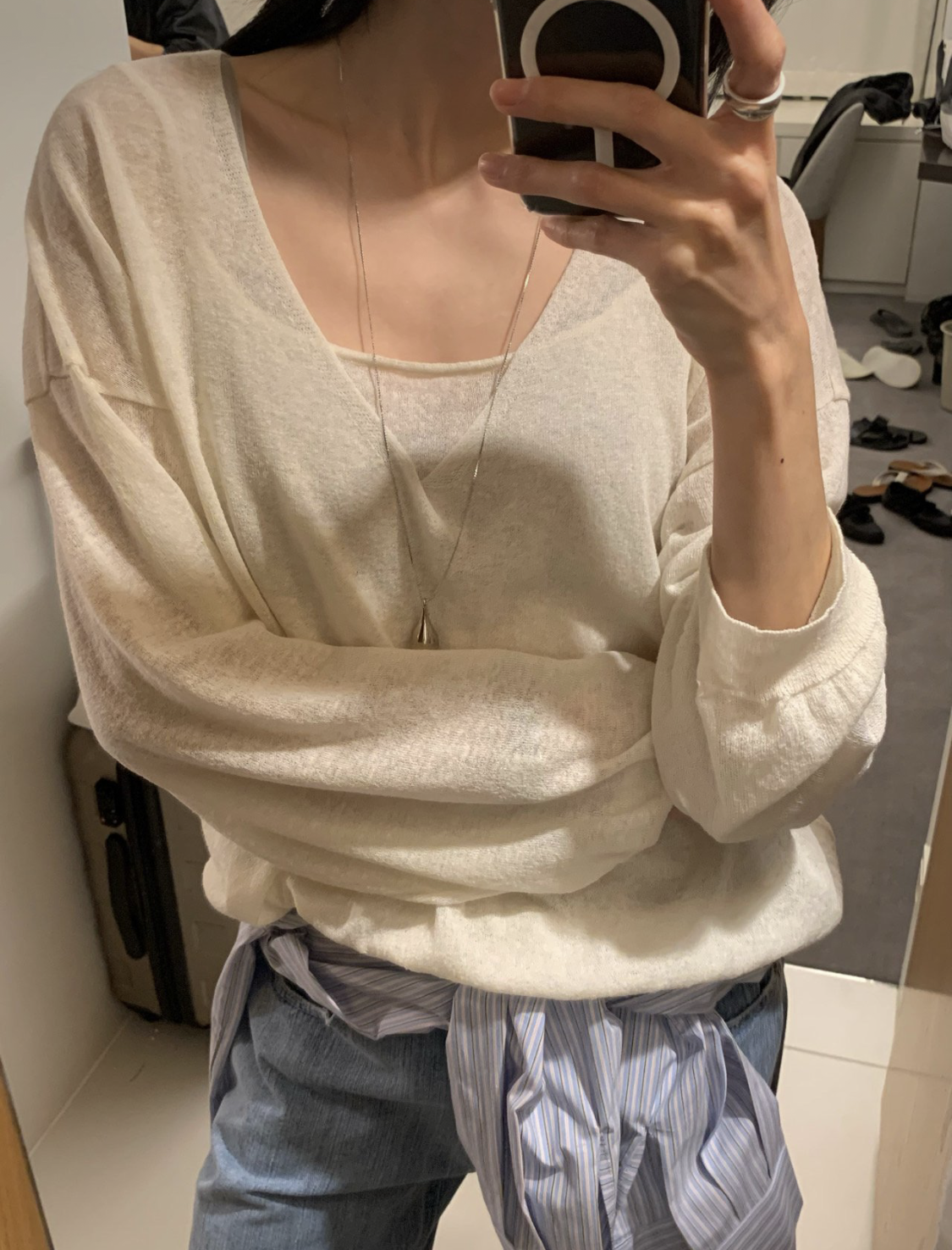 니트 / 어깨 63 가슴 61 암홀 27 소매기장 48 소매단면 10 밑단 40.5 총장 57