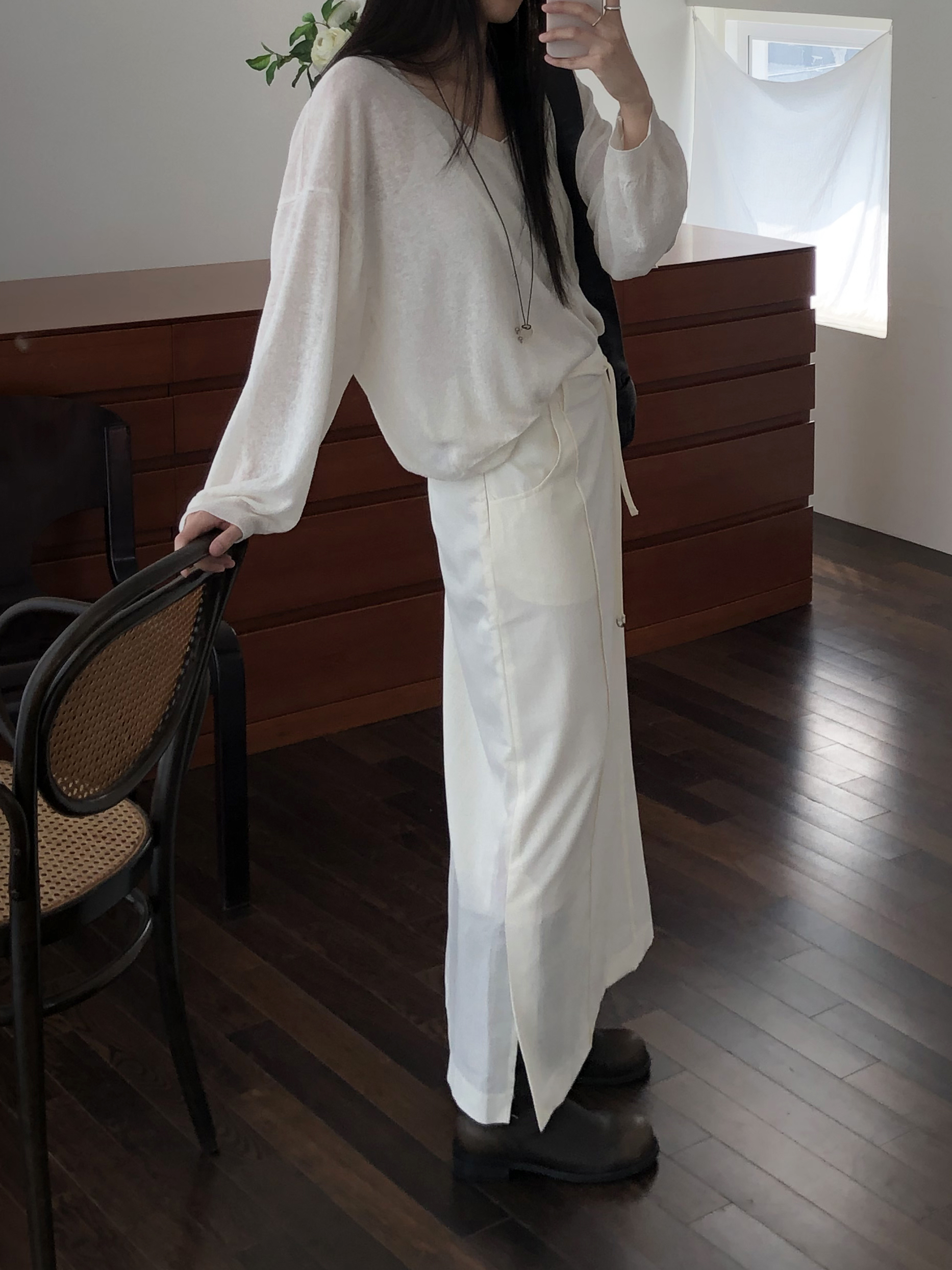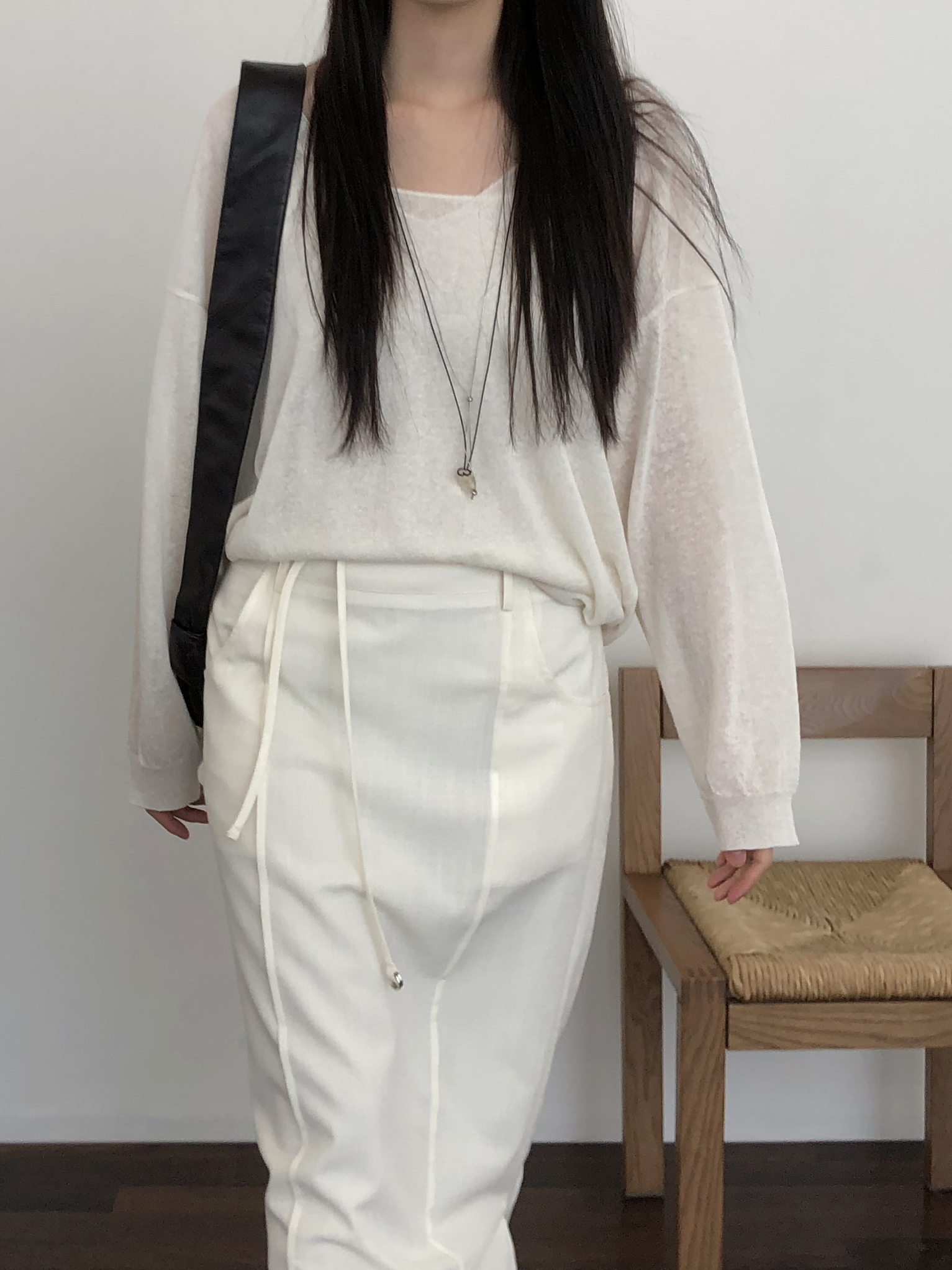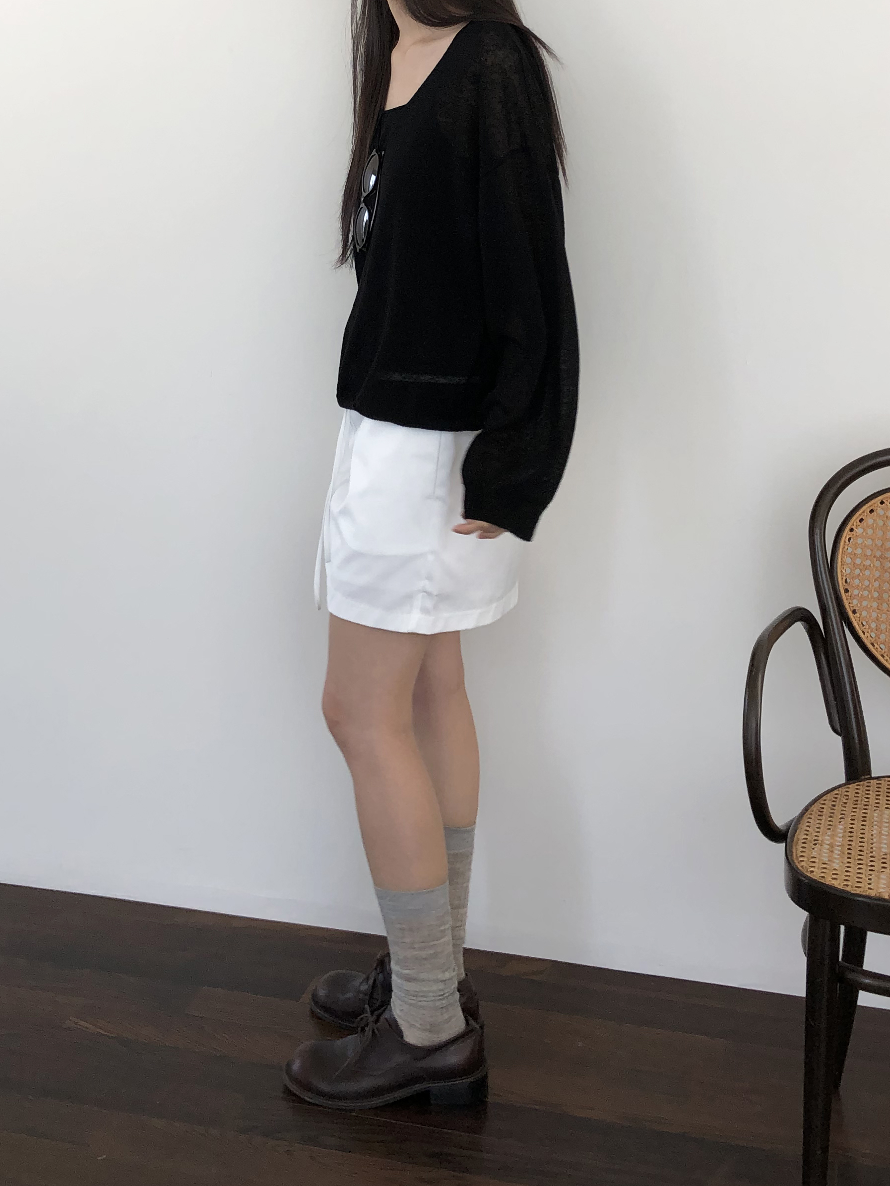 - 레깅스, 니트, 얇은 원단의 티 등 한번의 착용으로도 늘어남이 생기는 의류는 교환 및 반품이 불가합니다.