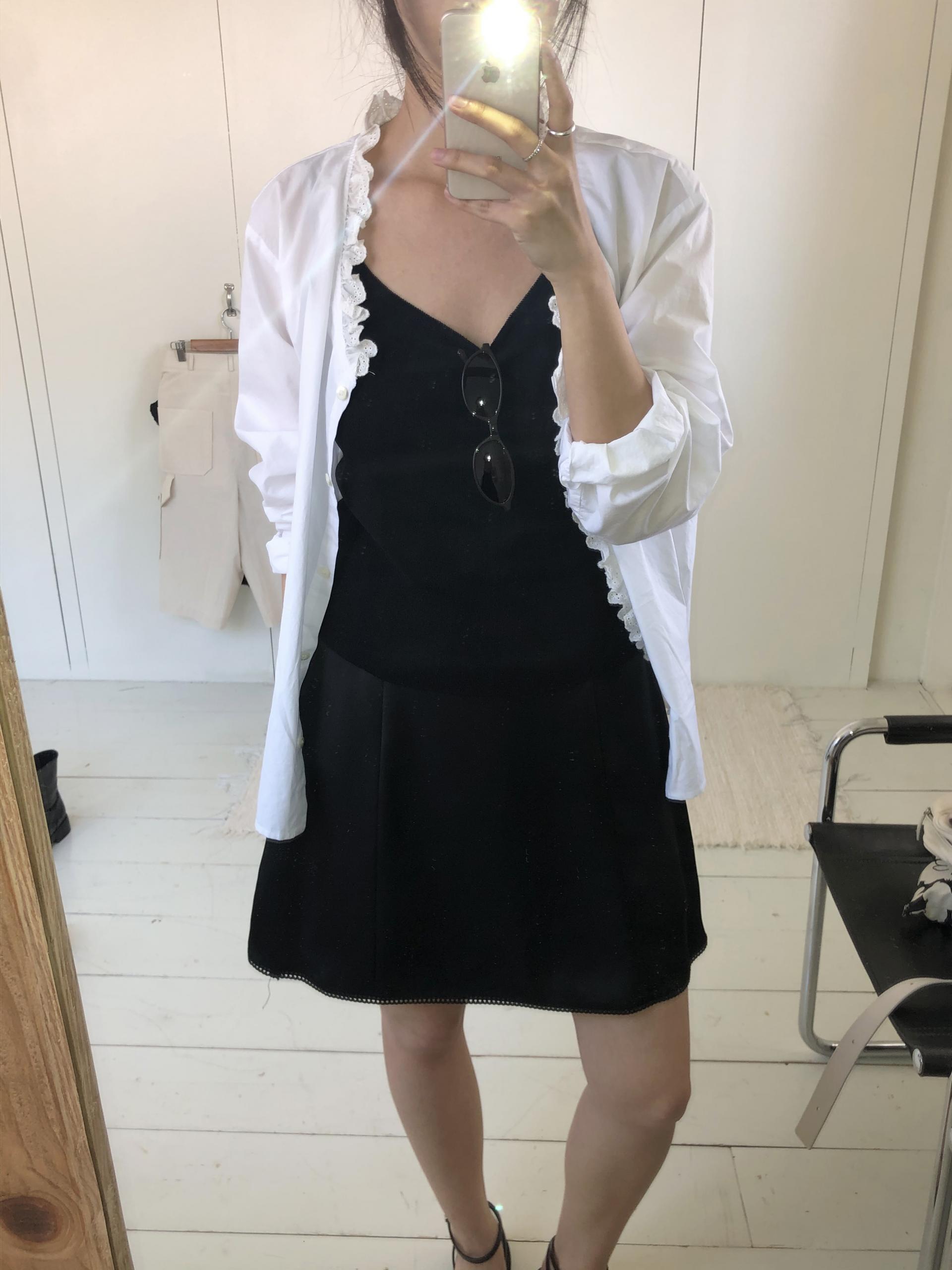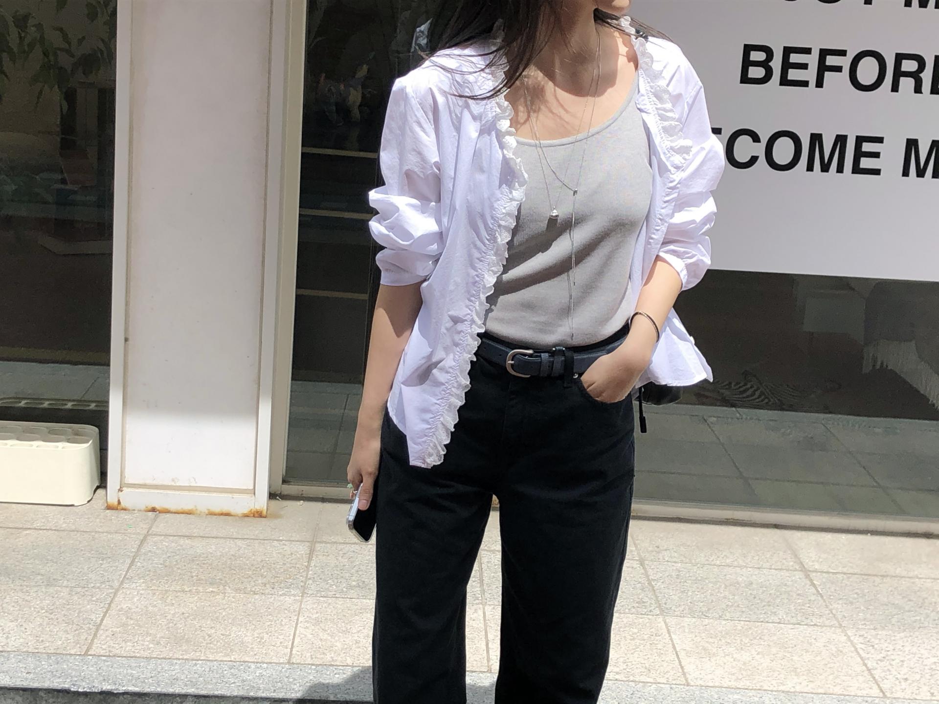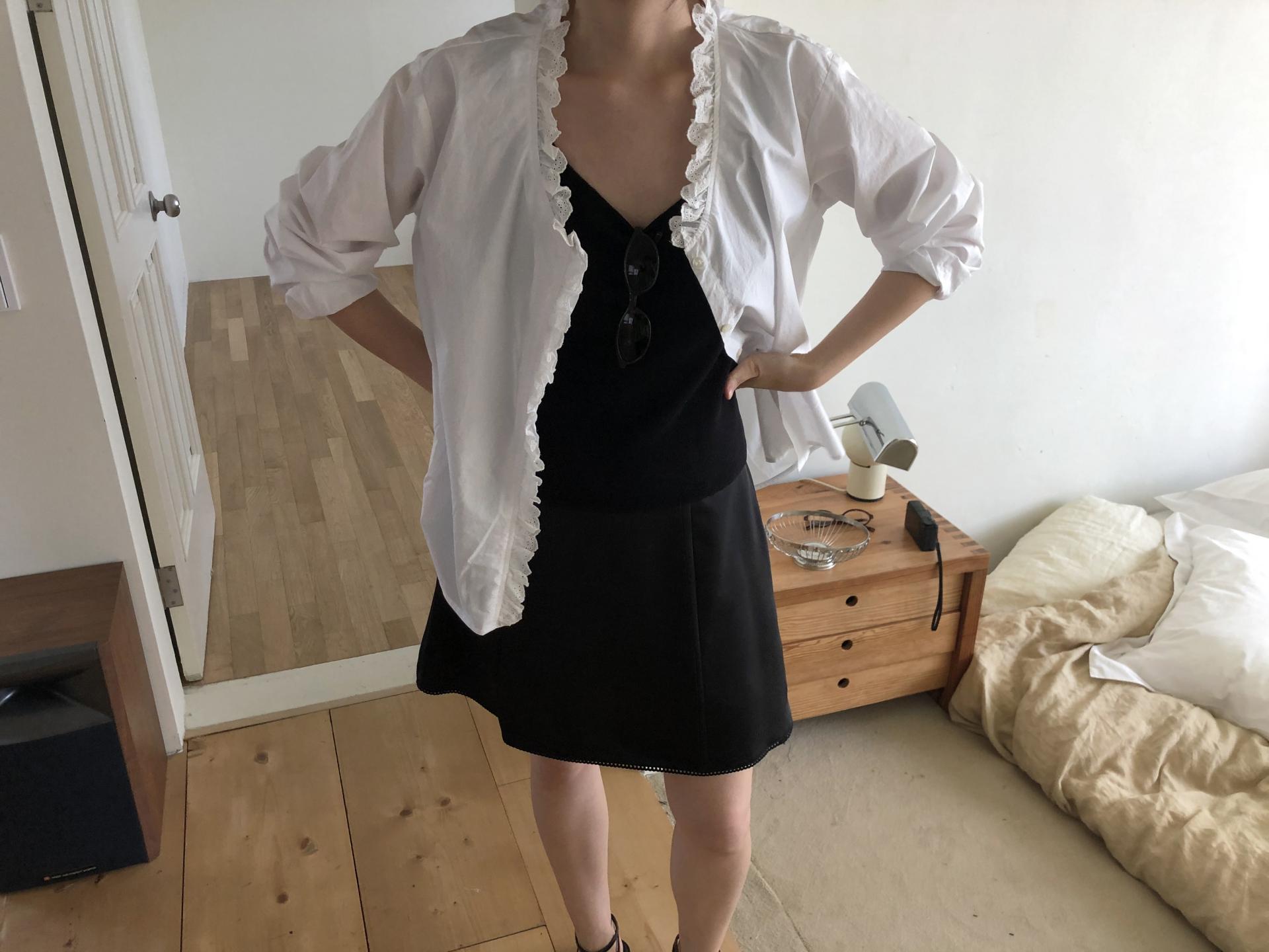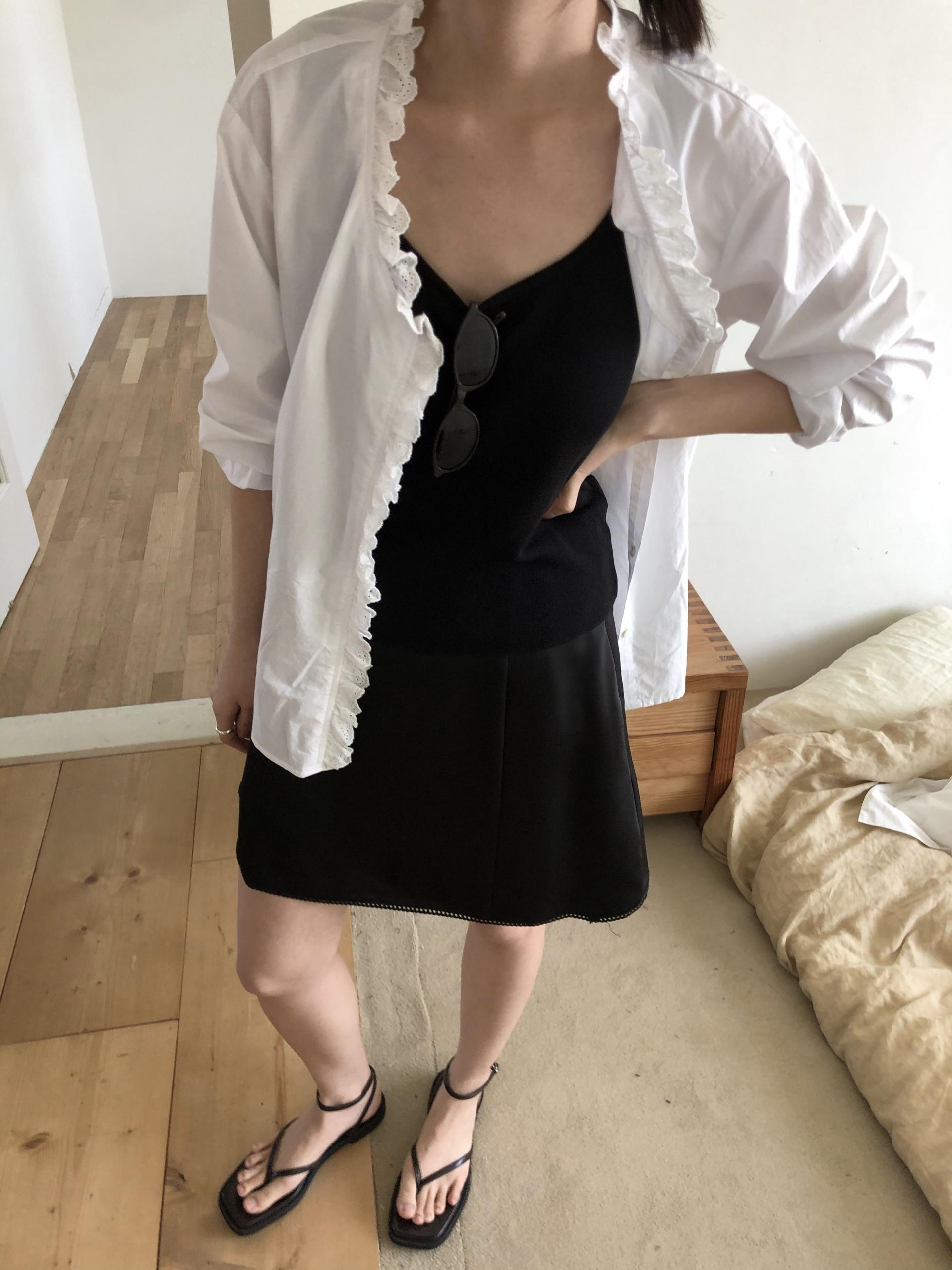 어깨 34.5 가슴 37.5 암홀 22 밑단 37 총장 54.7