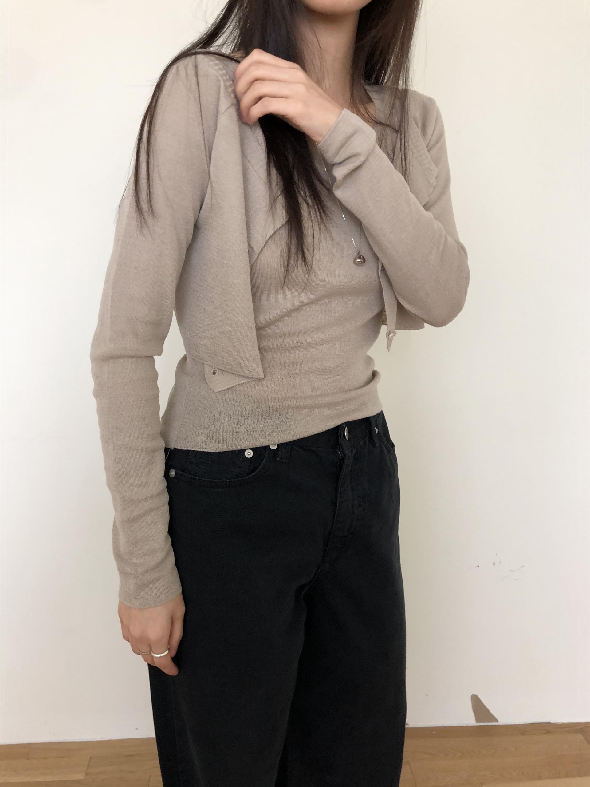 가디건 / 어깨 레글런 가슴 43 소매기장 58 소매단면 8.5 밑단 40 총장 37.5