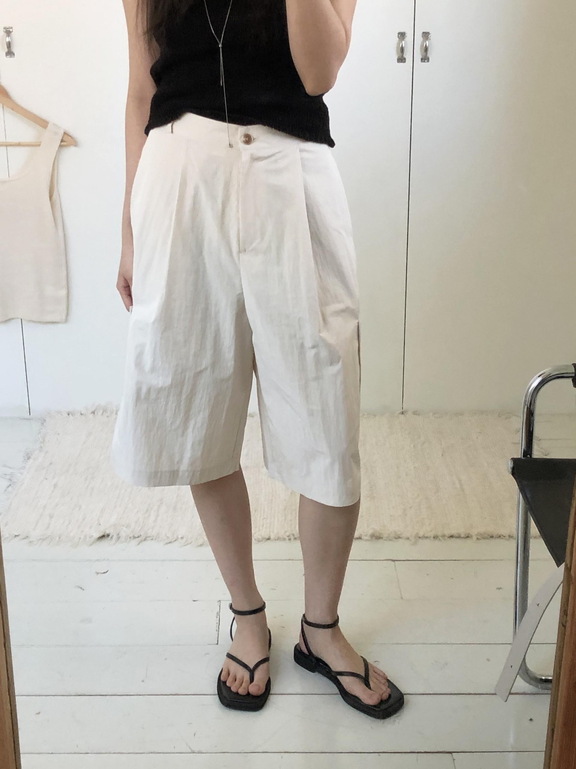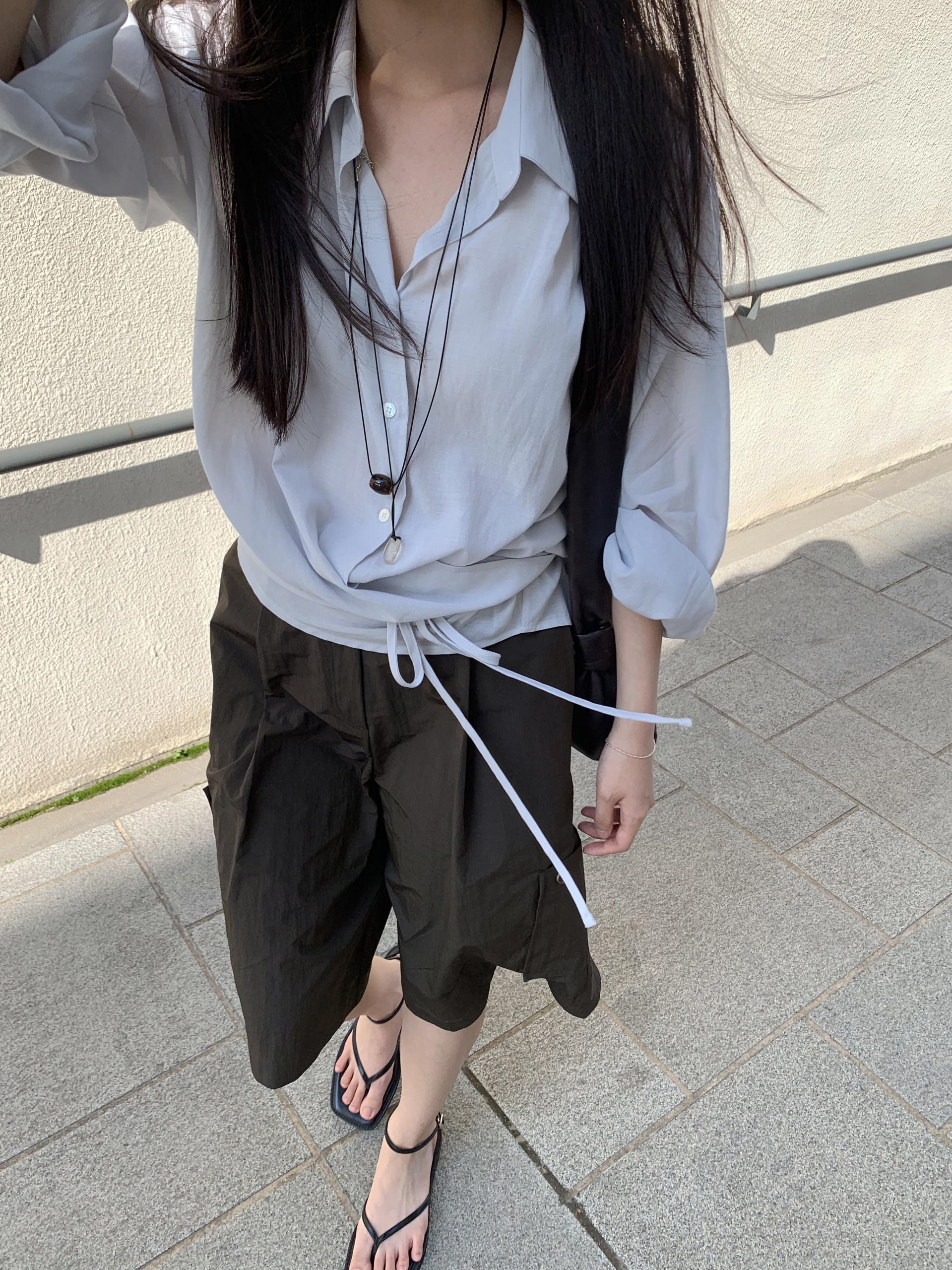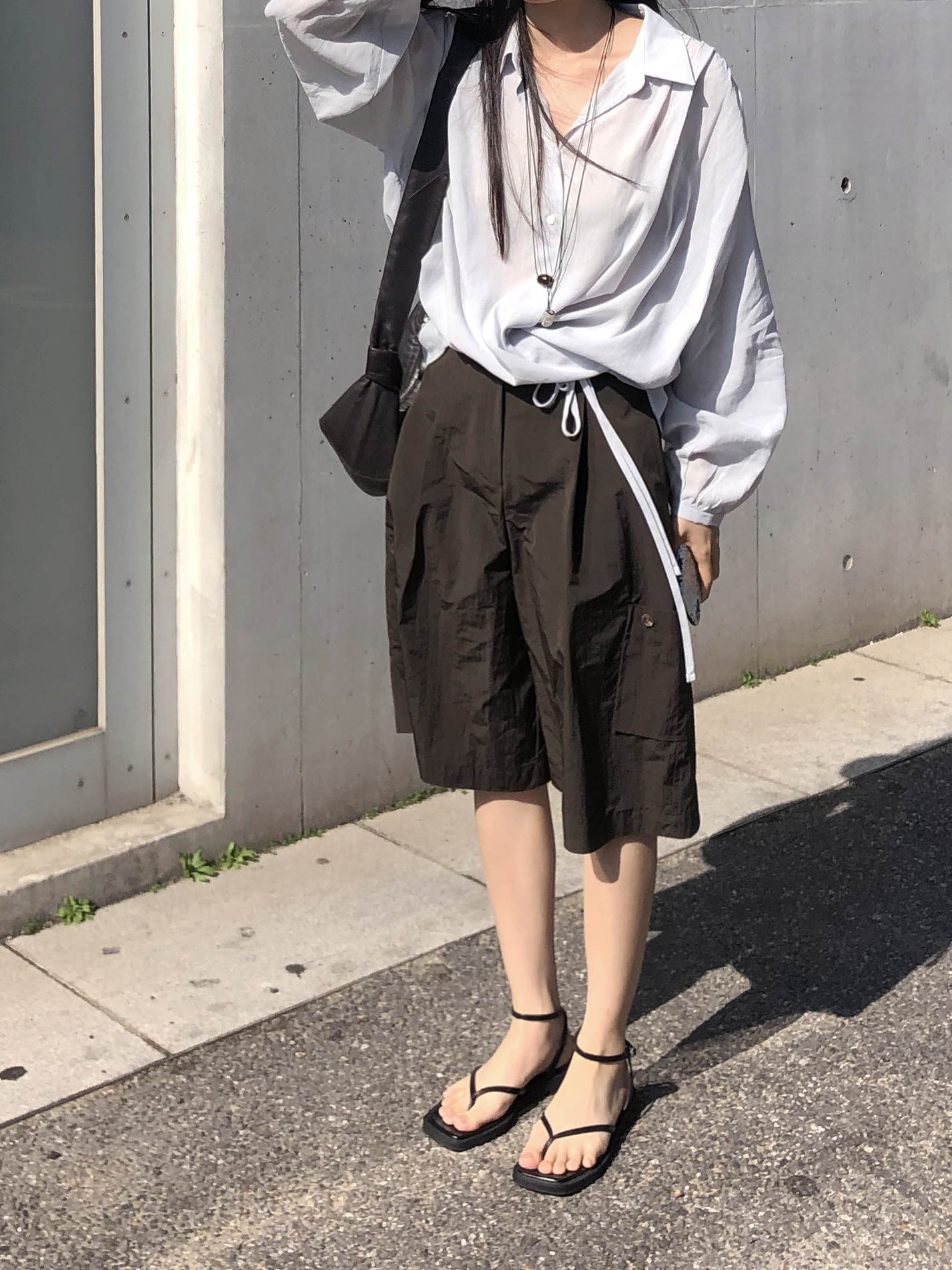 허리 라인은 깔끔하게 잡아주고, 밑단은 자연스럽게 와이드 실루엣으로 퍼져서 종아리가 슬림해 보이는 장점이 있어요. 봄과 여름 시즌에 시원하고 가볍게 입을 수 있는 아이템으로, 편안하면서도 스타일리시하게 즐길 수 있어요.