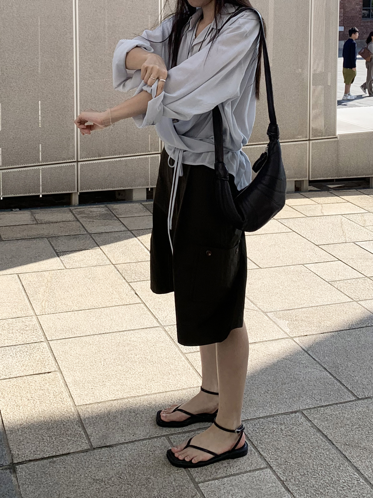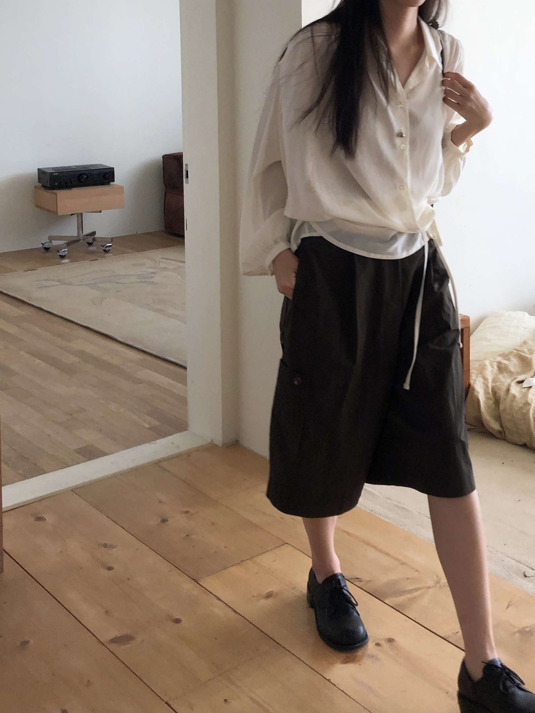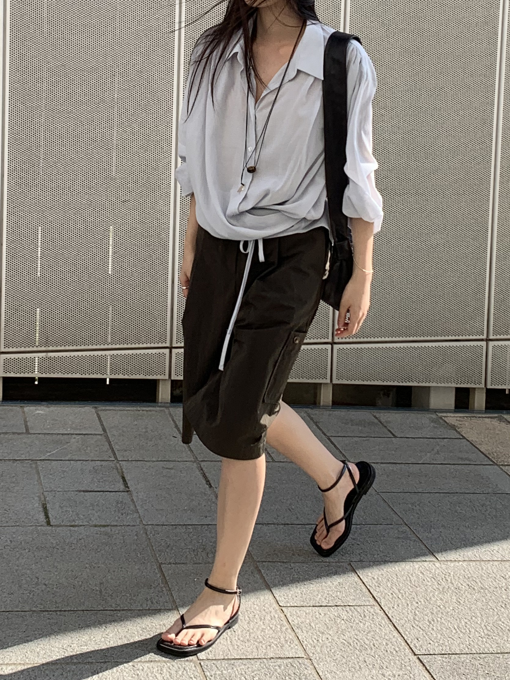 허리 라인은 깔끔하게 잡아주고, 밑단은 자연스럽게 와이드 실루엣으로 퍼져서 종아리가 슬림해 보이는 장점이 있어요. 봄과 여름 시즌에 시원하고 가볍게 입을 수 있는 아이템으로, 편안하면서도 스타일리시하게 즐길 수 있어요.