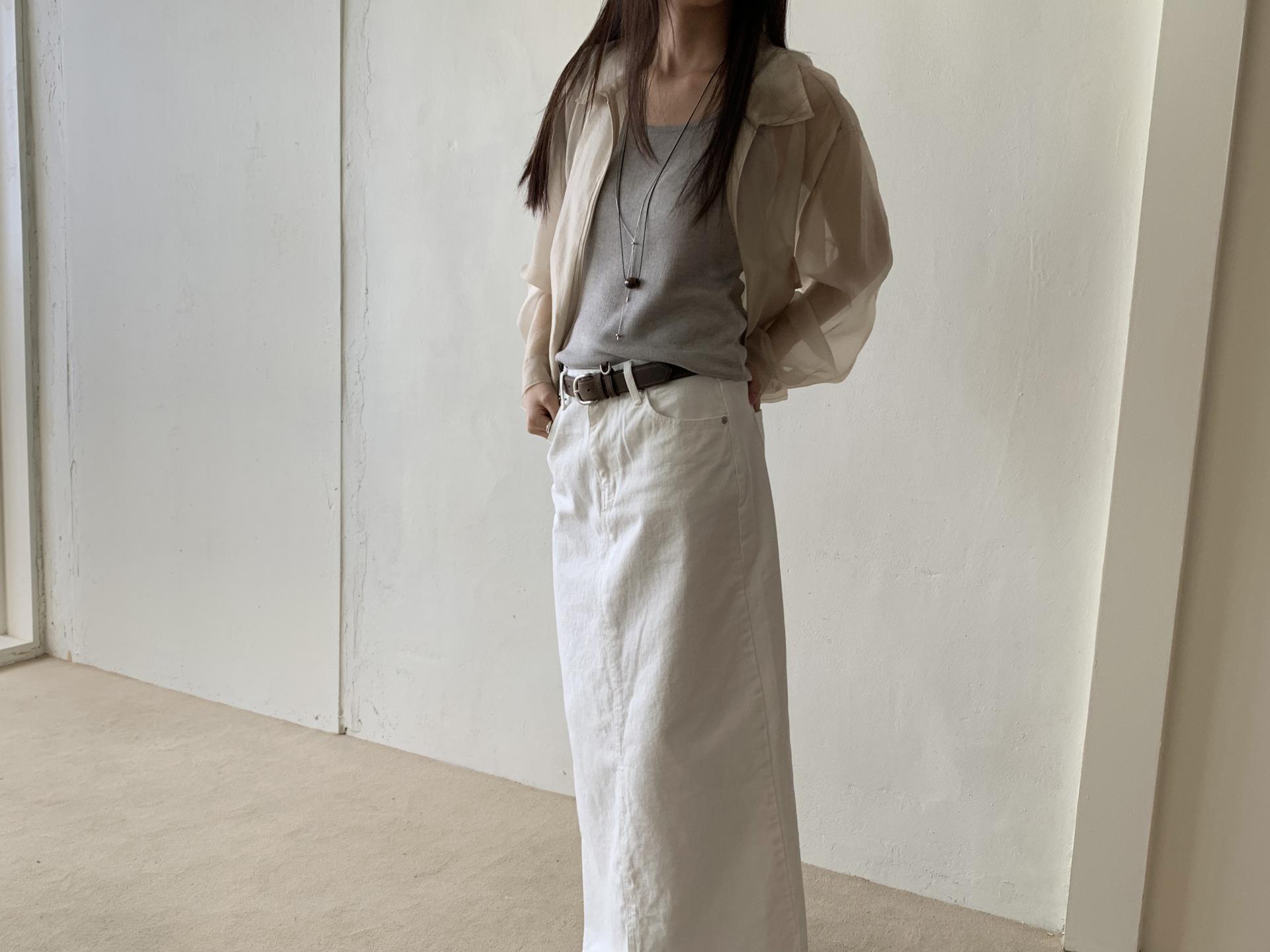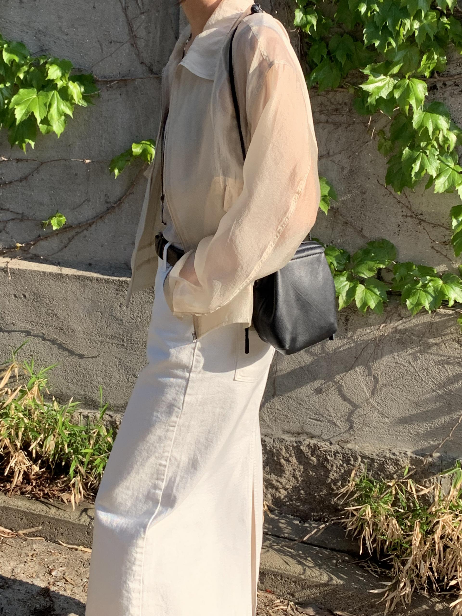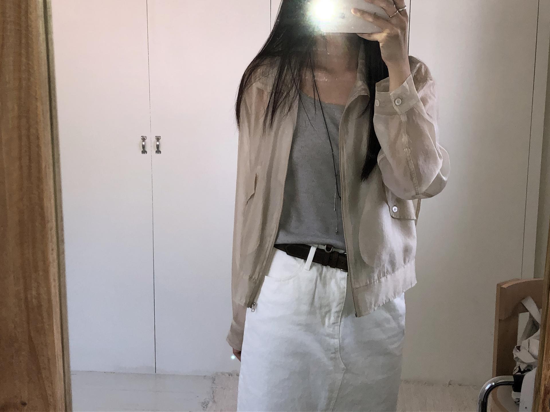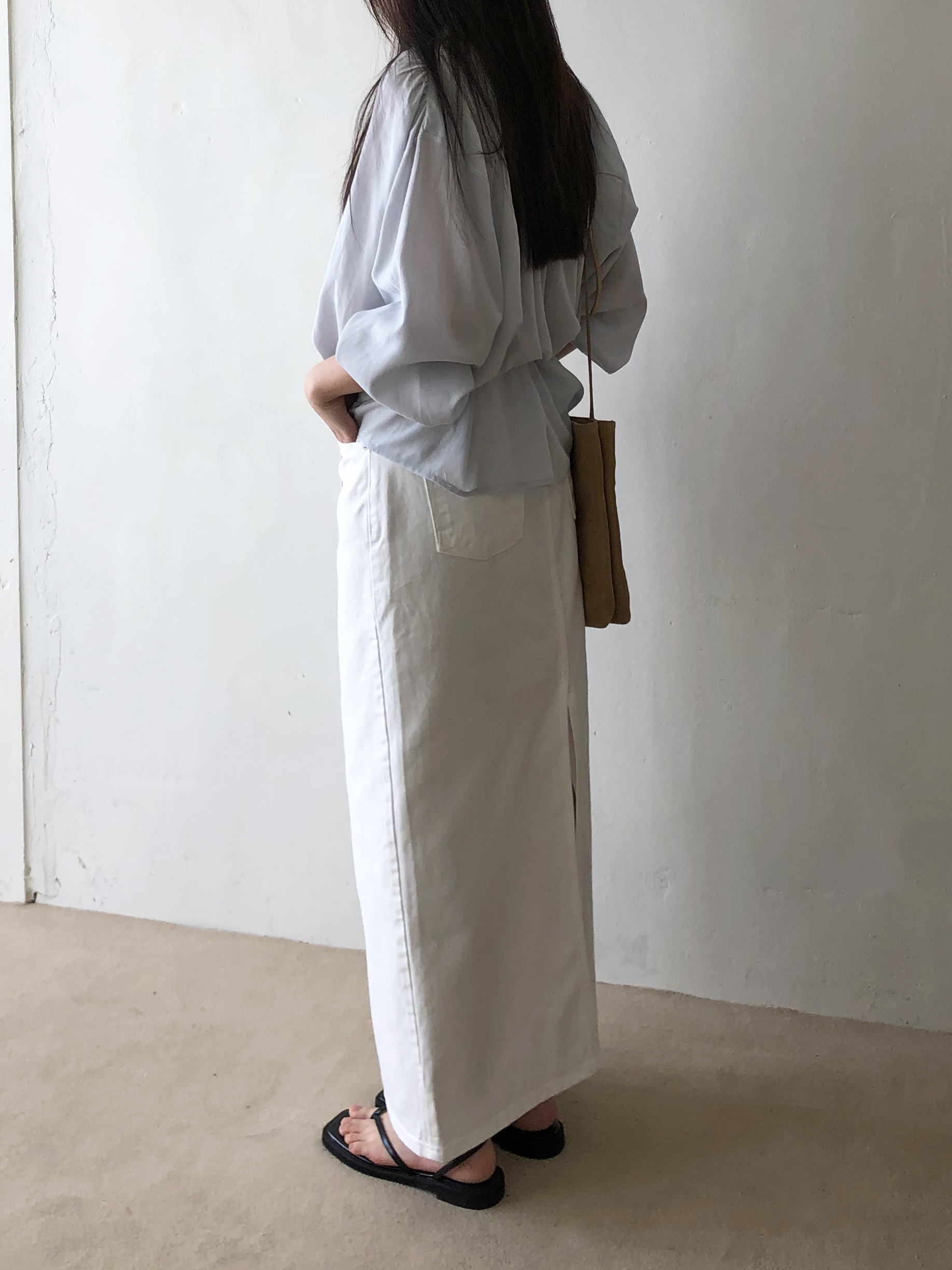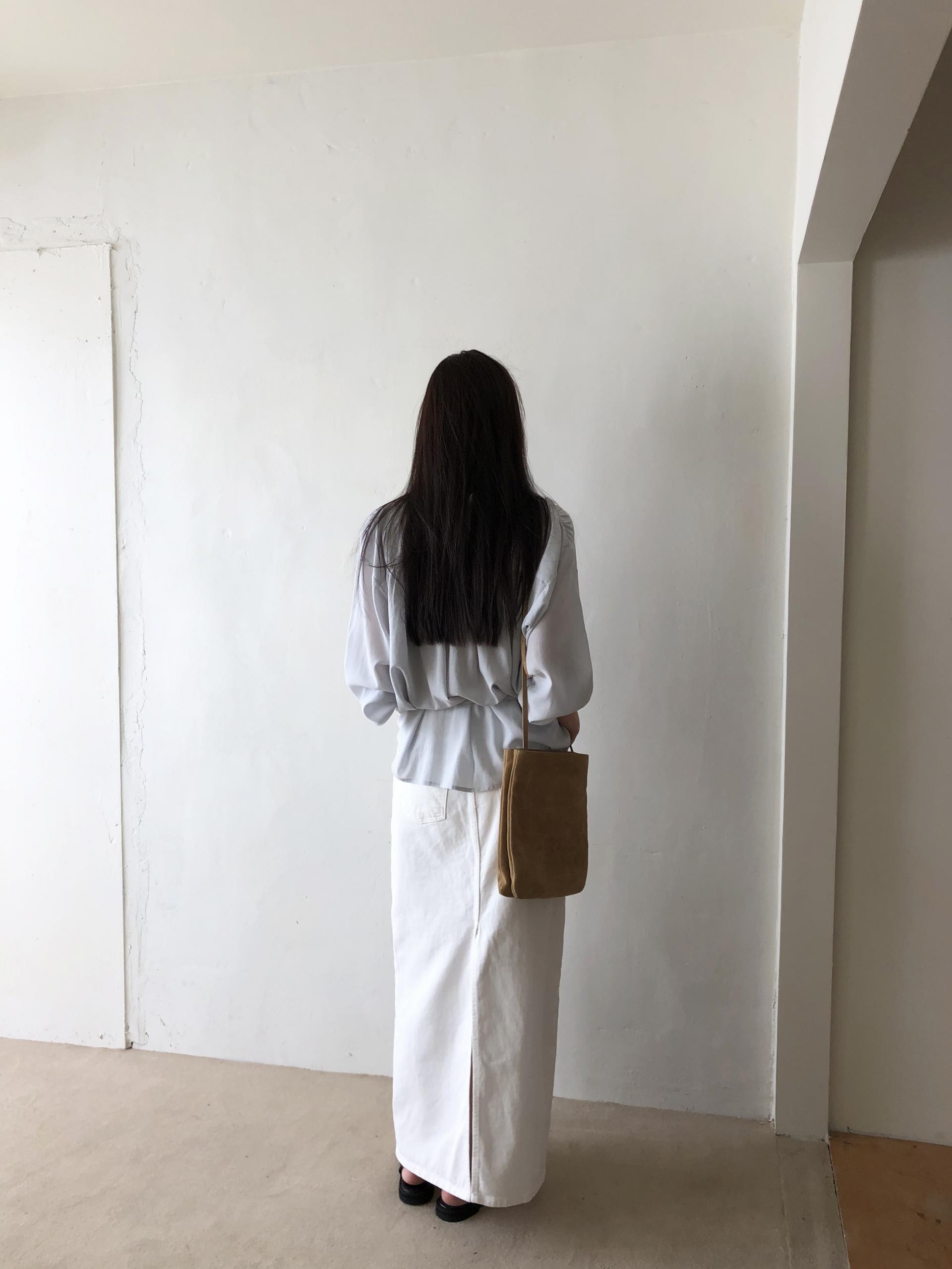 깨끗한 아이보리 컬러라 맥시한 기장이어도 답답하게 느껴지지 않고, 오히려 룩을 더 시원한 이미지로 만들어줍니다.