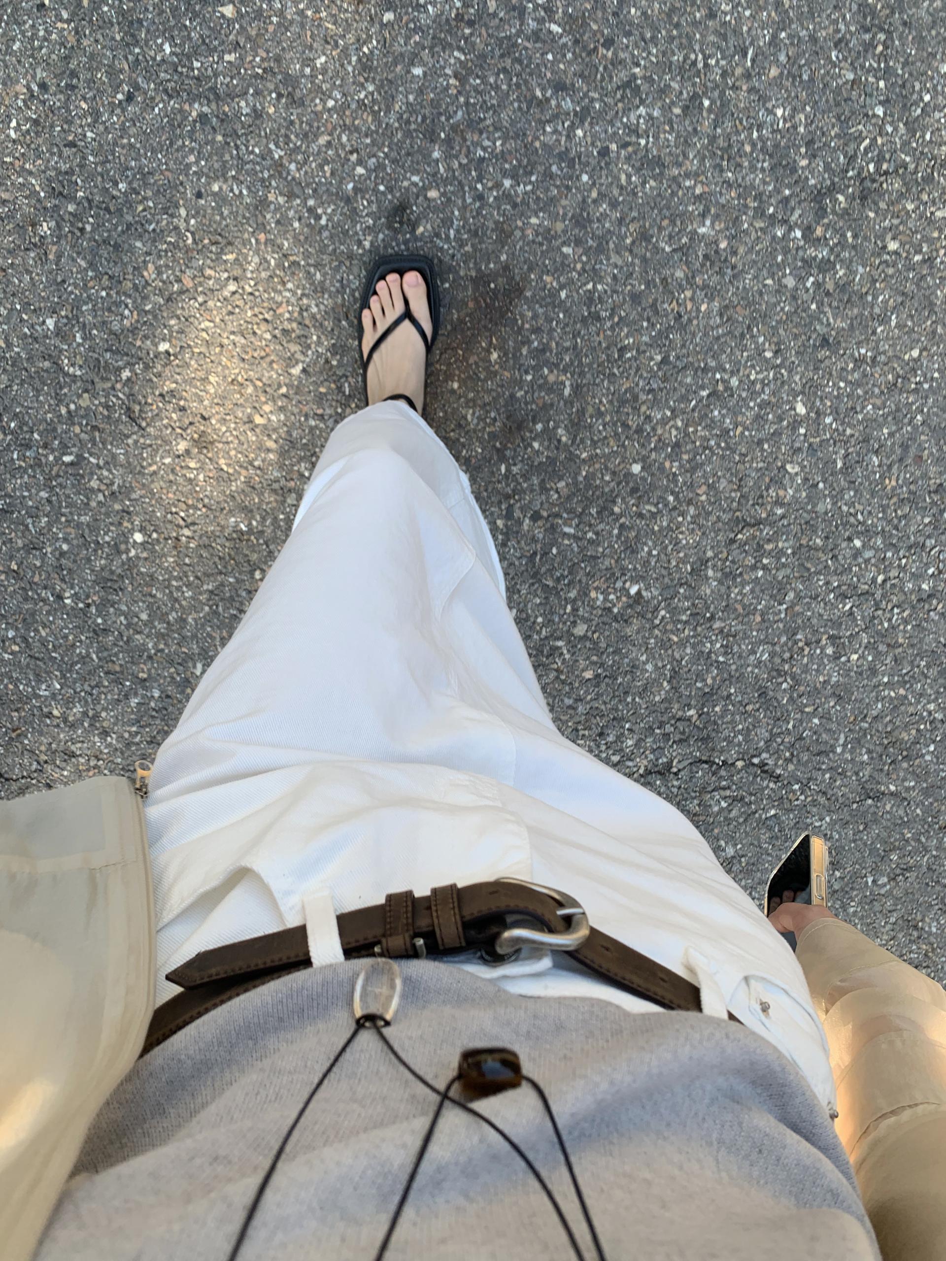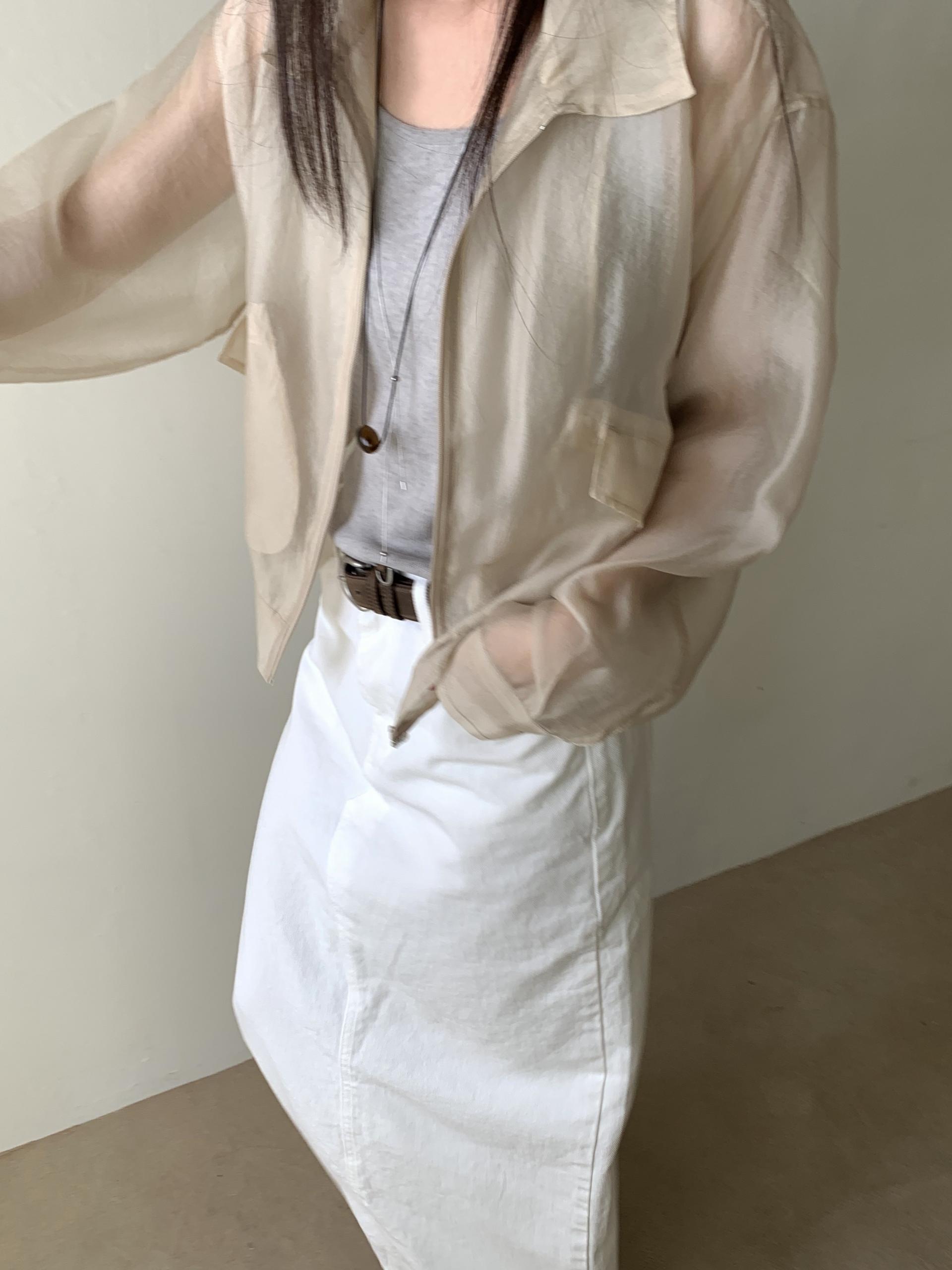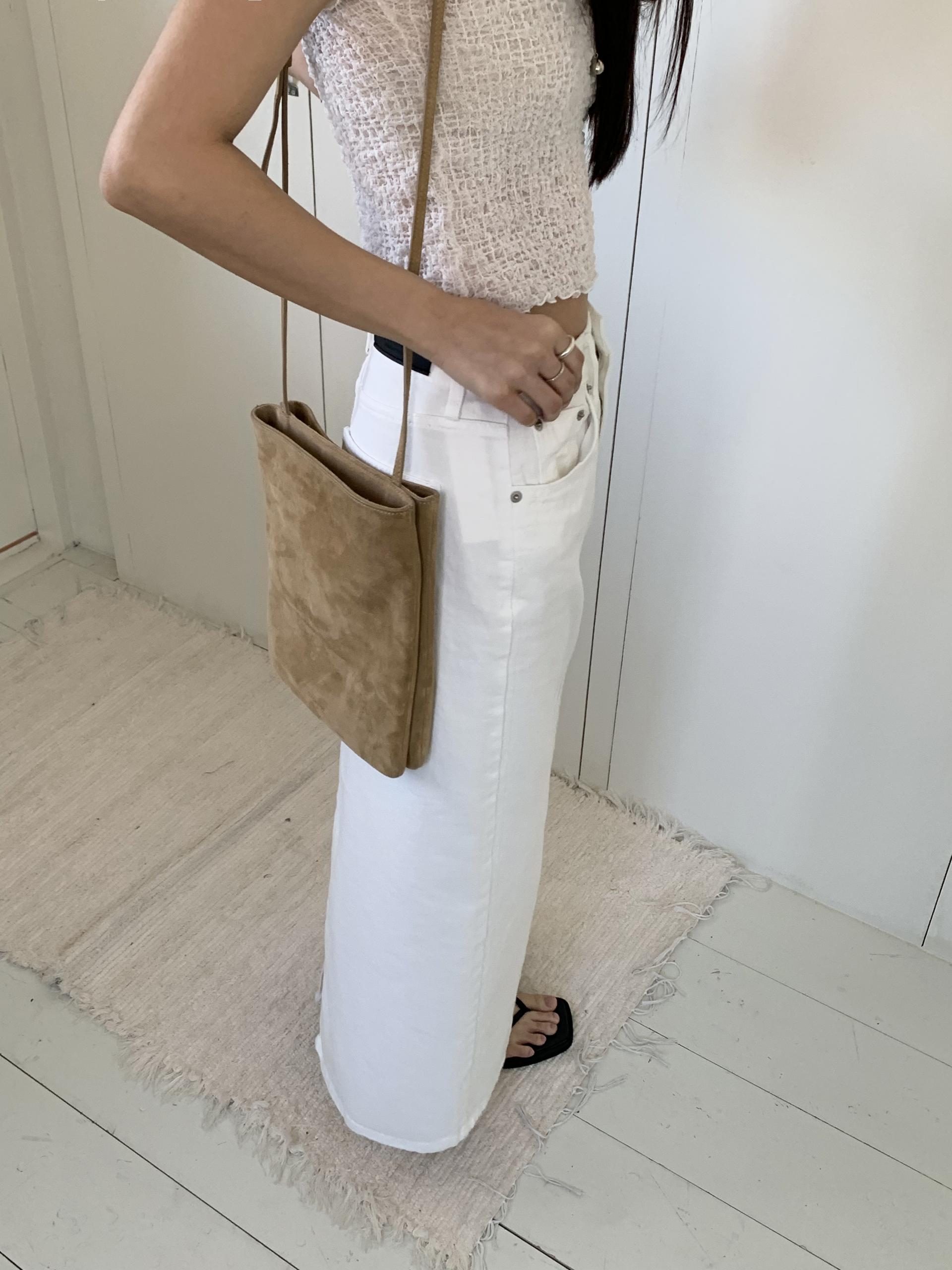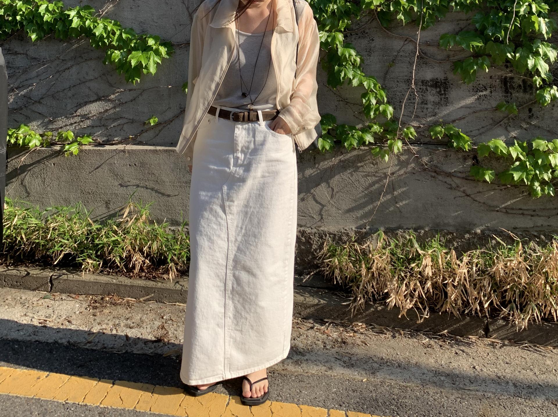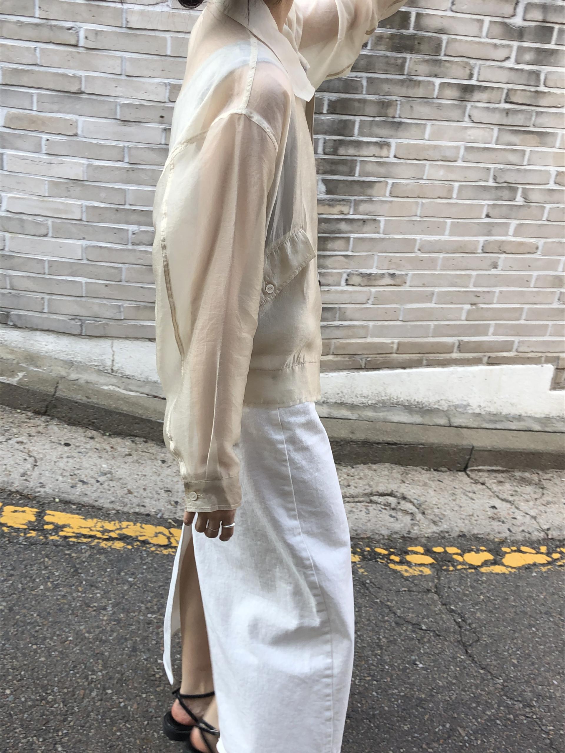 깨끗한 아이보리 컬러라 맥시한 기장이어도 답답하게 느껴지지 않고, 오히려 룩을 더 시원한 이미지로 만들어줍니다.