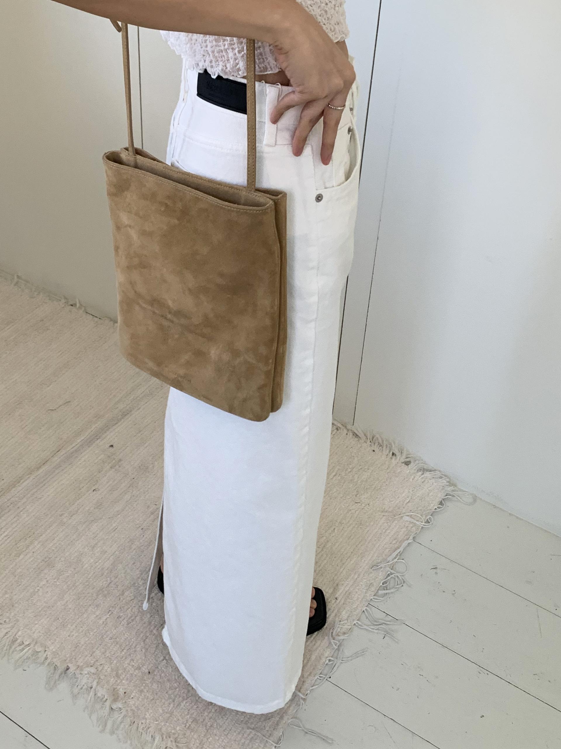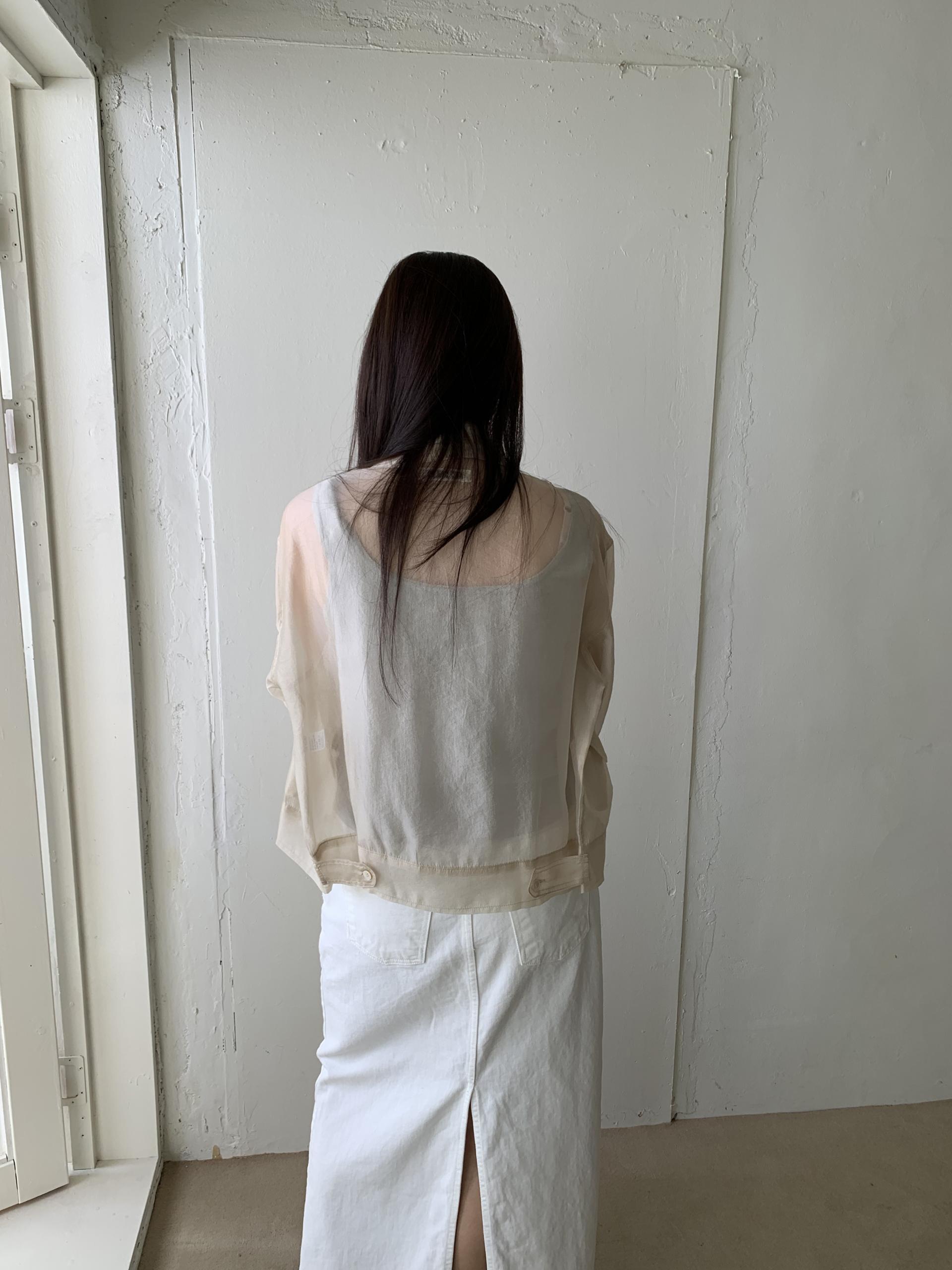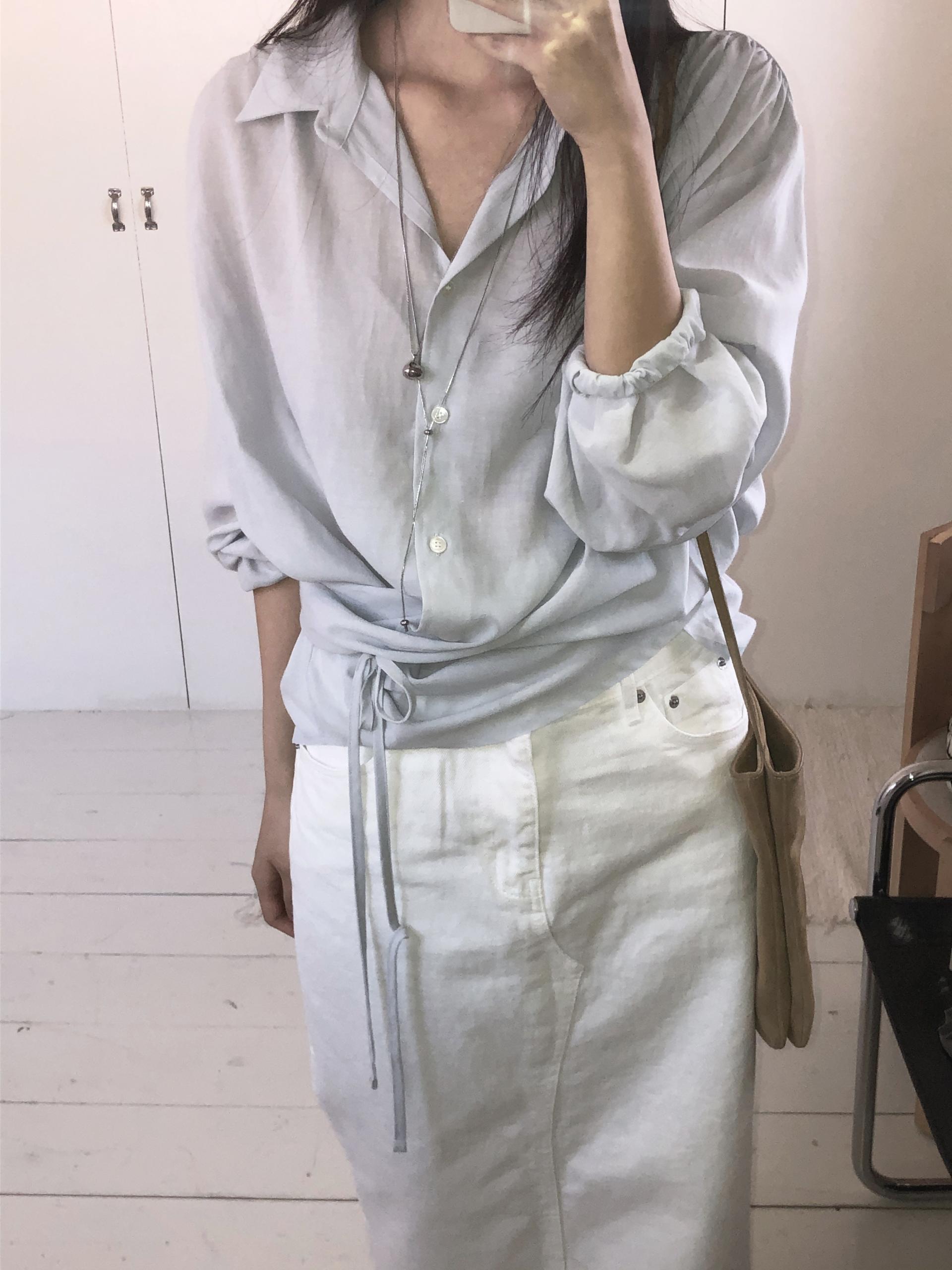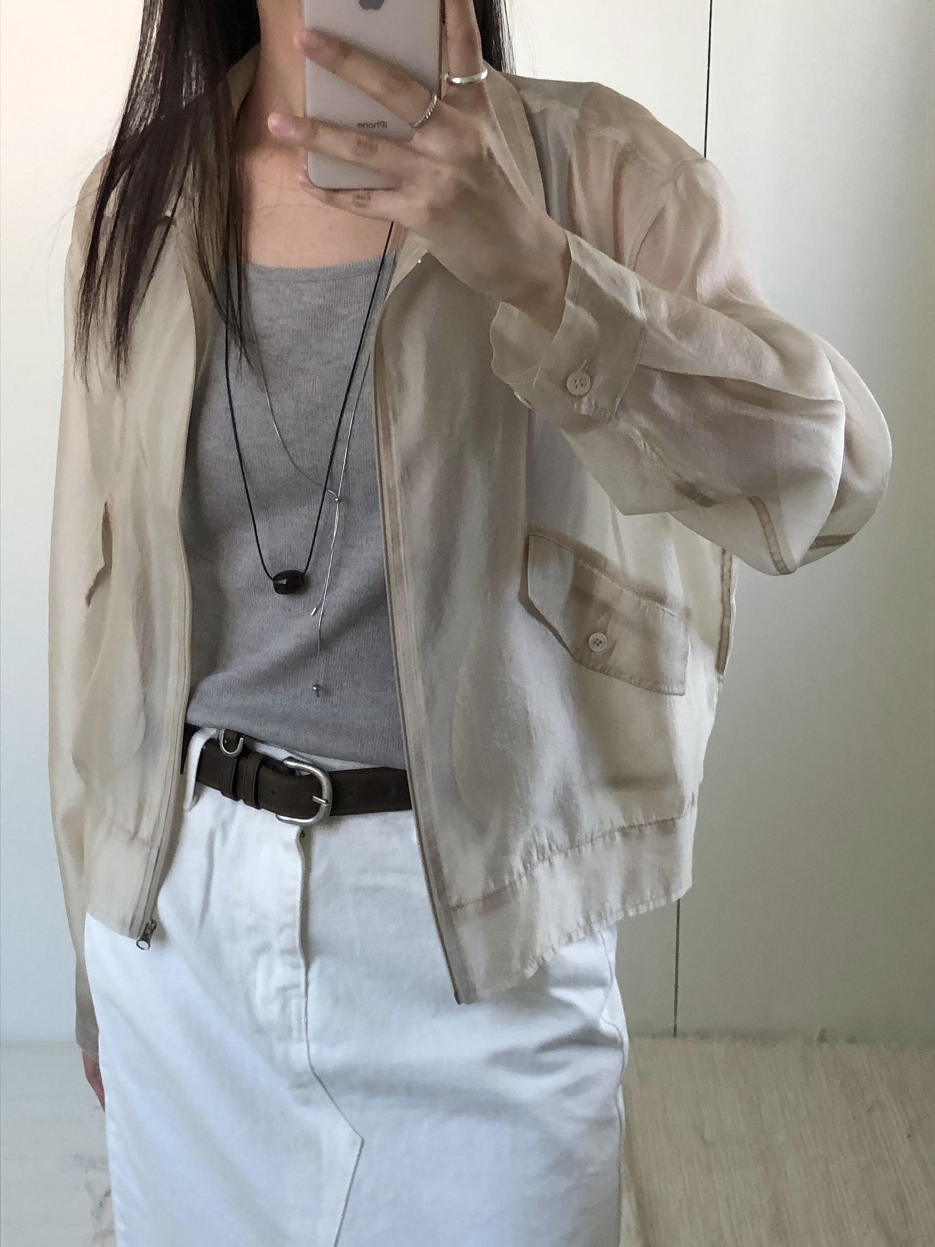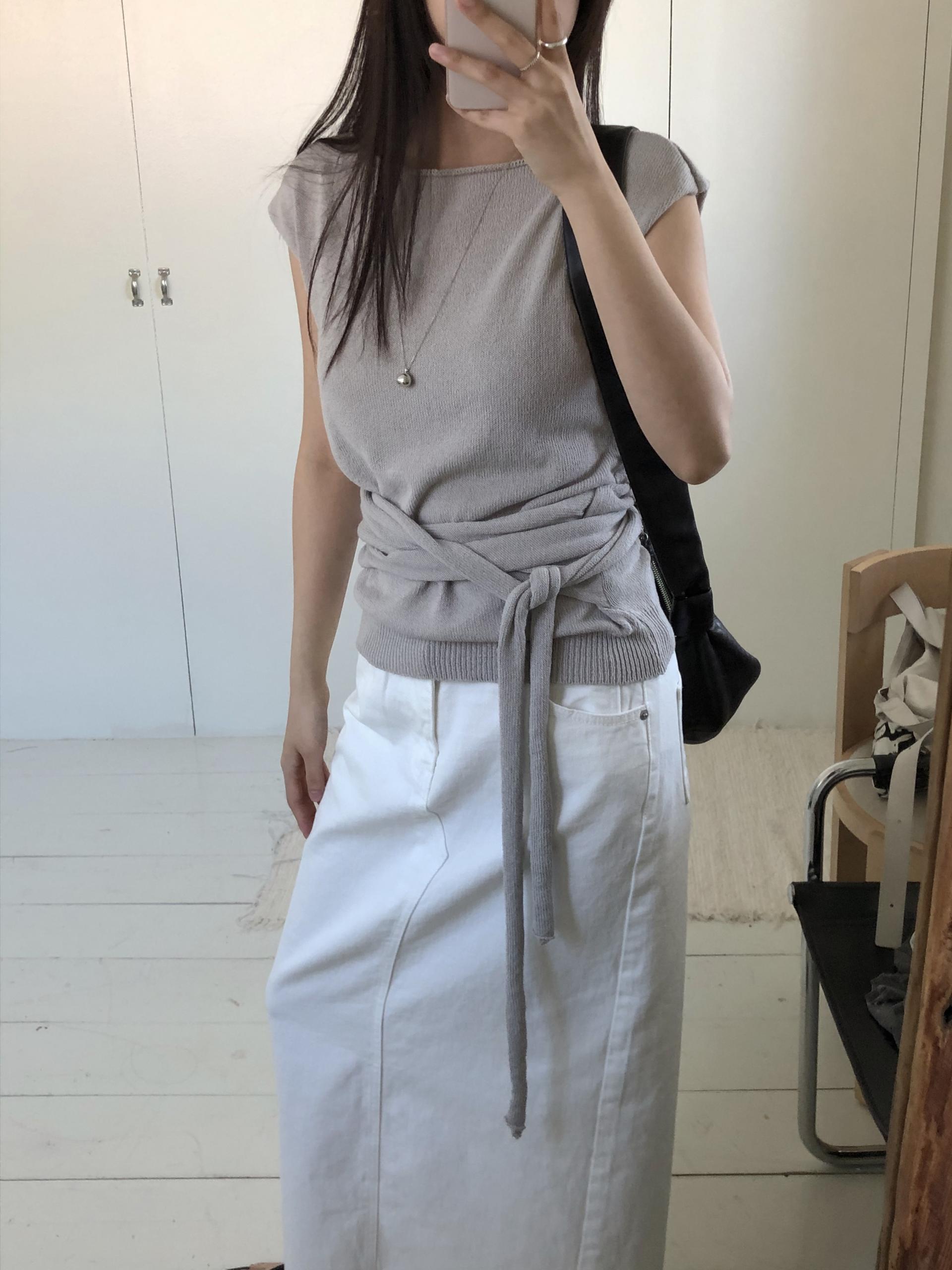 깨끗한 아이보리 컬러라 맥시한 기장이어도 답답하게 느껴지지 않고, 오히려 룩을 더 시원한 이미지로 만들어줍니다.