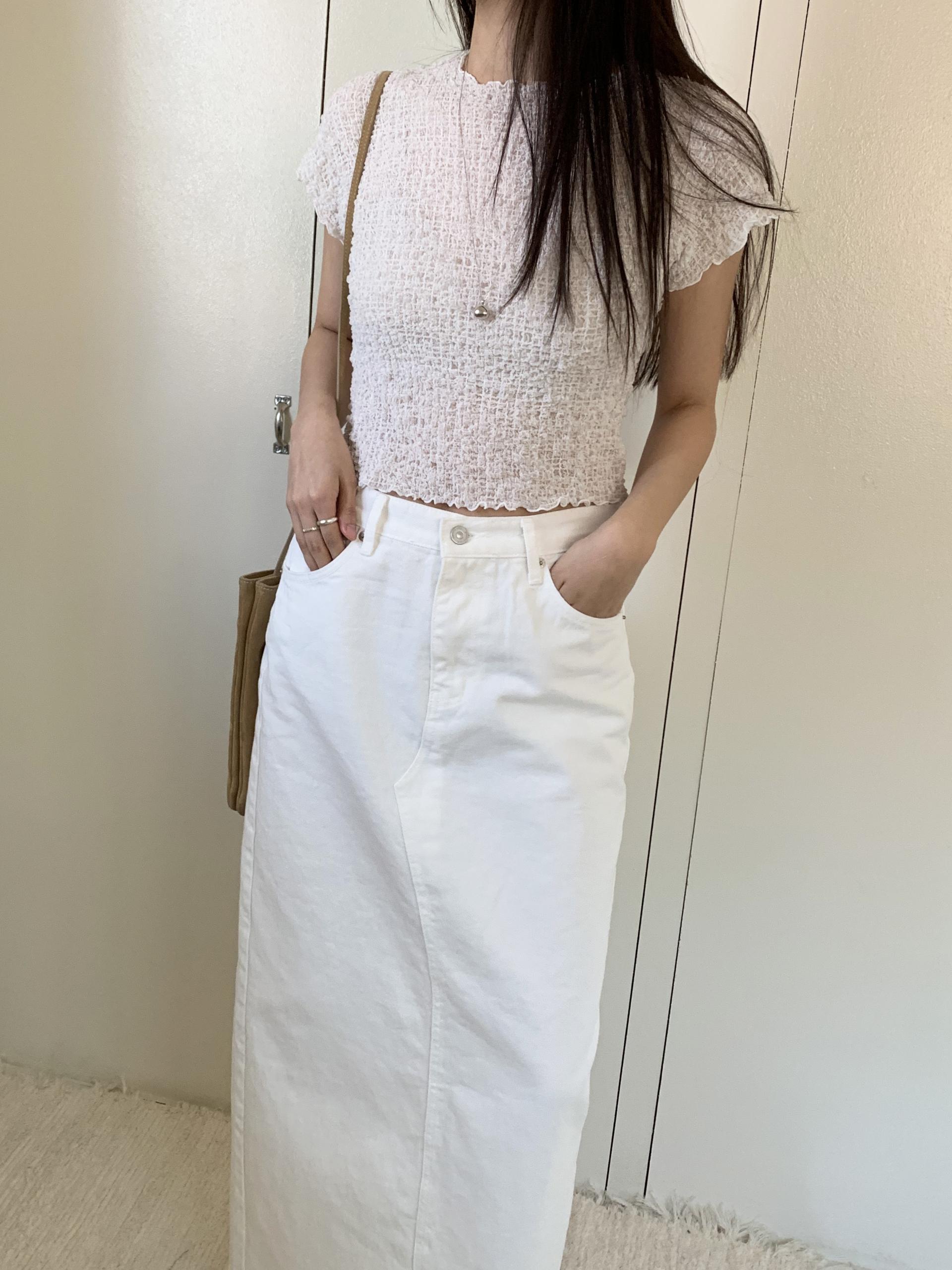 화이트는 어떤 컬러에도 손쉽게 매치할 수 있기 때문에 앞으로의 여름 스타일링이 더욱 기대되는 제품입니다. 데일리 스커트로 추천드려요 !