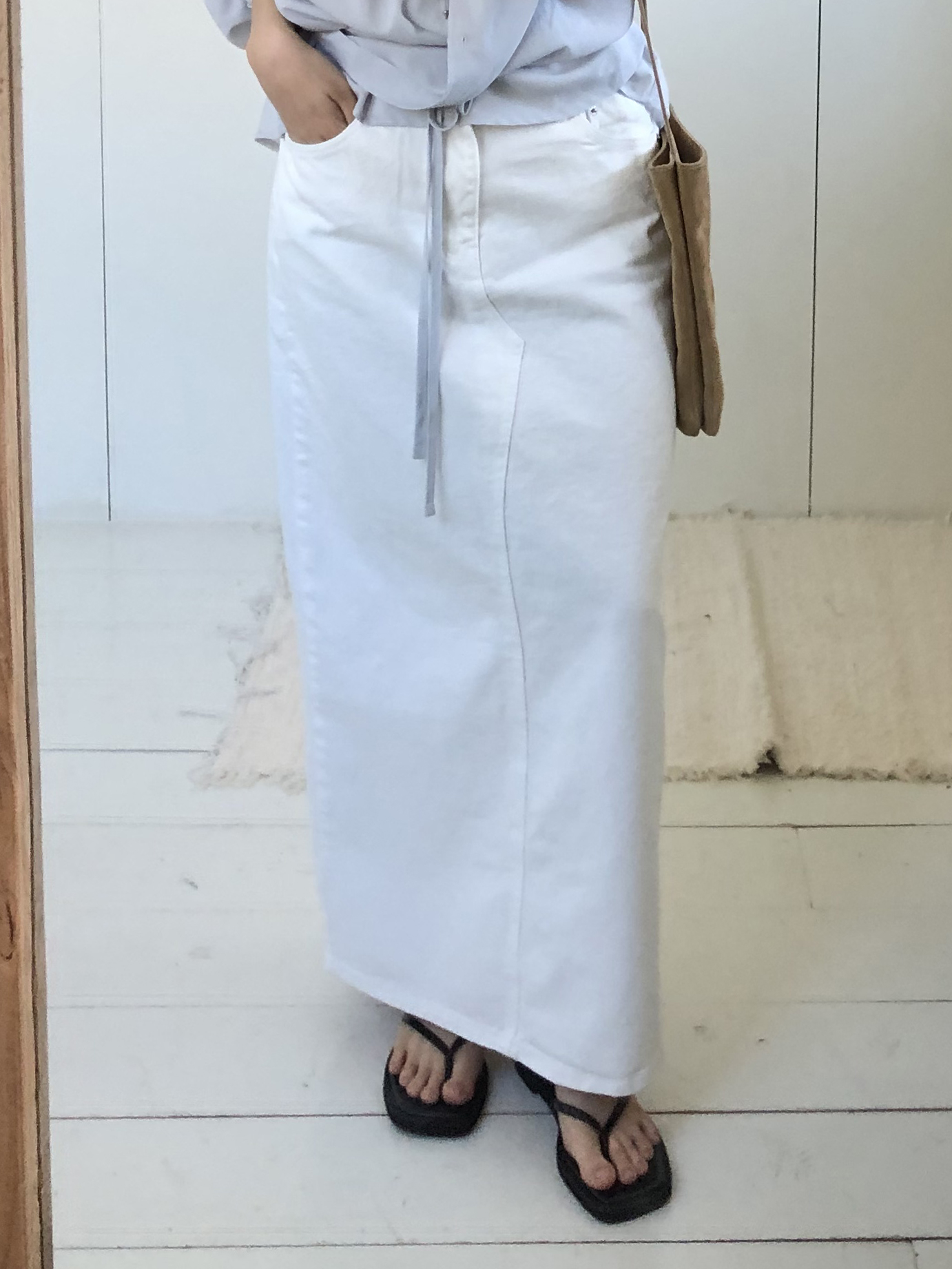 클린하게 일자로 떨어지는 아이보리 데님 스커트 소개드려요.