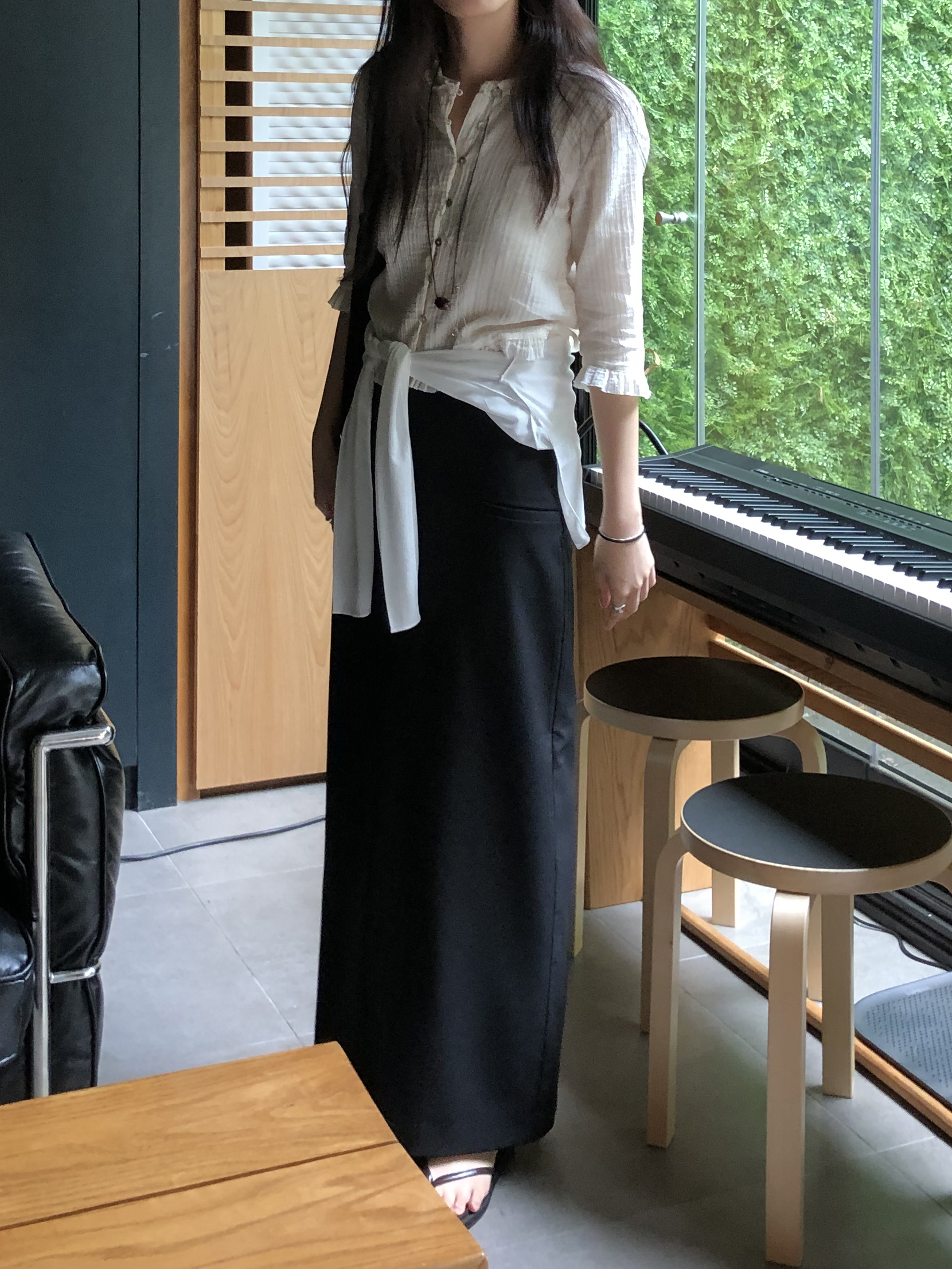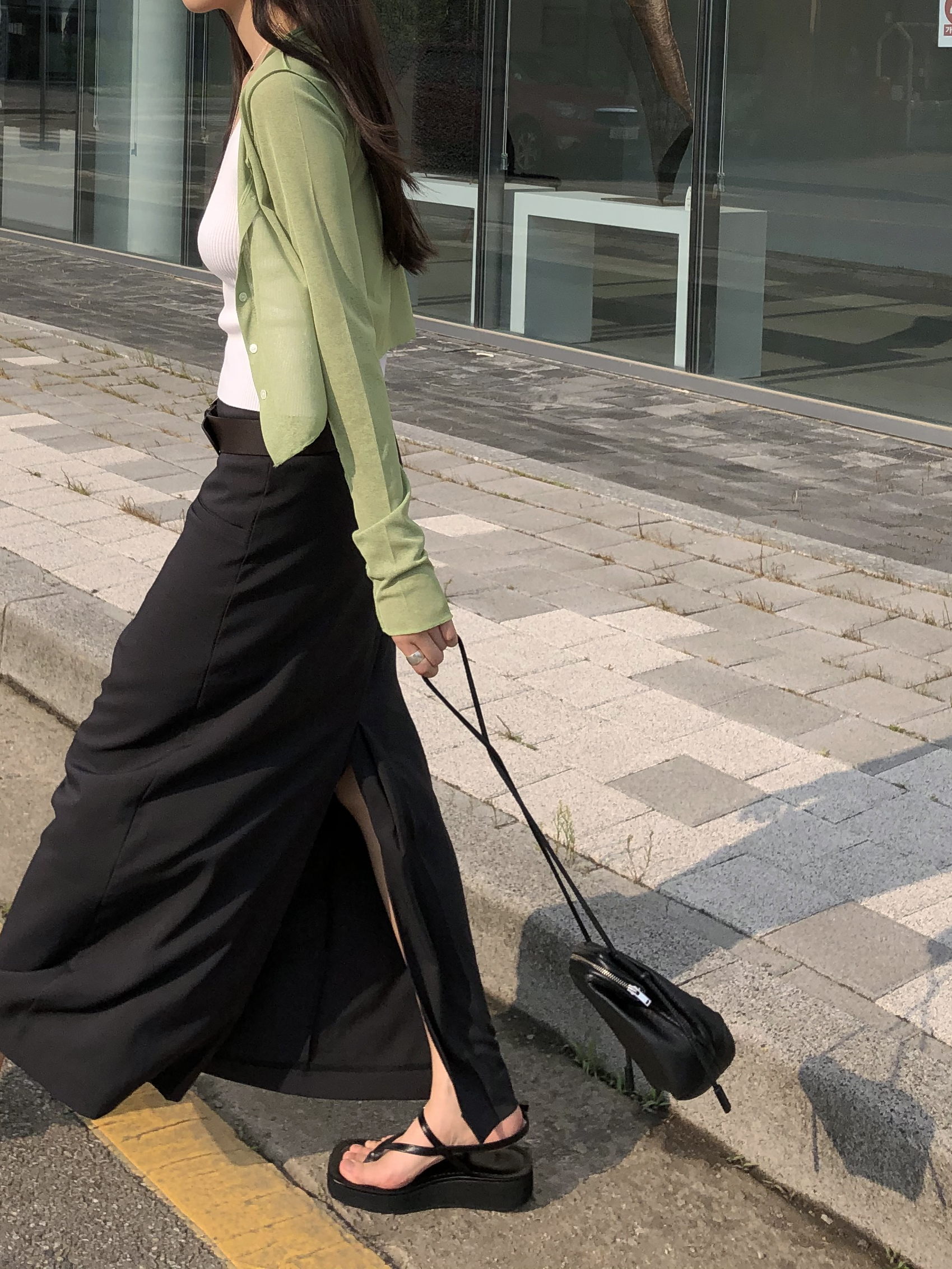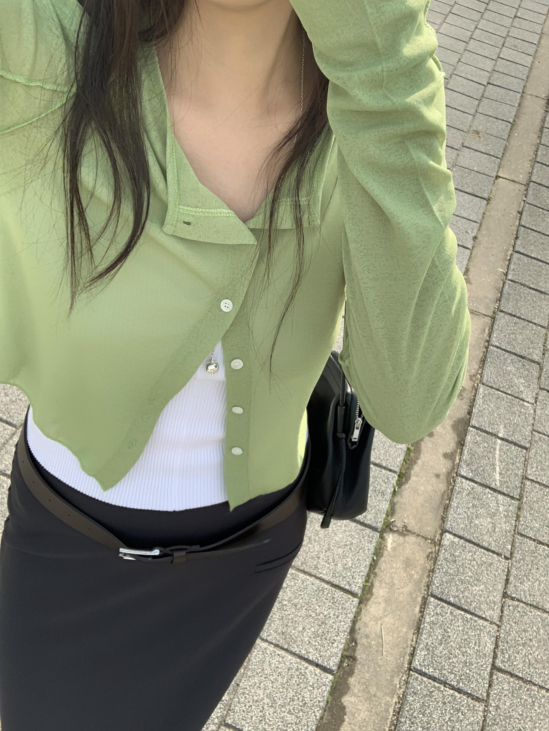 적당히 크롭한 기장으로 제작되어 단독 또는 슬리브리스와 함께 매치하기 좋아요.