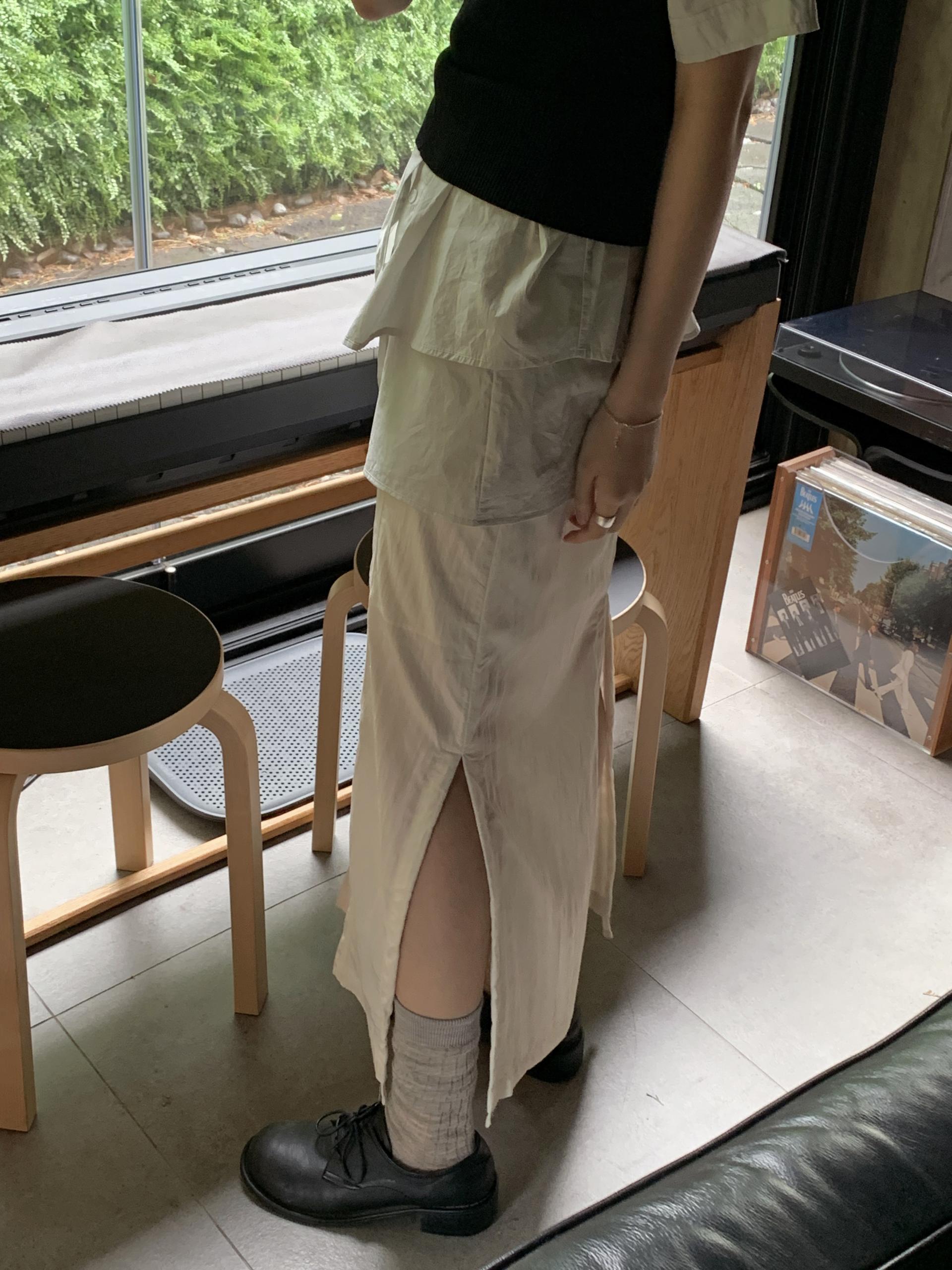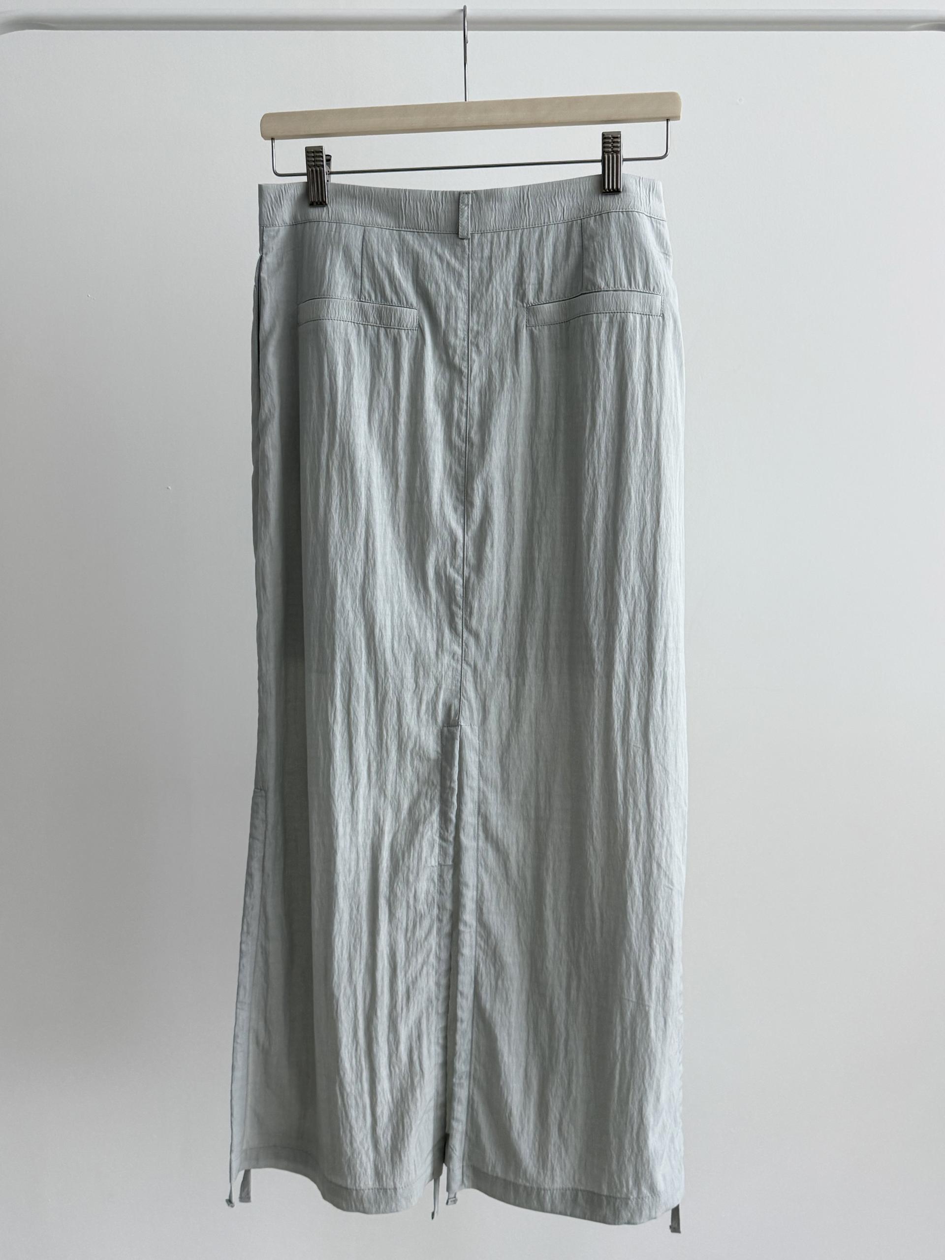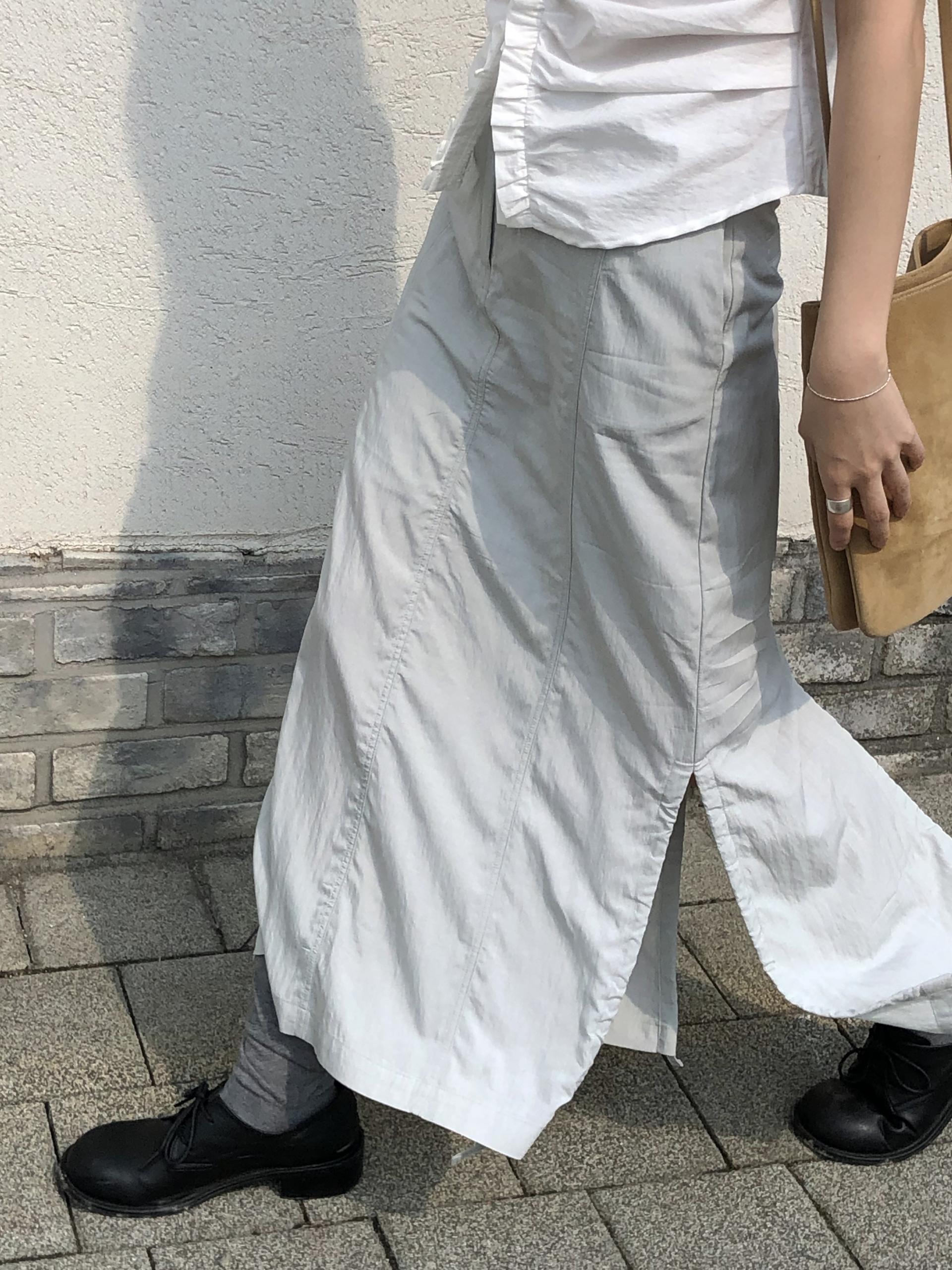 가볍고 촉촉한 소재로 한여름에도 시원하게 착용하기 좋은 맥시 기장의 스커트입니다. 핏하지 않은 H라인을 기본으로 하며, 옆과 뒷트임이 있어 총 3피스로 나뉘어진 디자인이에요. 스트링 디테일이 들어가있어 원하는 만큼 조여 실루엣을 만들 수 있습니다.