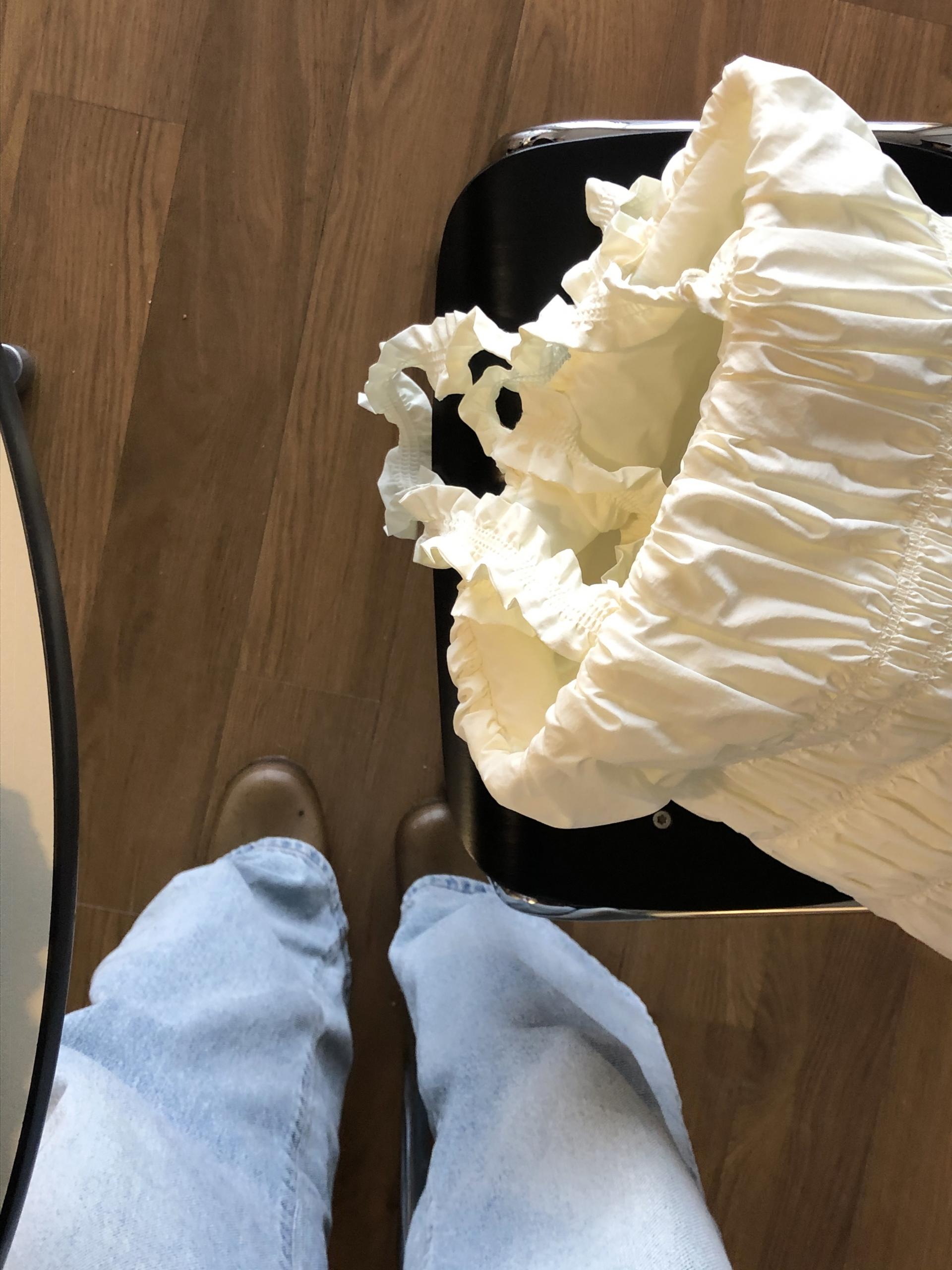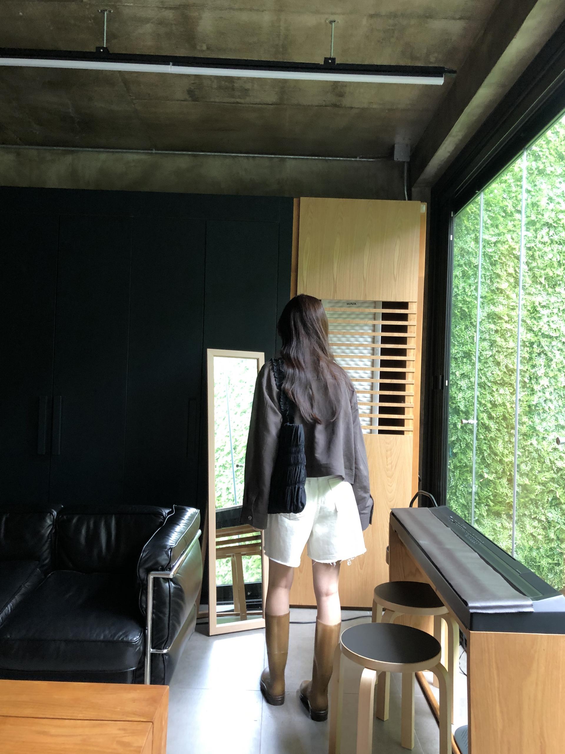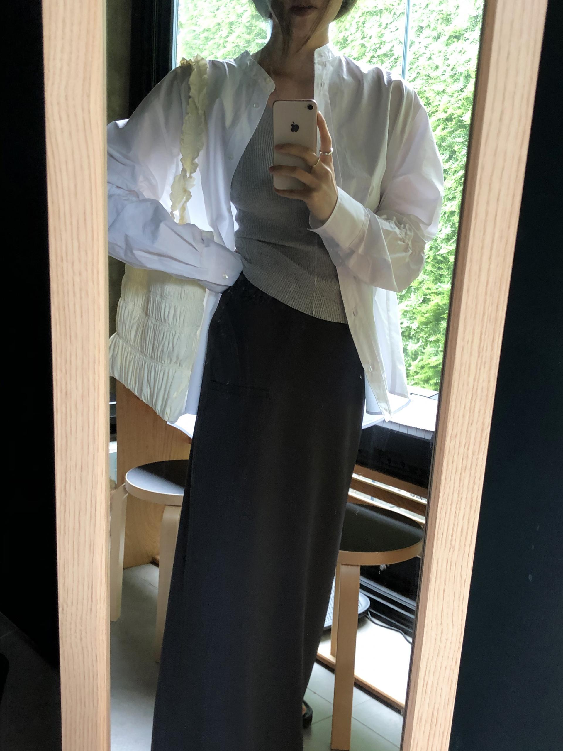어깨끈은 프릴로 디자인되어 본판의 스모크가 주는 무드를 이어갑니다. 전체적으로 사랑스러운 무드를 지녔어요. 여름에 특히 가볍게 입고 백으로 은은하게 포인트 주기 좋으실 거예요. 디테일이 돋보이는 백이라 깔끔한 룩과 함께하면 베스트입니다.