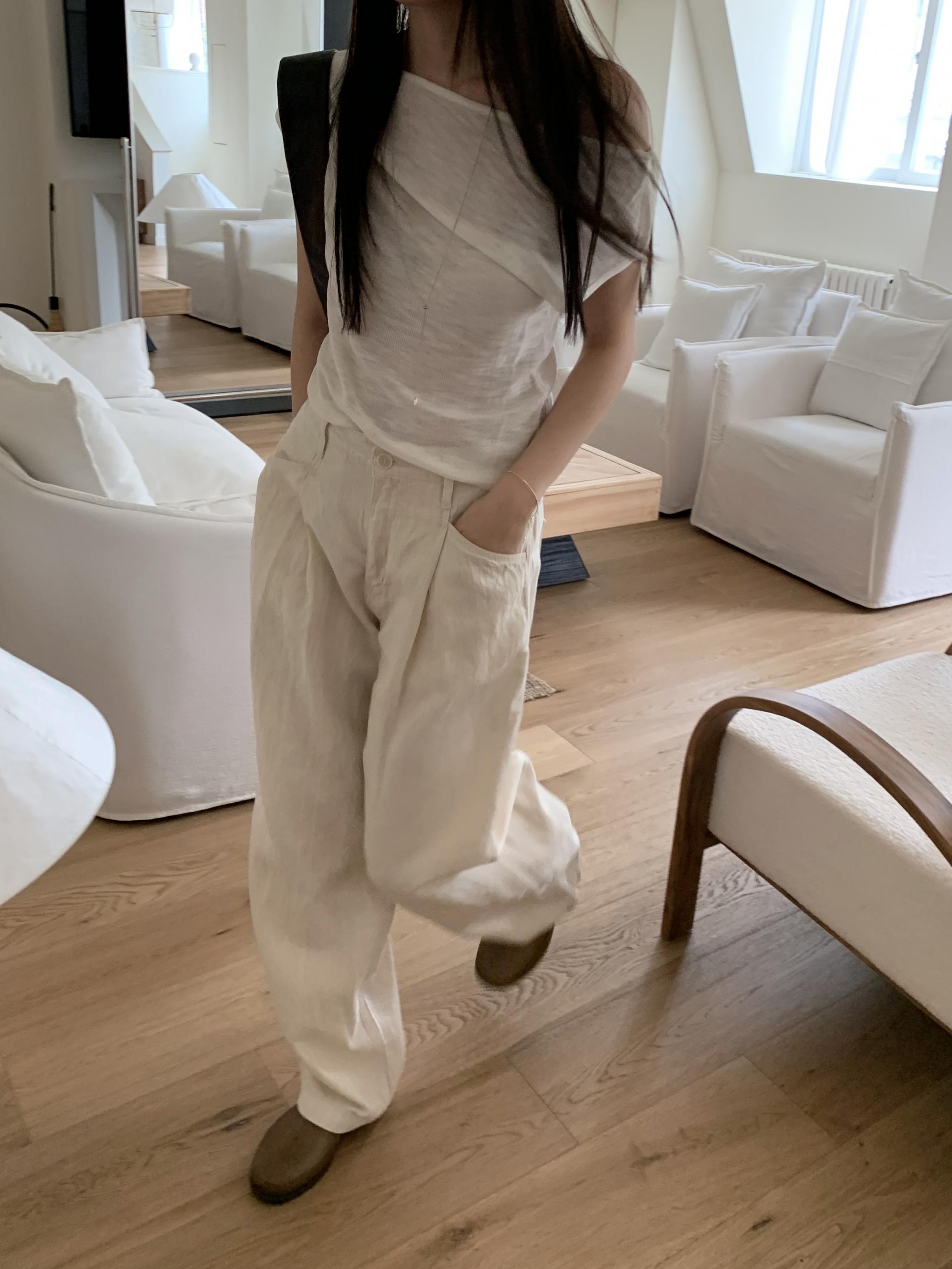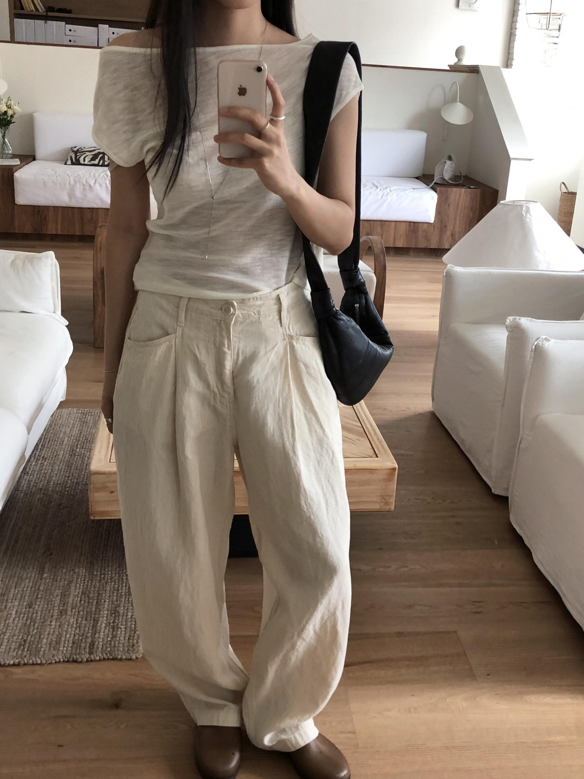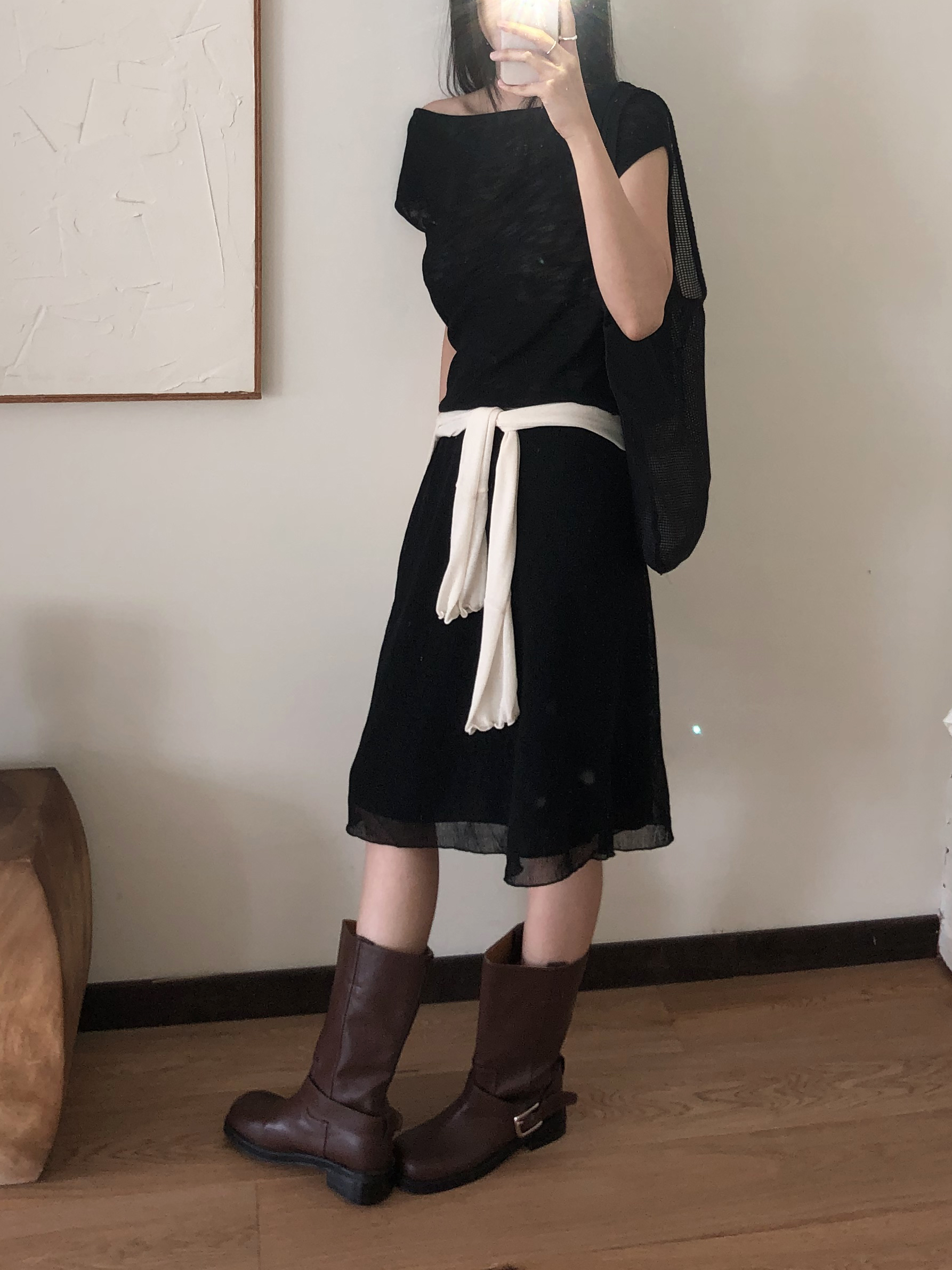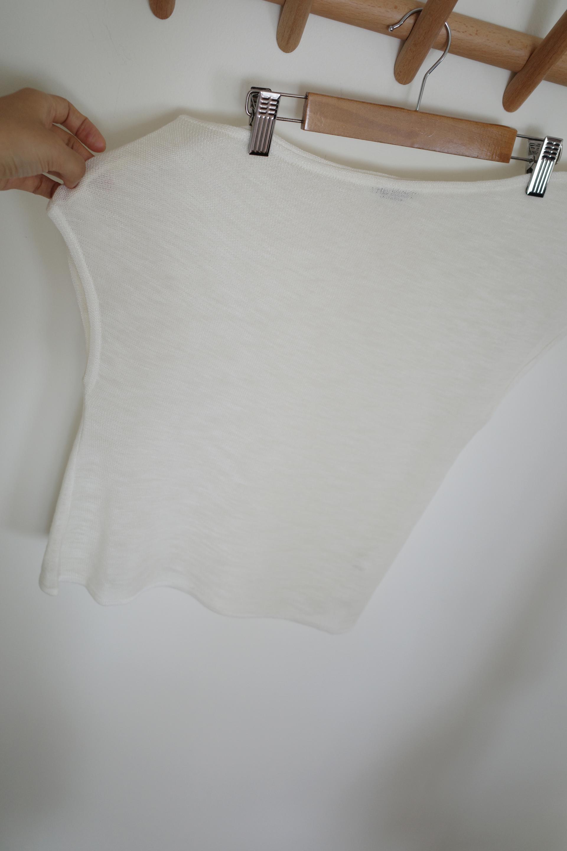 * 얇고 드라이한 촉감의 니트 소재로 제작된 썸머 오프숄더 니트입니다. 어깨 라인이 언발란스로 디자인되어 한쪽 어깨를 내려 착용하는 타입입니다. 세 컬러 모두 비침이 있는 편입니다. 스킨톤의 이너 착용을 추천드립니다 !