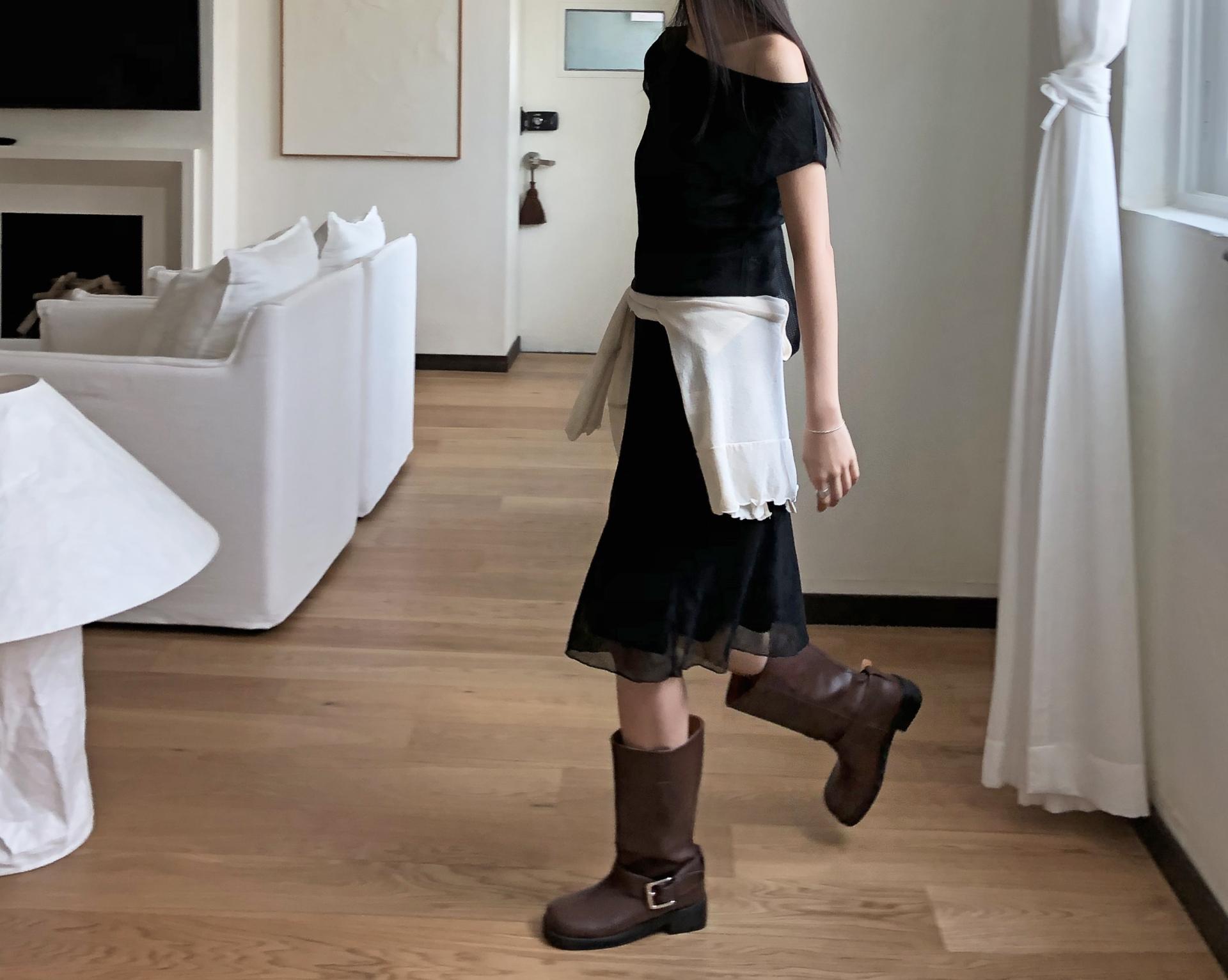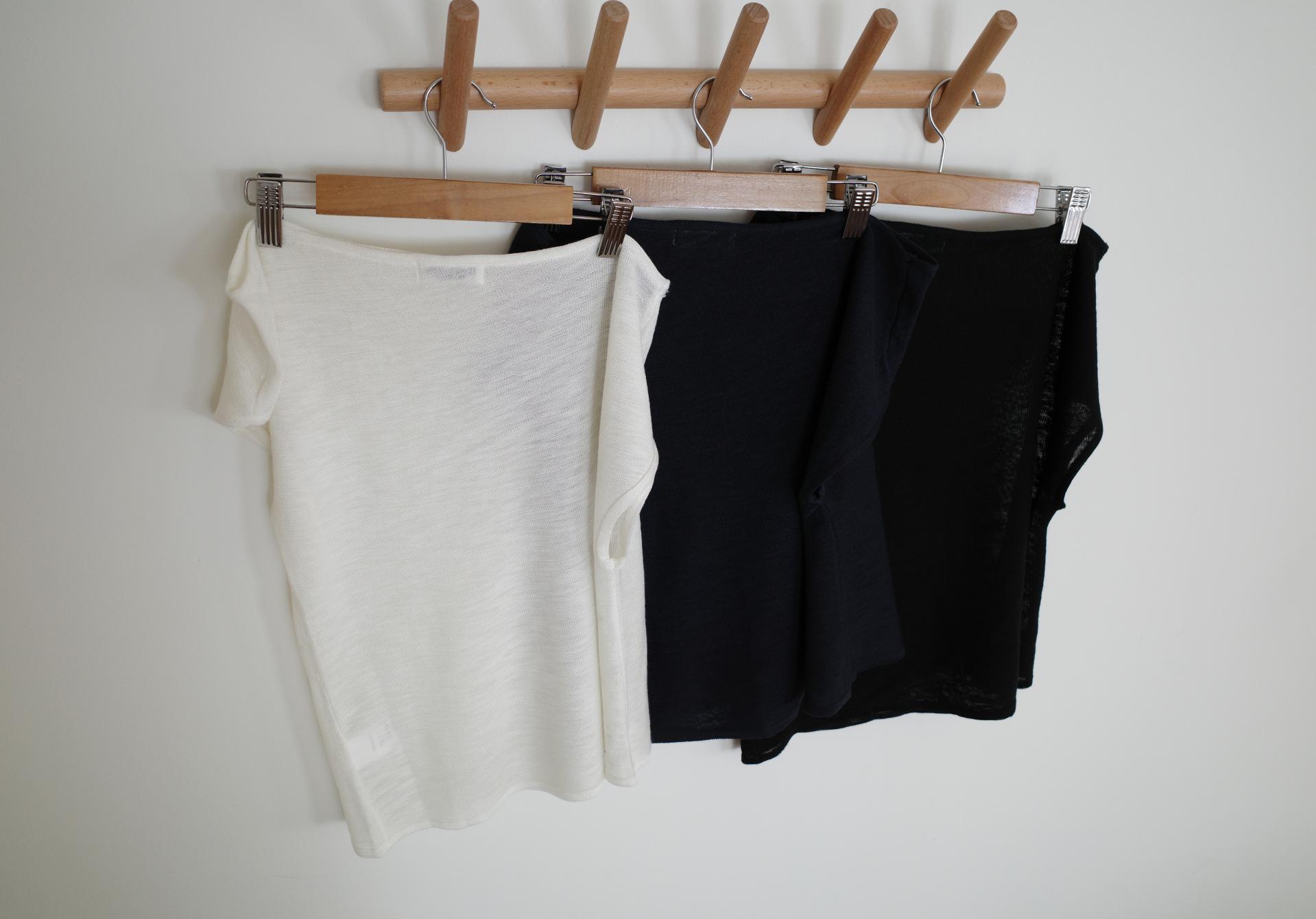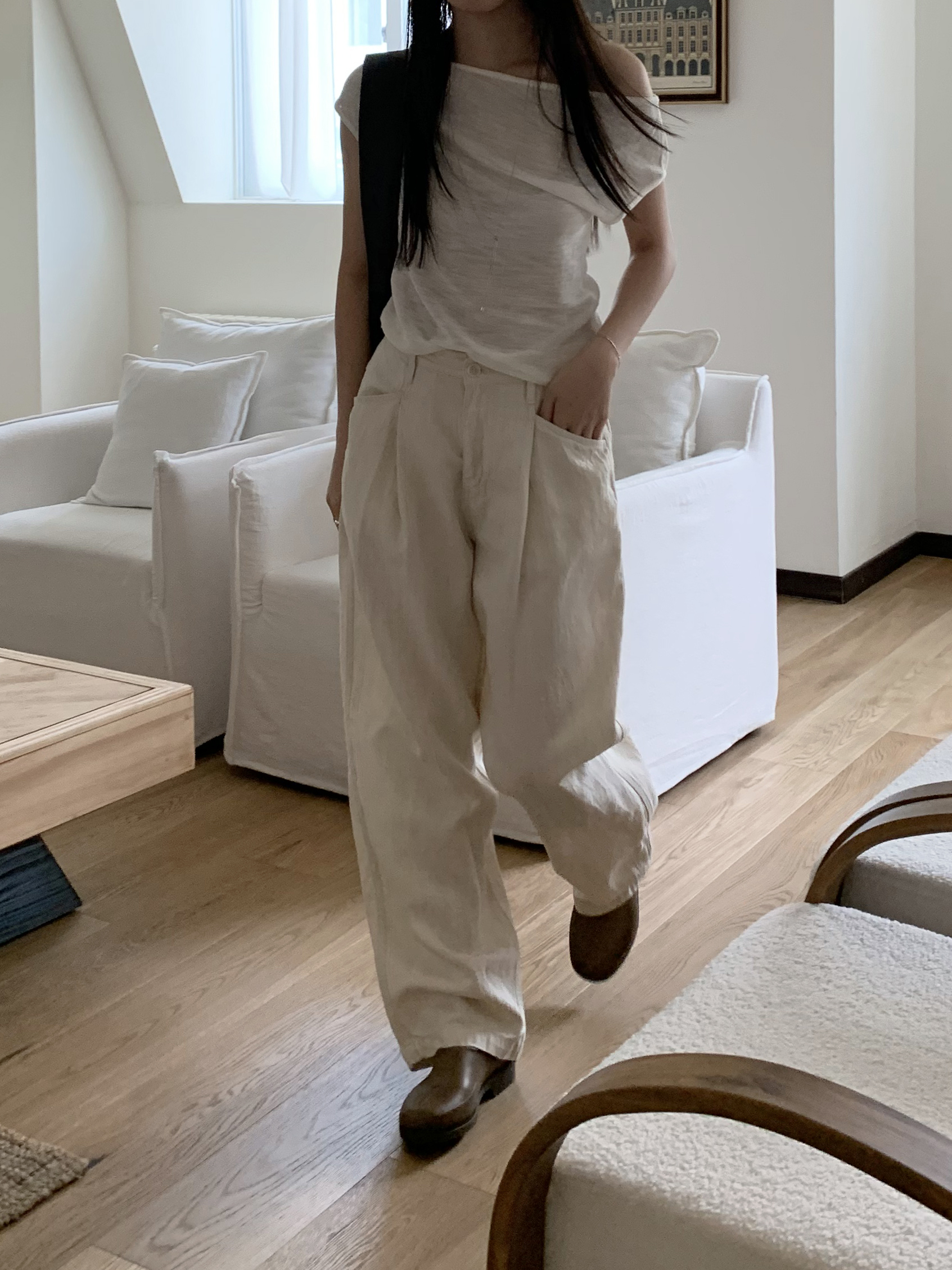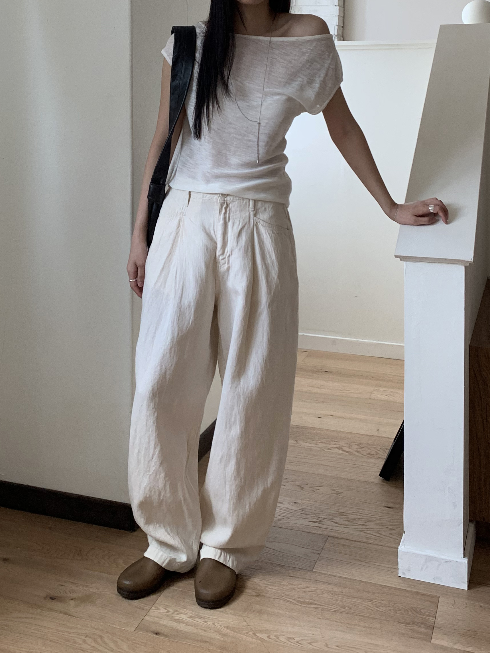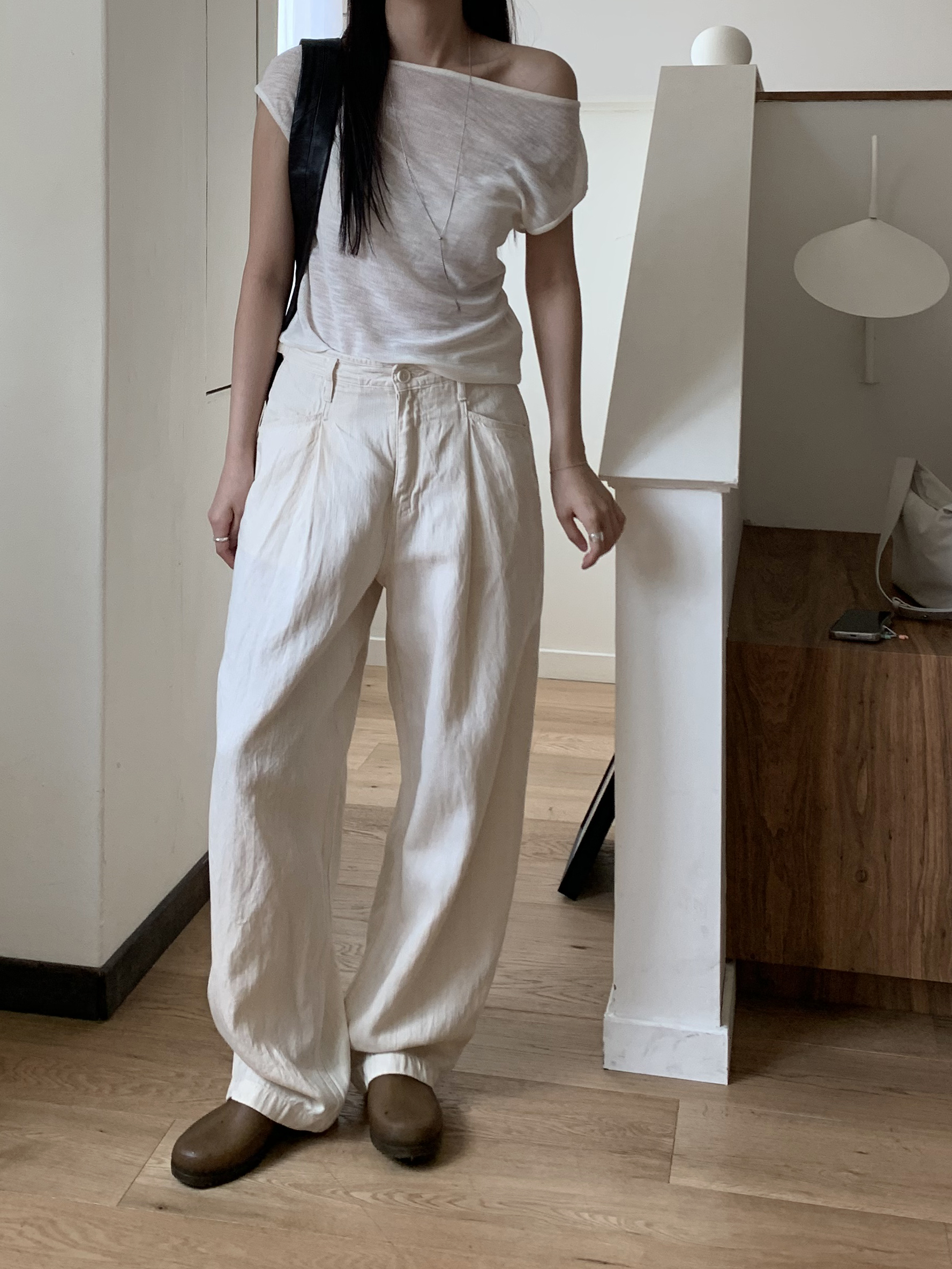* 얇고 드라이한 촉감의 니트 소재로 제작된 썸머 오프숄더 니트입니다. 어깨 라인이 언발란스로 디자인되어 한쪽 어깨를 내려 착용하는 타입입니다. 세 컬러 모두 비침이 있는 편입니다. 스킨톤의 이너 착용을 추천드립니다 !