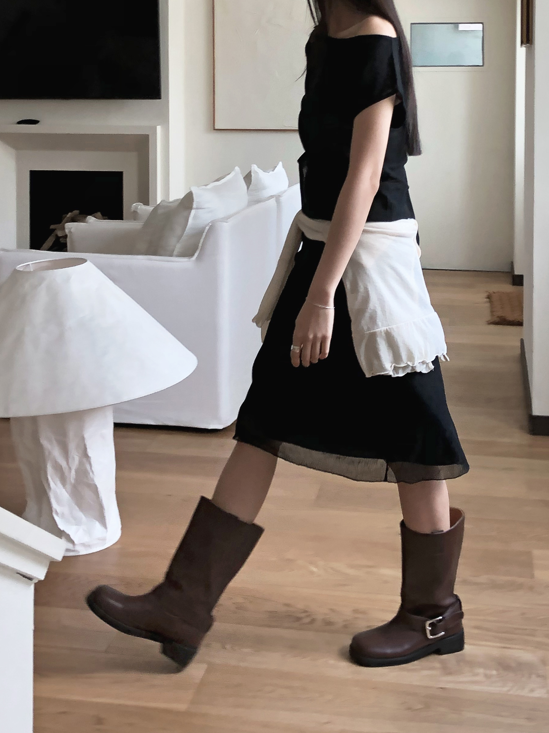 - 레깅스, 니트, 얇은 원단의 티 등 한번의 착용으로도 늘어남이 생기는 의류는 교환 및 반품이 불가합니다.