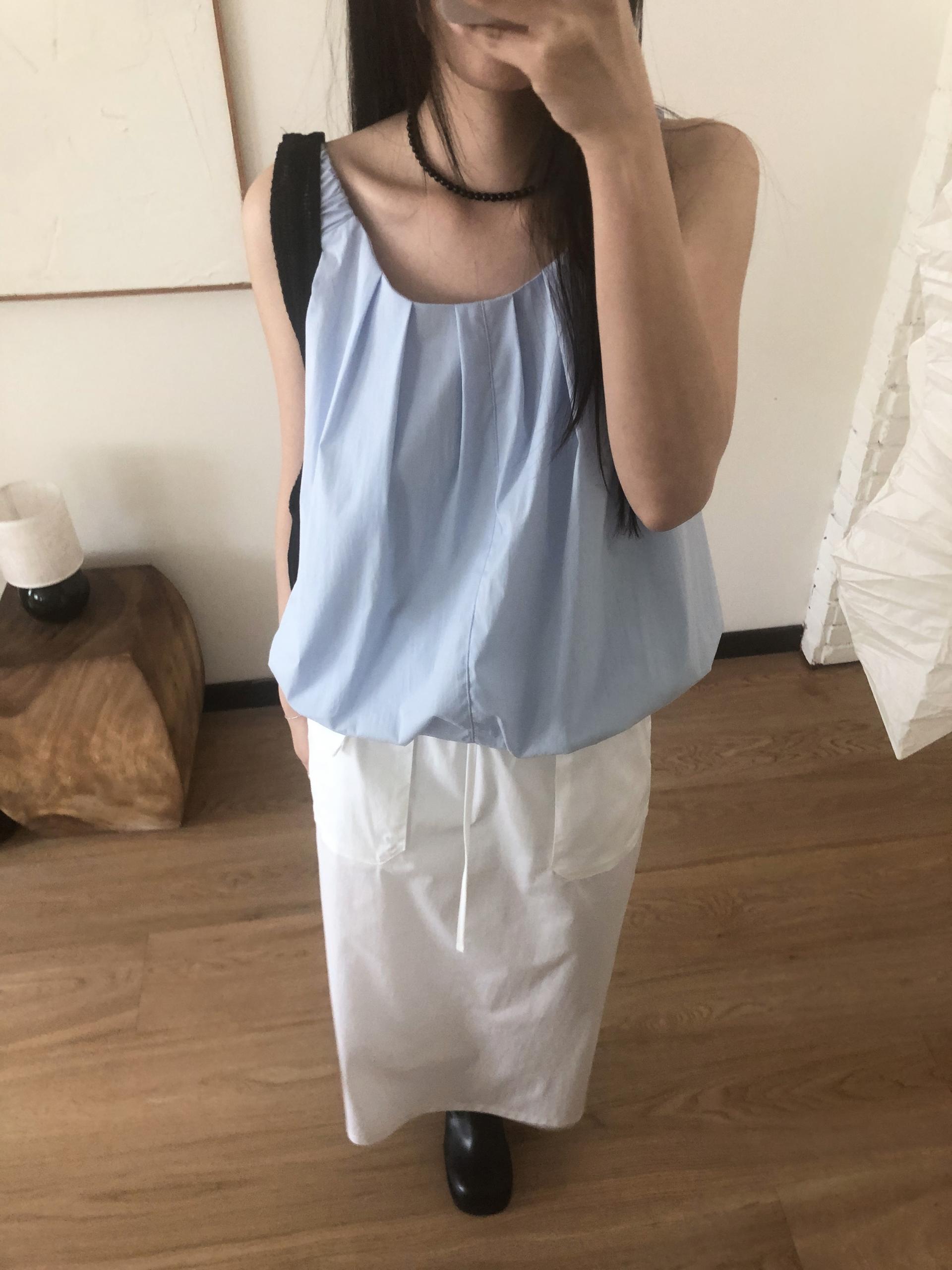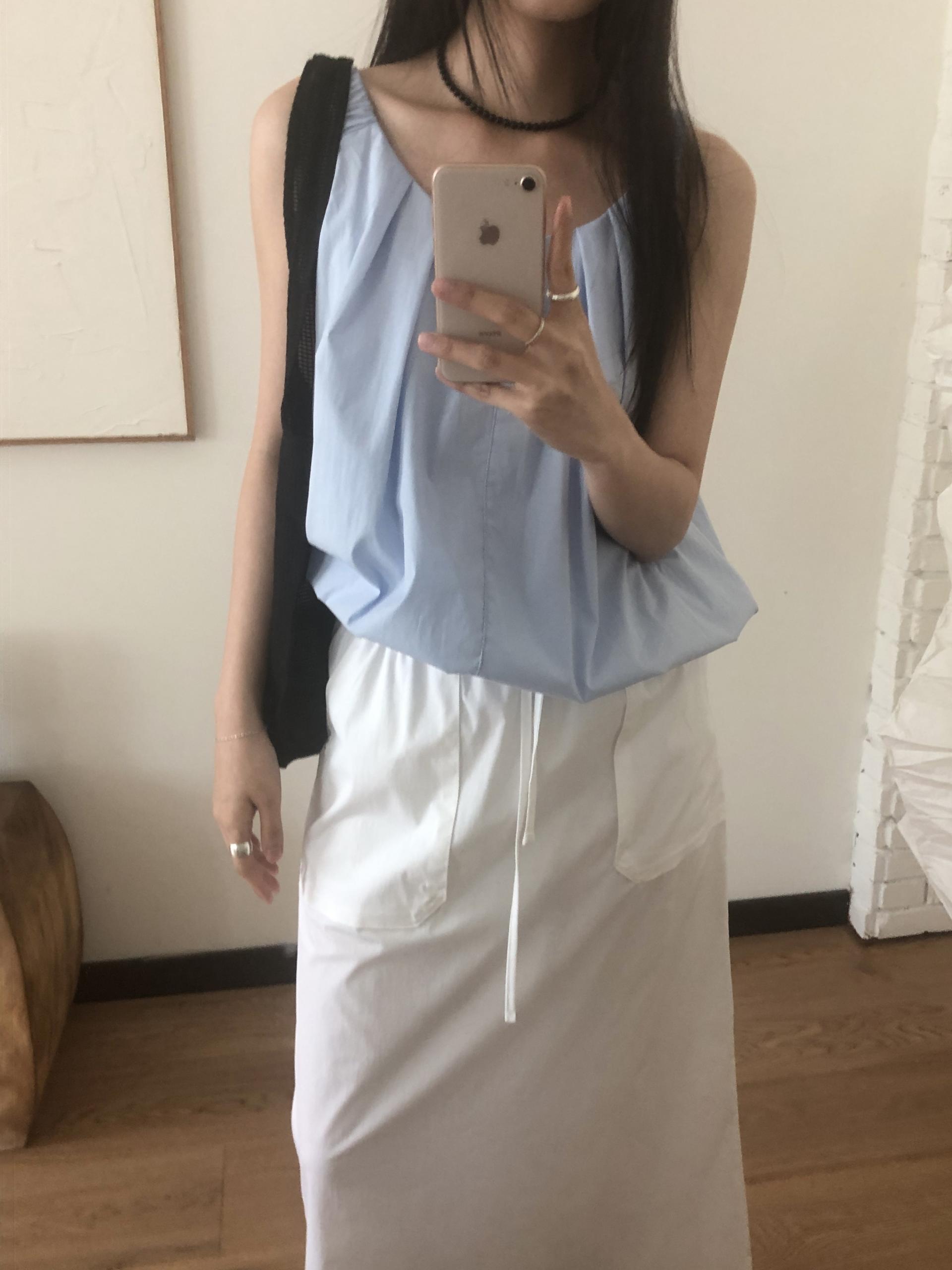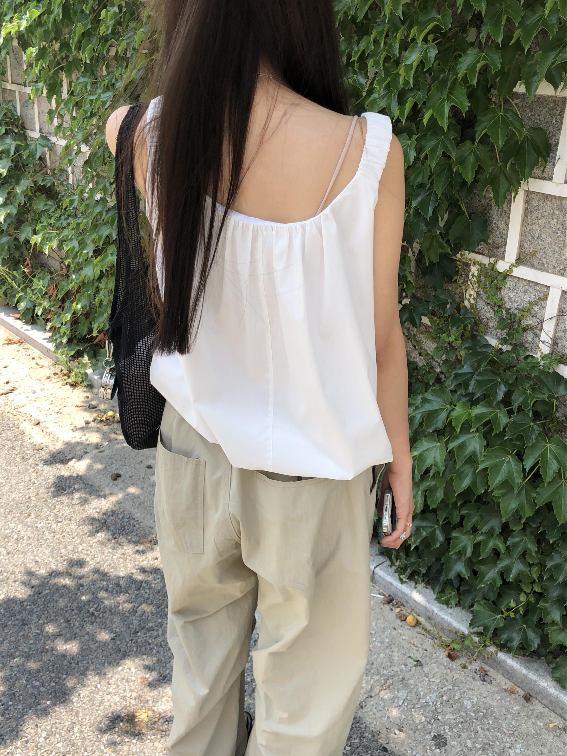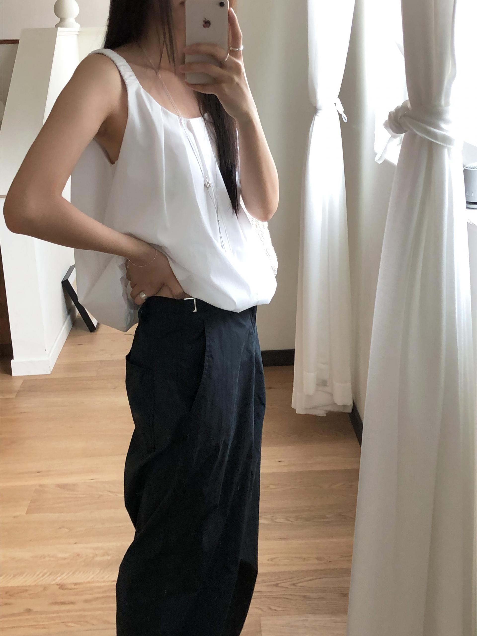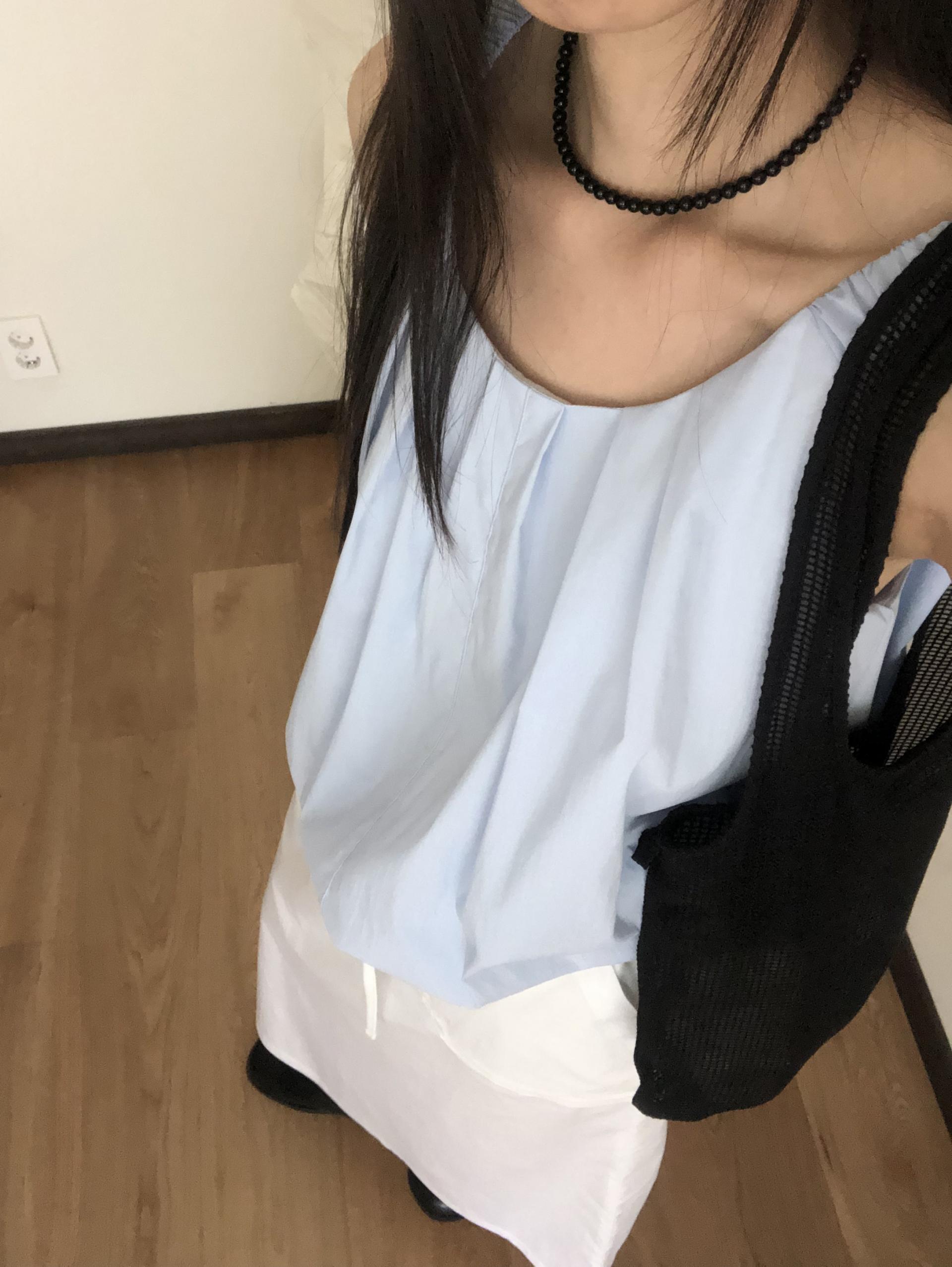 어깨 약33 가슴 47.5 암홀 27 밑단(밴딩) 약43 총장(끈 포함) 56