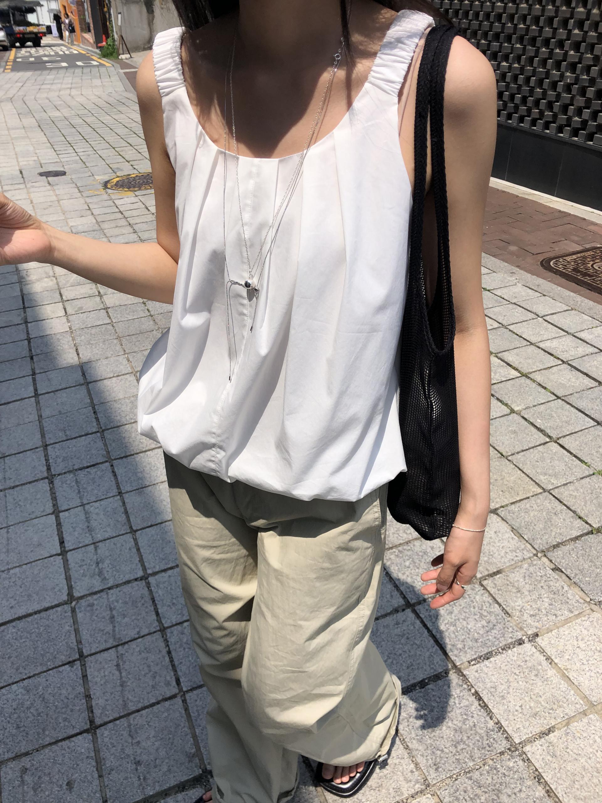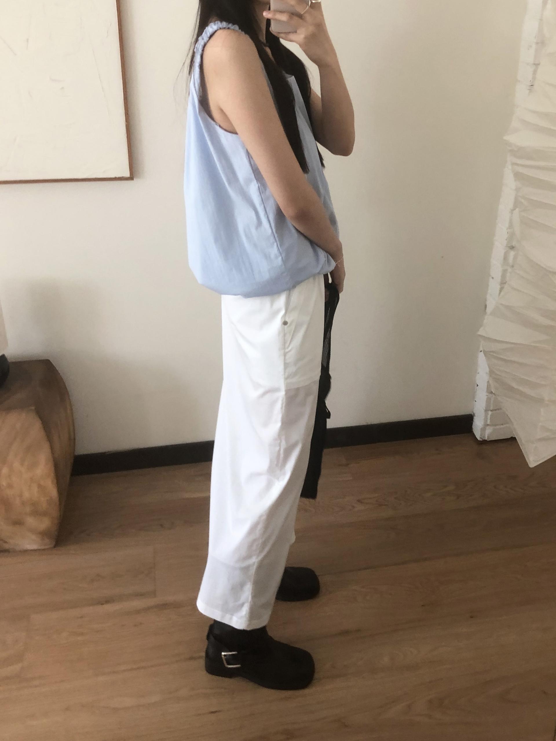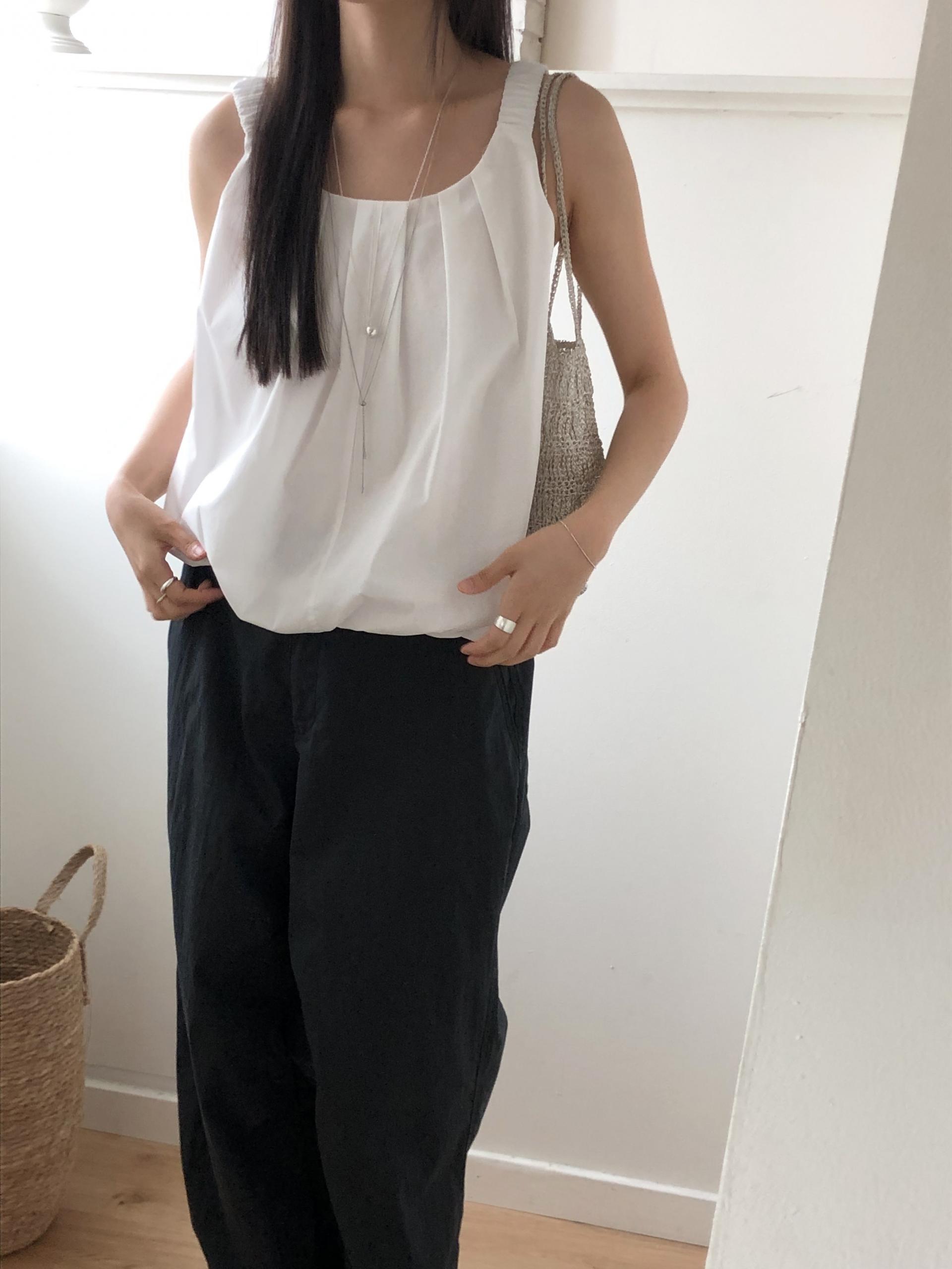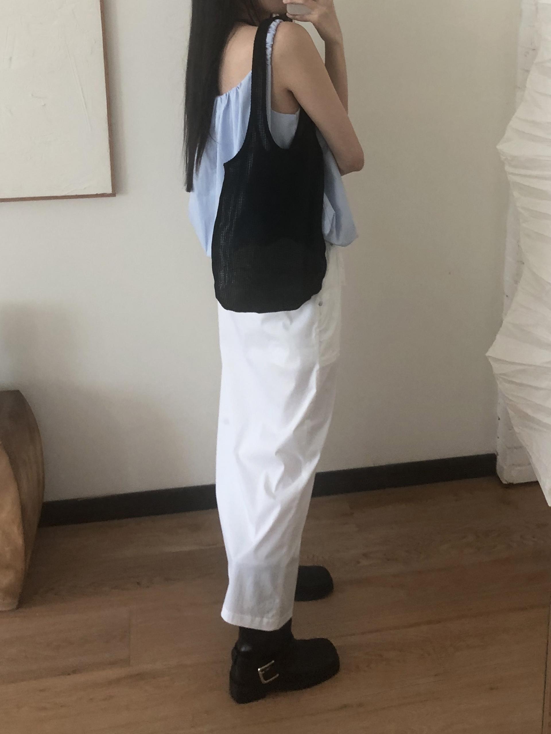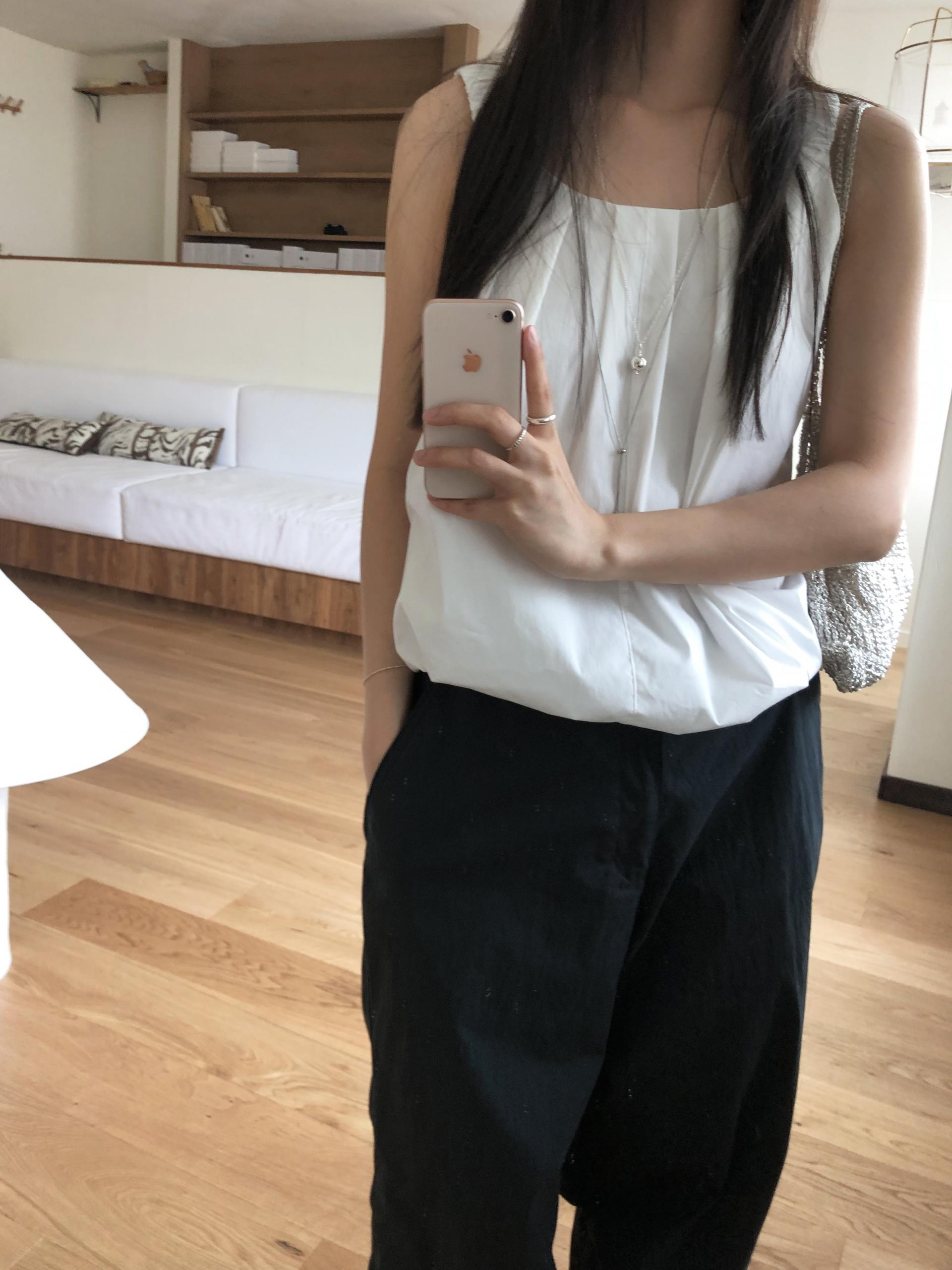 어깨 약33 가슴 47.5 암홀 27 밑단(밴딩) 약43 총장(끈 포함) 56