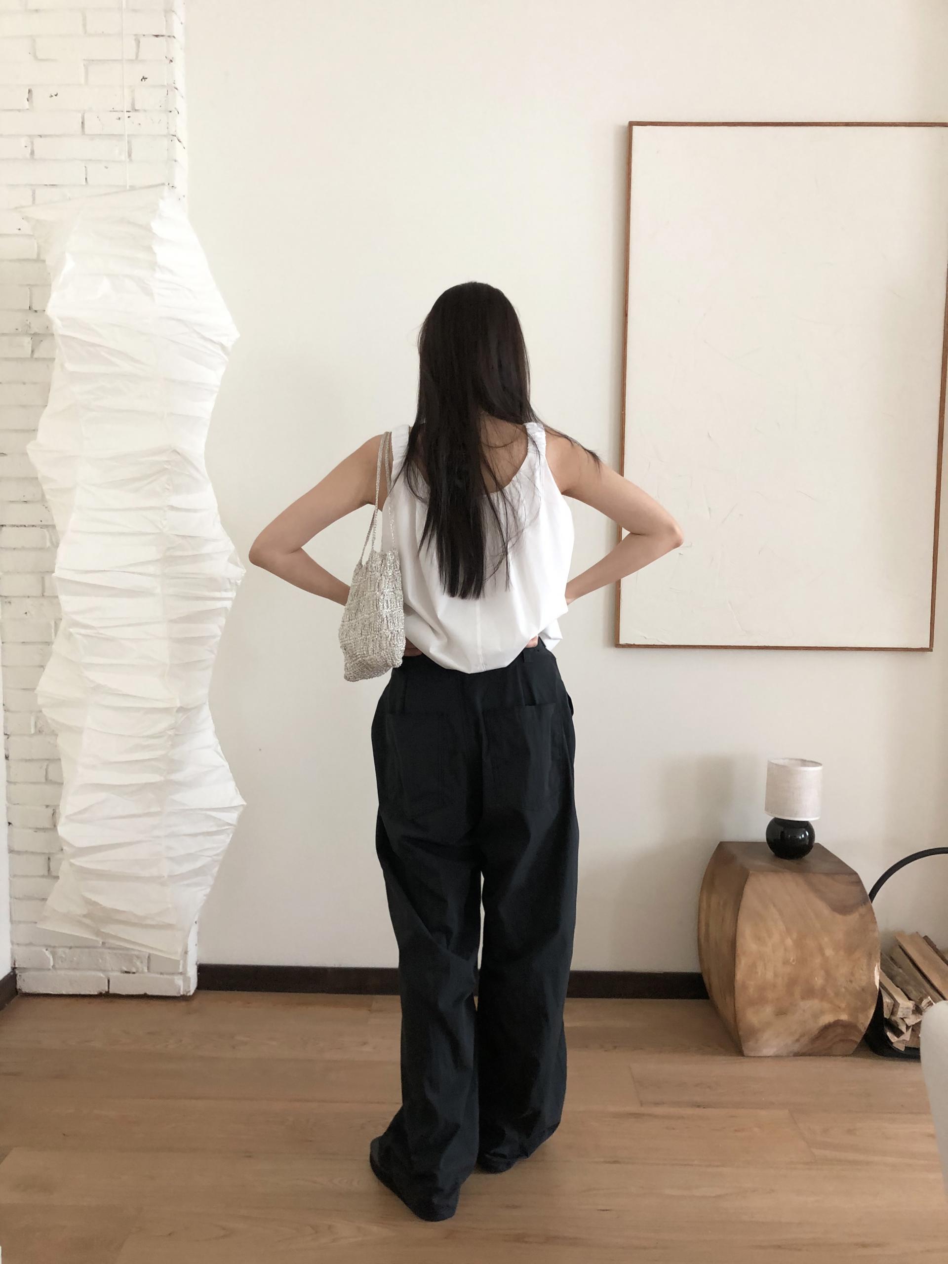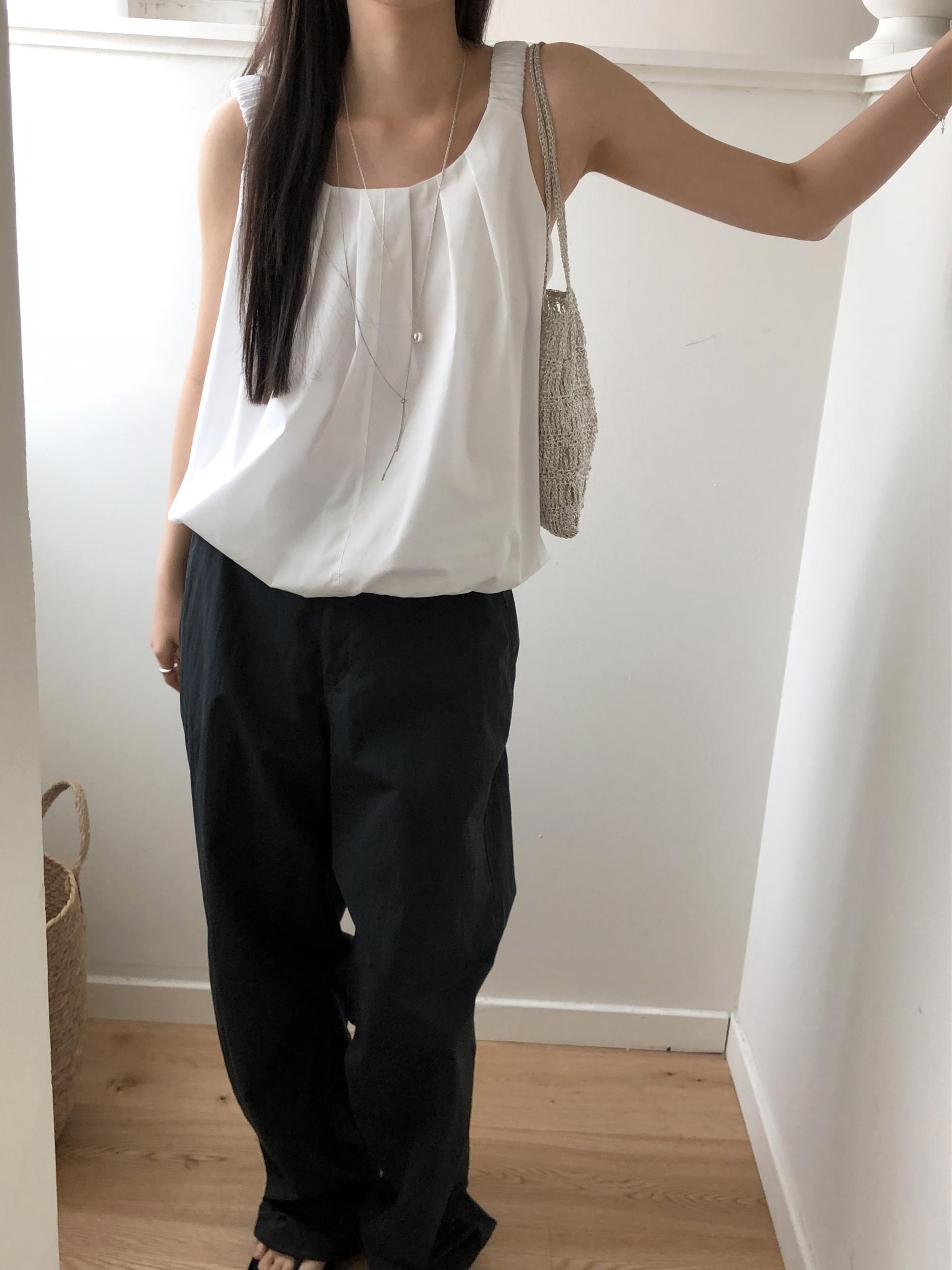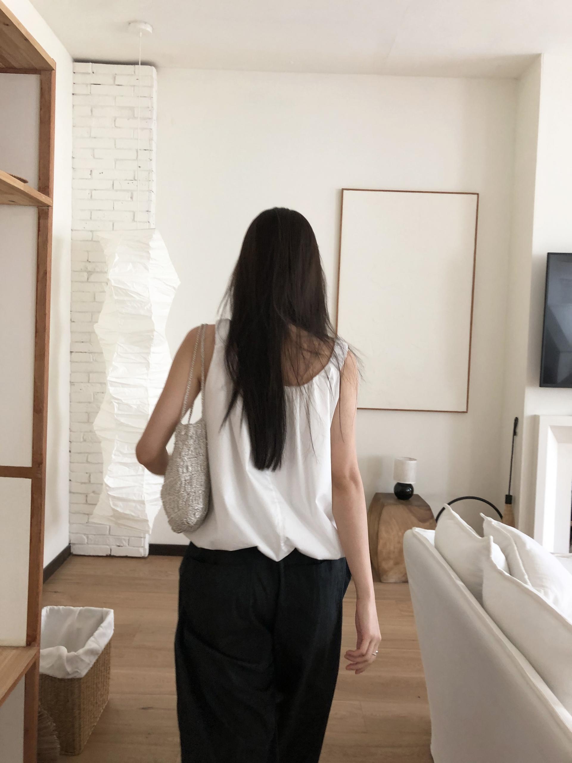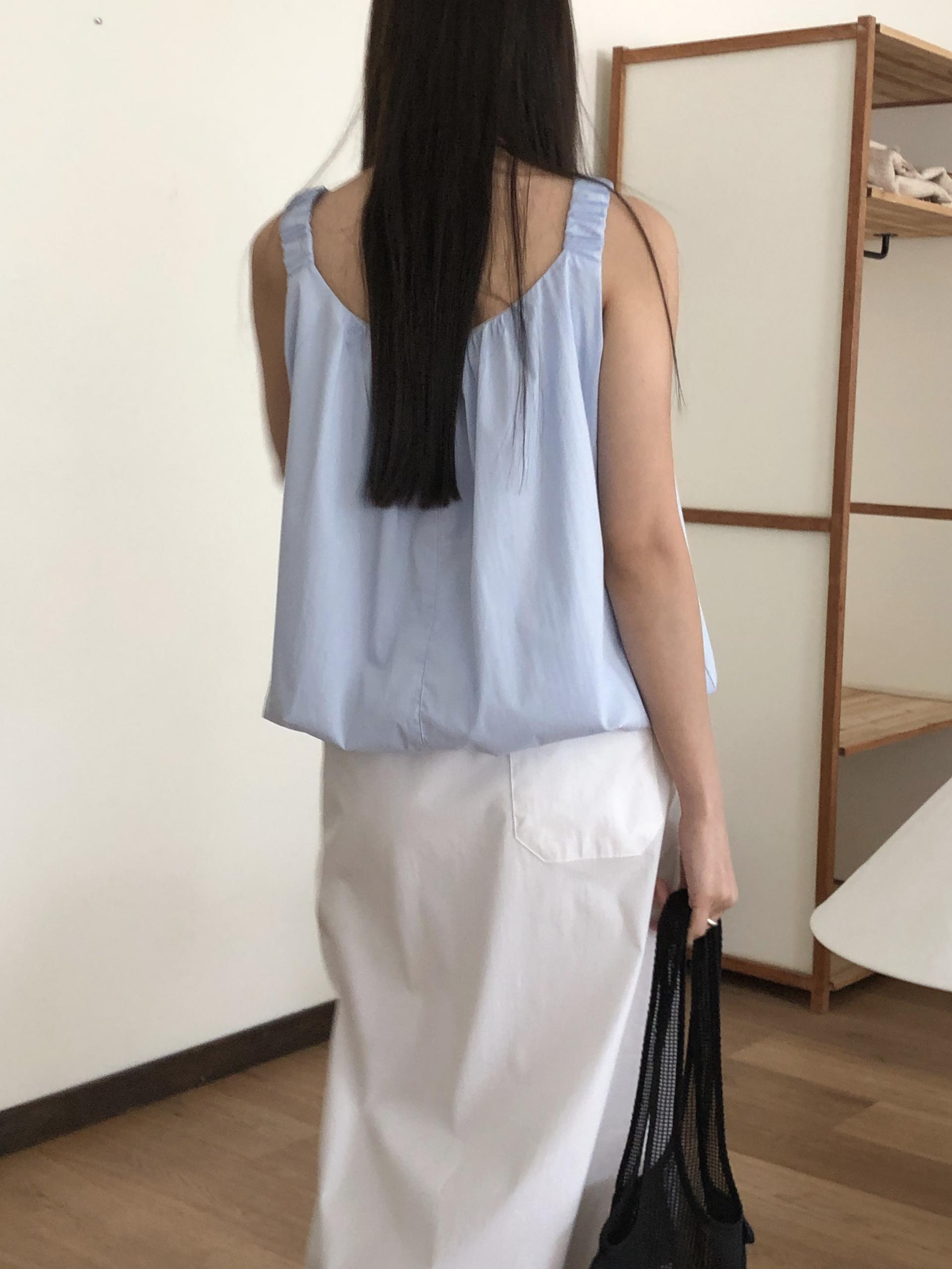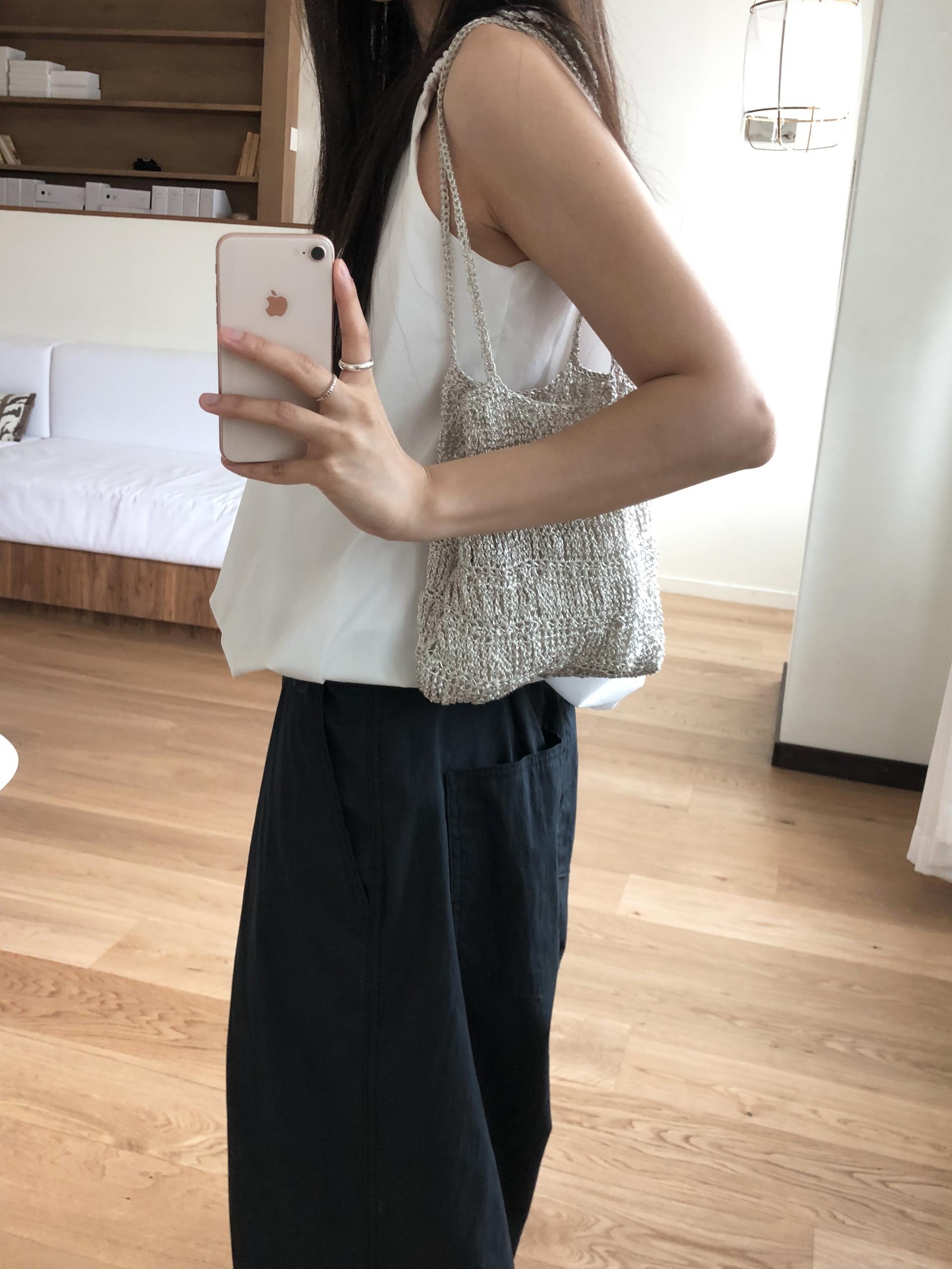 어깨 약33 가슴 47.5 암홀 27 밑단(밴딩) 약43 총장(끈 포함) 56