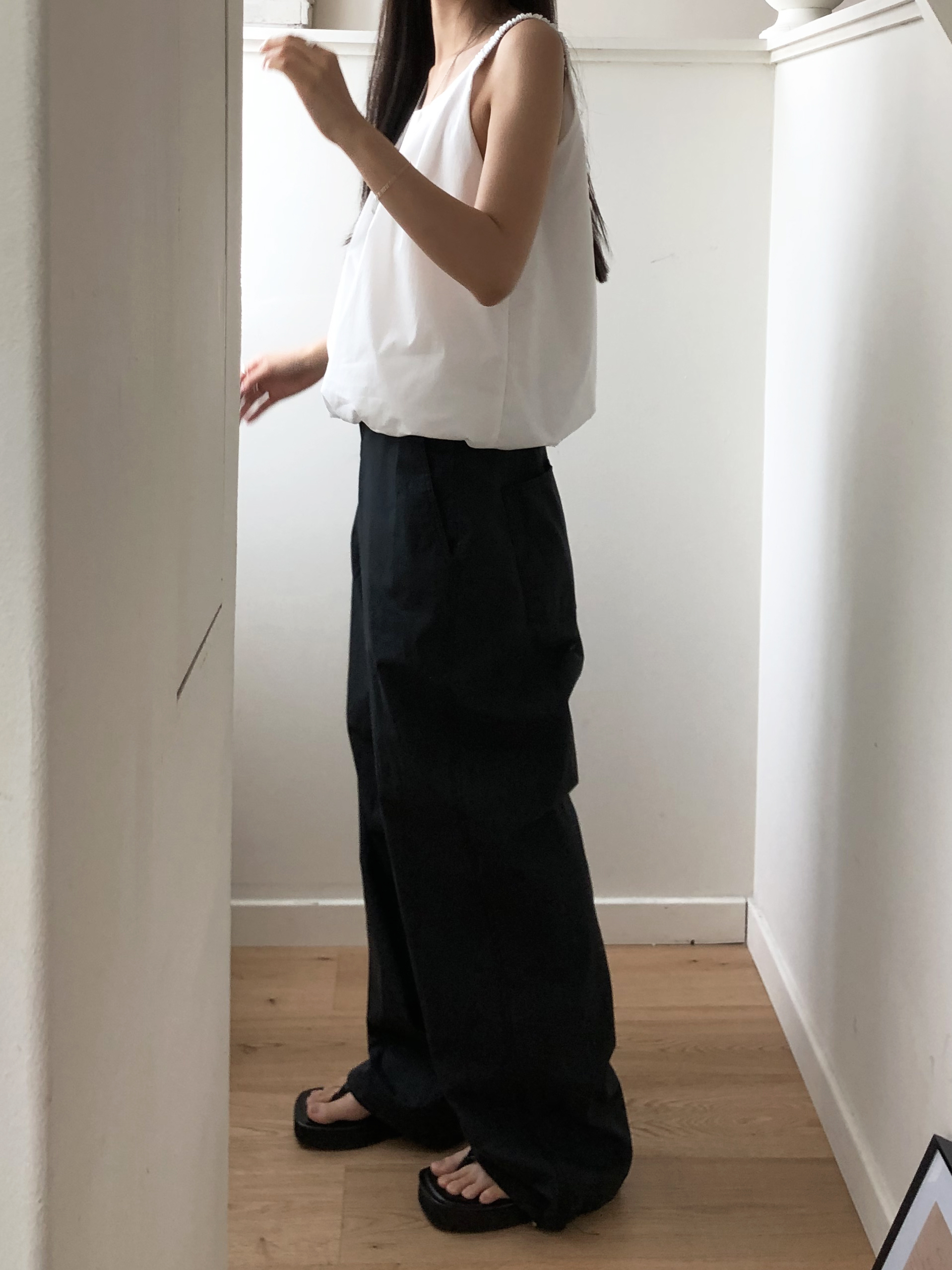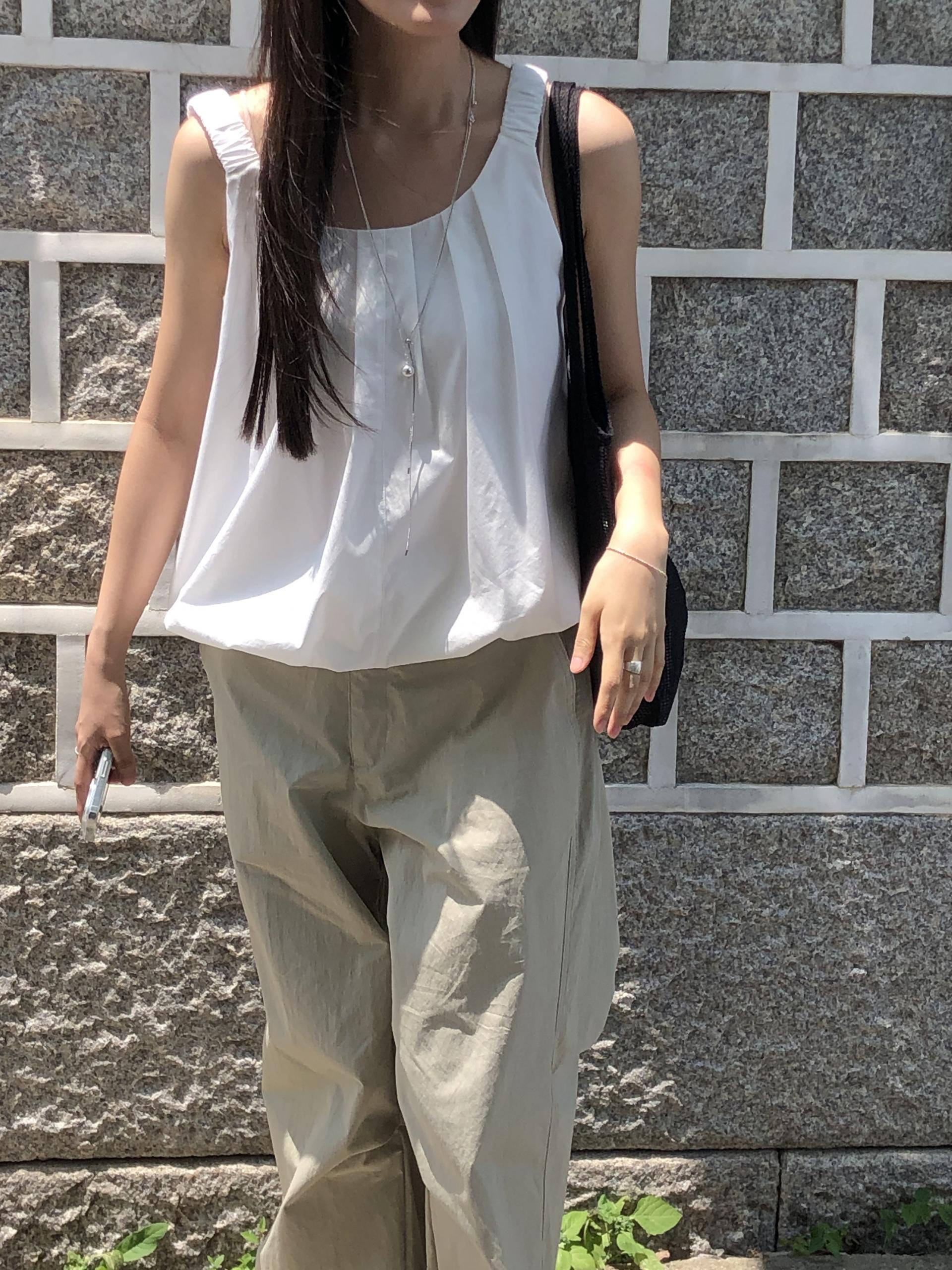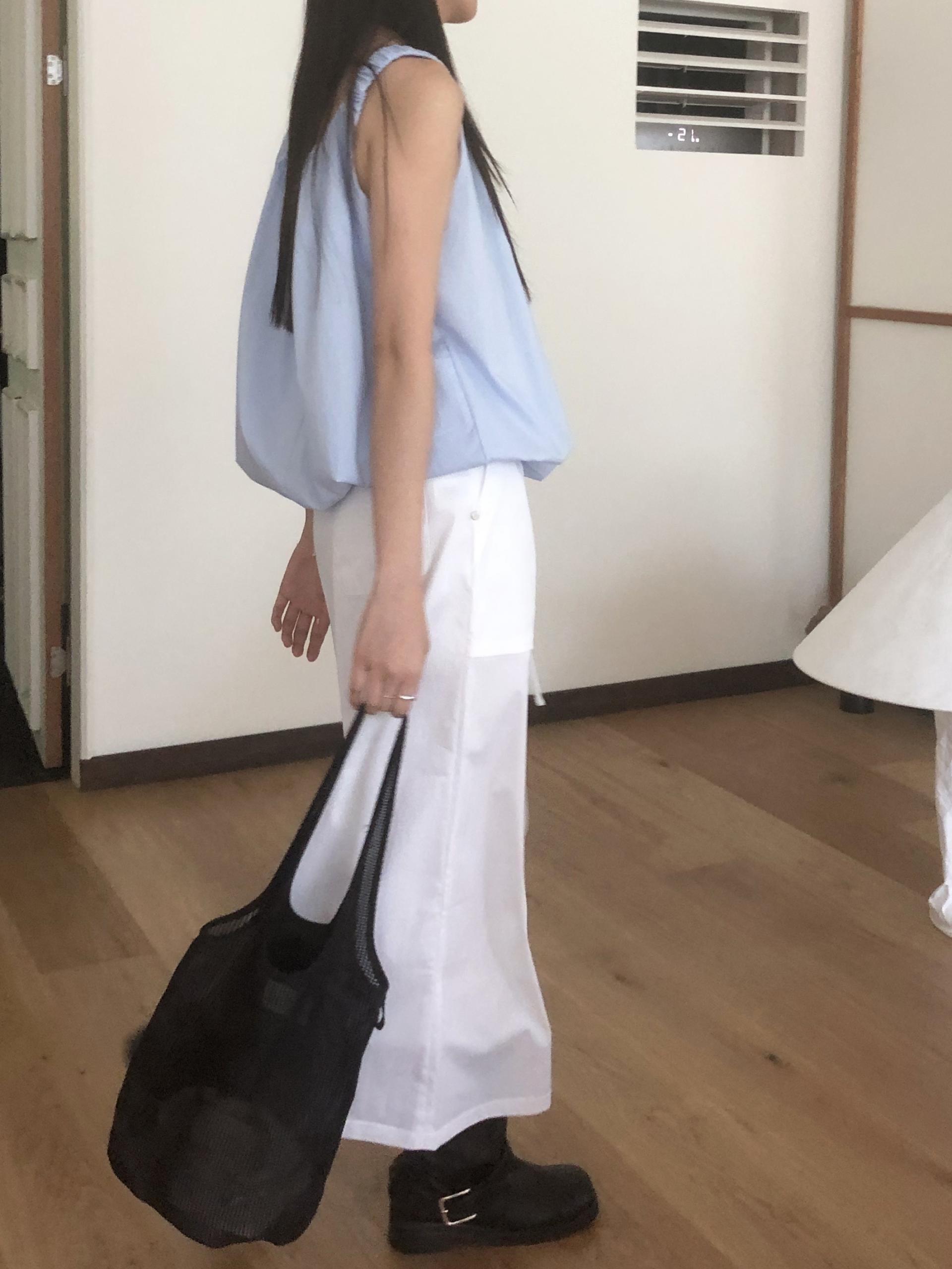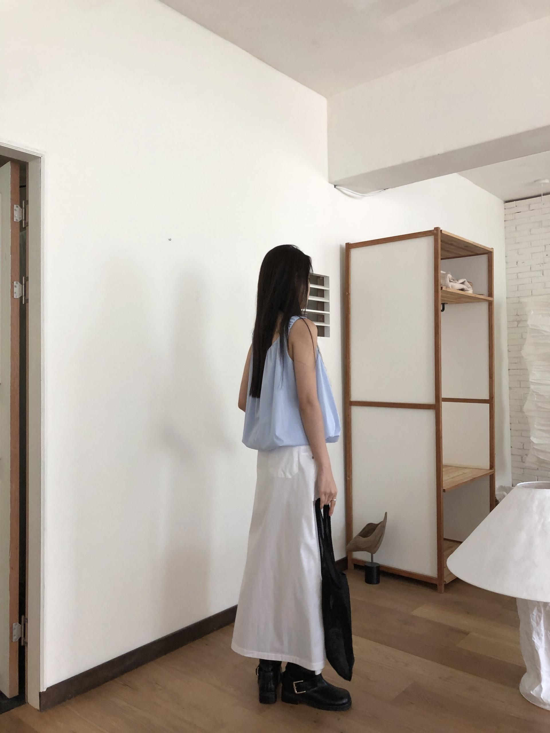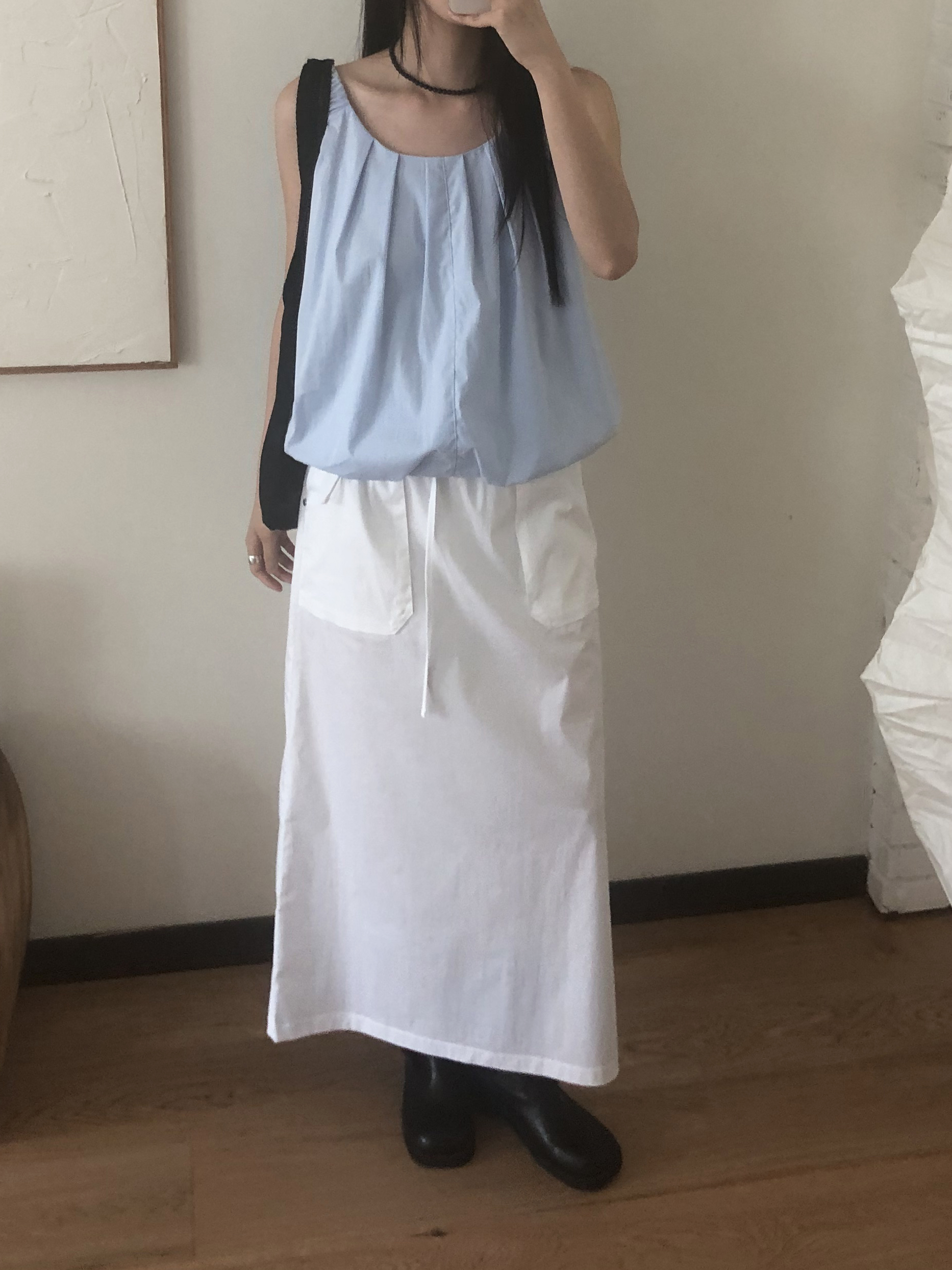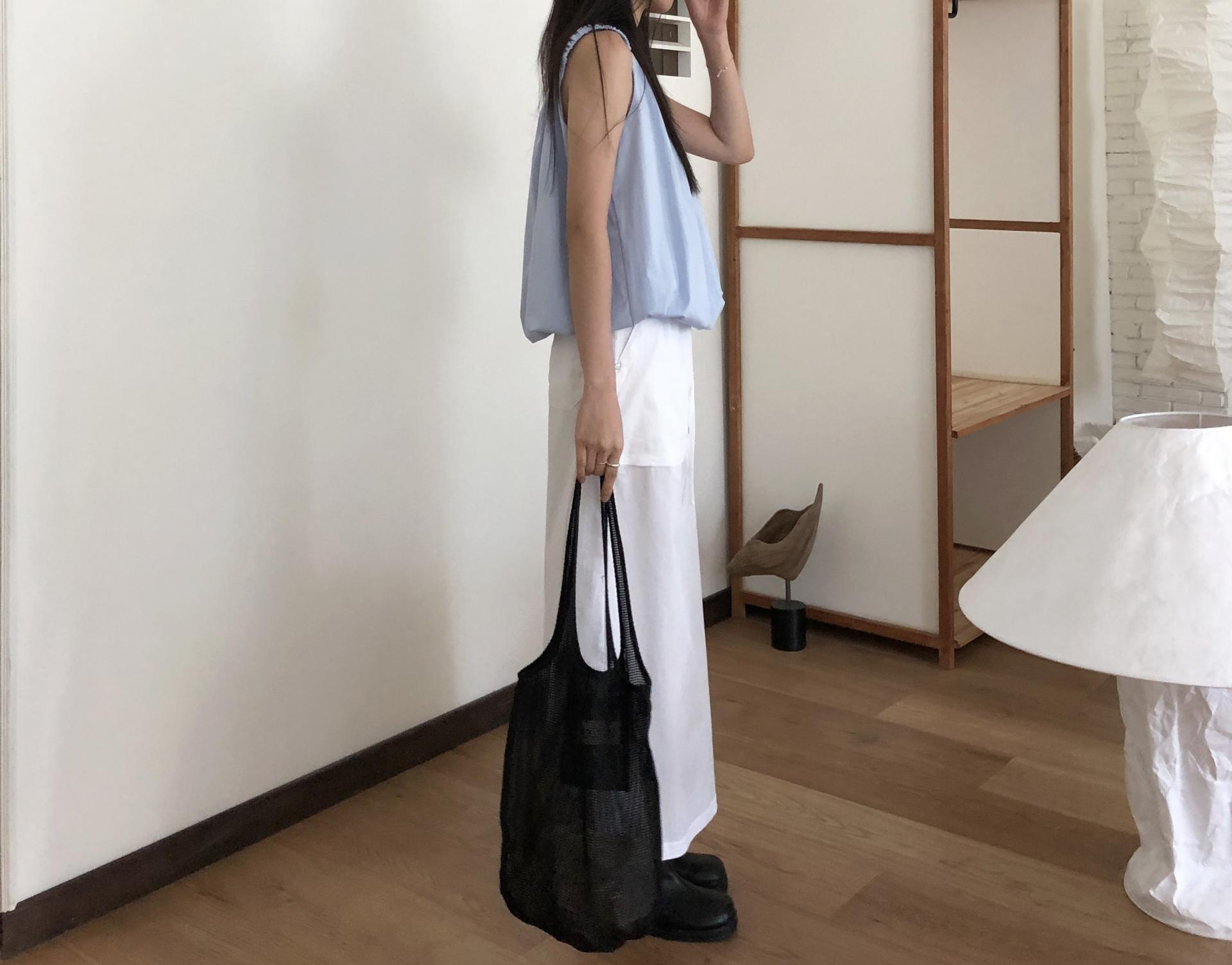 어깨 약33 가슴 47.5 암홀 27 밑단(밴딩) 약43 총장(끈 포함) 56