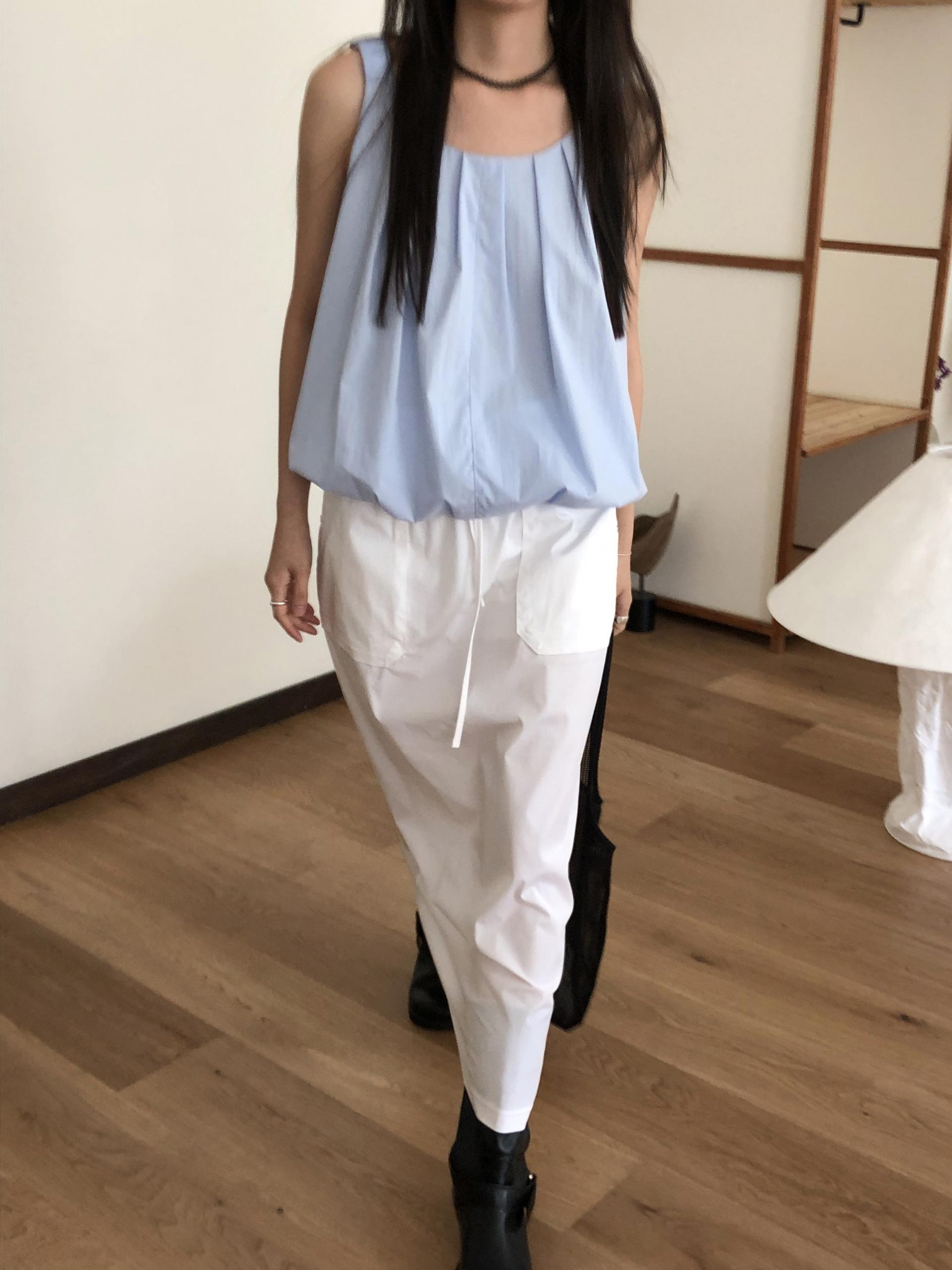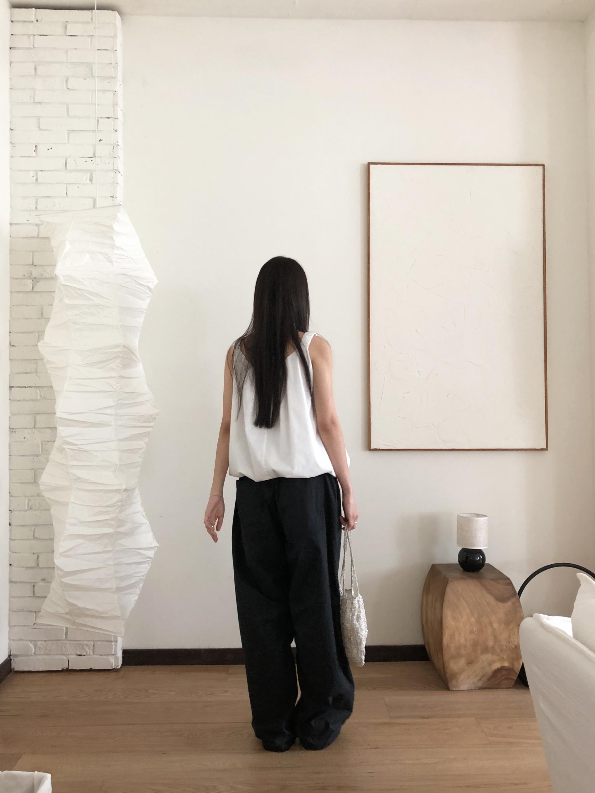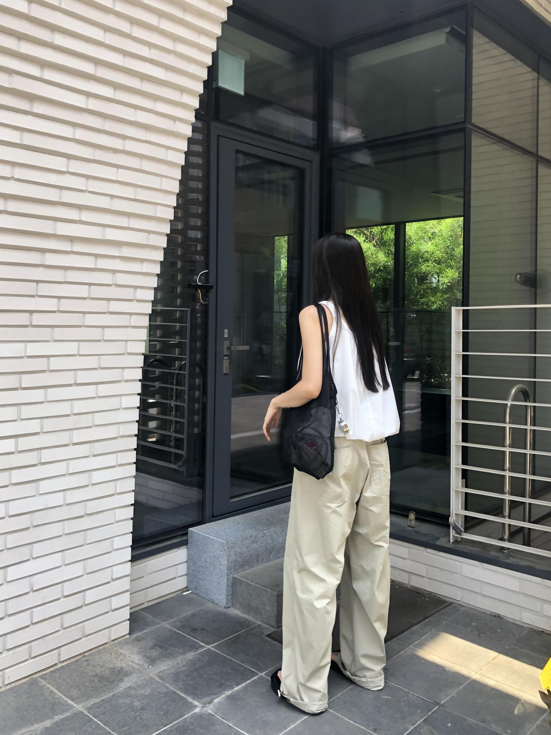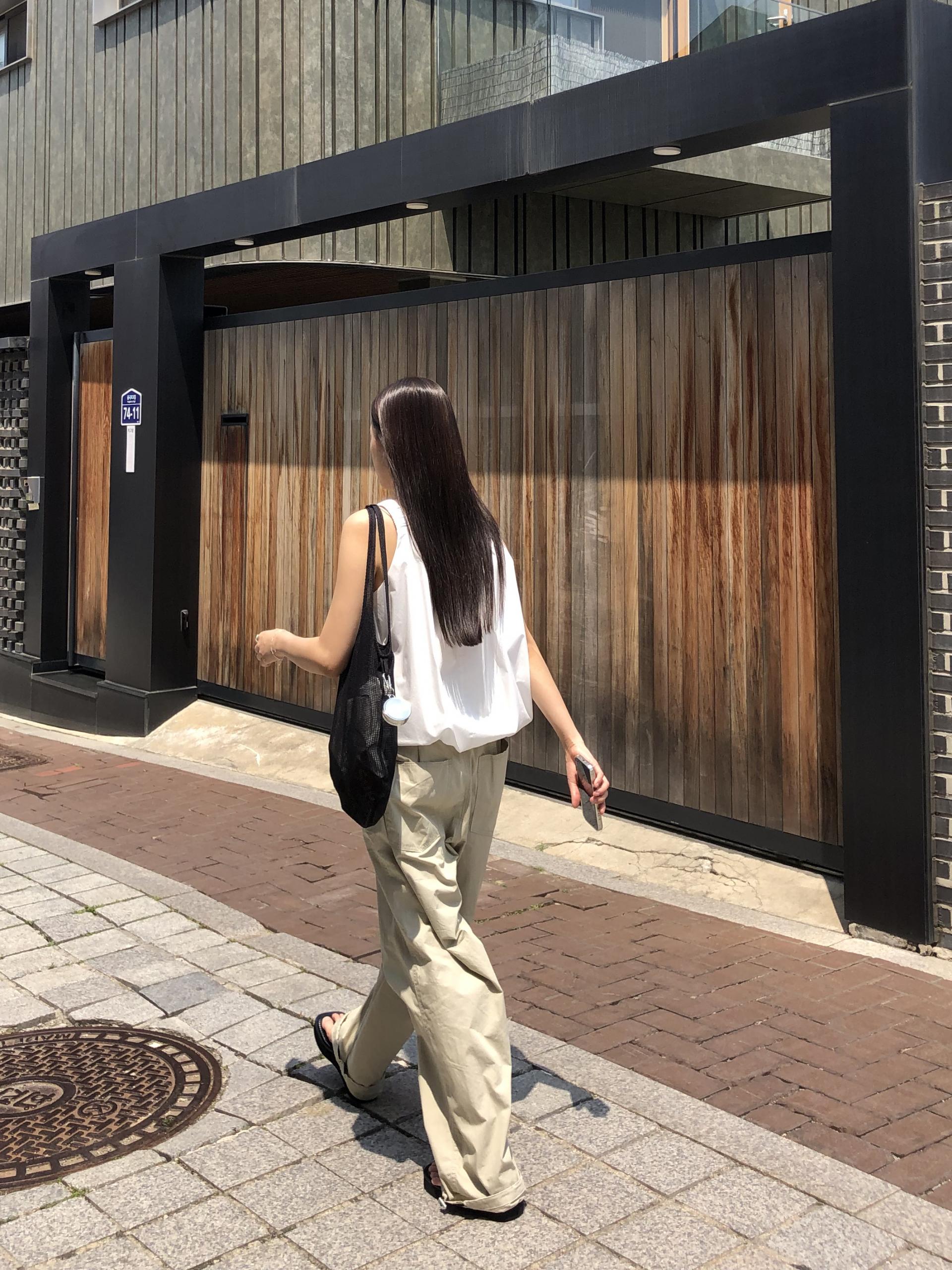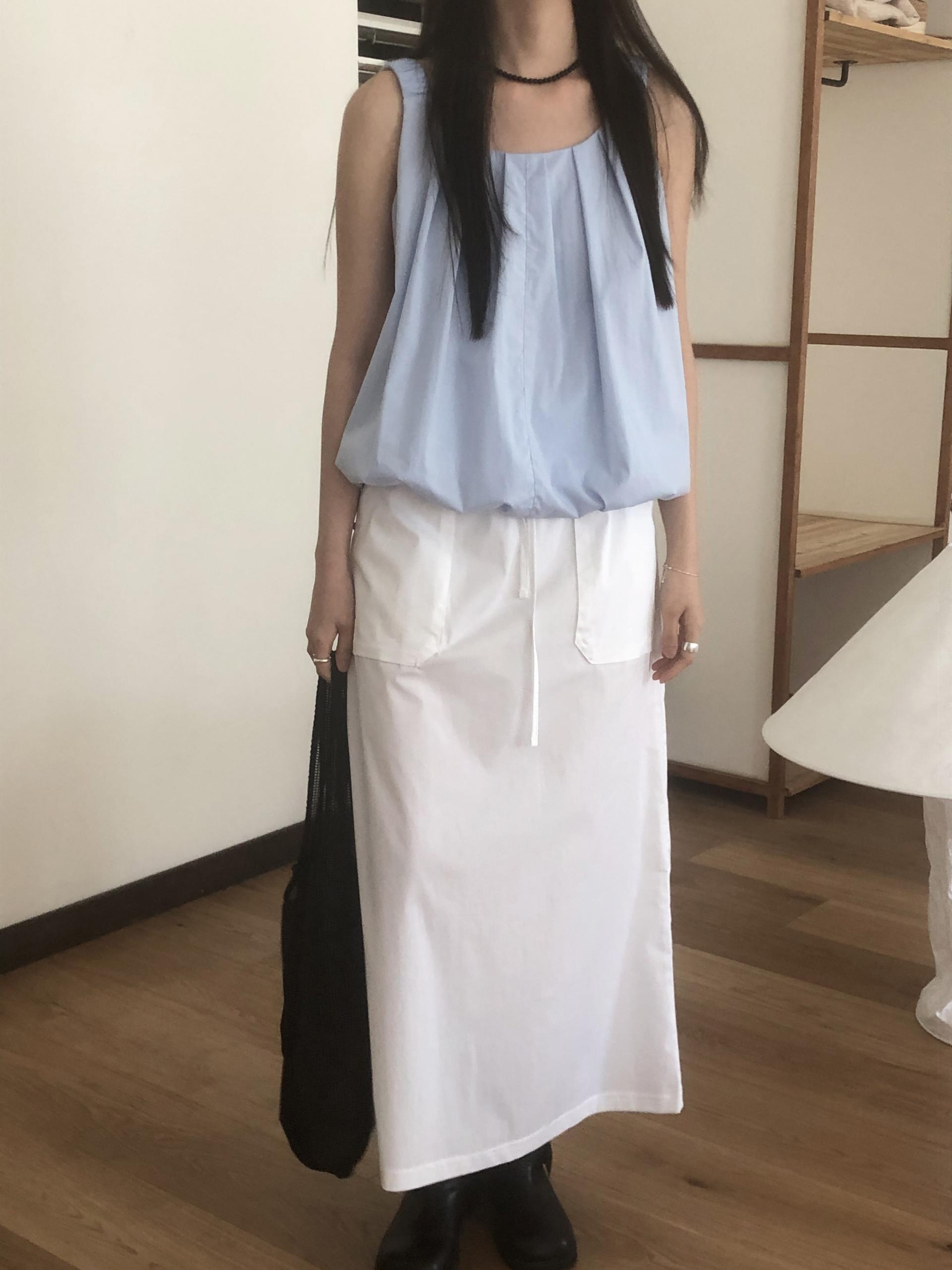 어깨 약33 가슴 47.5 암홀 27 밑단(밴딩) 약43 총장(끈 포함) 56