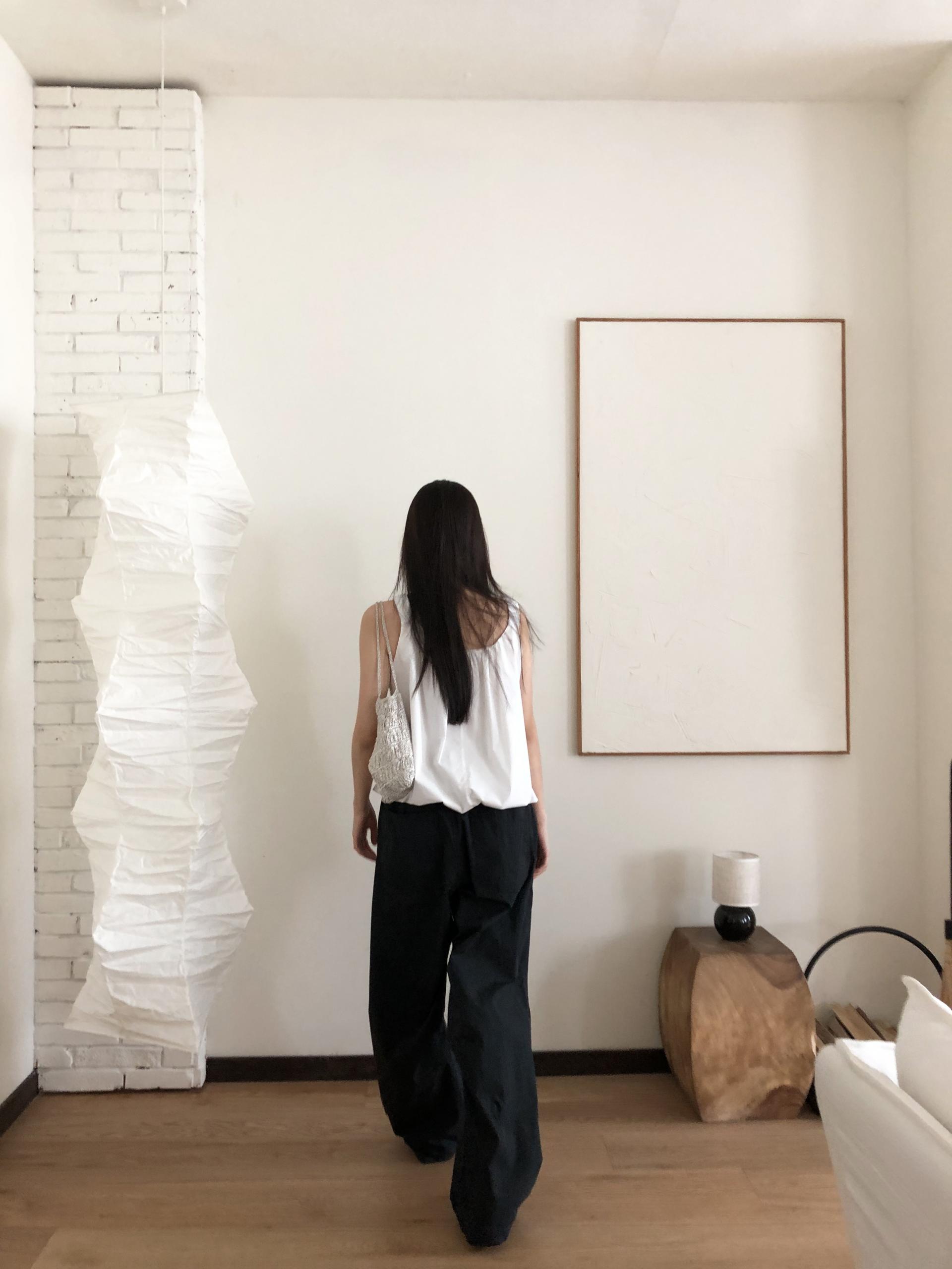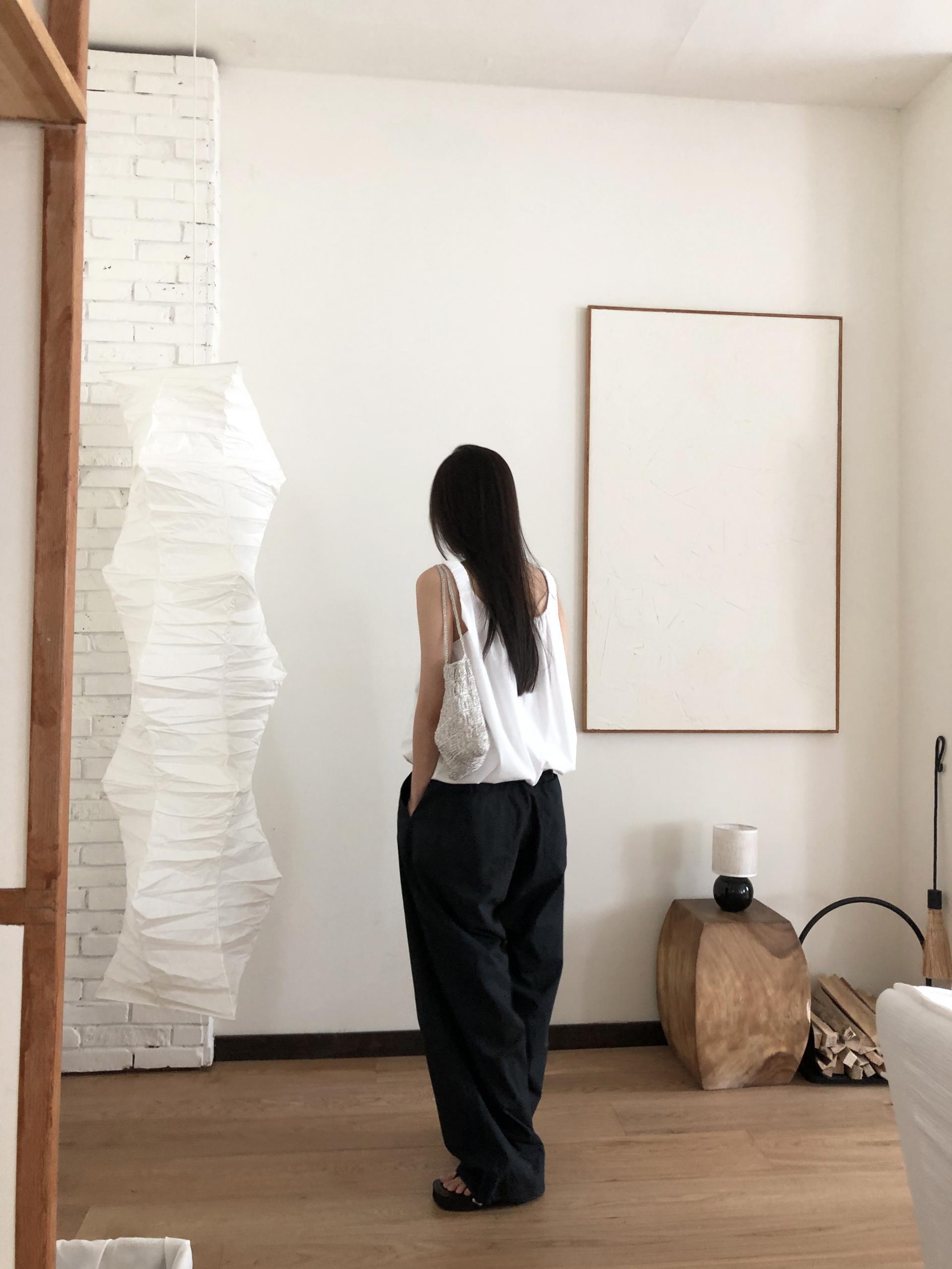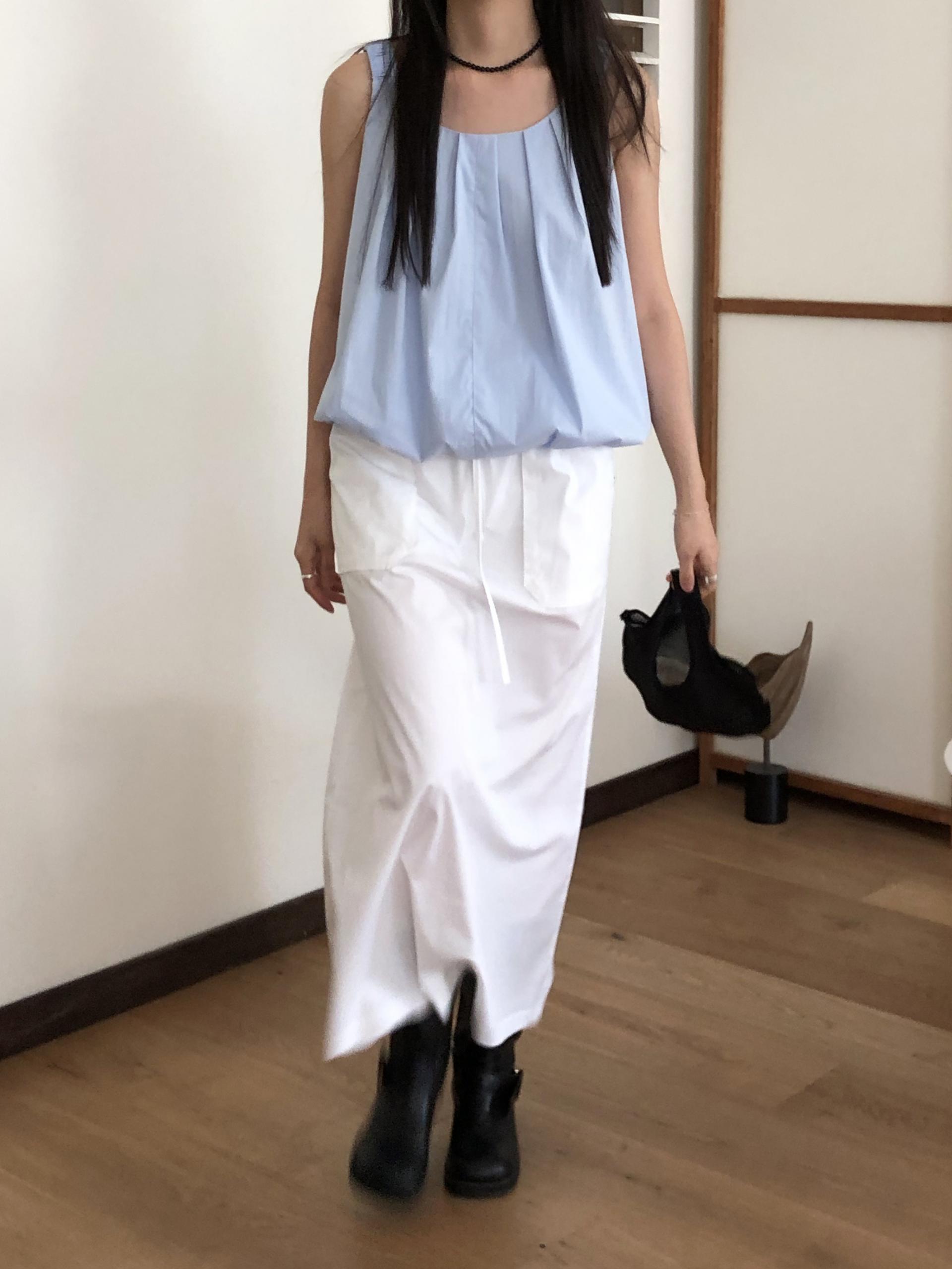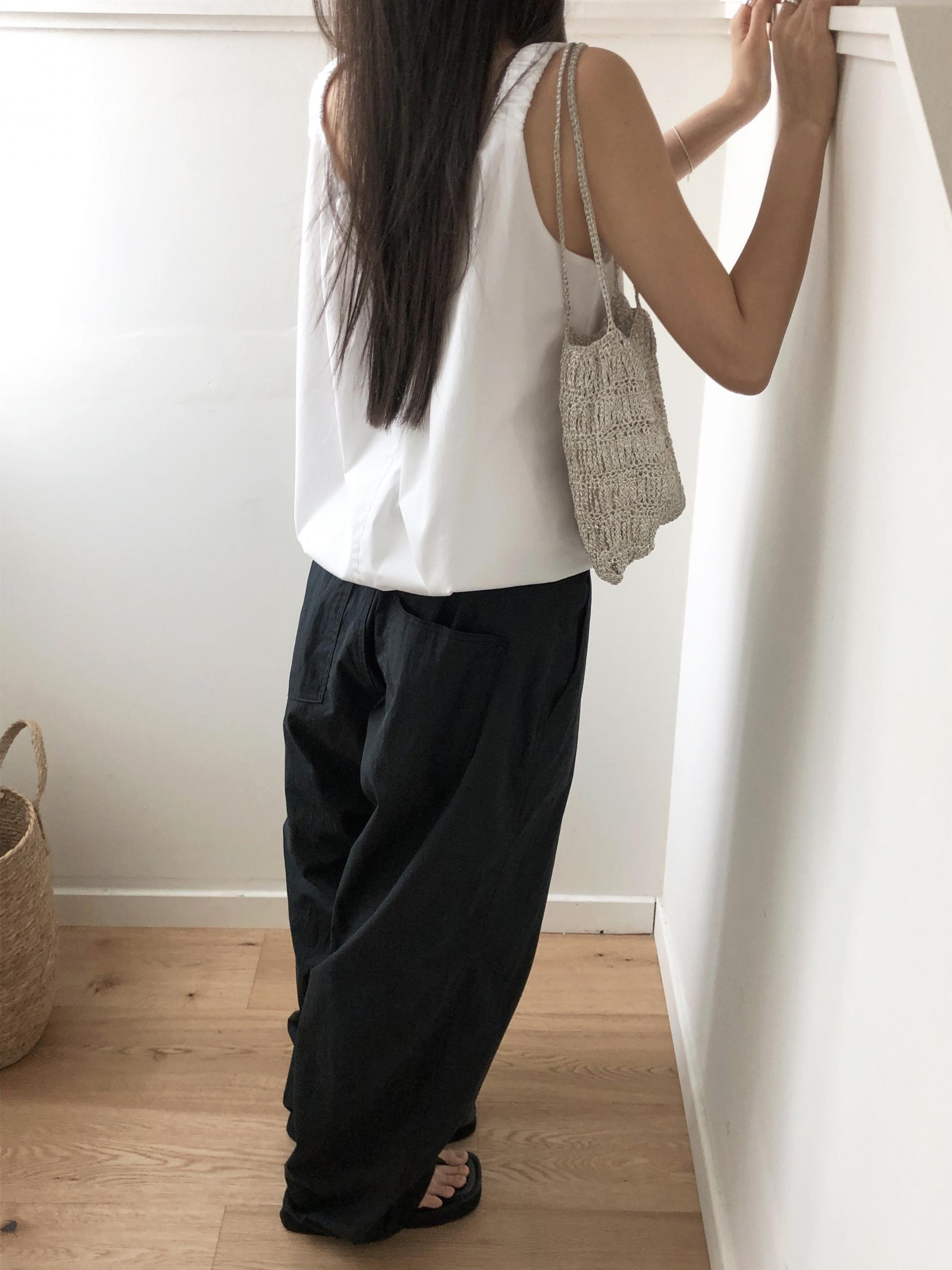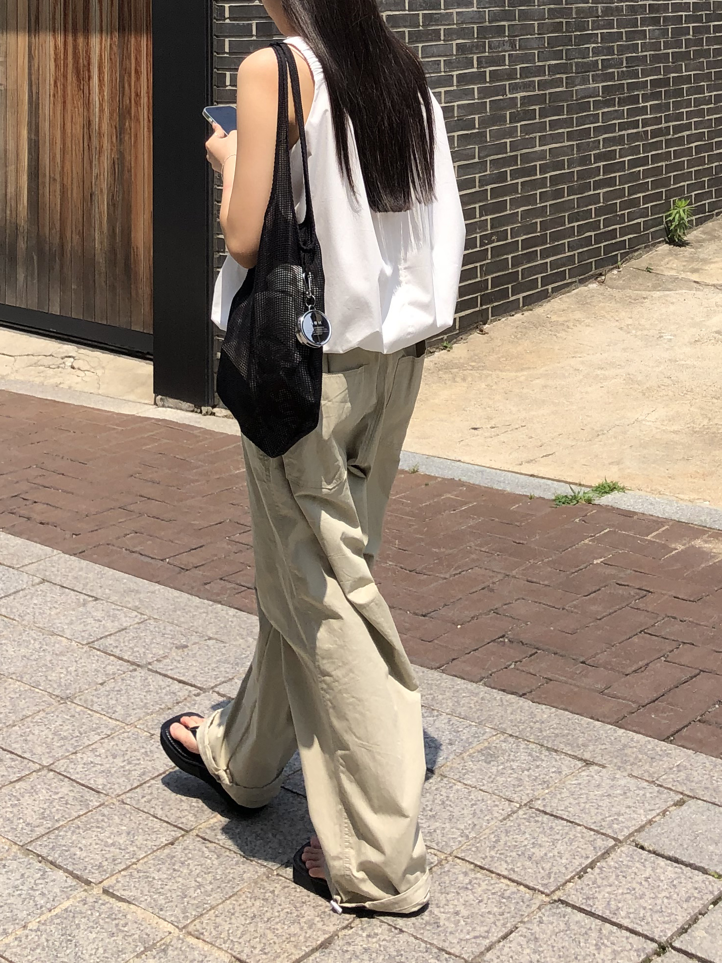 어깨 약33 가슴 47.5 암홀 27 밑단(밴딩) 약43 총장(끈 포함) 56