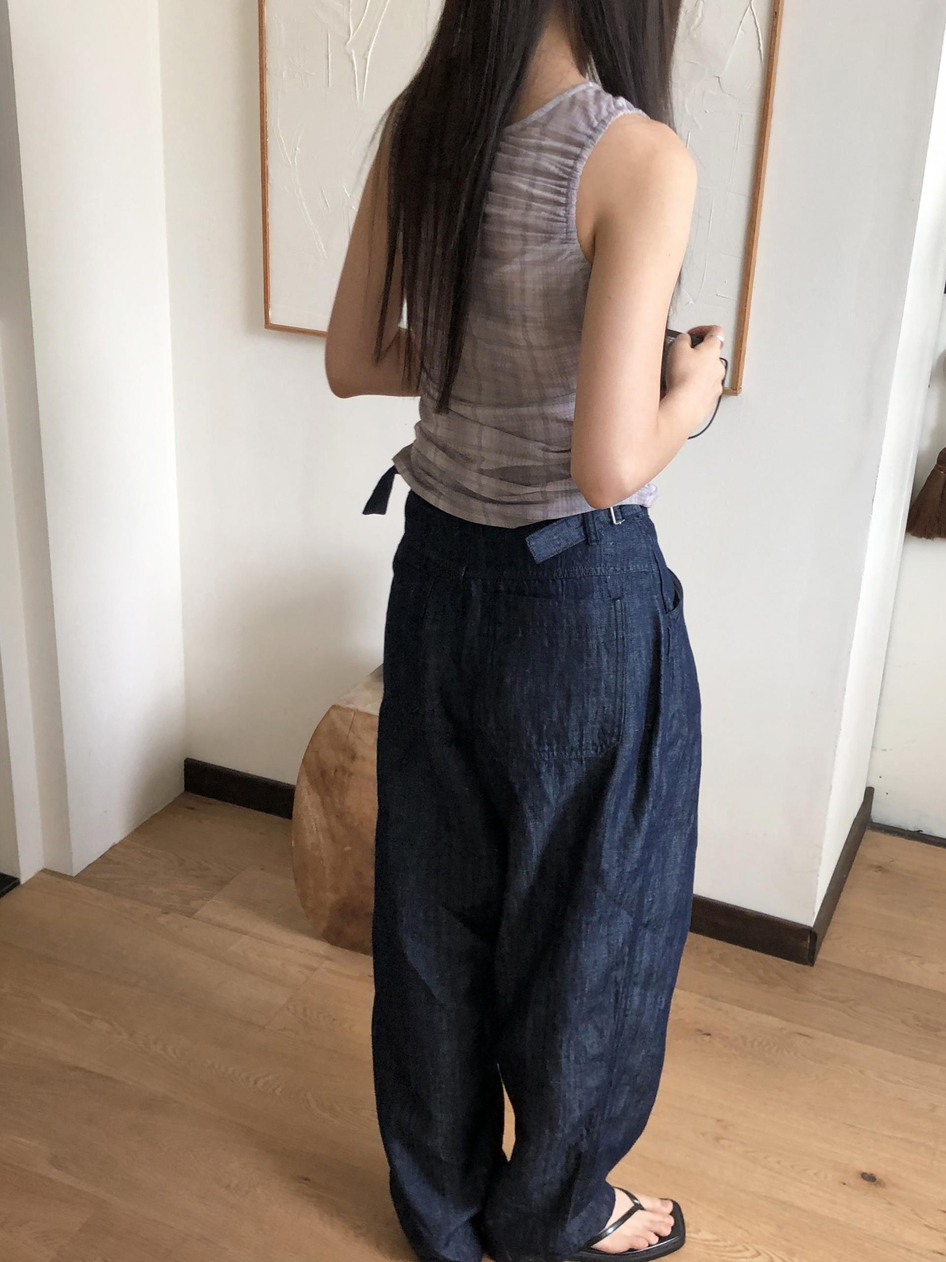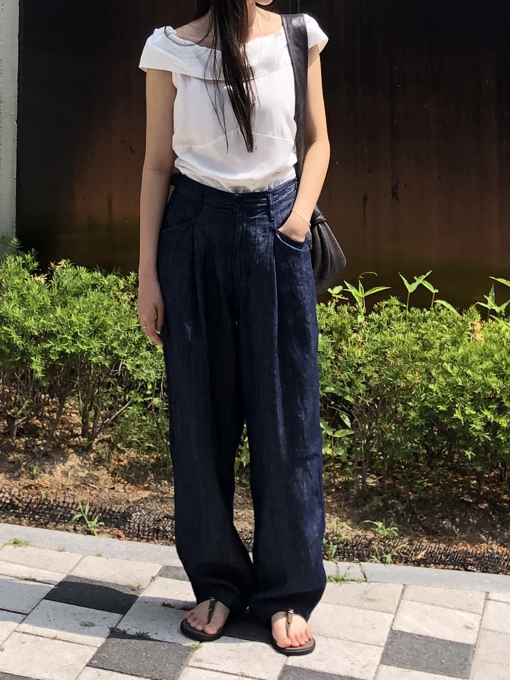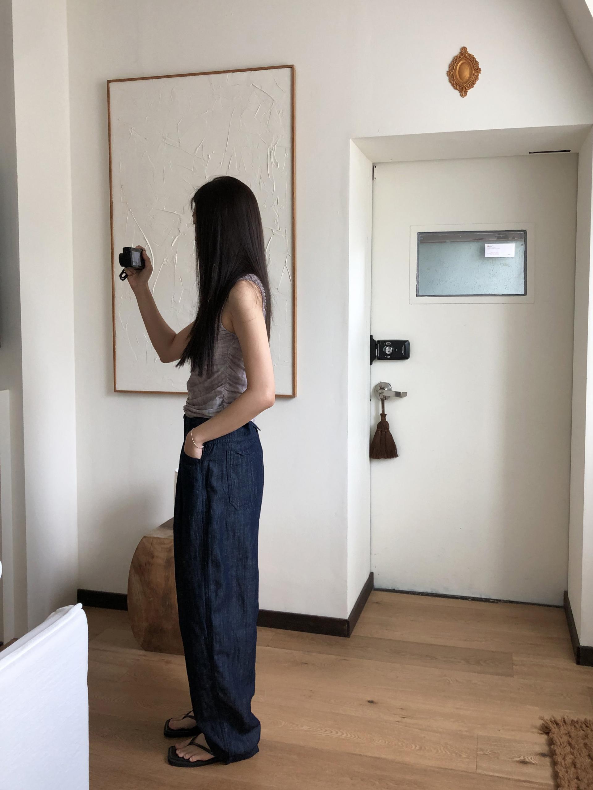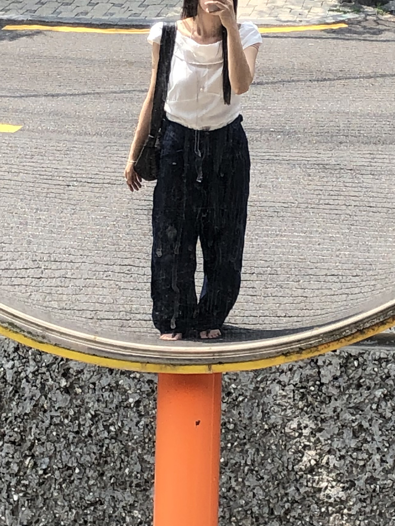 (M) 허리 35 힙 54 밑위 32 허벅지 35 밑단 21 총장 104.5