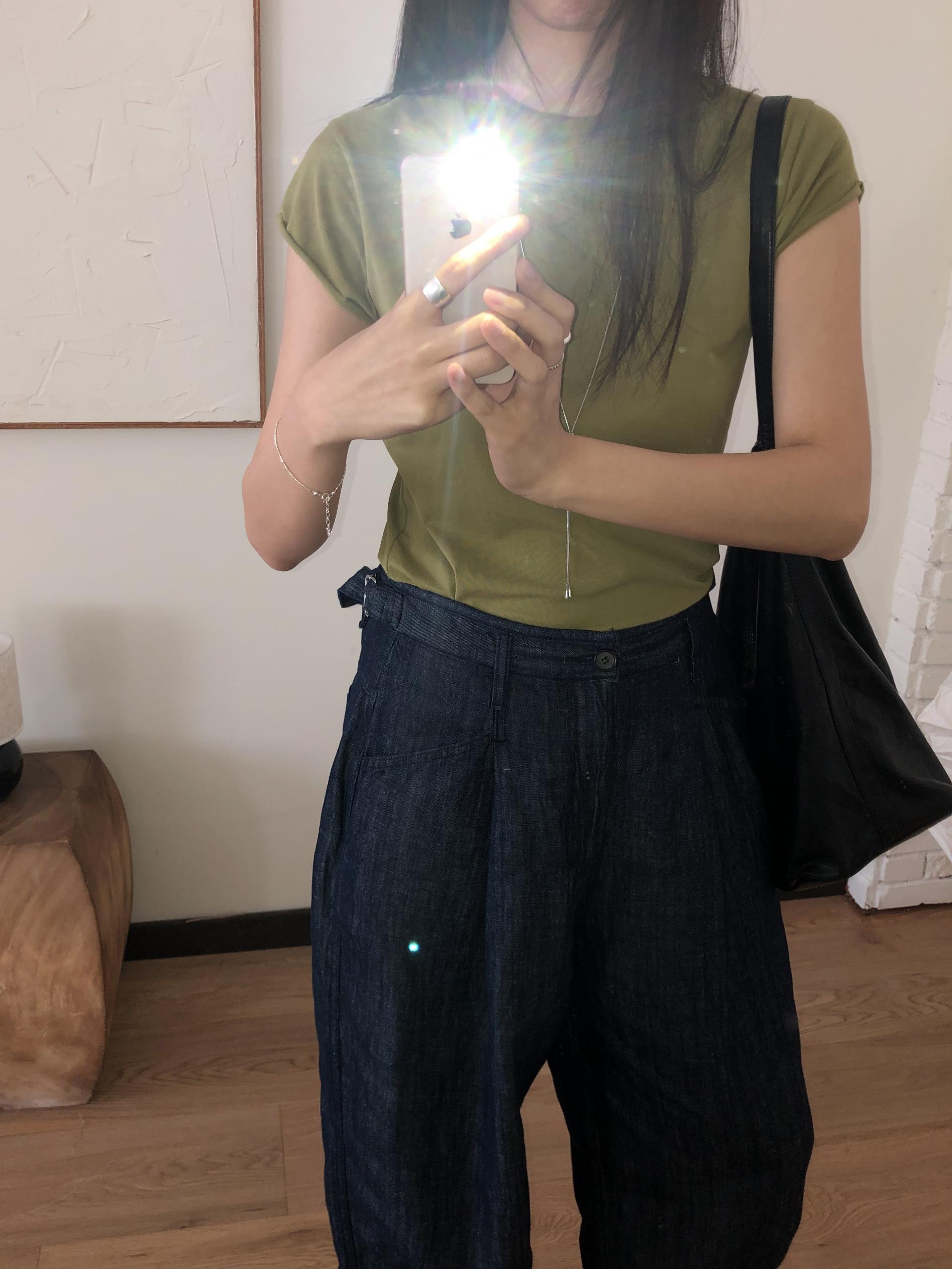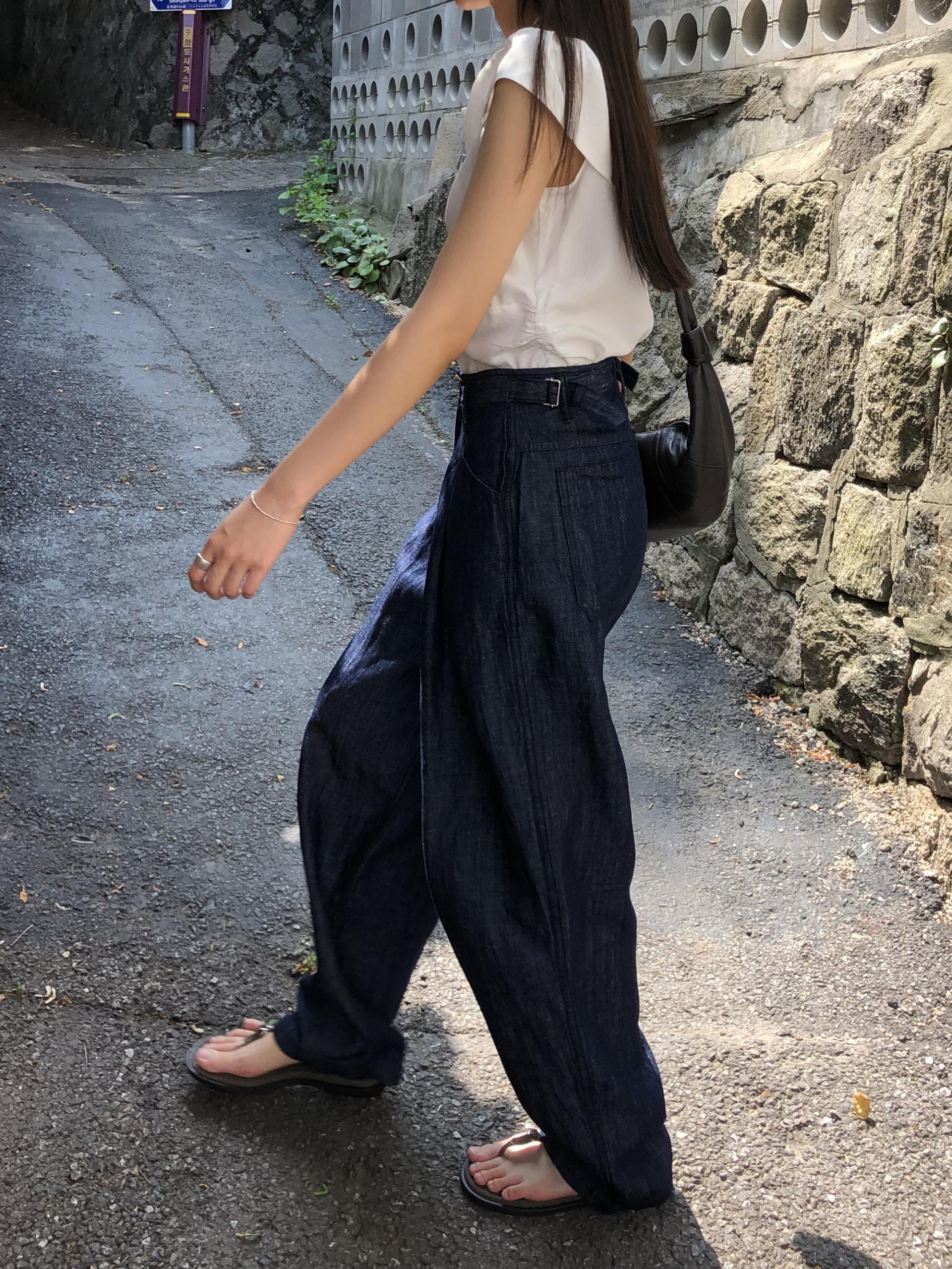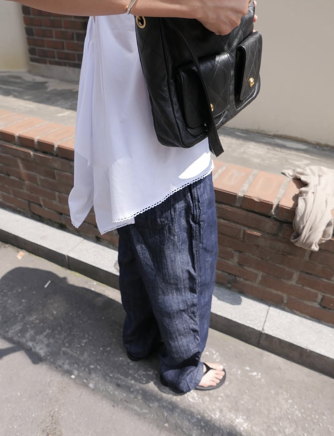 (M) 허리 35 힙 54 밑위 32 허벅지 35 밑단 21 총장 104.5