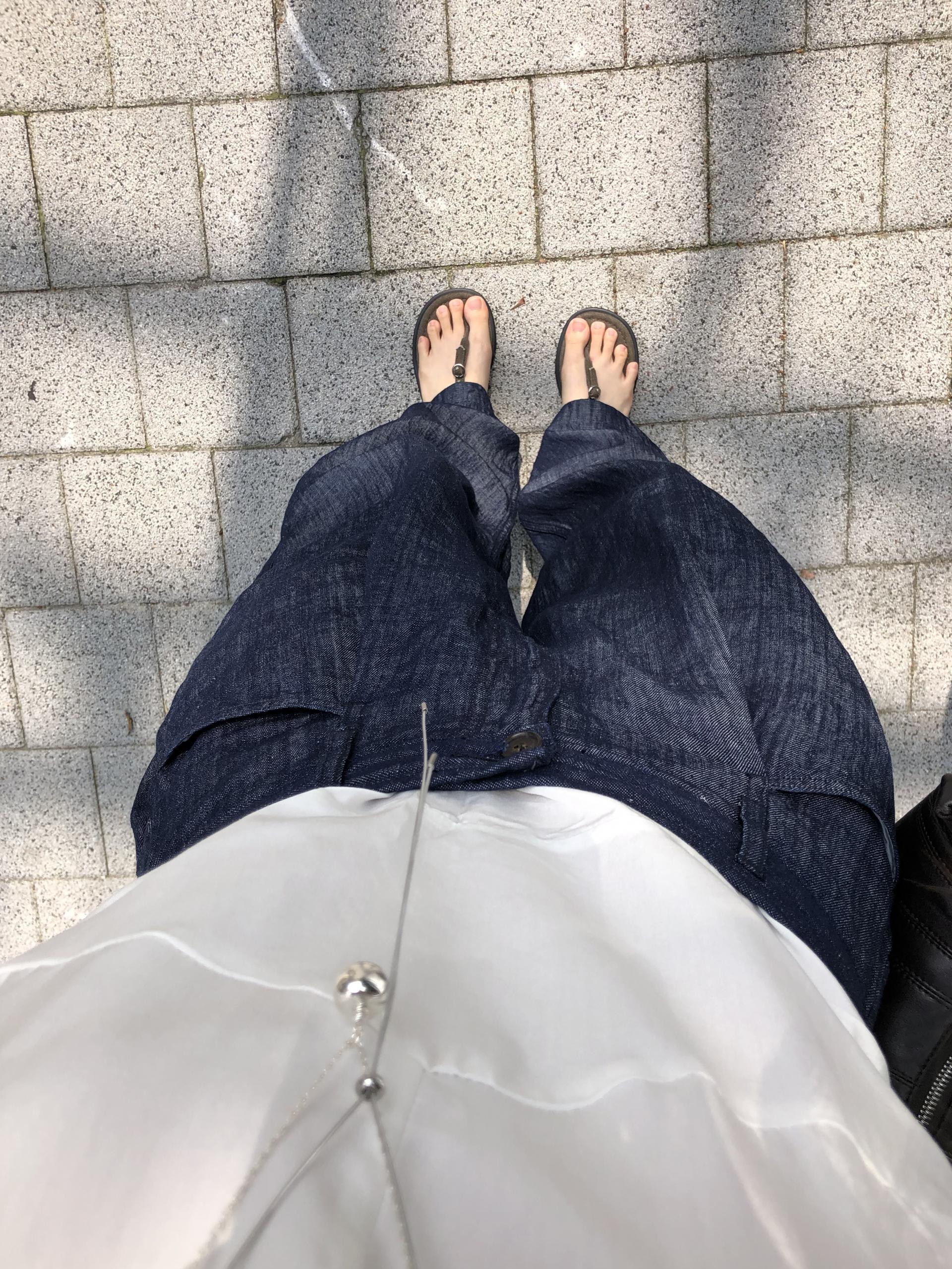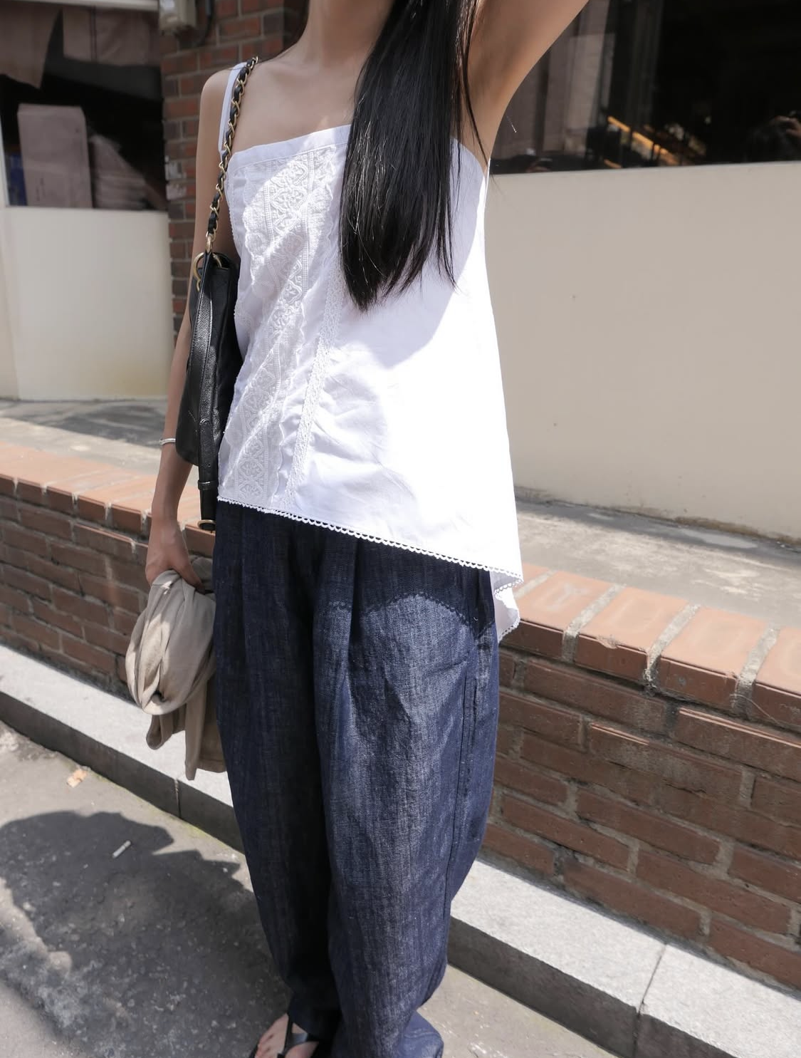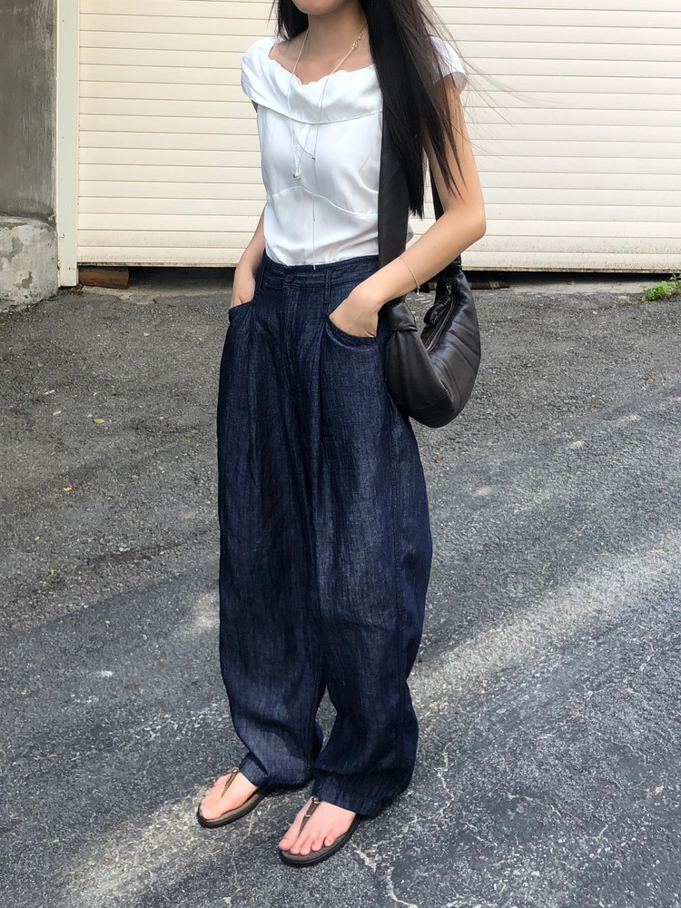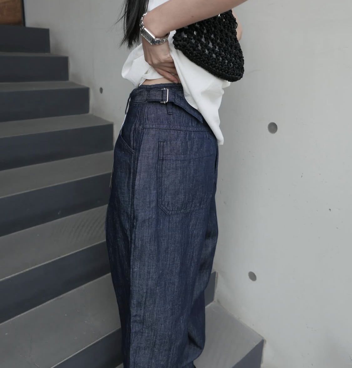 (M) 허리 35 힙 54 밑위 32 허벅지 35 밑단 21 총장 104.5