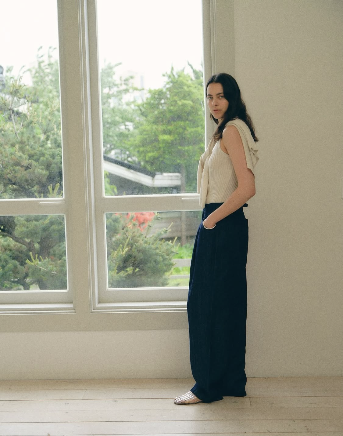 (S) 허리 33.5 힙 52.8 밑위 31 허벅지 33 밑단 20 총장 104