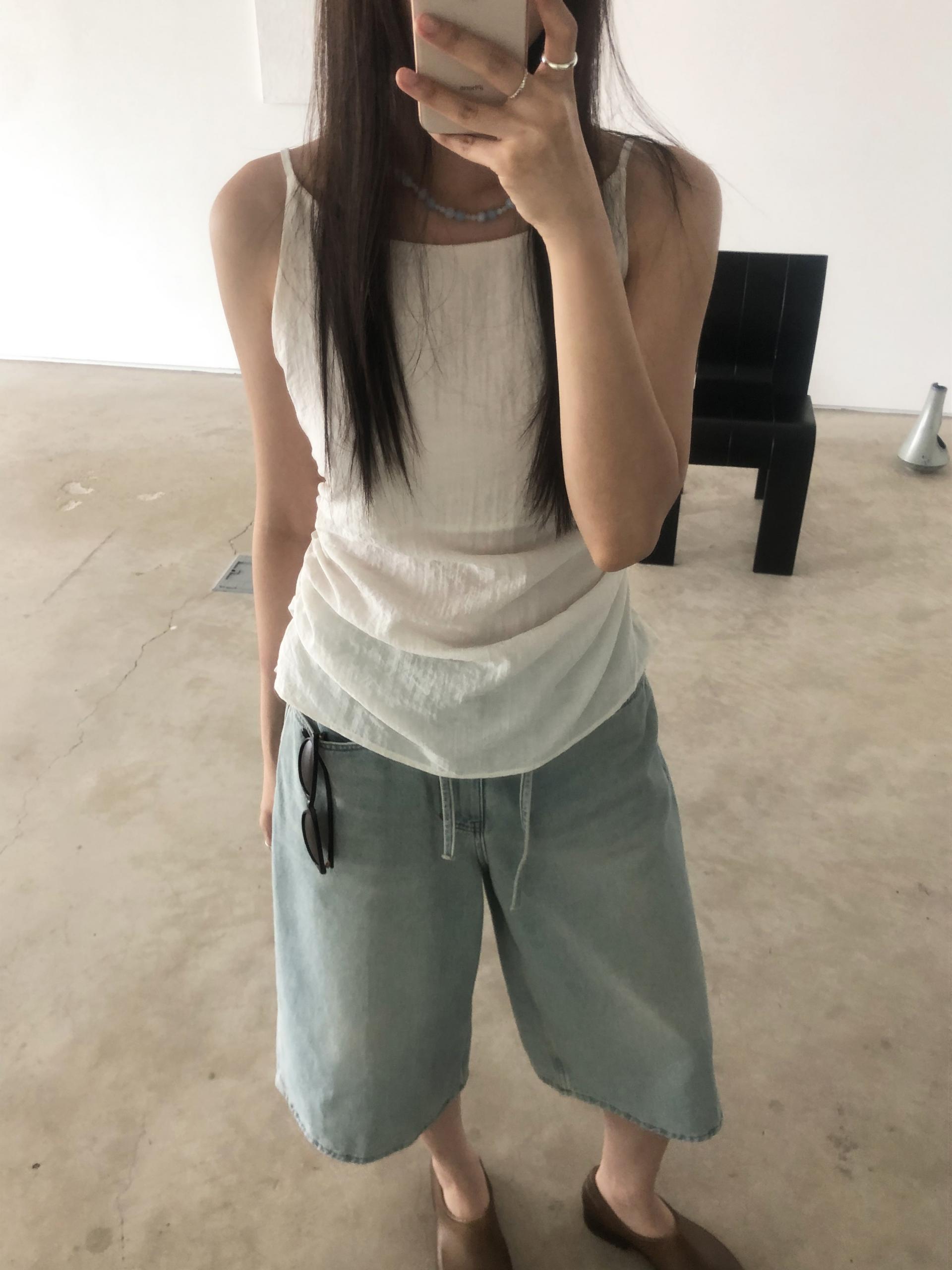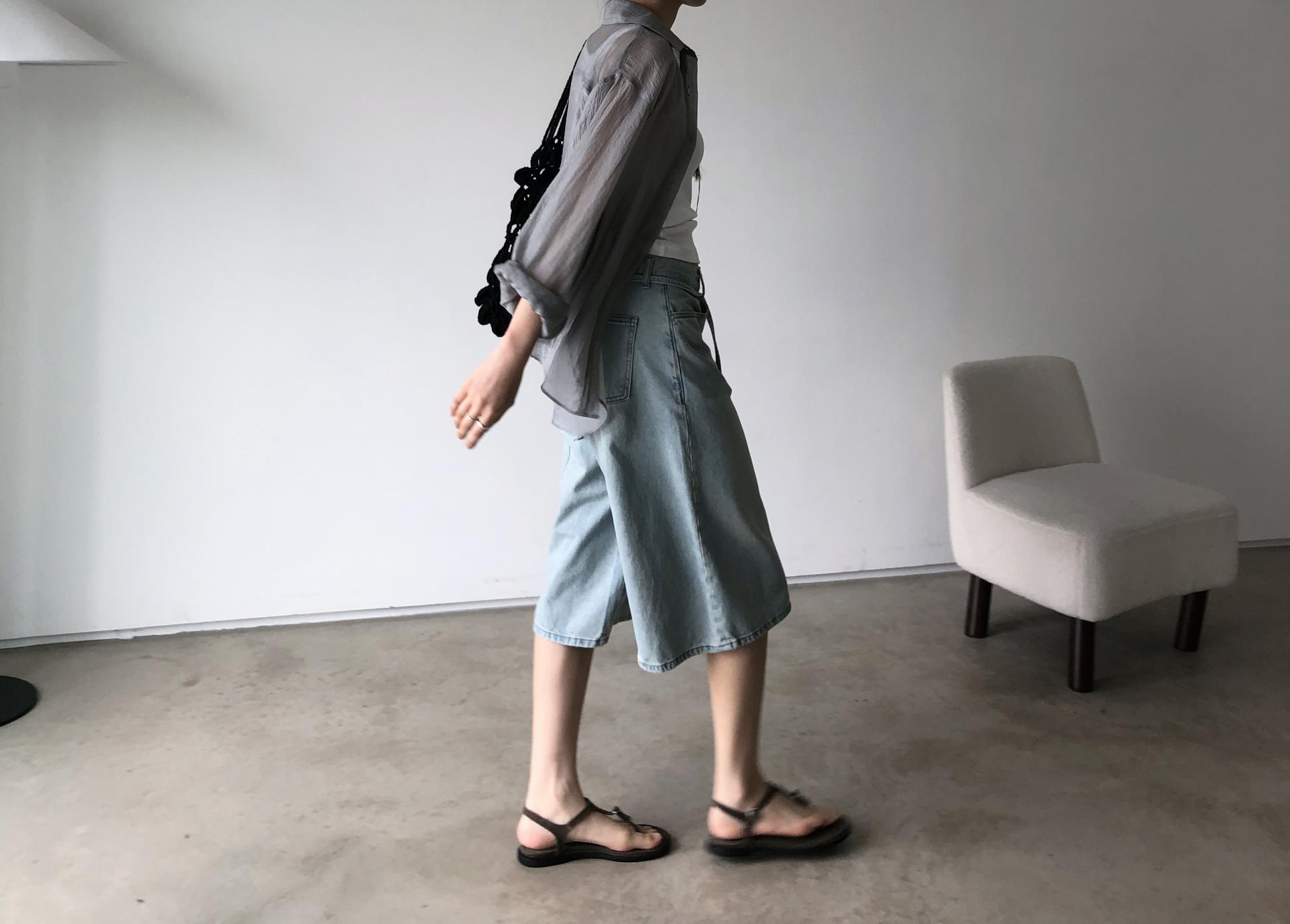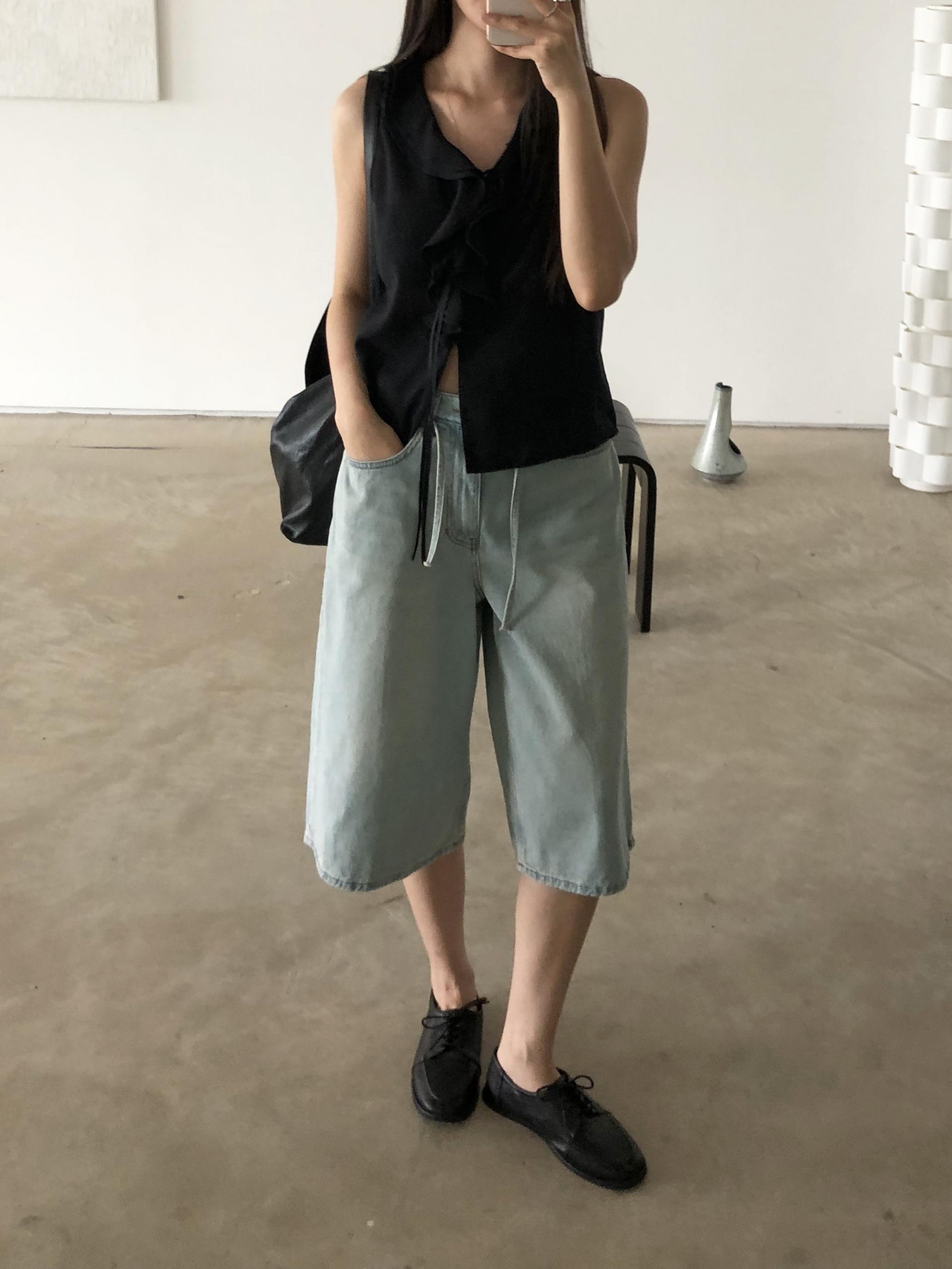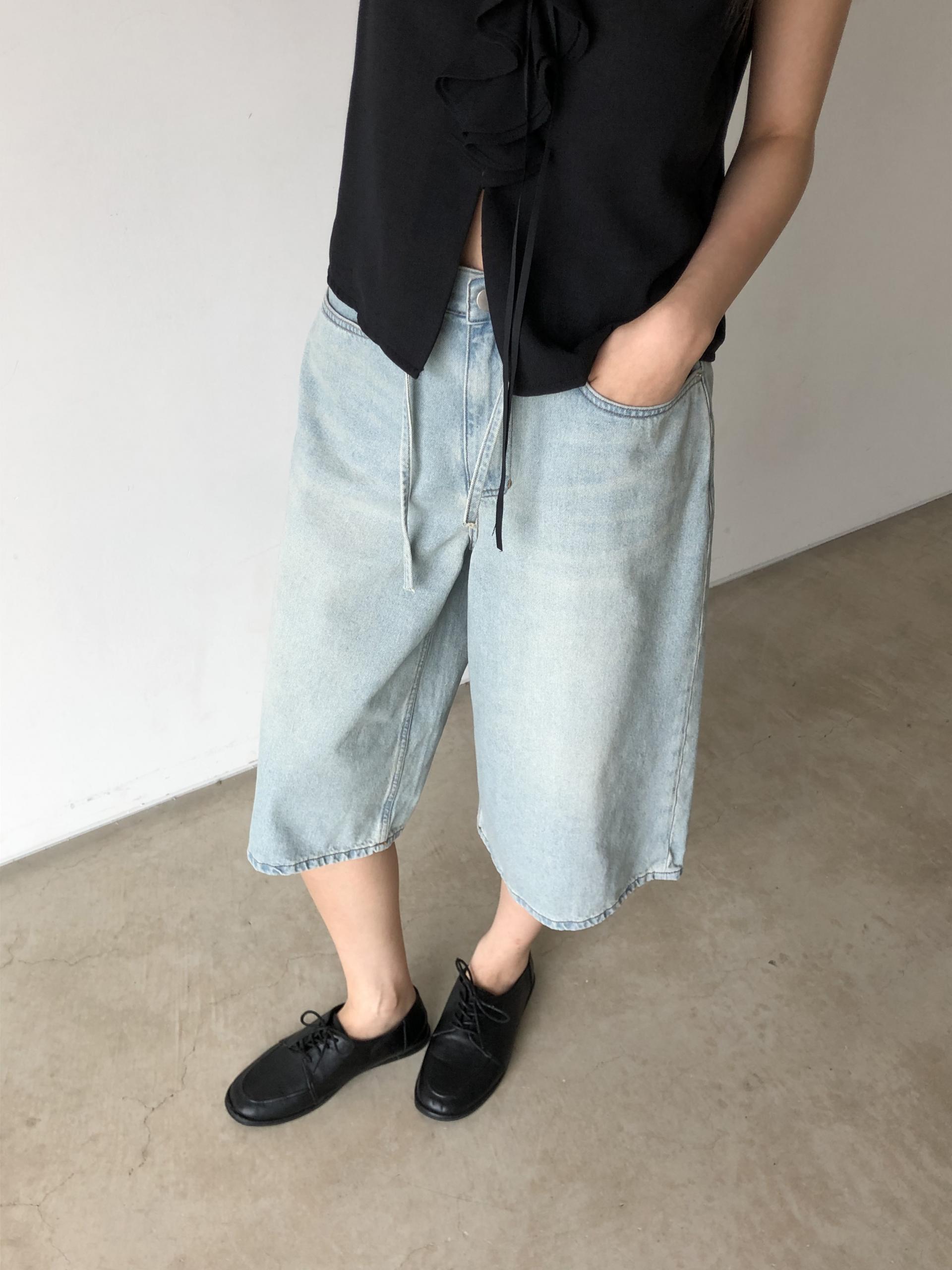 스트링으로 포인트를 준 버뮤다 기장의 데님입니다.