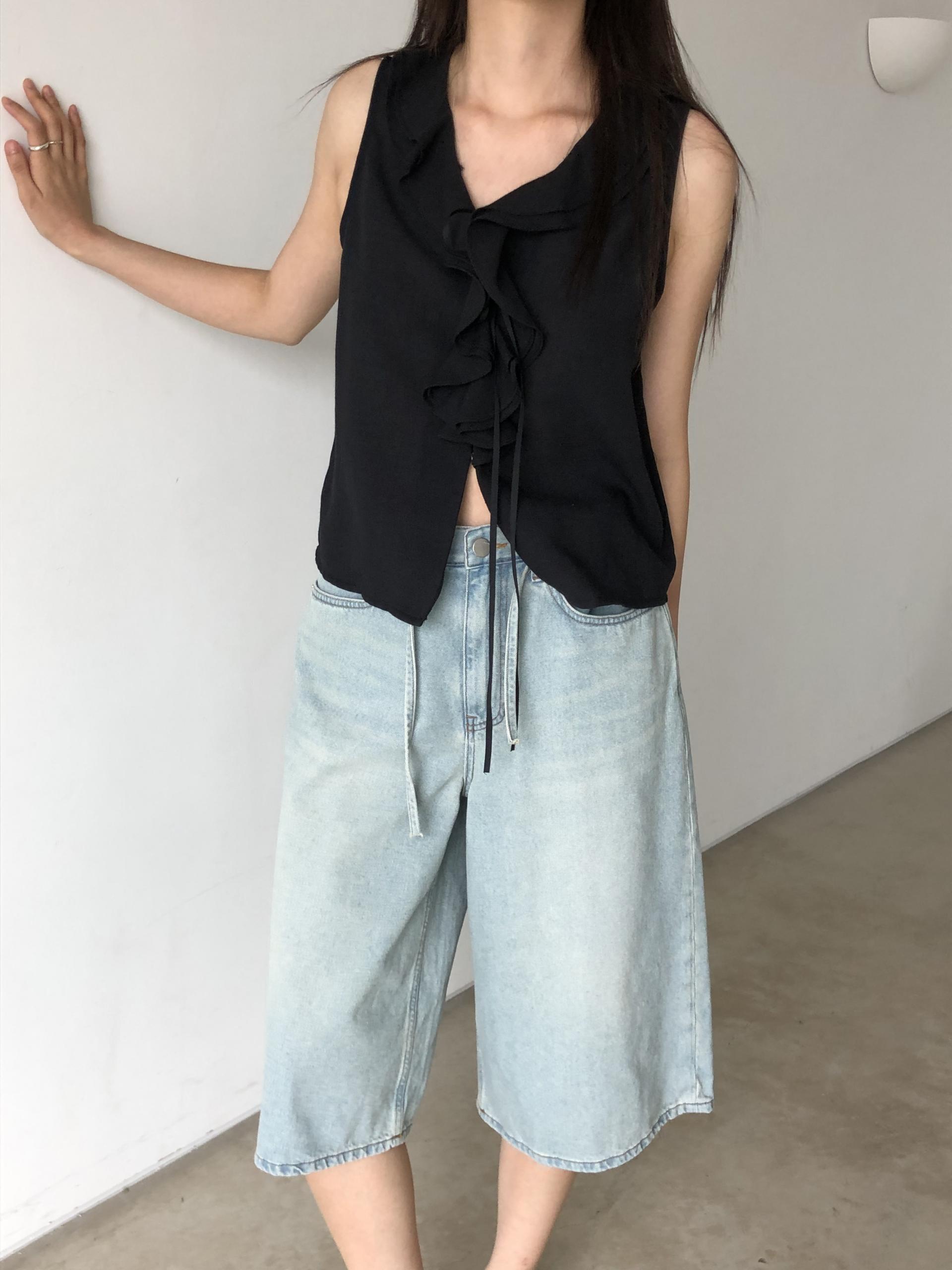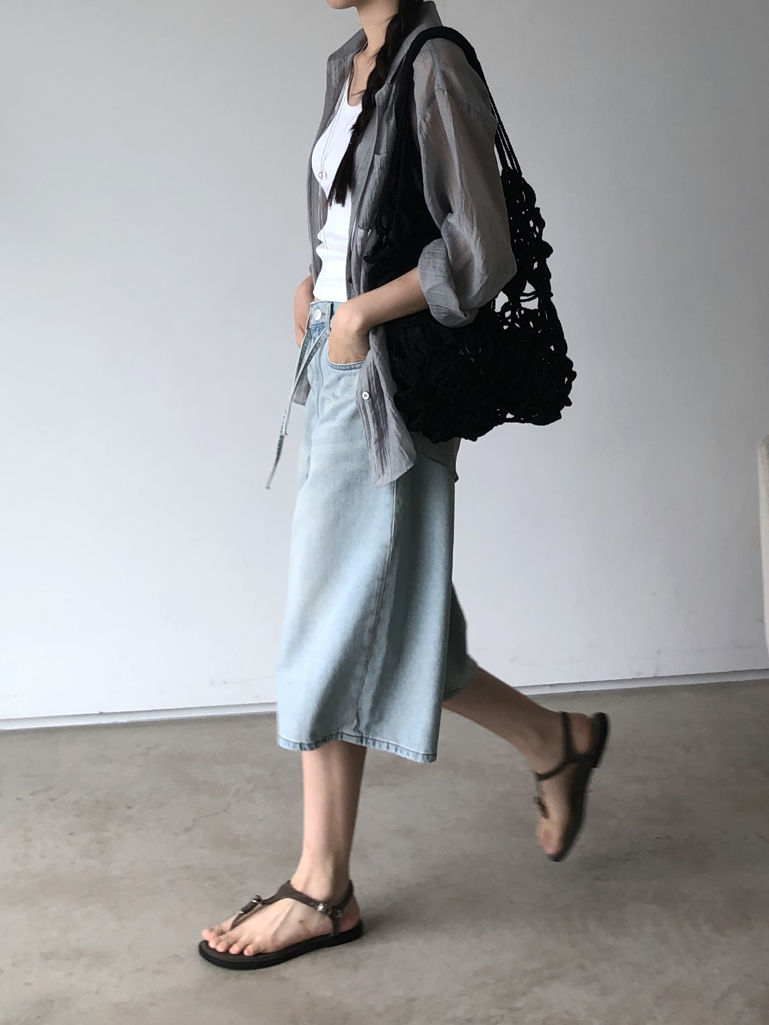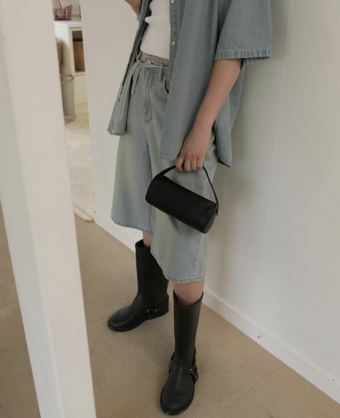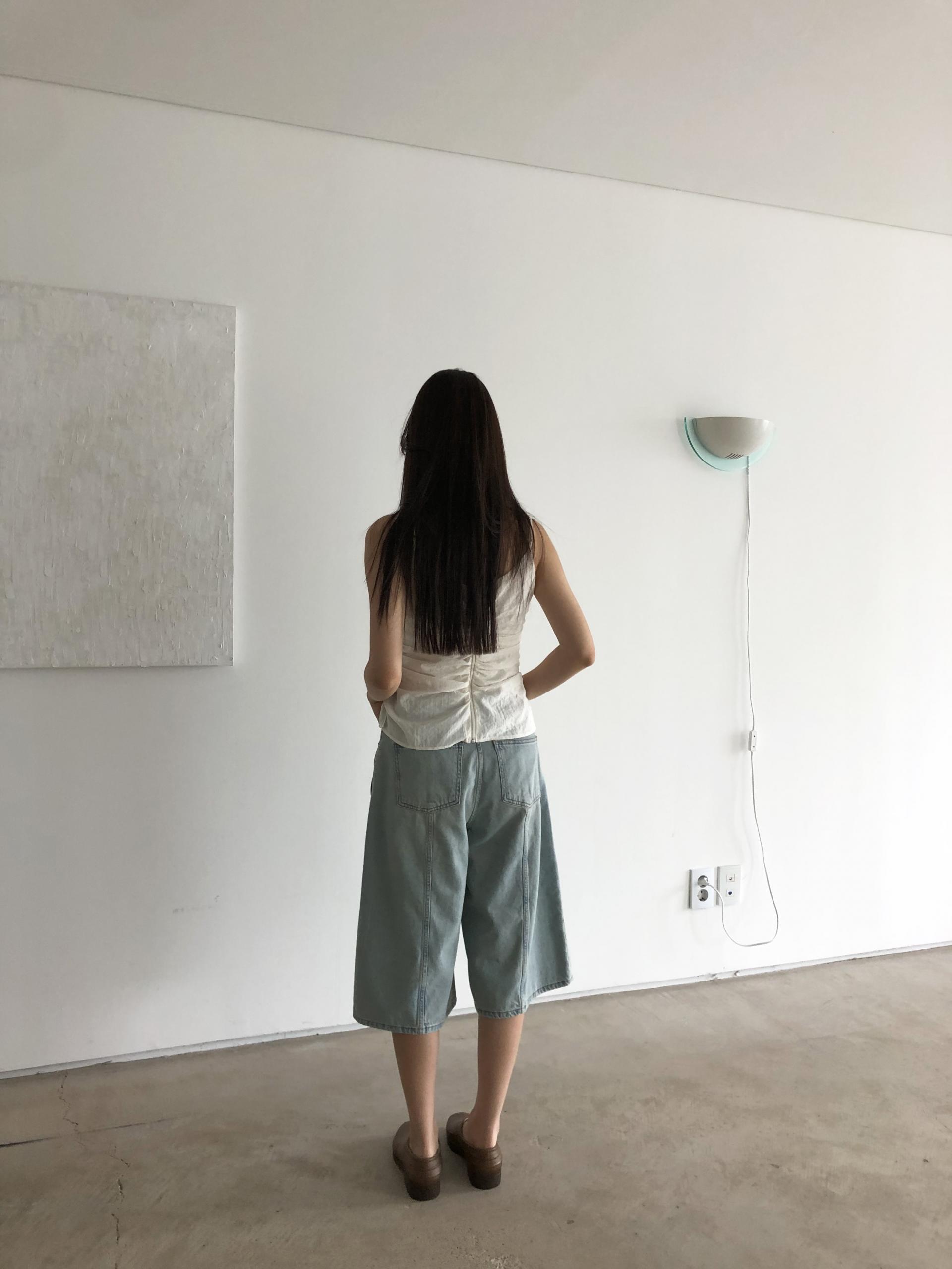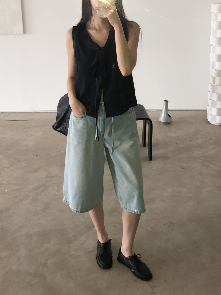 스트링으로 포인트를 준 버뮤다 기장의 데님입니다.