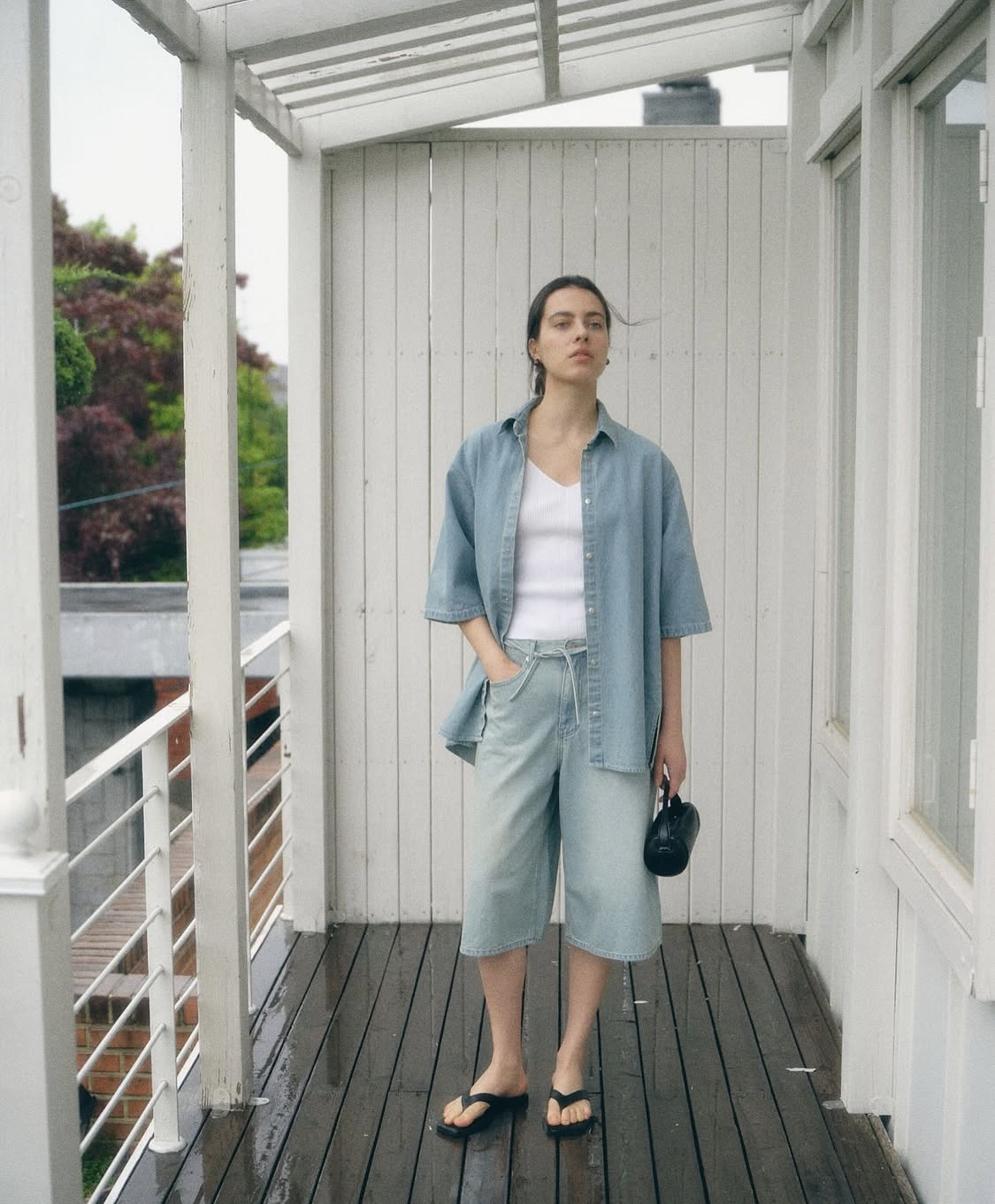 여름에 버뮤다 팬츠를 즐겨 입는 편이라 자주 보여드리게 되는 것 같아요 ! 캐주얼하게 즐기기 좋은 버뮤다 기장과 여유로운 실루엣입니다.
