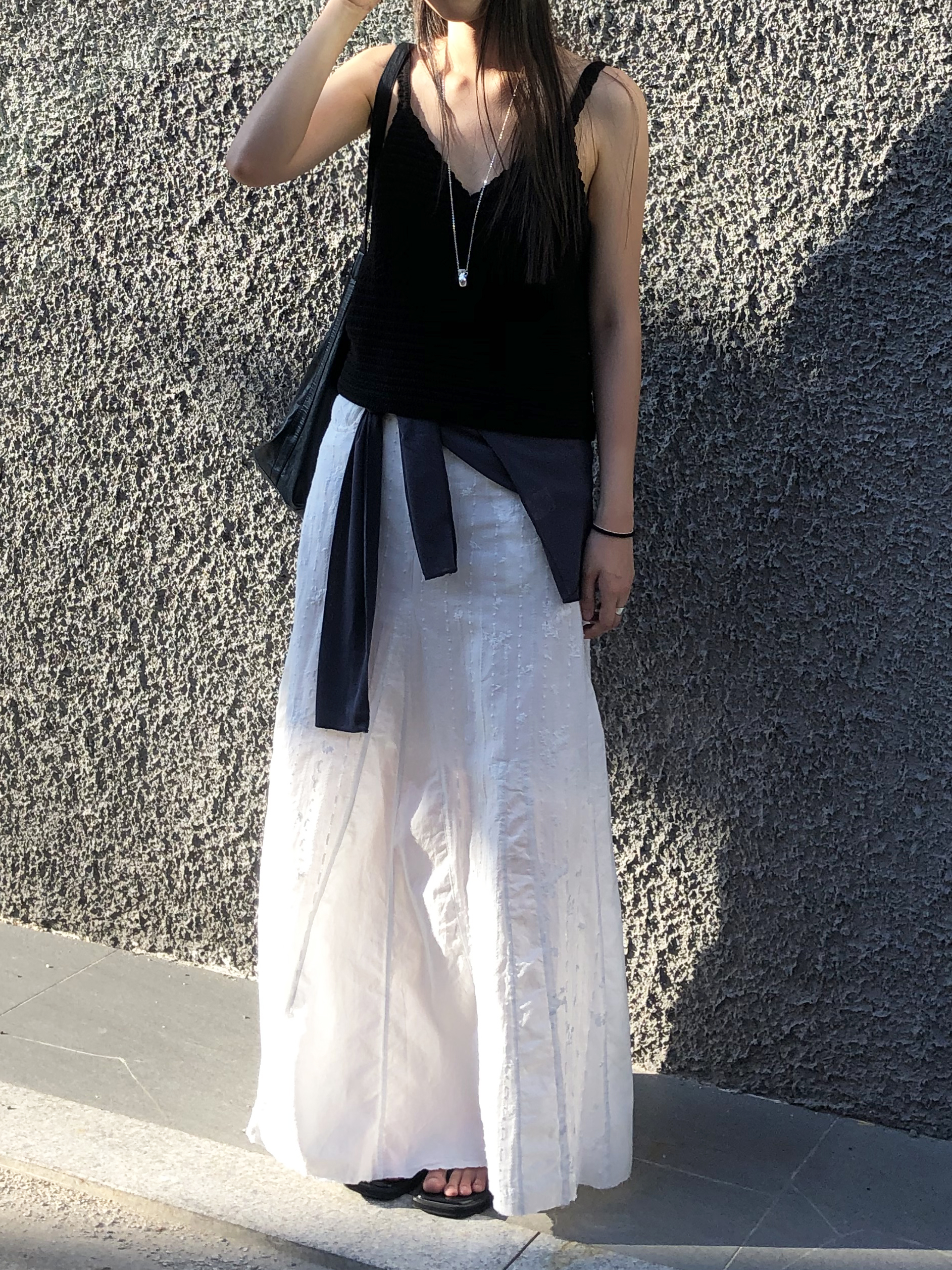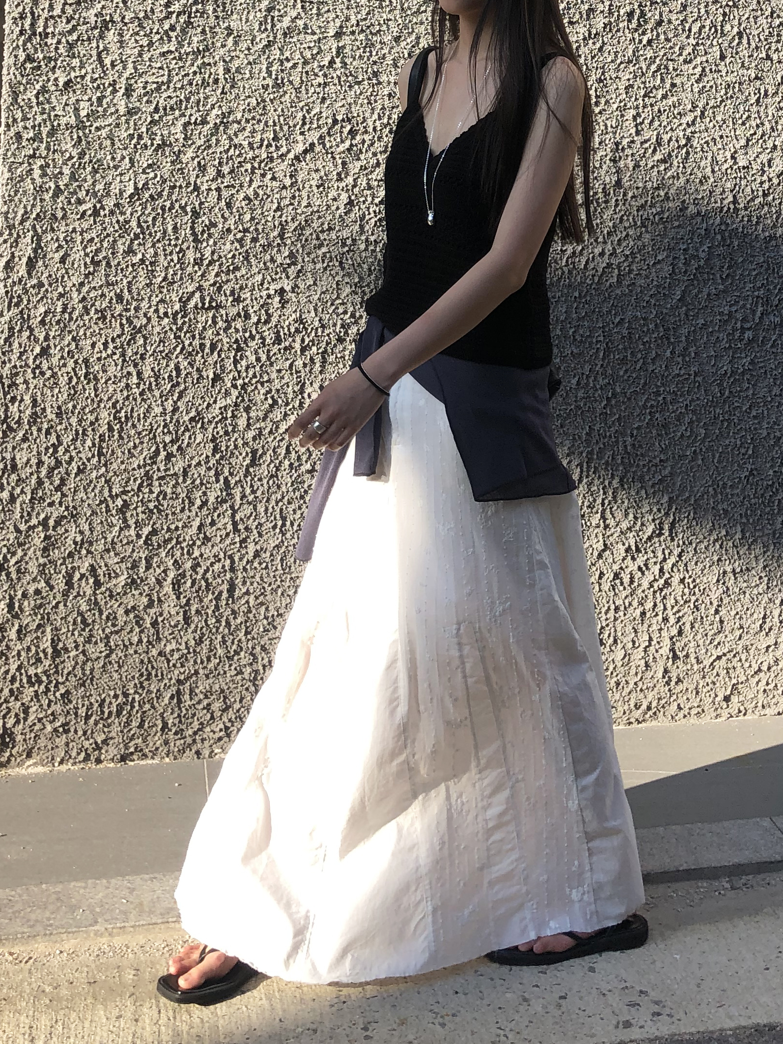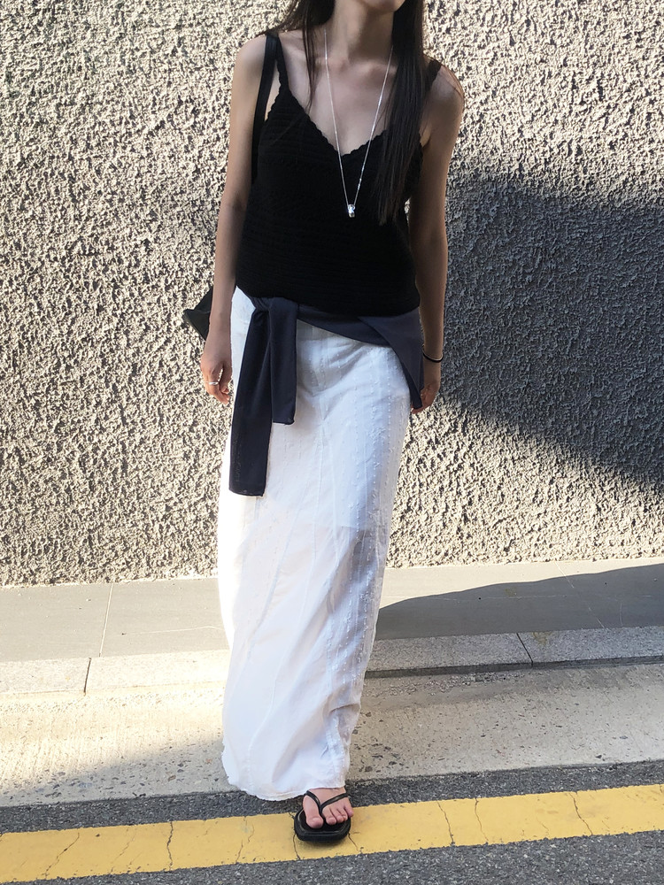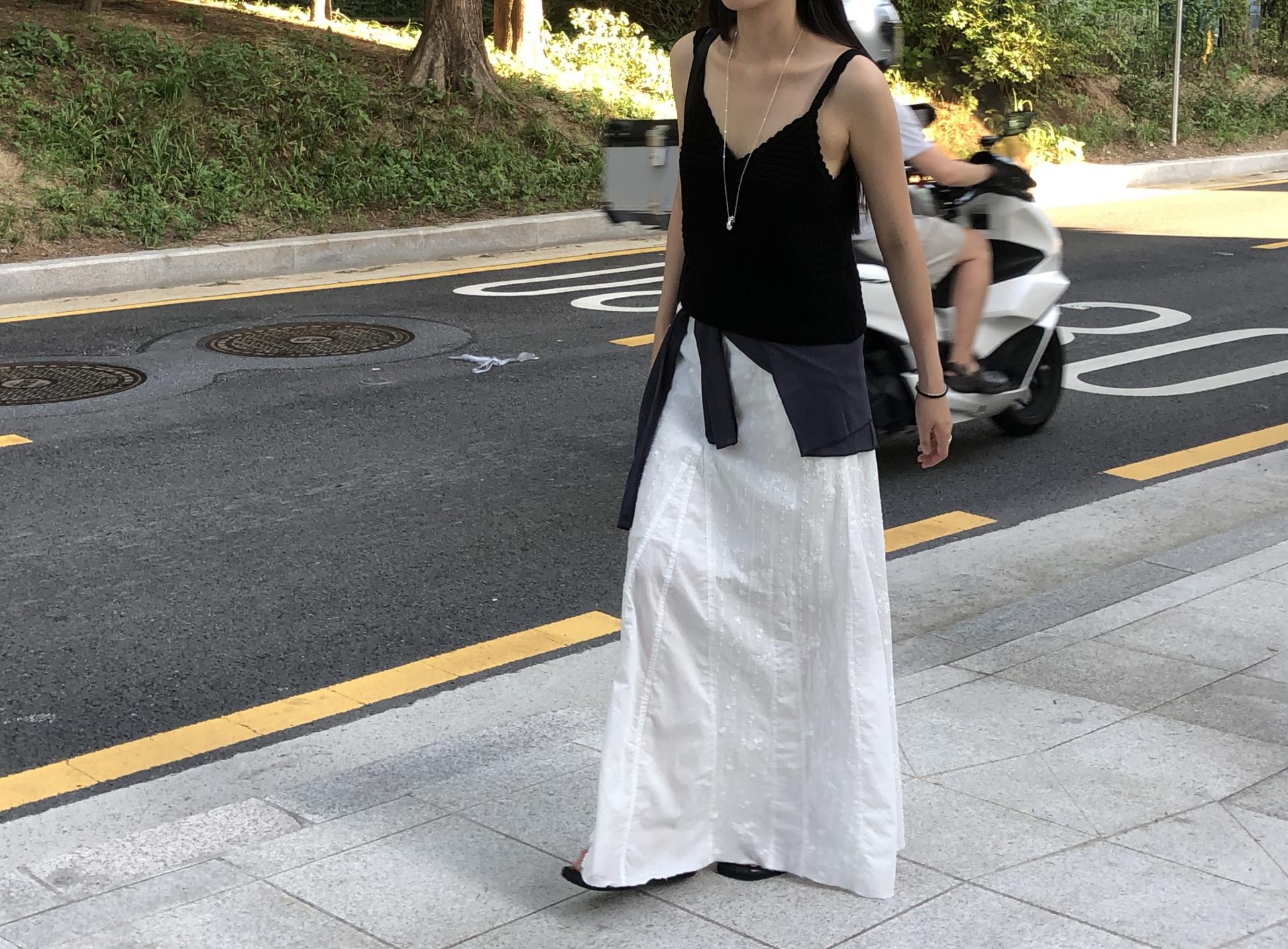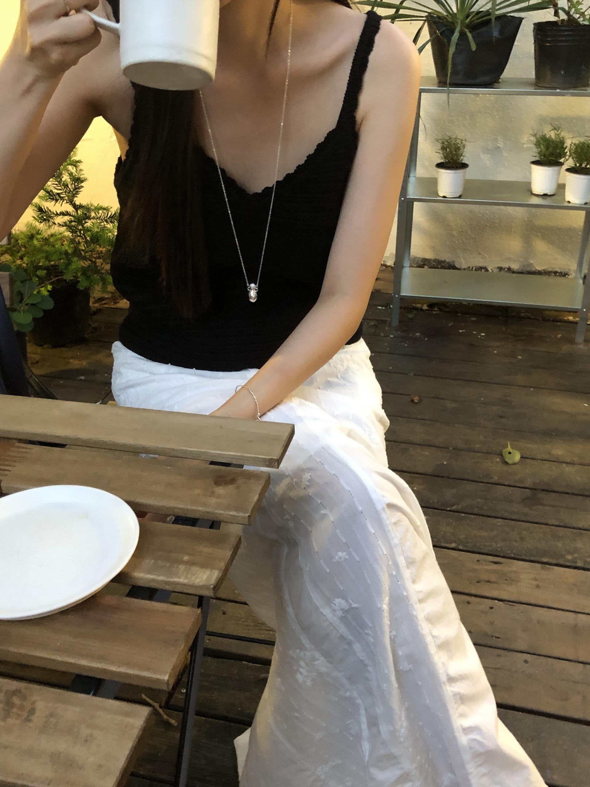어깨 27 가슴 41 암홀 27 밑단 41.5 총장(어깨끈 포함) 48.5