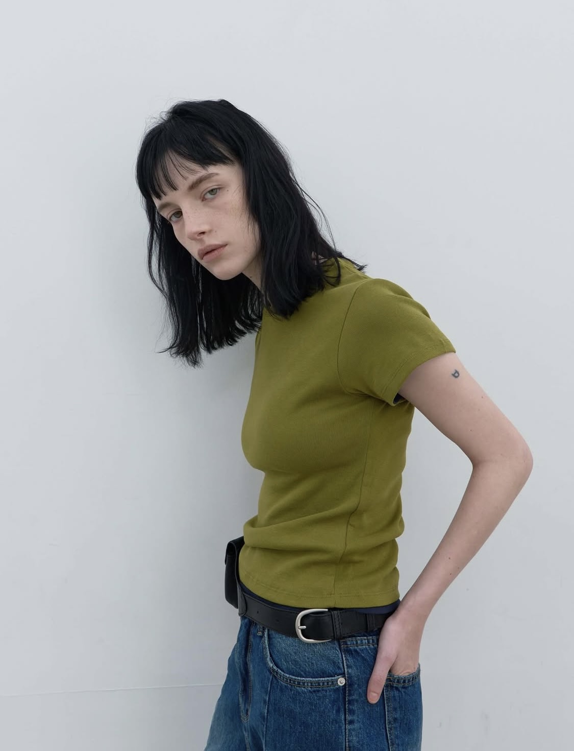로우 웨이스트 팬츠에 특히나 착 떨어지는, 쿨하고 데일리하게 즐기기 좋은 티셔츠입니다.