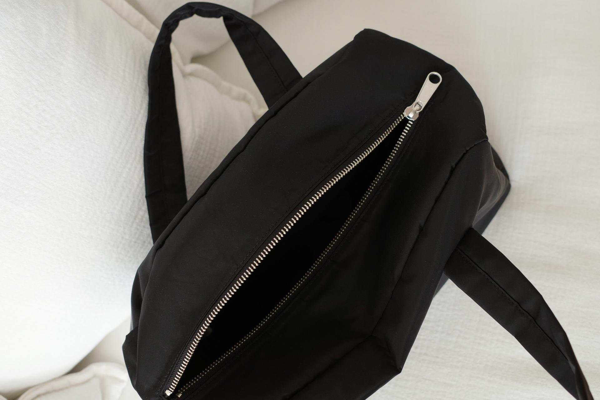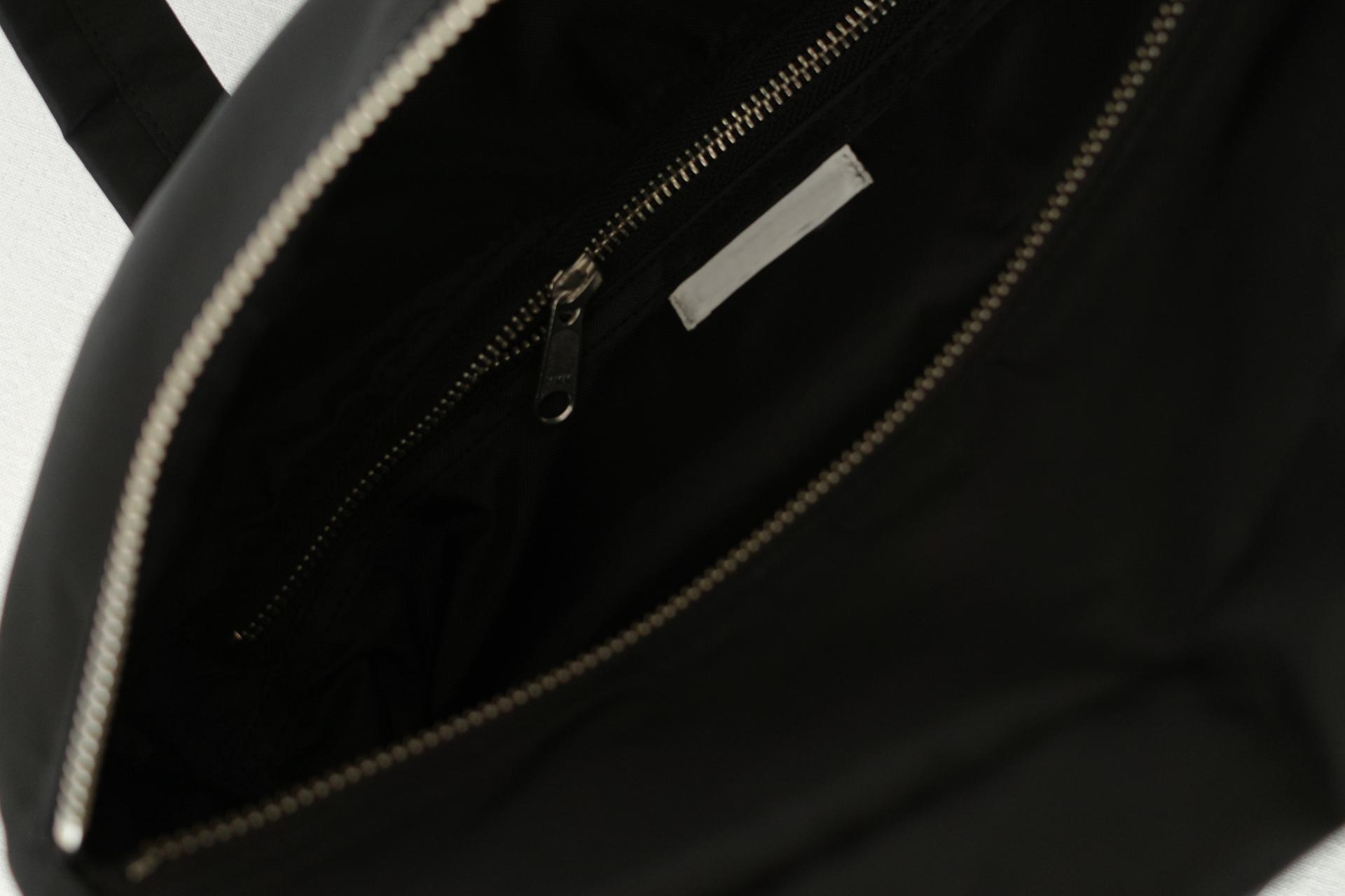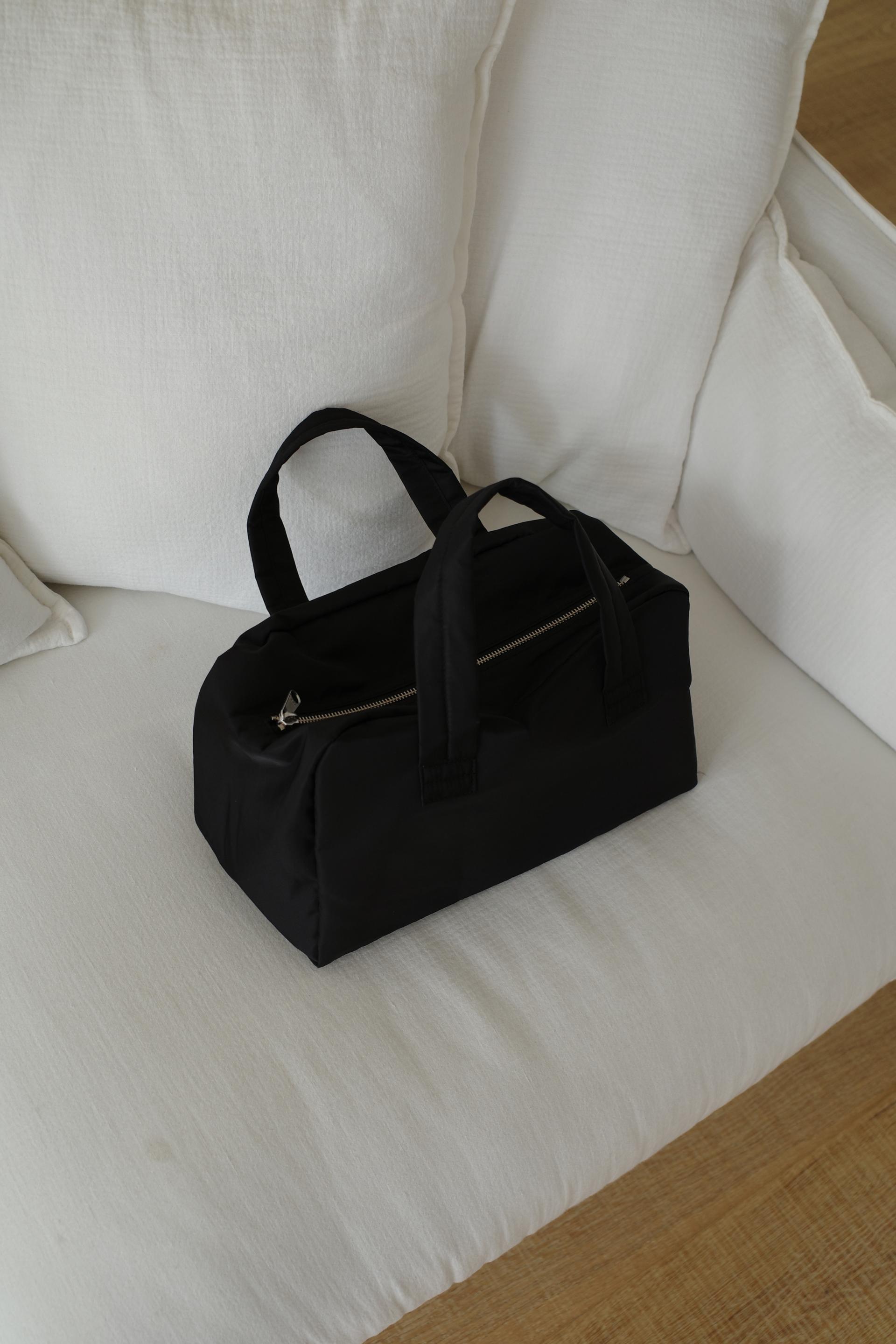 은은한 광이 도는 블랙 나일론 소재로 제작되어 캐주얼한 스타일부터 모던한 느낌까지 자연스럽게 어우릅니다.