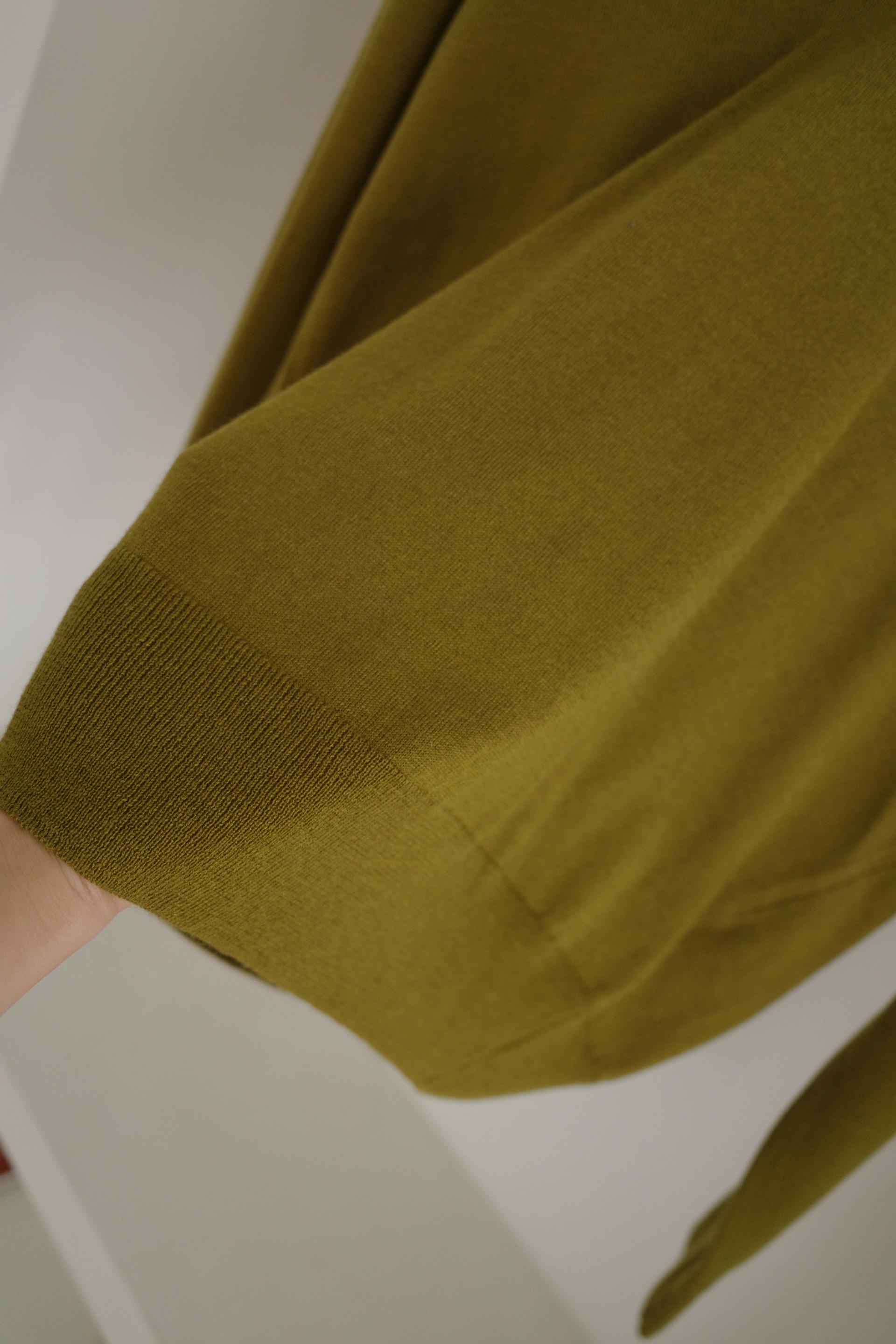 메리노 울이 함유된 원사로 짜여저 부드럽고 포근하면서도 가볍게 바디에 가볍게 떨어지는 실루엣이 깔끔합니다.