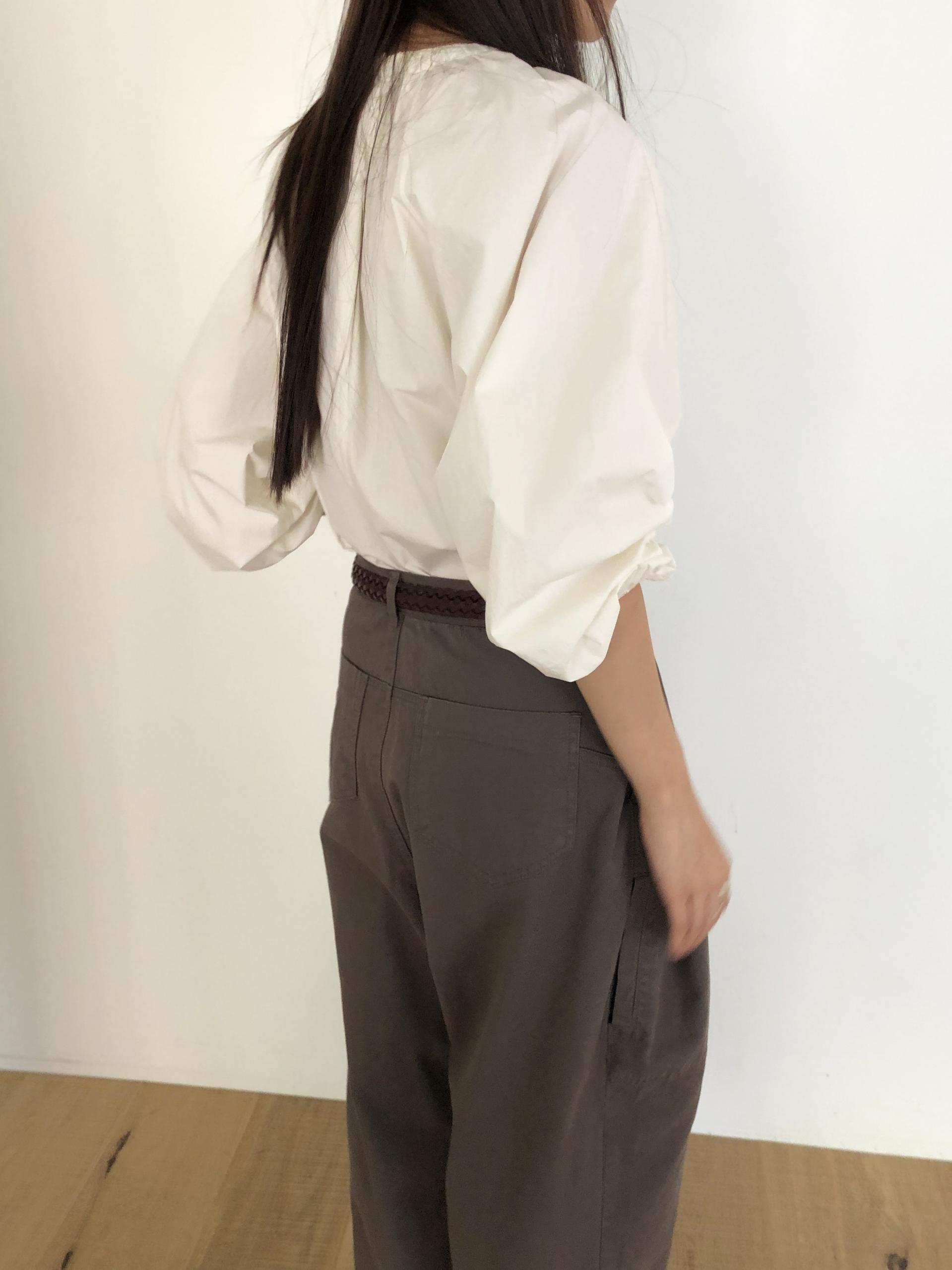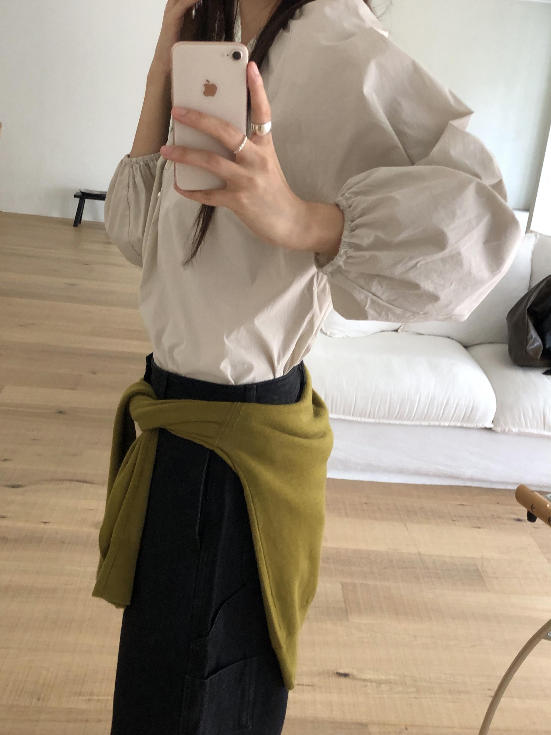 소맷 끝단은 얇은 밴딩처리를 했고 소매 기장 자체가 살짝 짧은 감이 있어 러블리한 느낌이 느껴집니다. 또한 여유있는 실루엣으로 편하게 착용되어요.