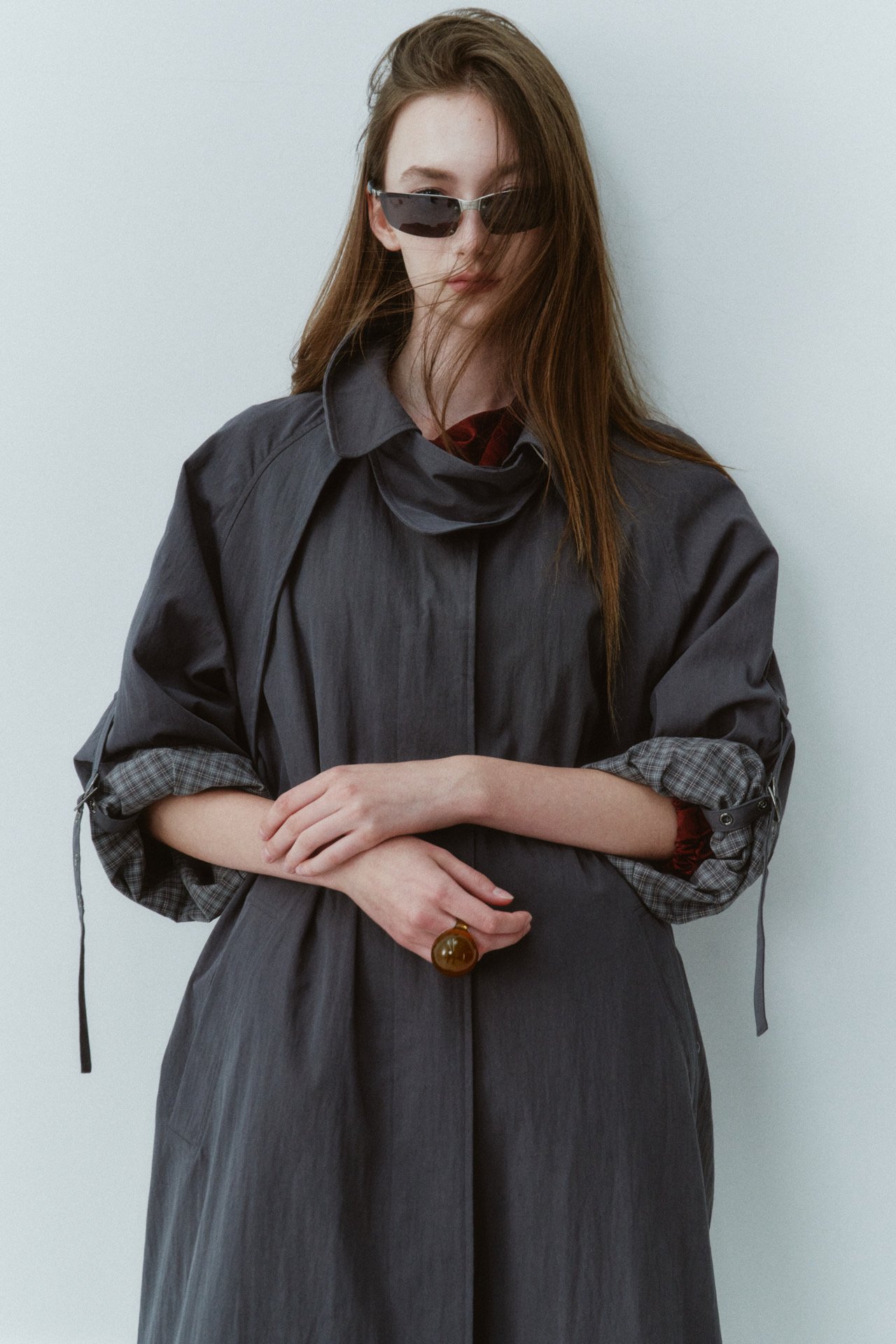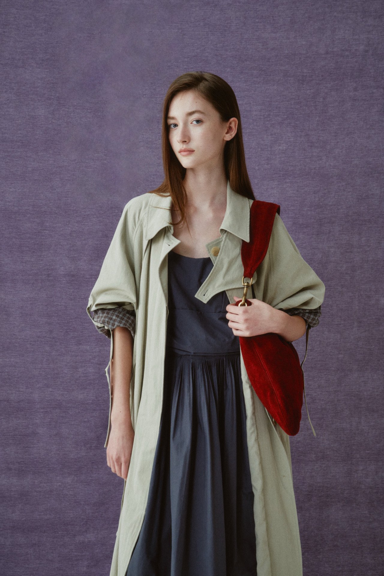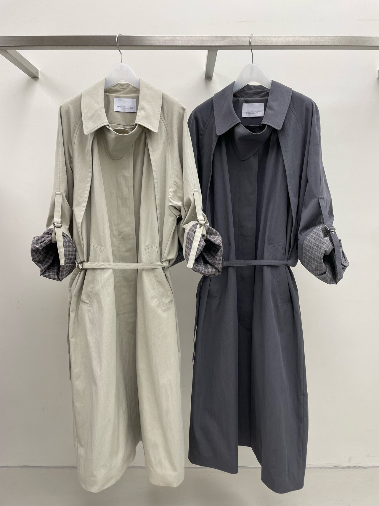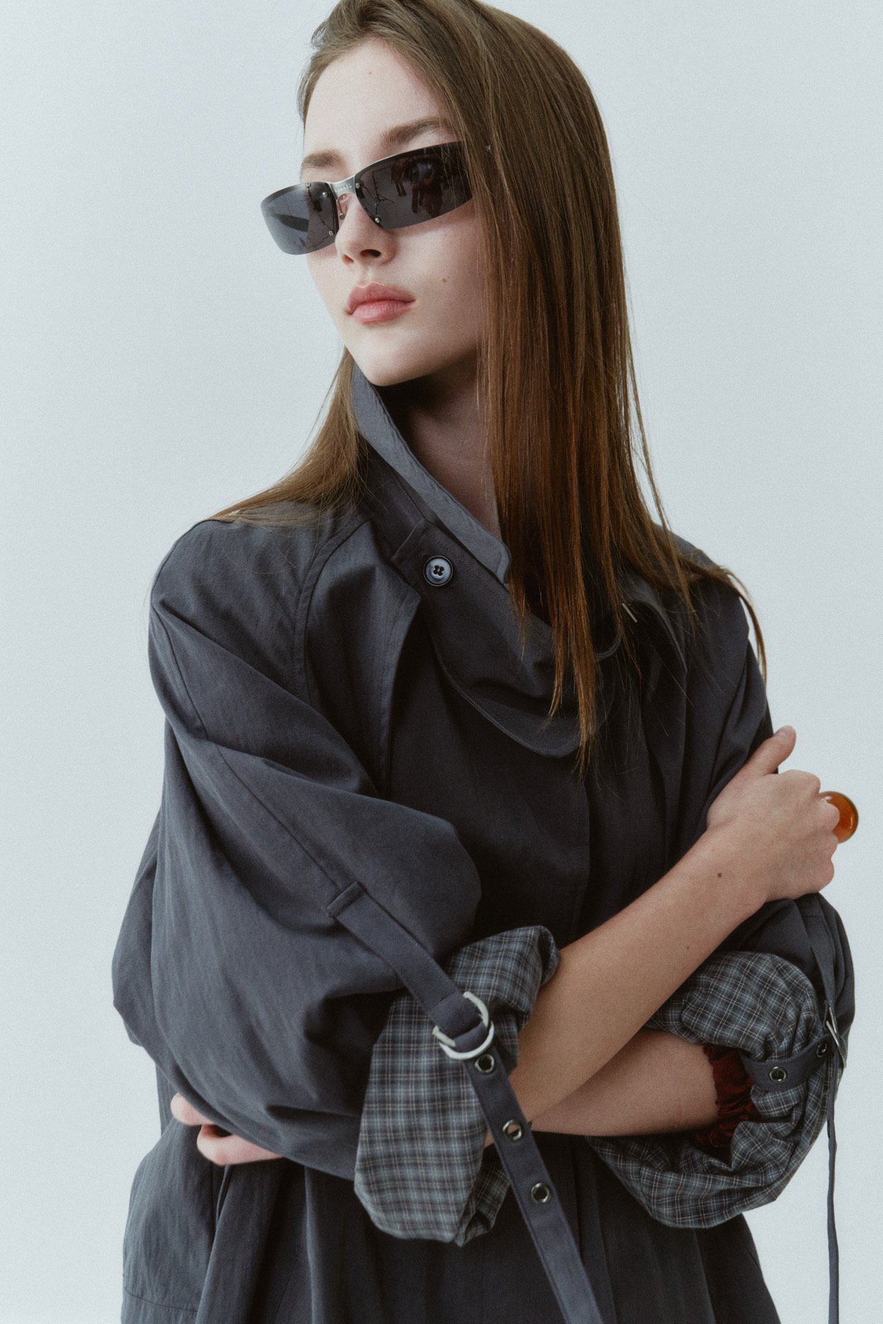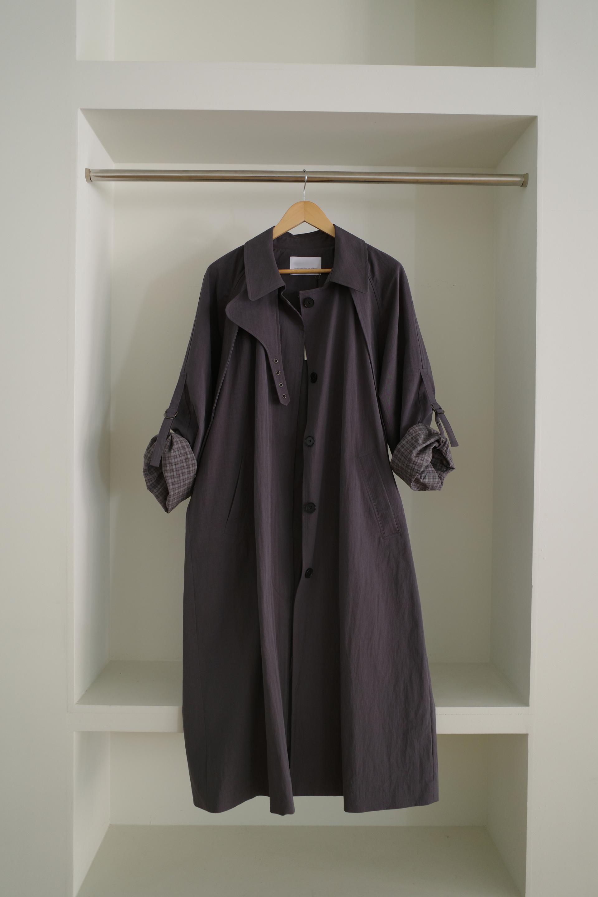 면+나일론 혼방의 살짝 매트한 질감을 가지고 있고, 전체적인 디자인이 도시적인 분위기를 풍기지만 체크 패턴의 안감이 슬쩍 드러나면 빈티지함이 더해져 더욱 매력적인 트렌치입니다.