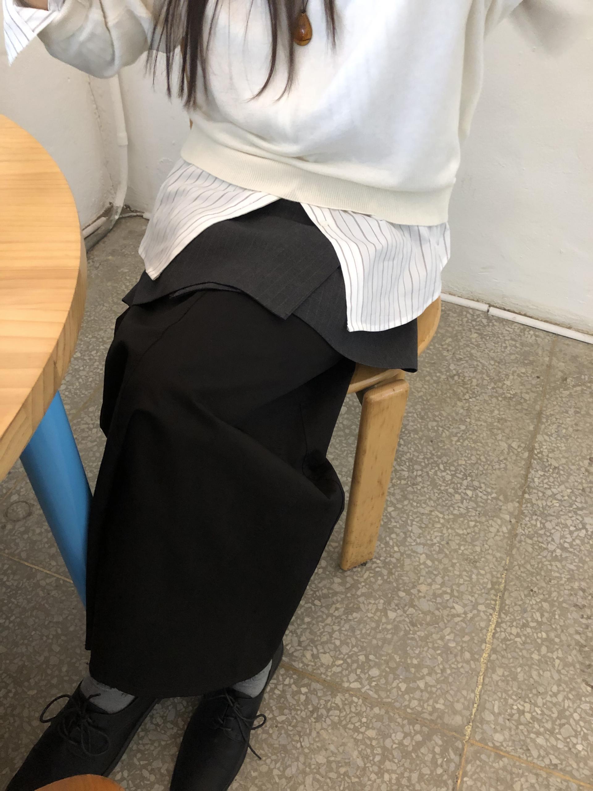 밋밋한 룩에 어렵지 않게 또 가볍게 포인트를 줄 수 있어 추천드리는 아이템이에요. 여러개의 단추를 마음대로 조절해 사이즈감과 살짝 엇갈리게 스커트의 실루엣을 연출할 수 있습니다.