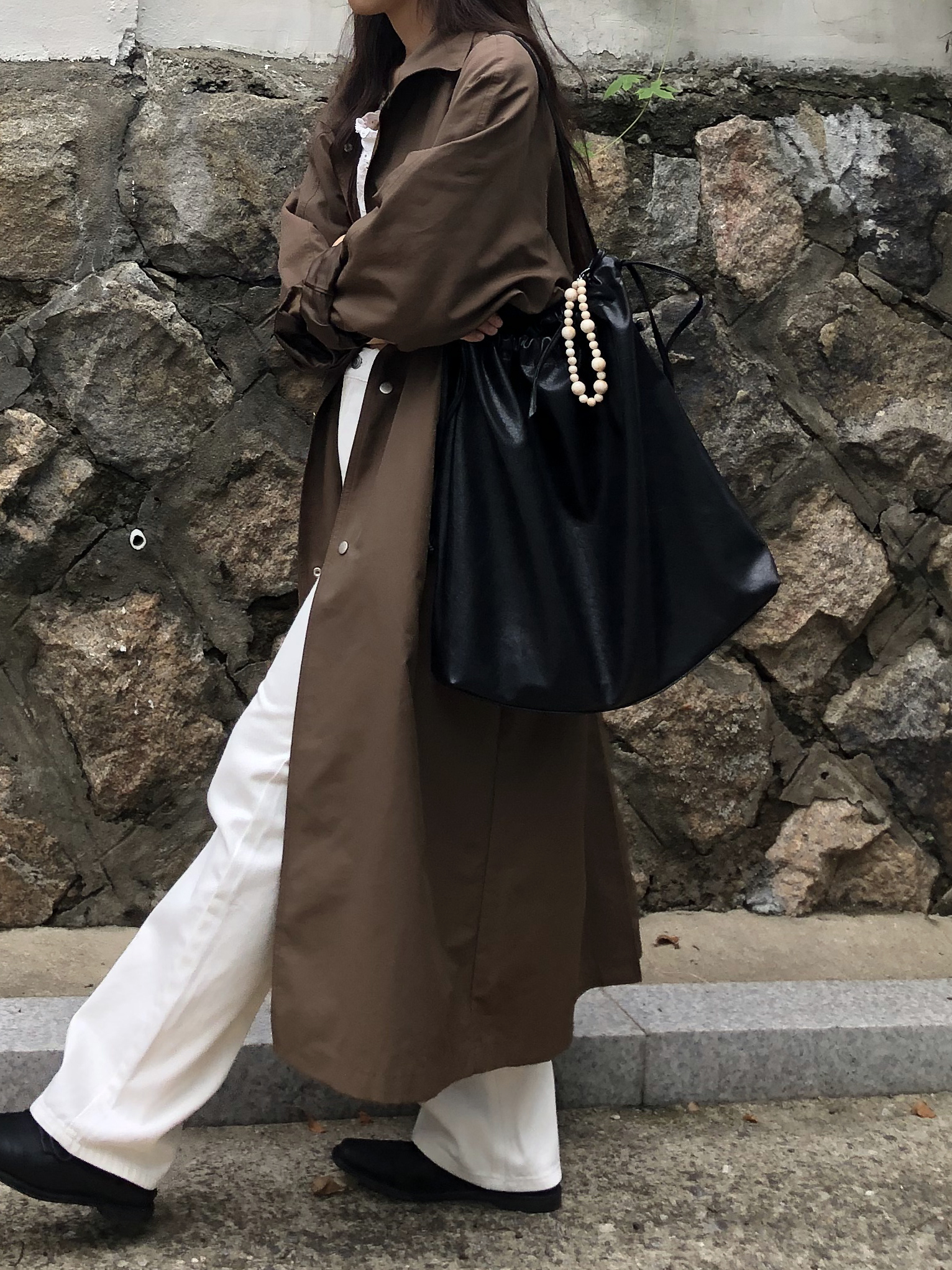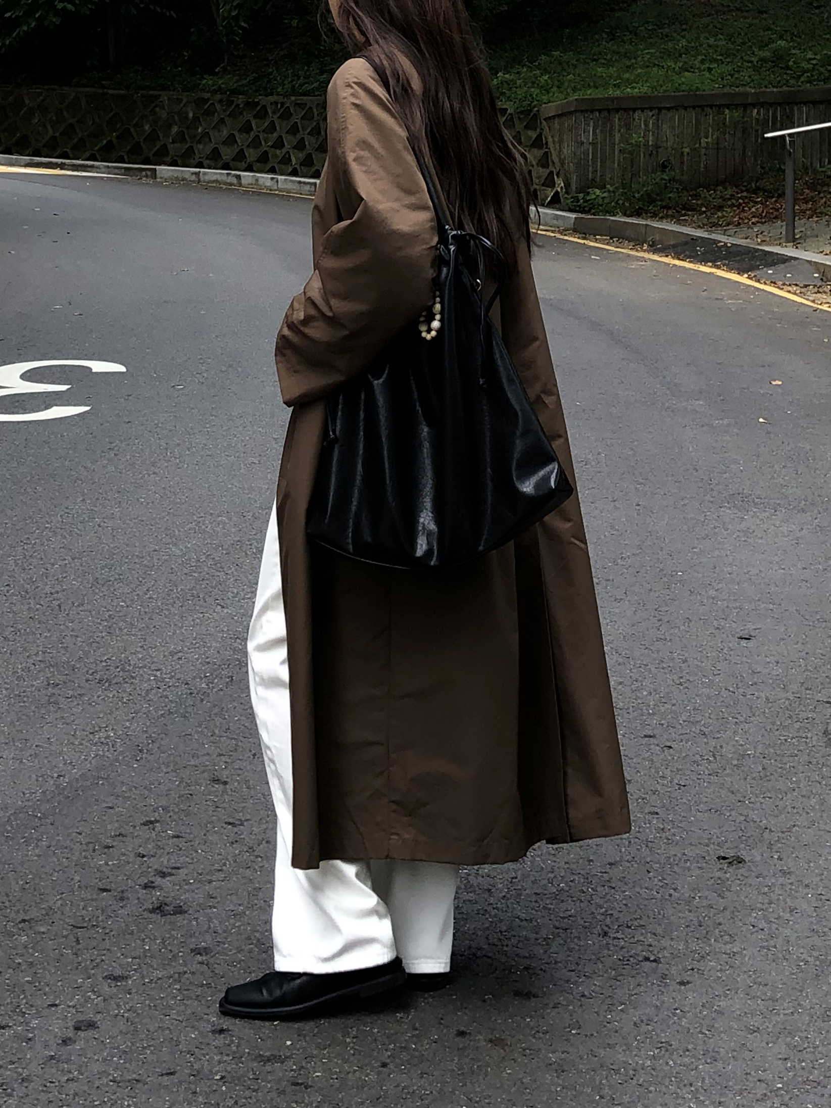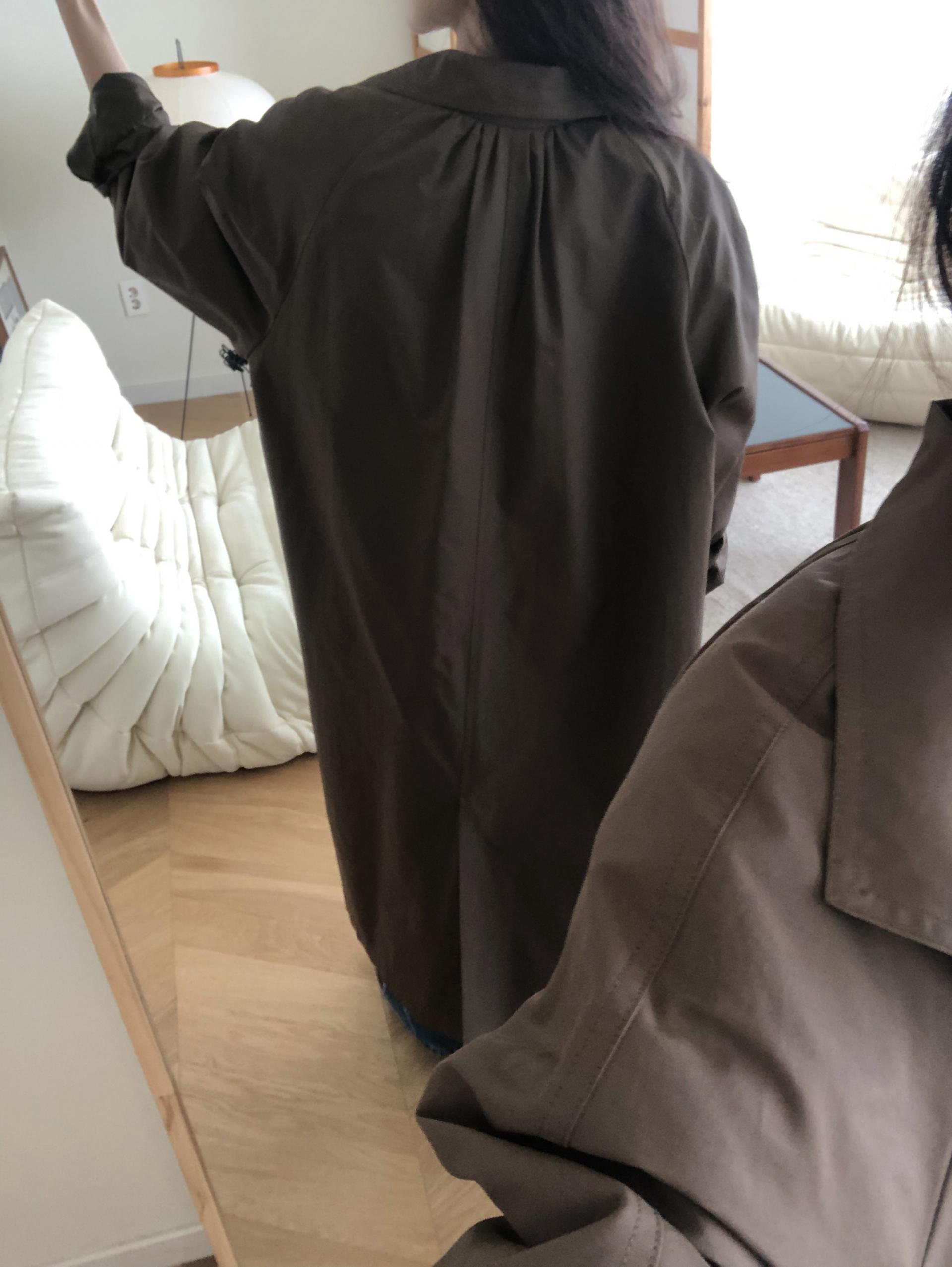이 트렌치의 가장 예쁜 점은 뒷네크라인의 조밀한 셔링이었어요. 이게 뭐라고 뒷모습이 이렇게 예쁜지...!@ 한쪽만 무심하게 툭 세워 연출하는 하이넥도 멋스러워요.