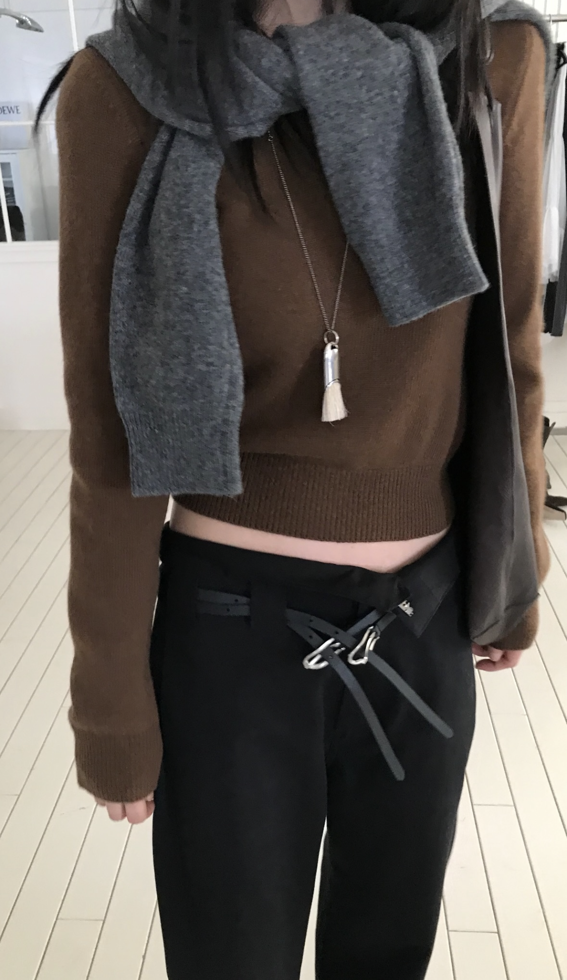 밑단 립이 살짝 힘이 있고 사이즈가 있는 편이라 살짝 올려 세미 크롭 기장으로 연출하는 것을 권해봅니다. 로우 팬츠와 함께 답답하지 않게 입어주세요. 레귤러 핏이 자칫 재미없게 느껴질 수 있는데 이렇게 입어주면 해결입니다 **!