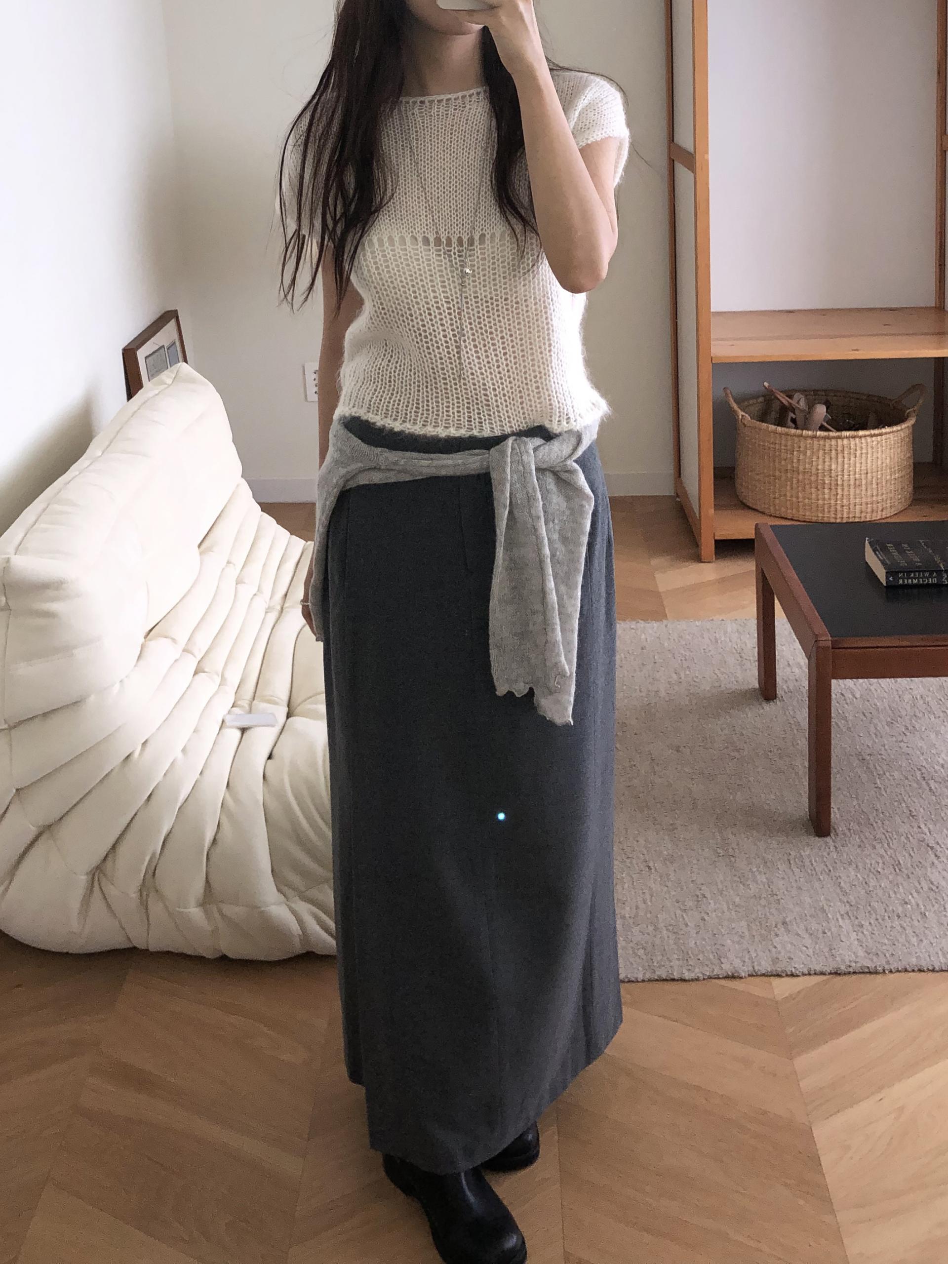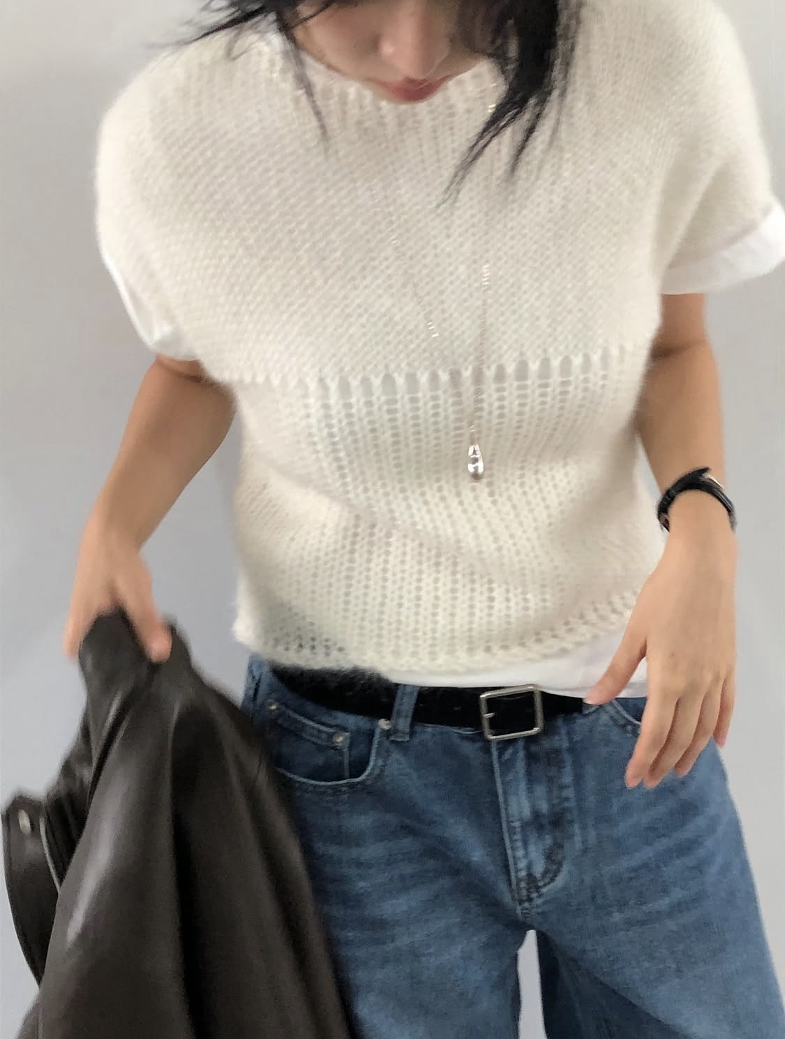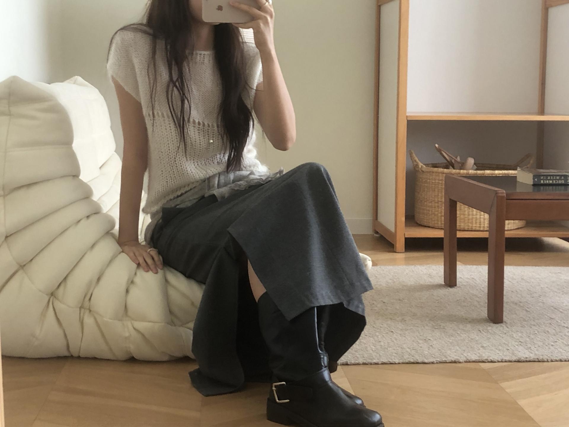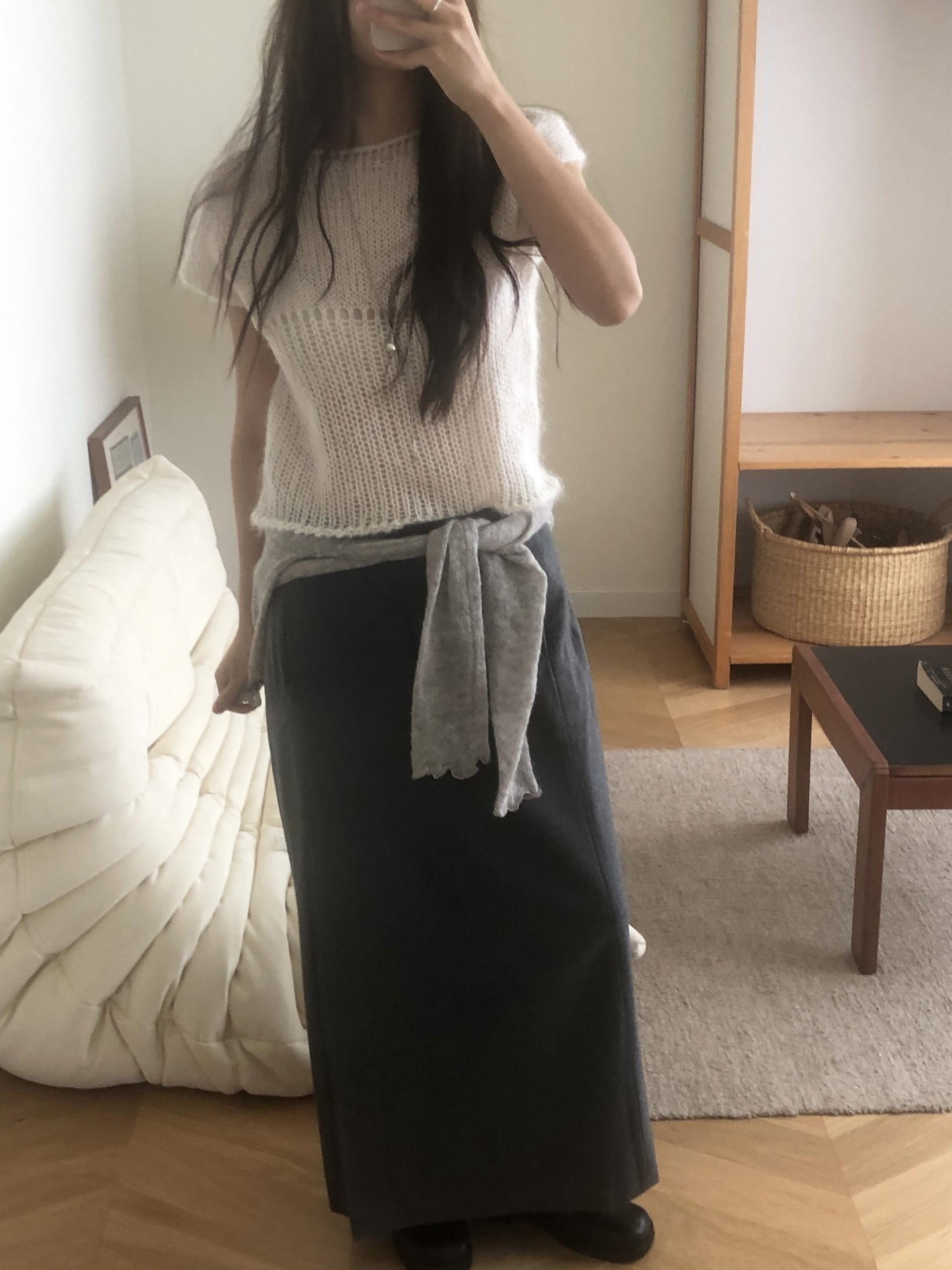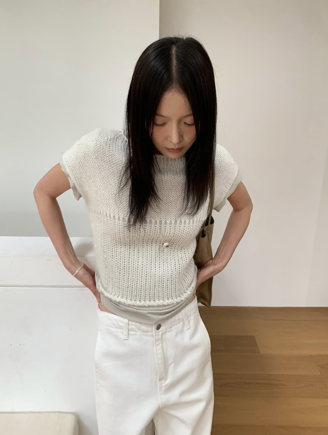 성근 짜임과 가벼운 무게감으로 답답함 없이 입어지는 점이 좋았어요. 일반적인 니트 베스트하면 꽉 채운 니팅이 많은데 은은하게 비침이 있기 때문에 이너와 베스트 모두 사는 시너지를 느낄 수 있습니다.