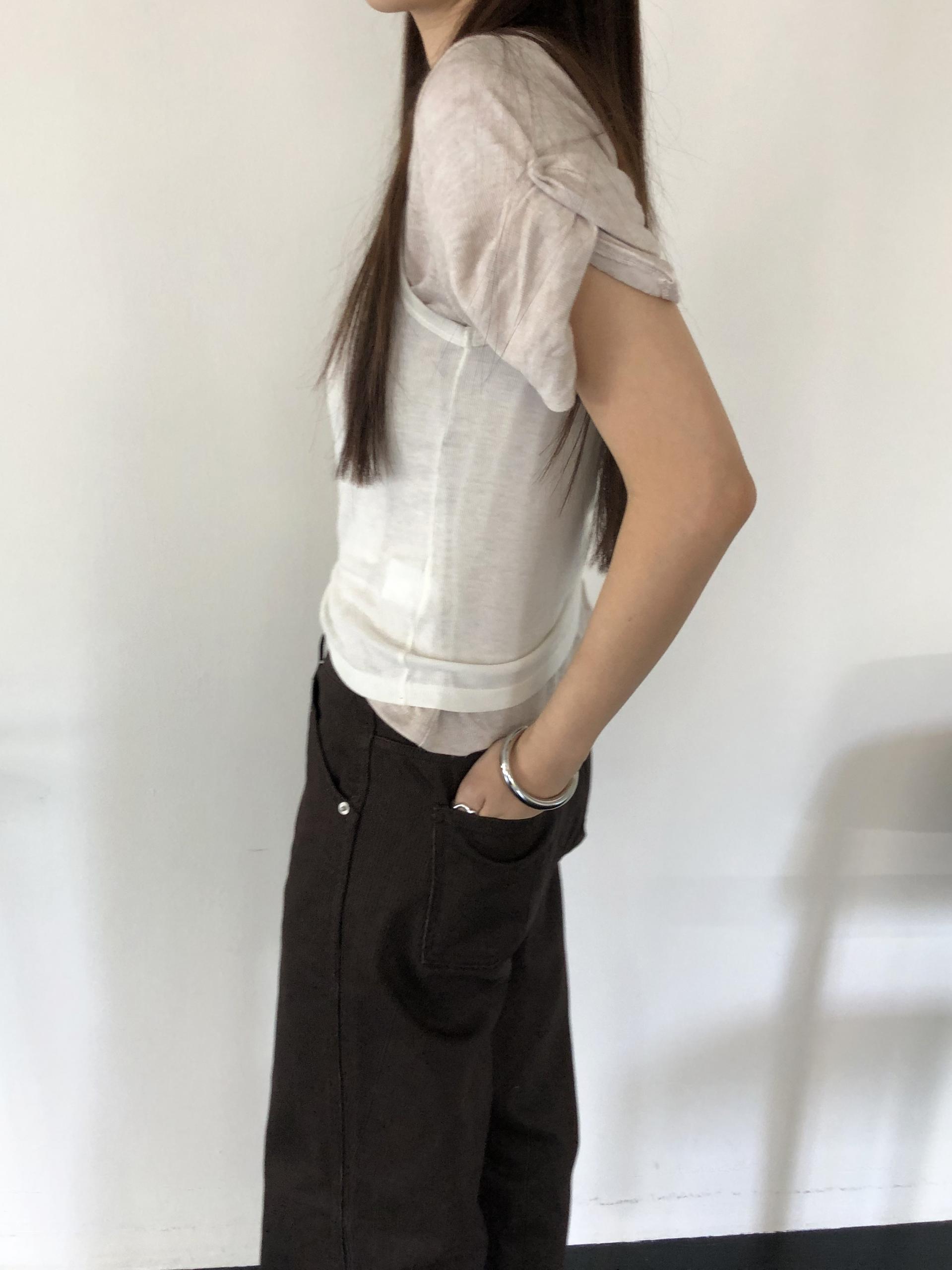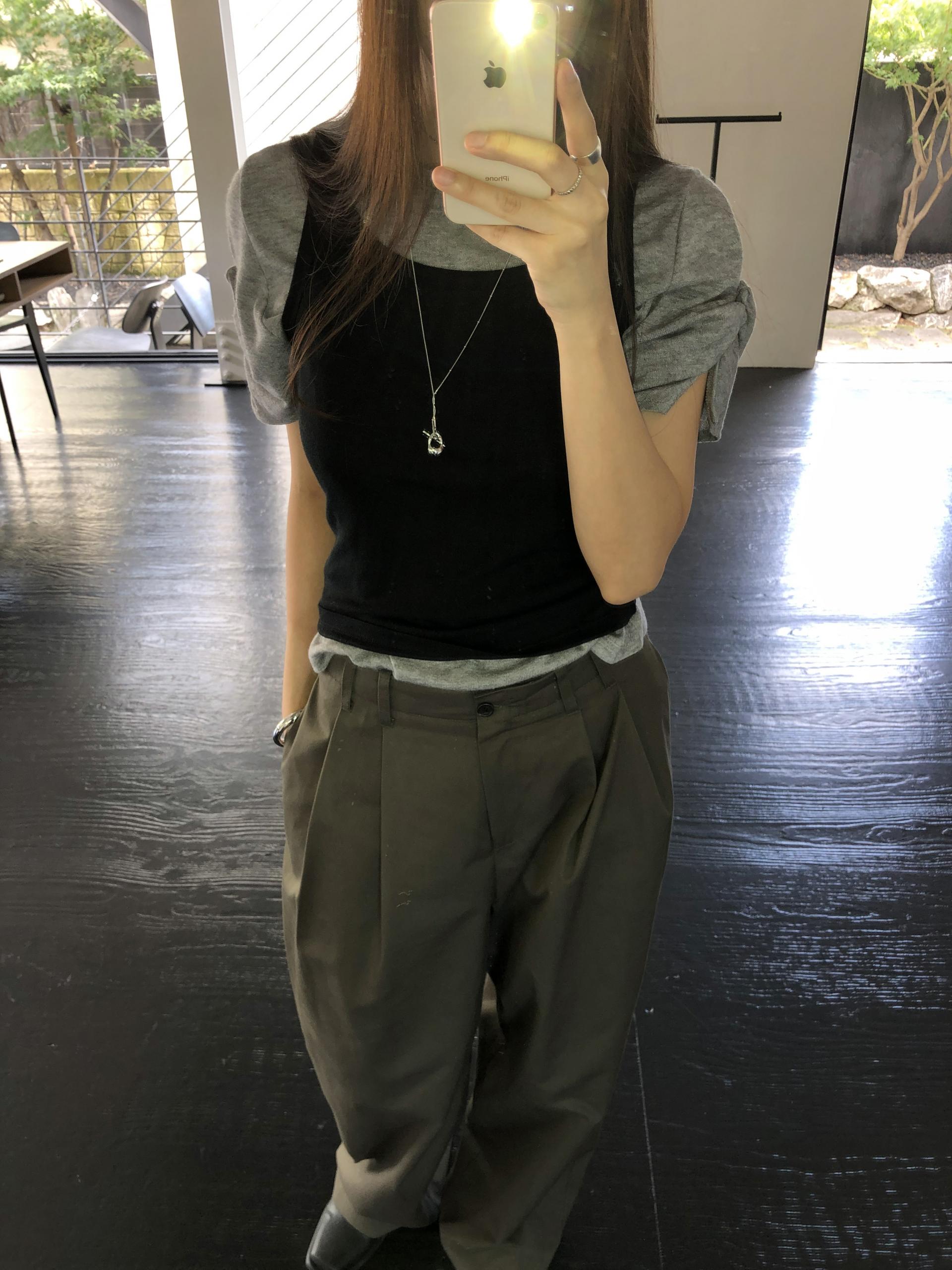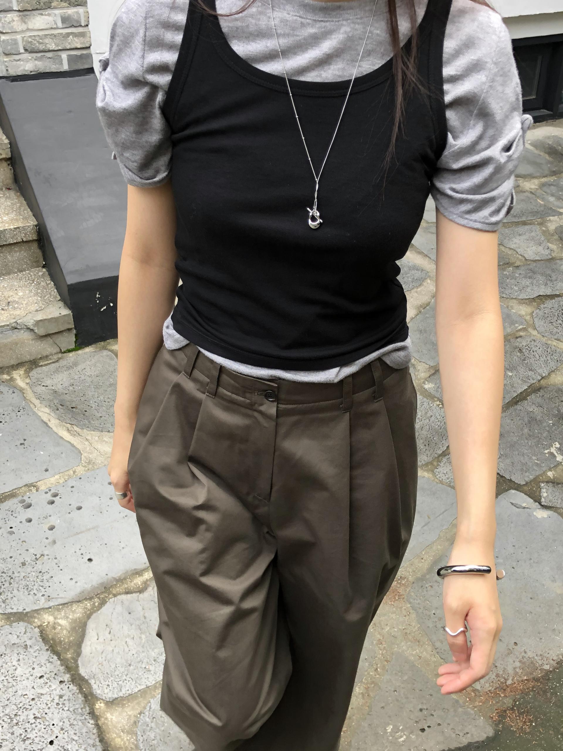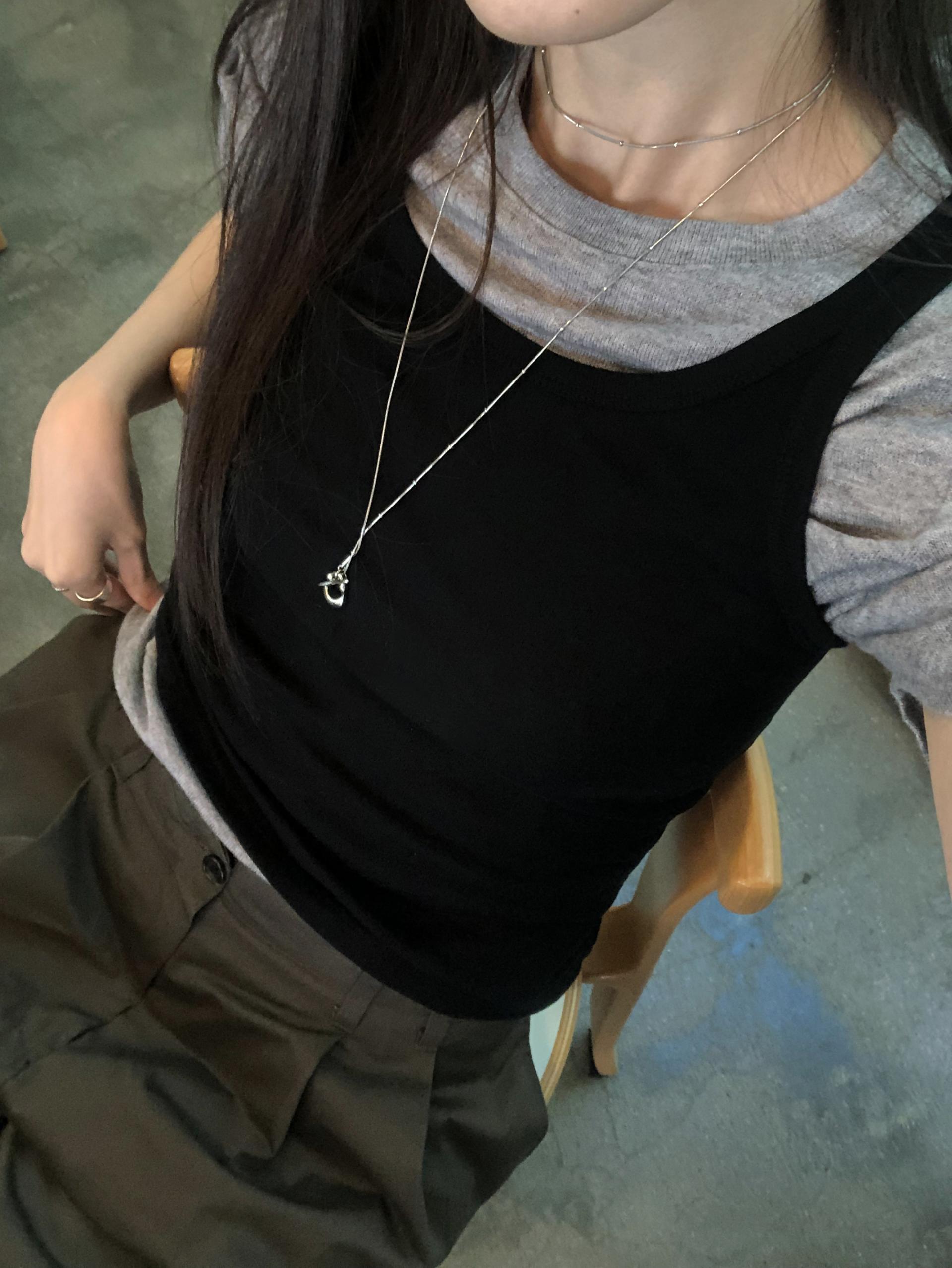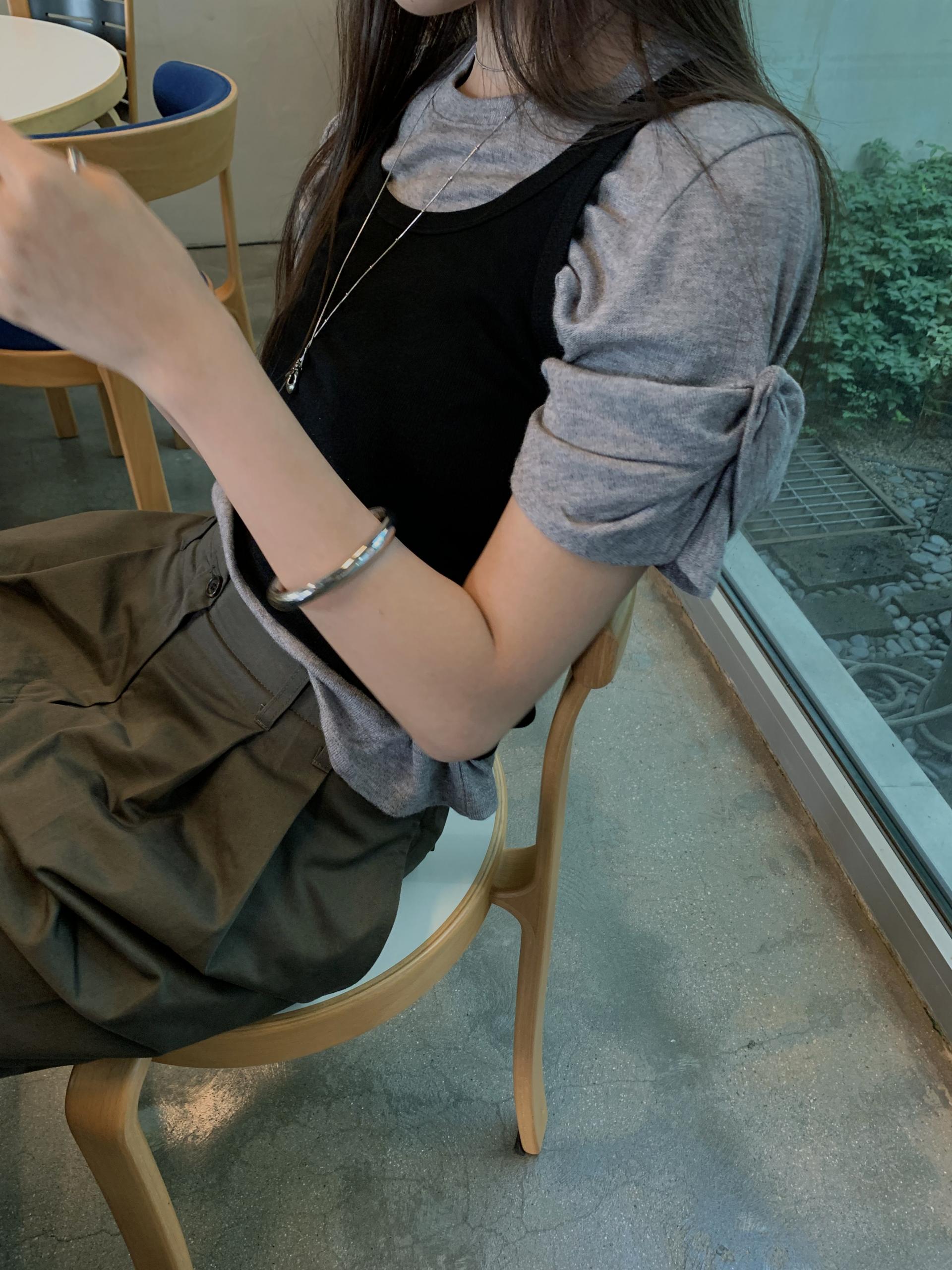 심플하지만 단조롭지 않아 단독으로도 레이어드로도 유용한 아이템이에요.
