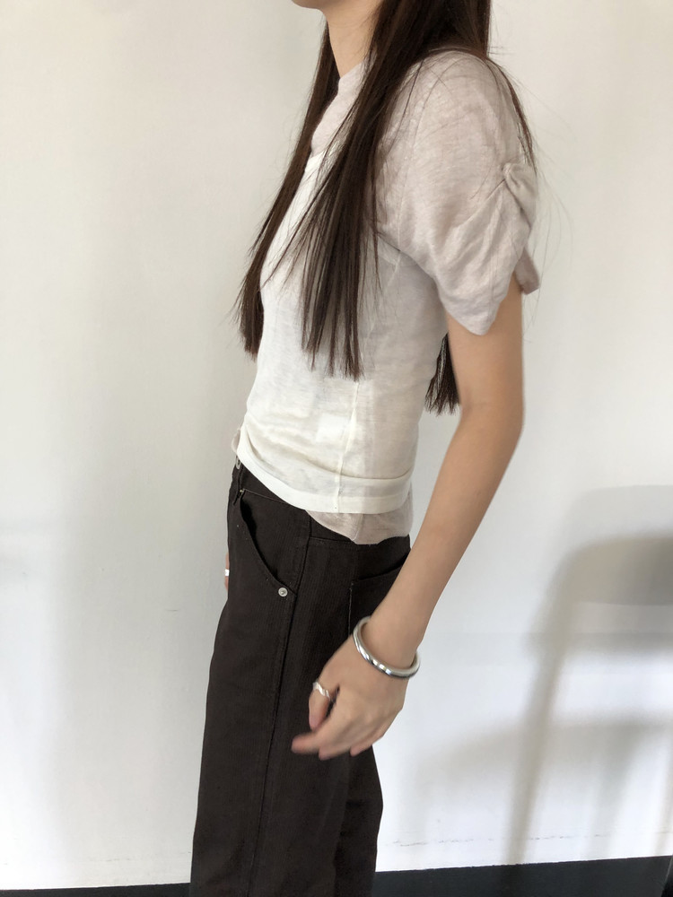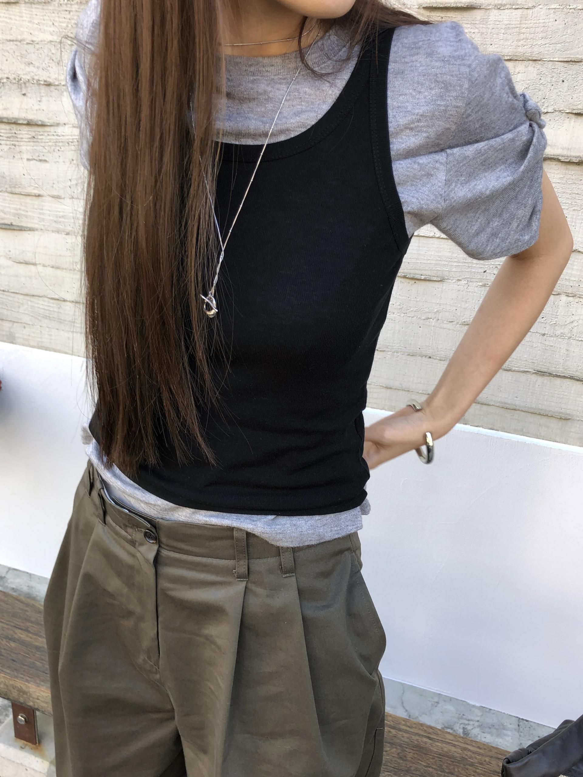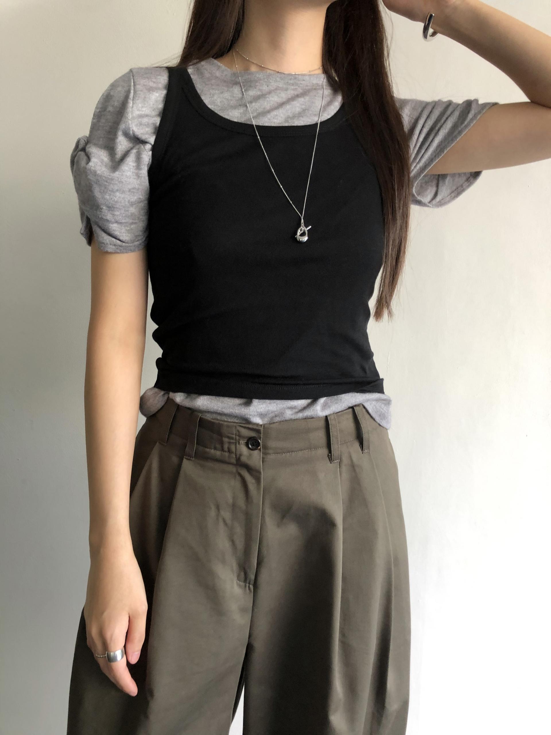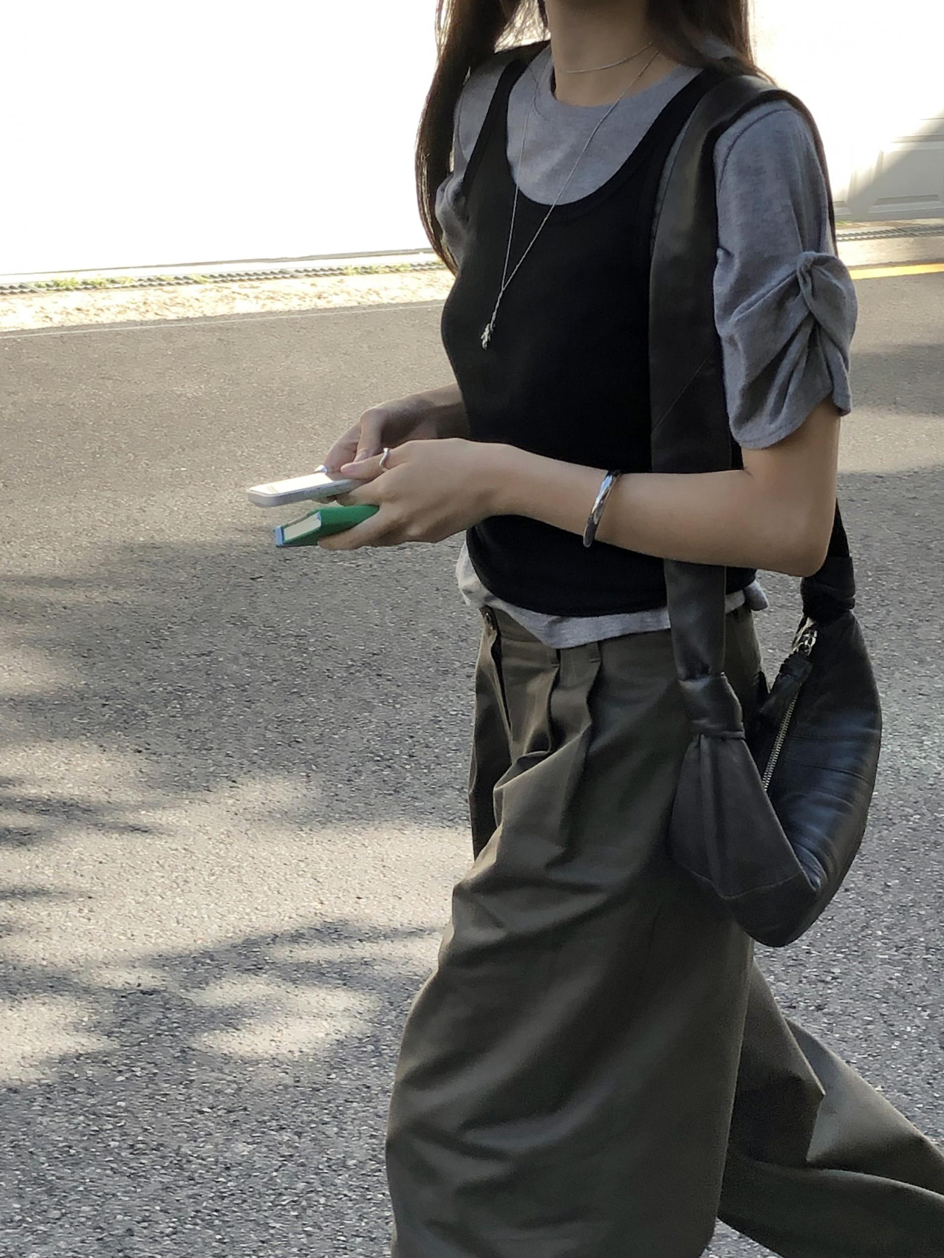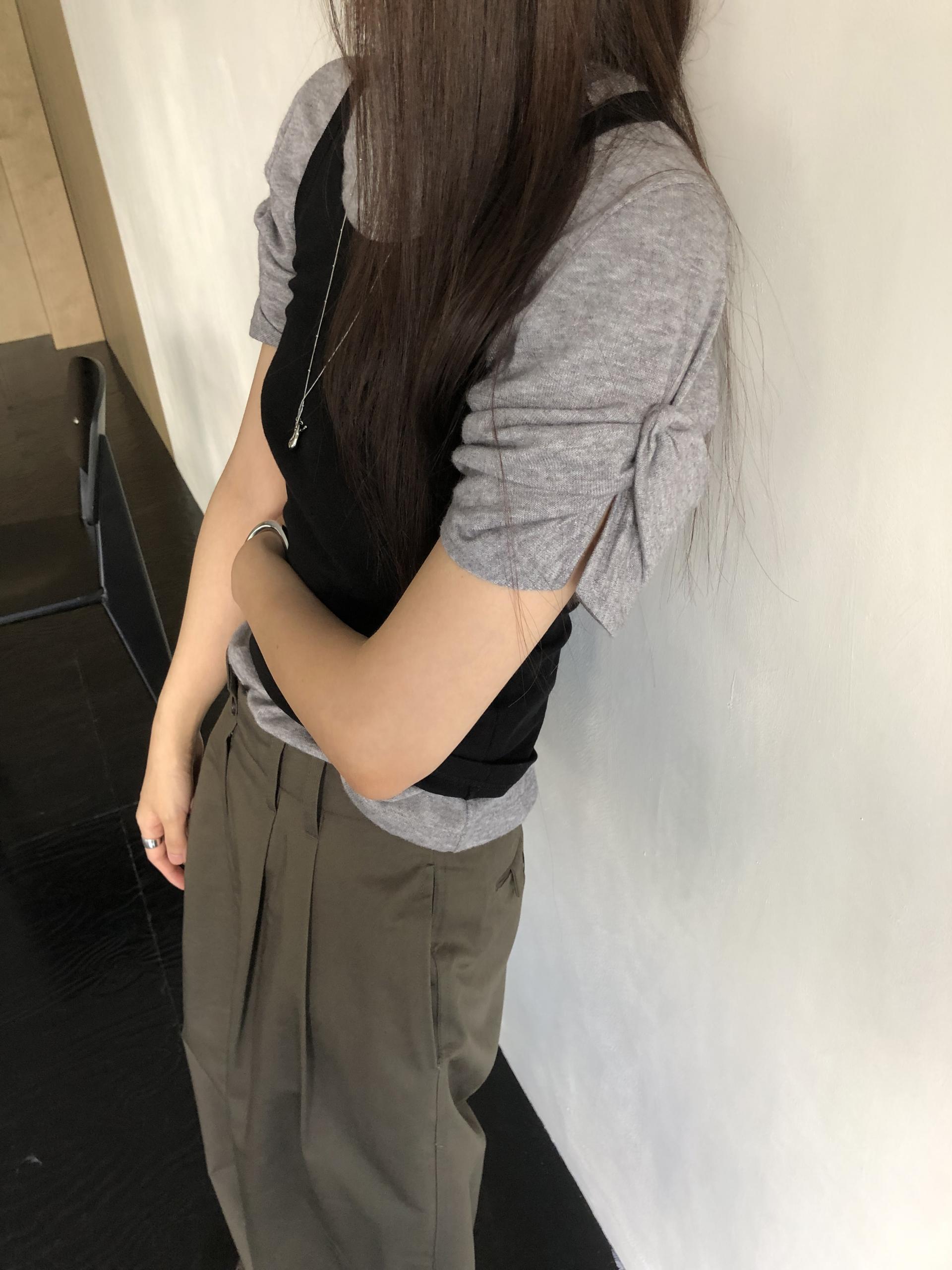 심플하지만 단조롭지 않아 단독으로도 레이어드로도 유용한 아이템이에요.